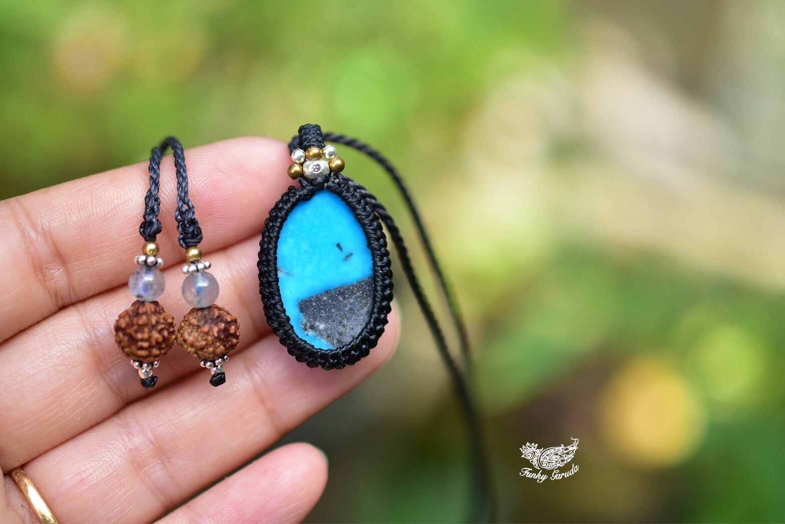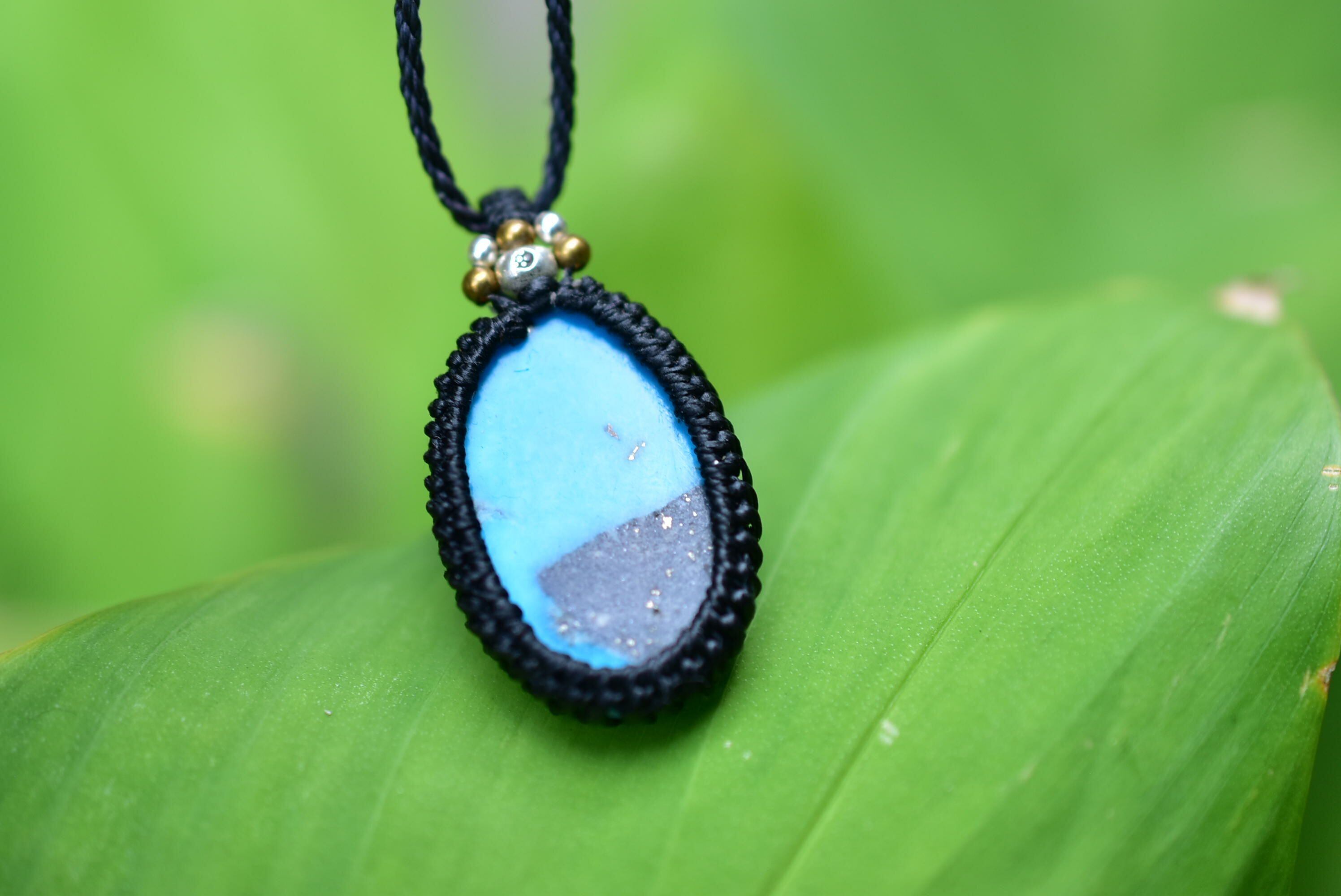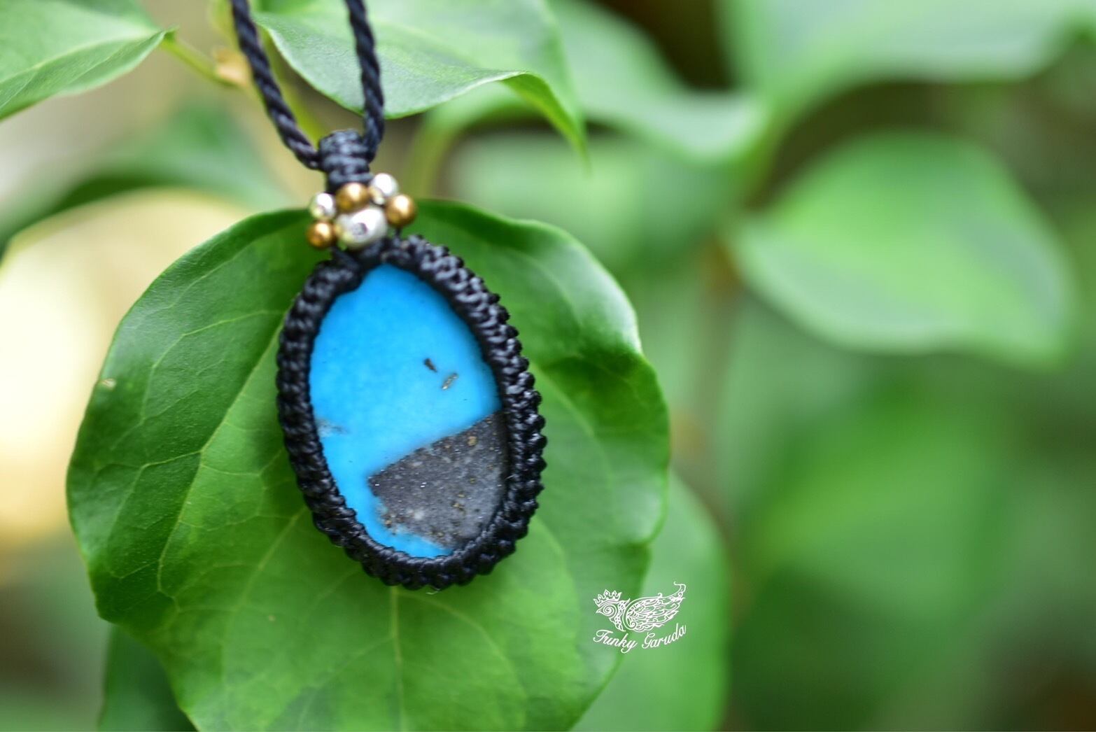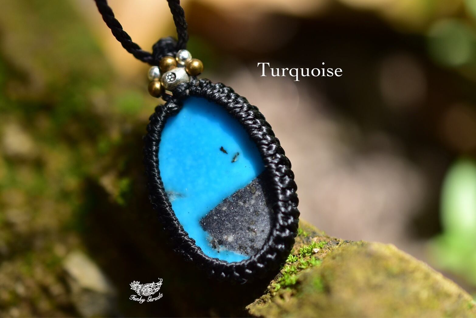 青天のブルー★ターコイズ マクラメペンダント tury011