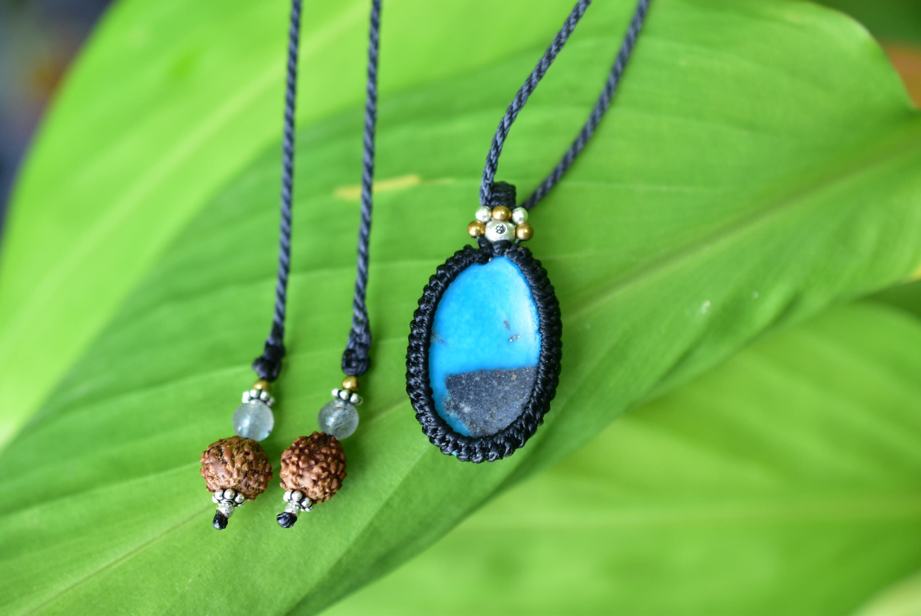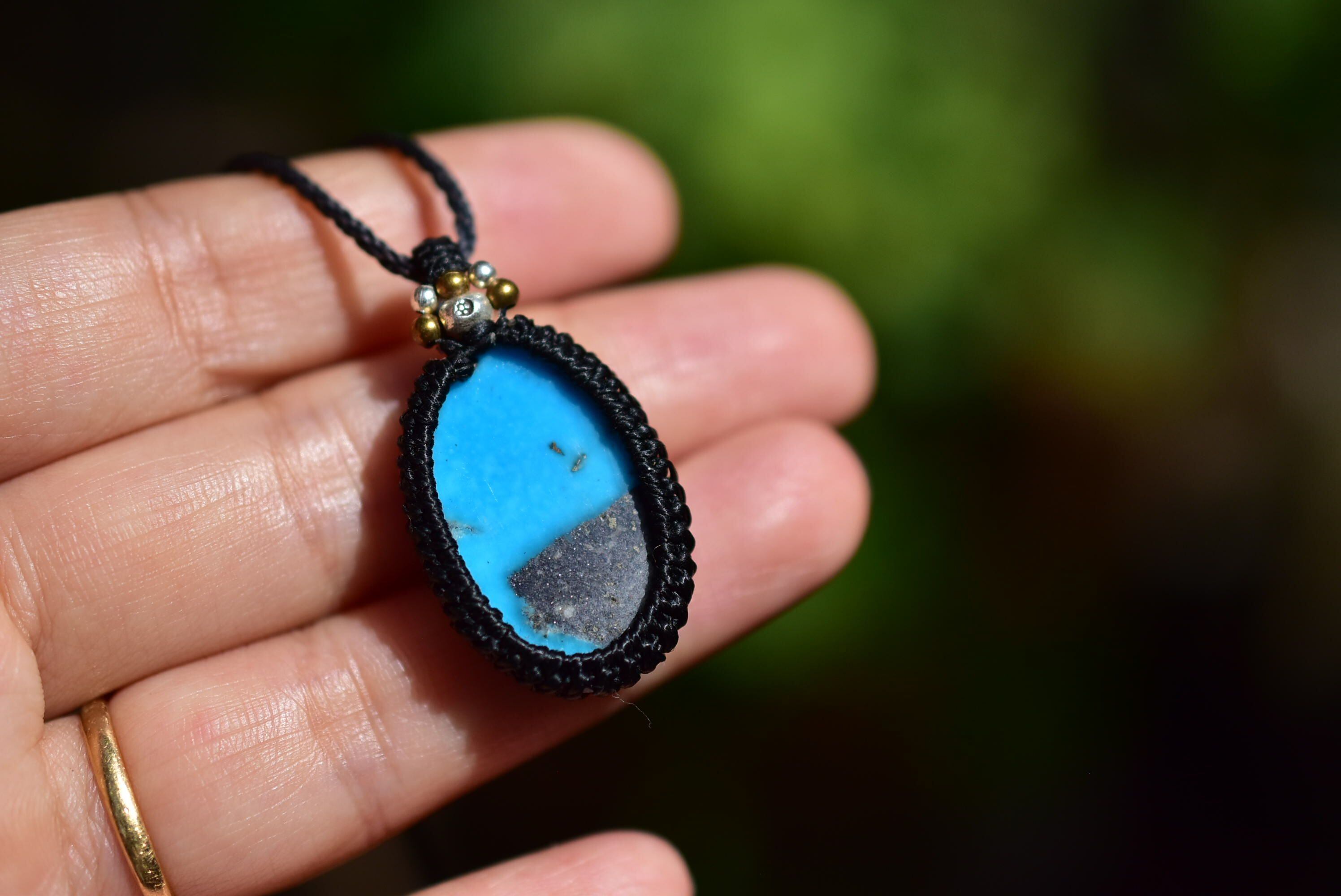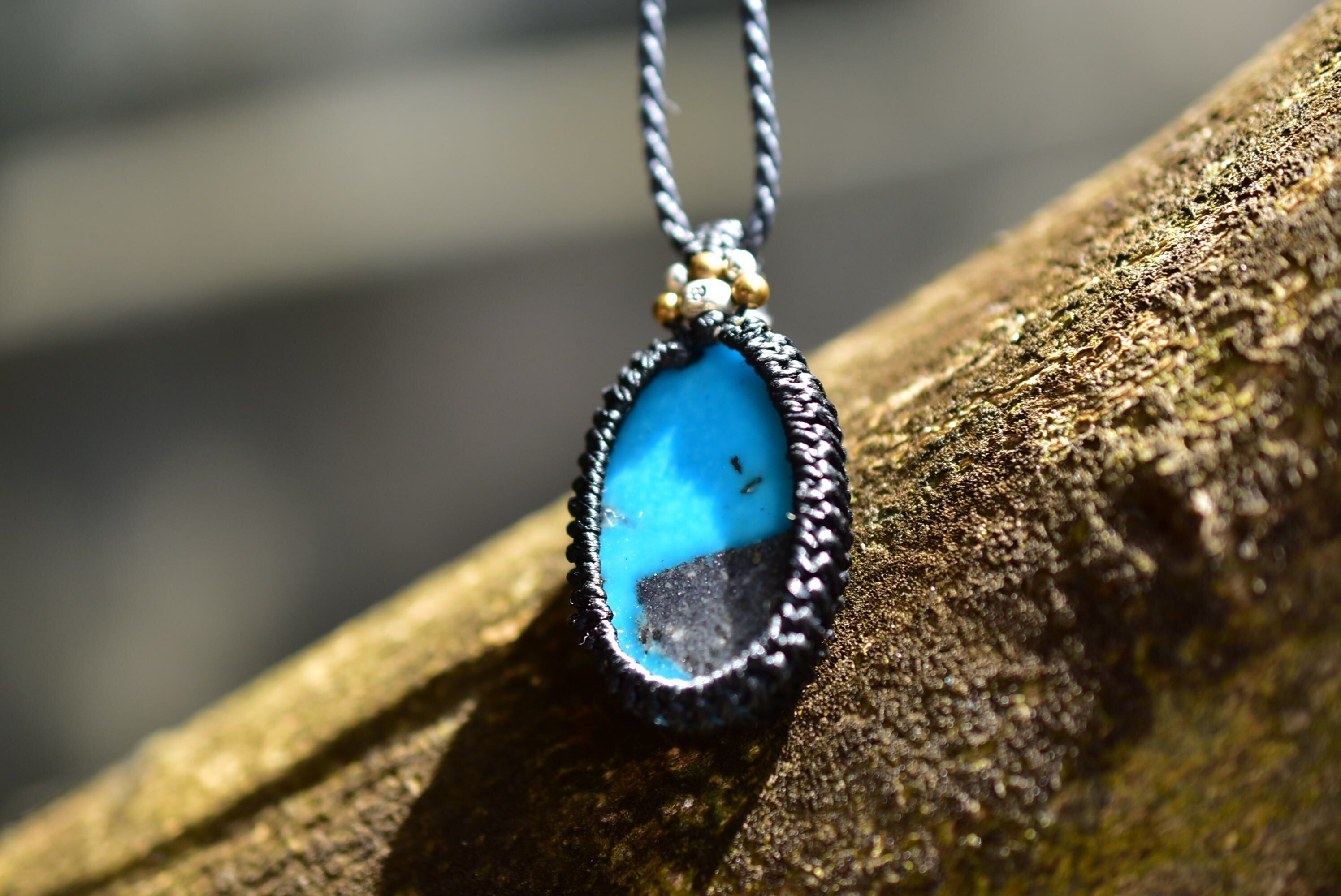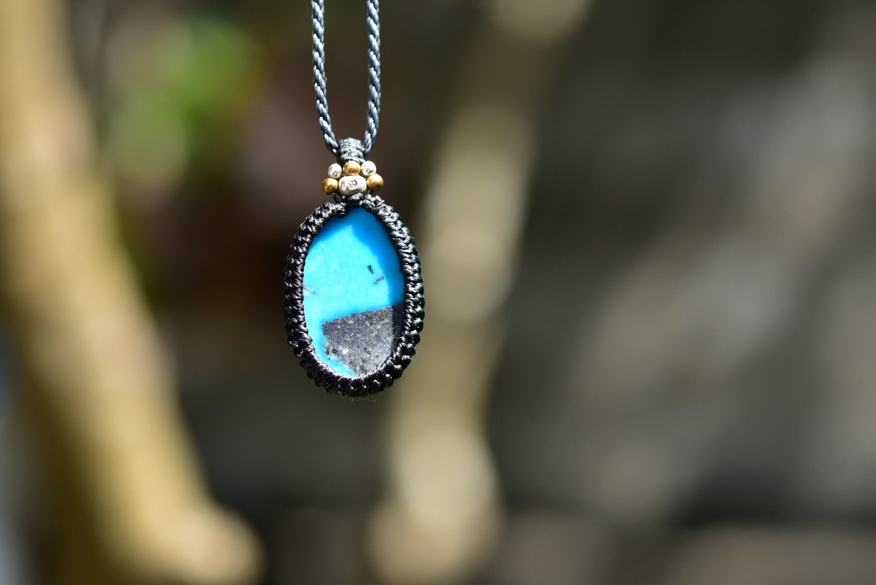 青天のブルー★ターコイズ マクラメペンダント tury011