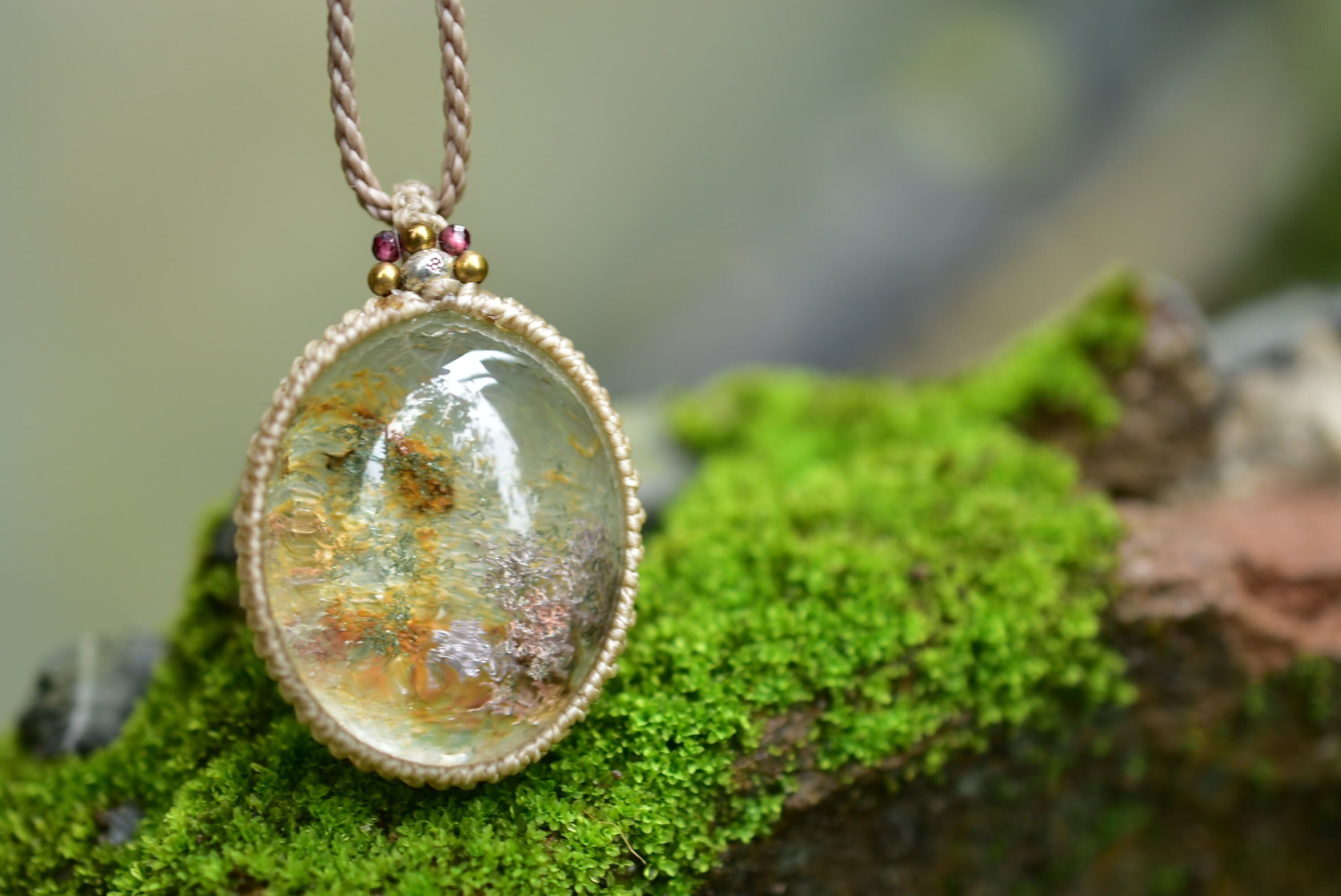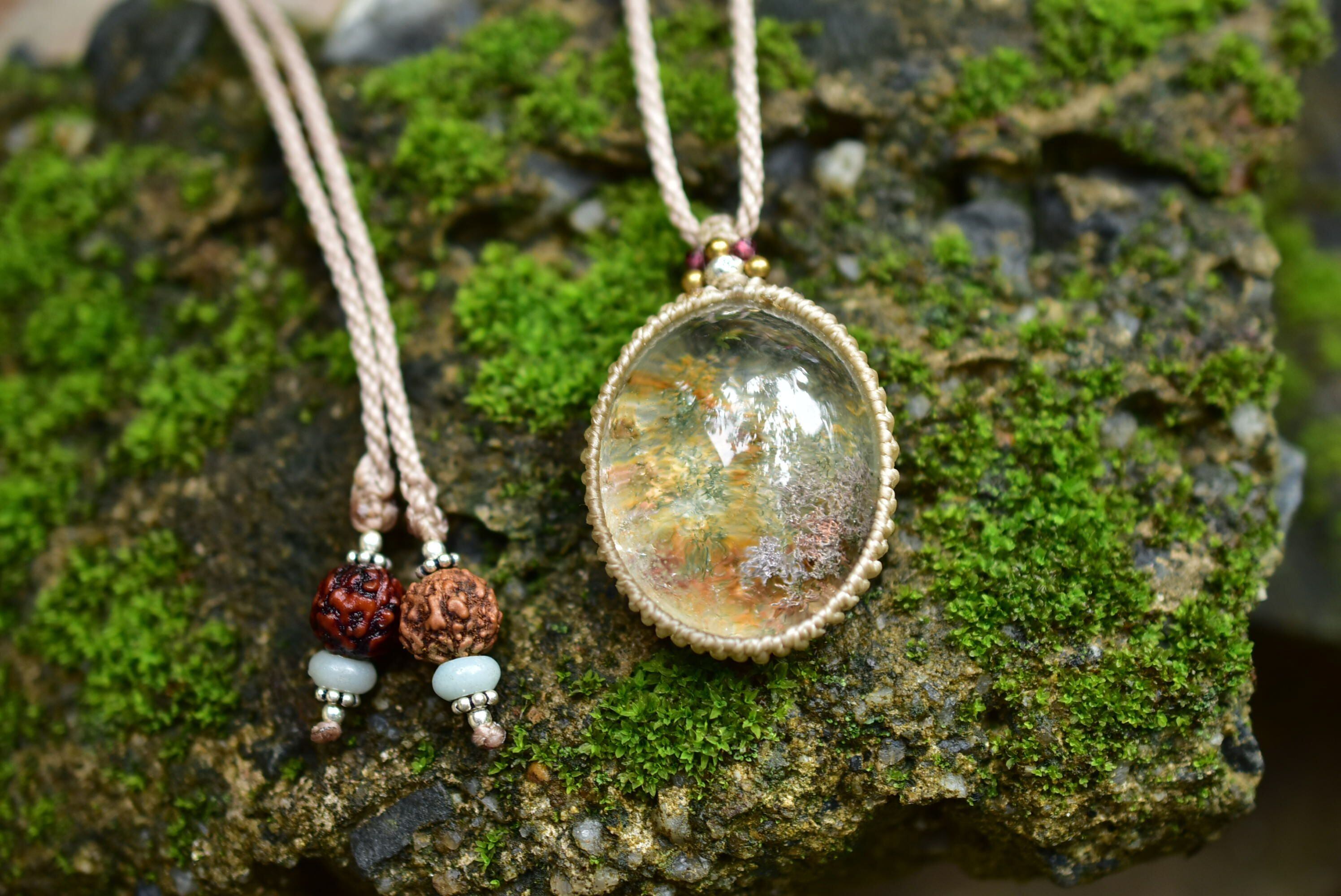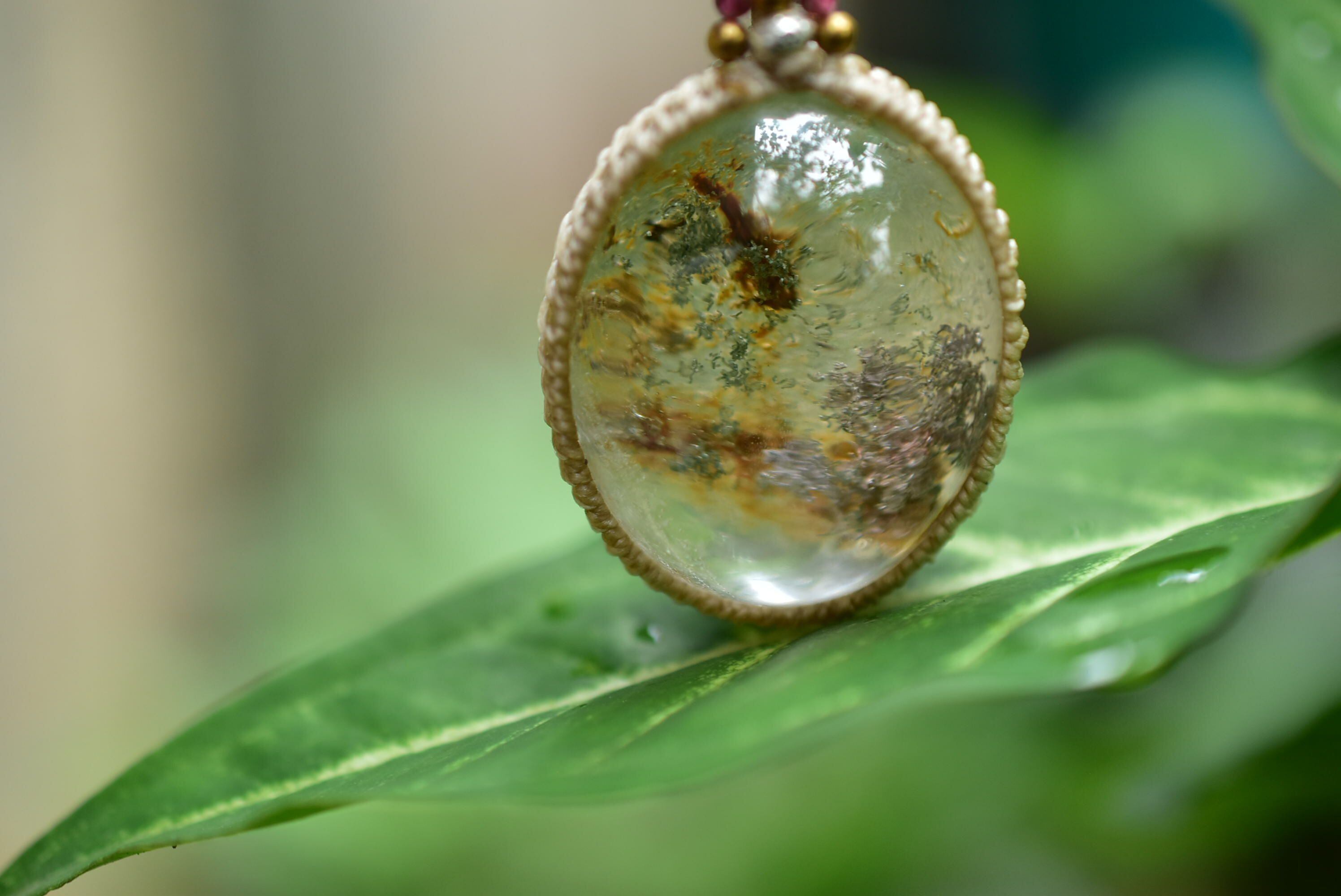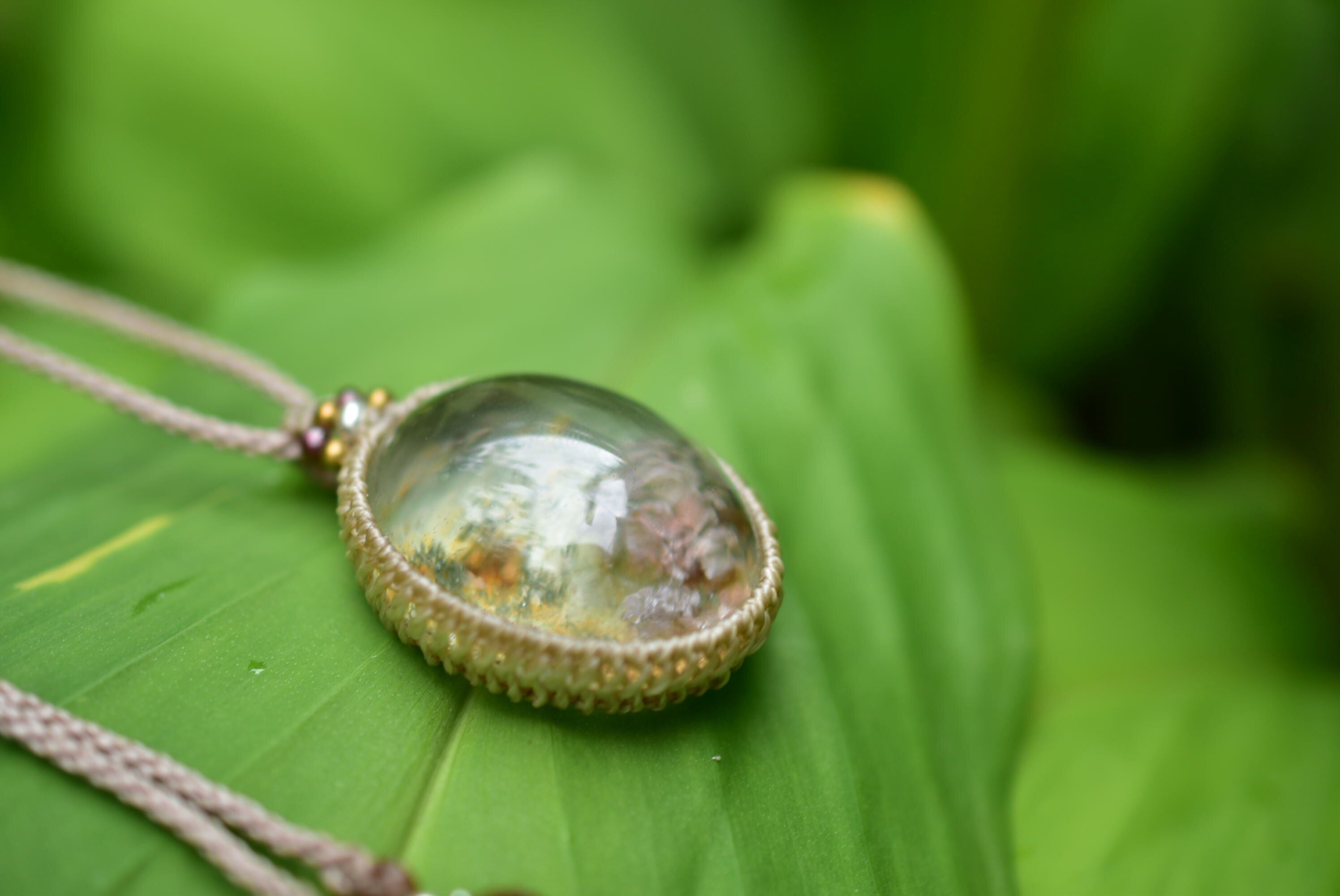 紅葉色★ガーデンクォーツ マクラメペンダント gy059