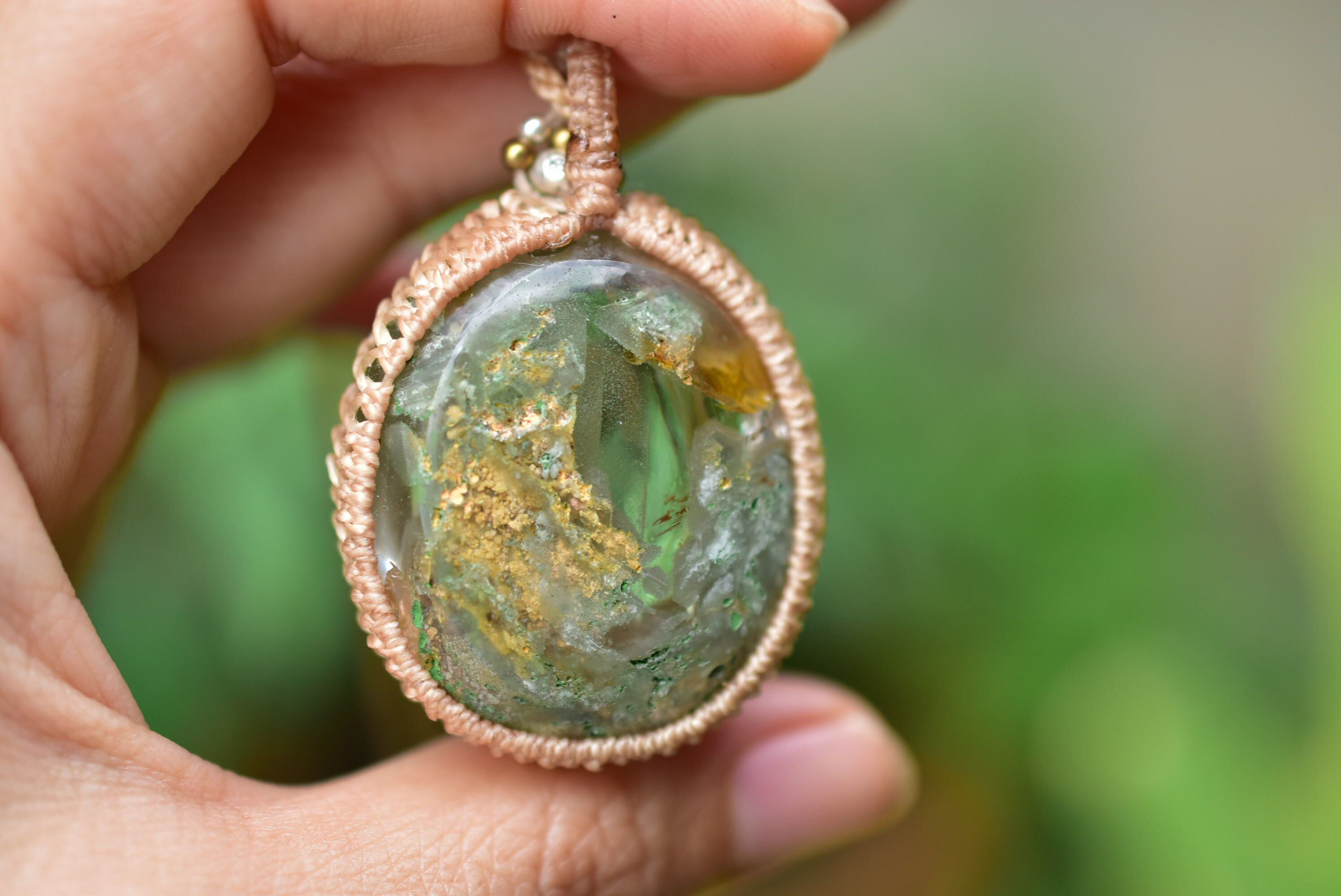 雲が舞う世界★ガーデンクォーツ マクラメペンダント gy060