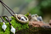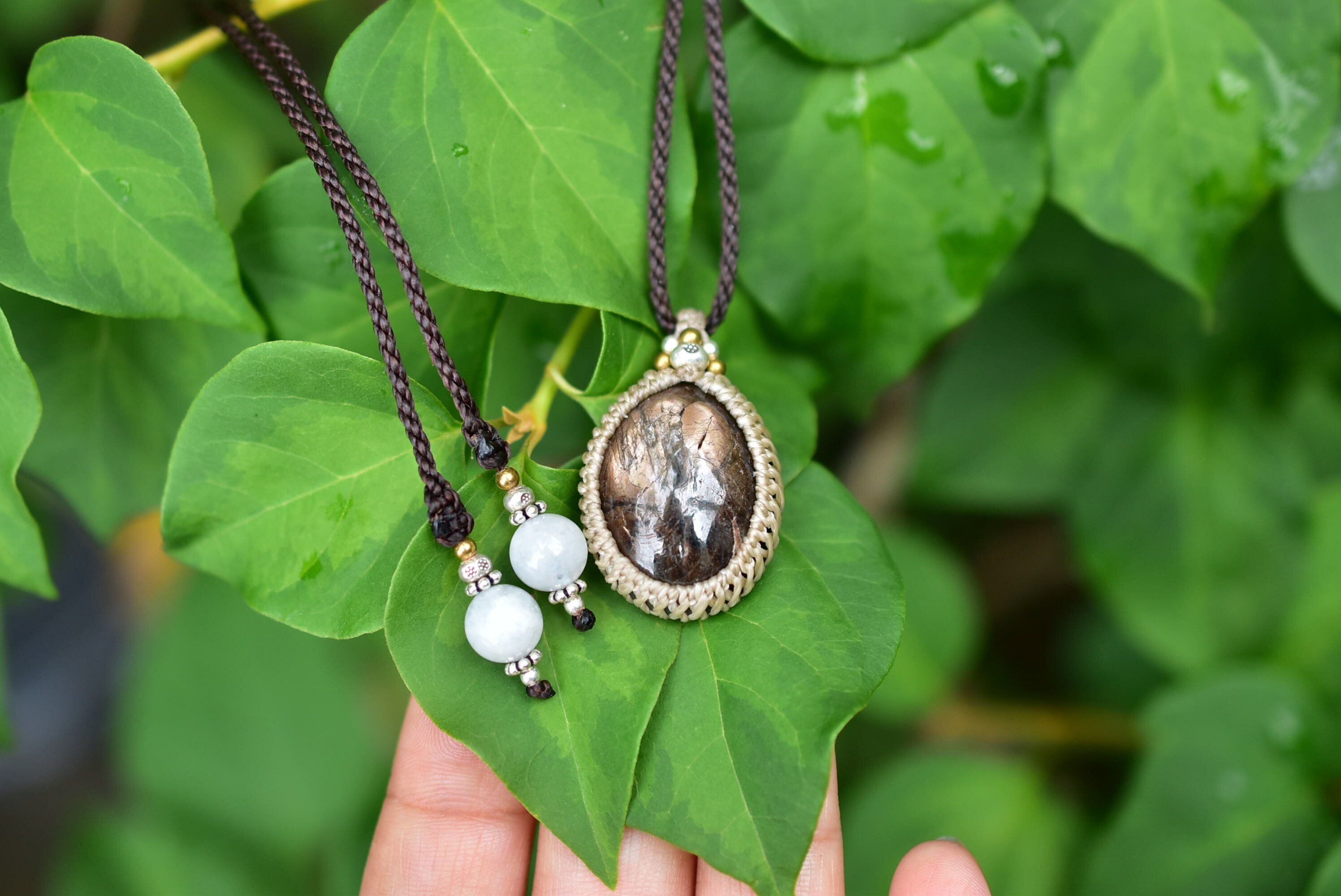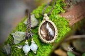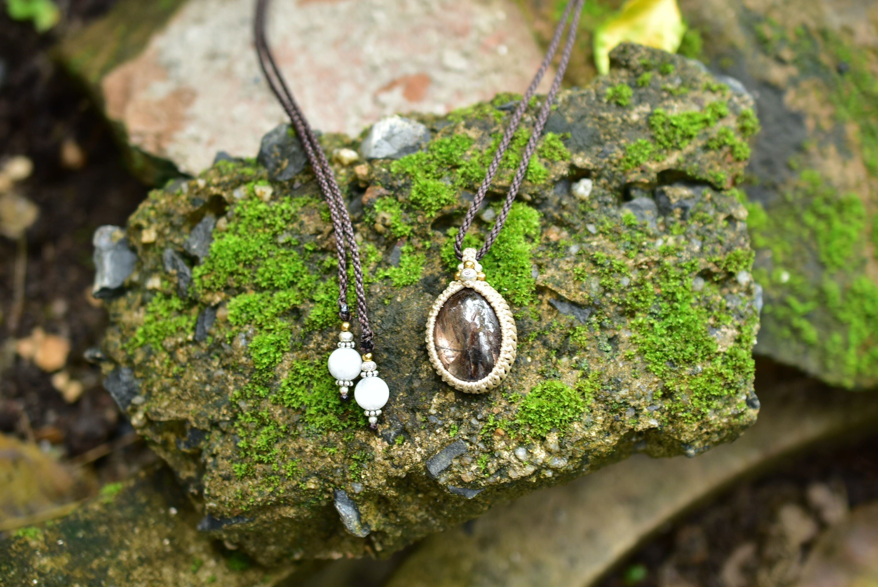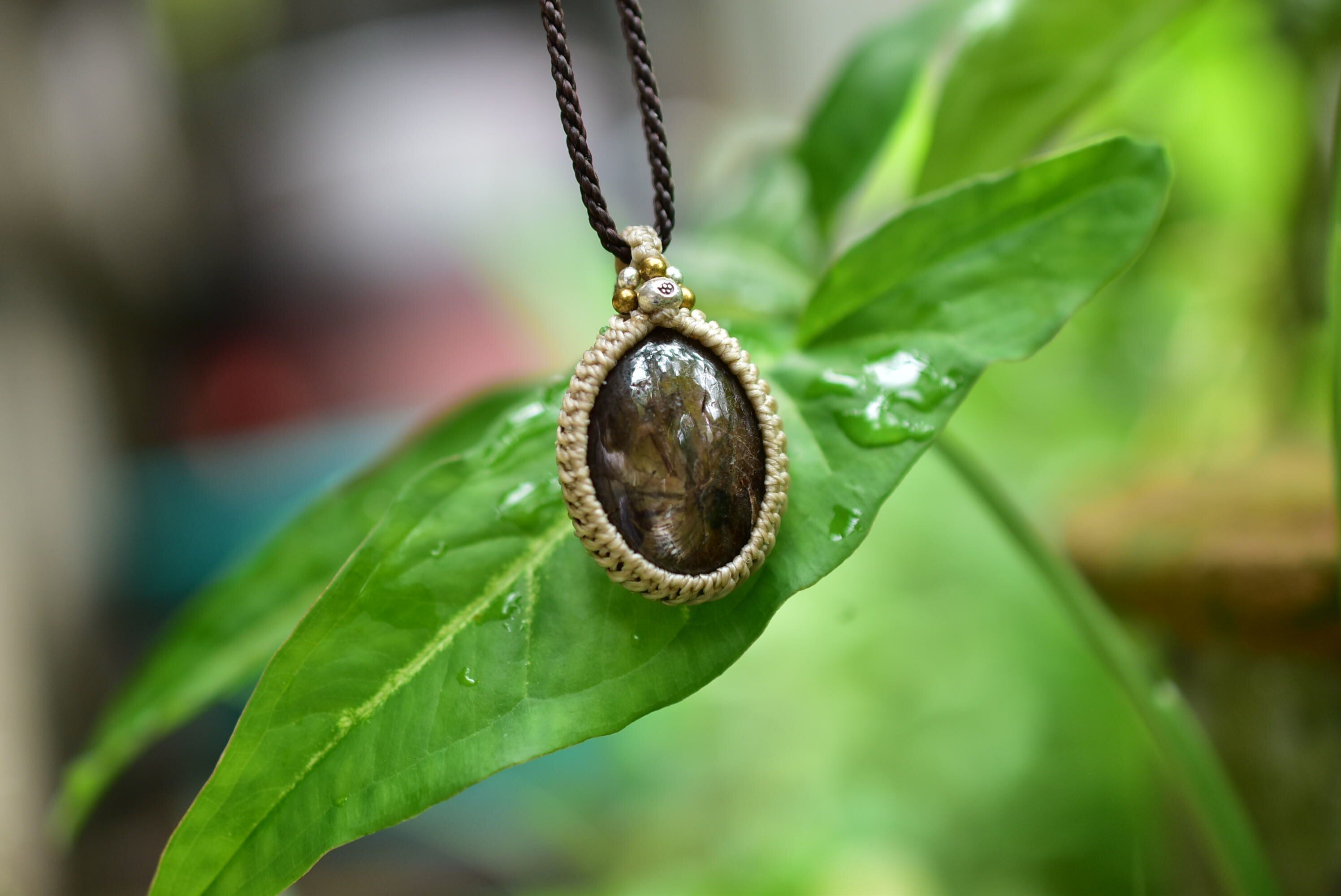 深みや渋みを感じるブラックサファイアを、マクラメペンダントにして仕上げました。