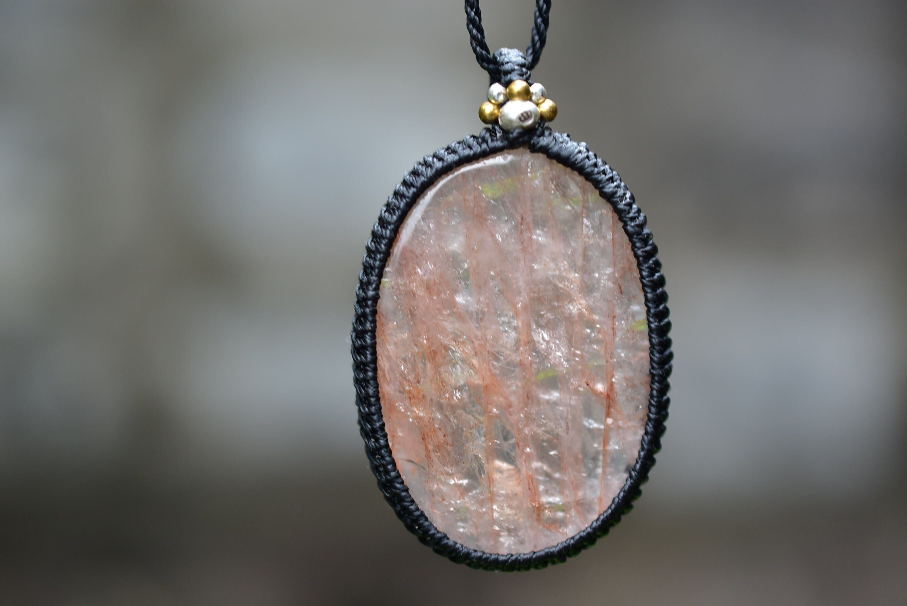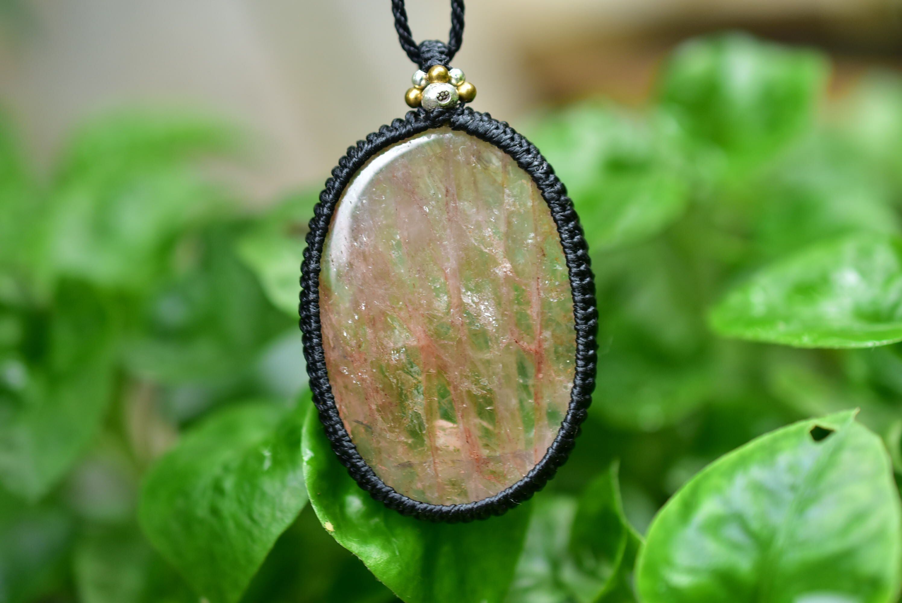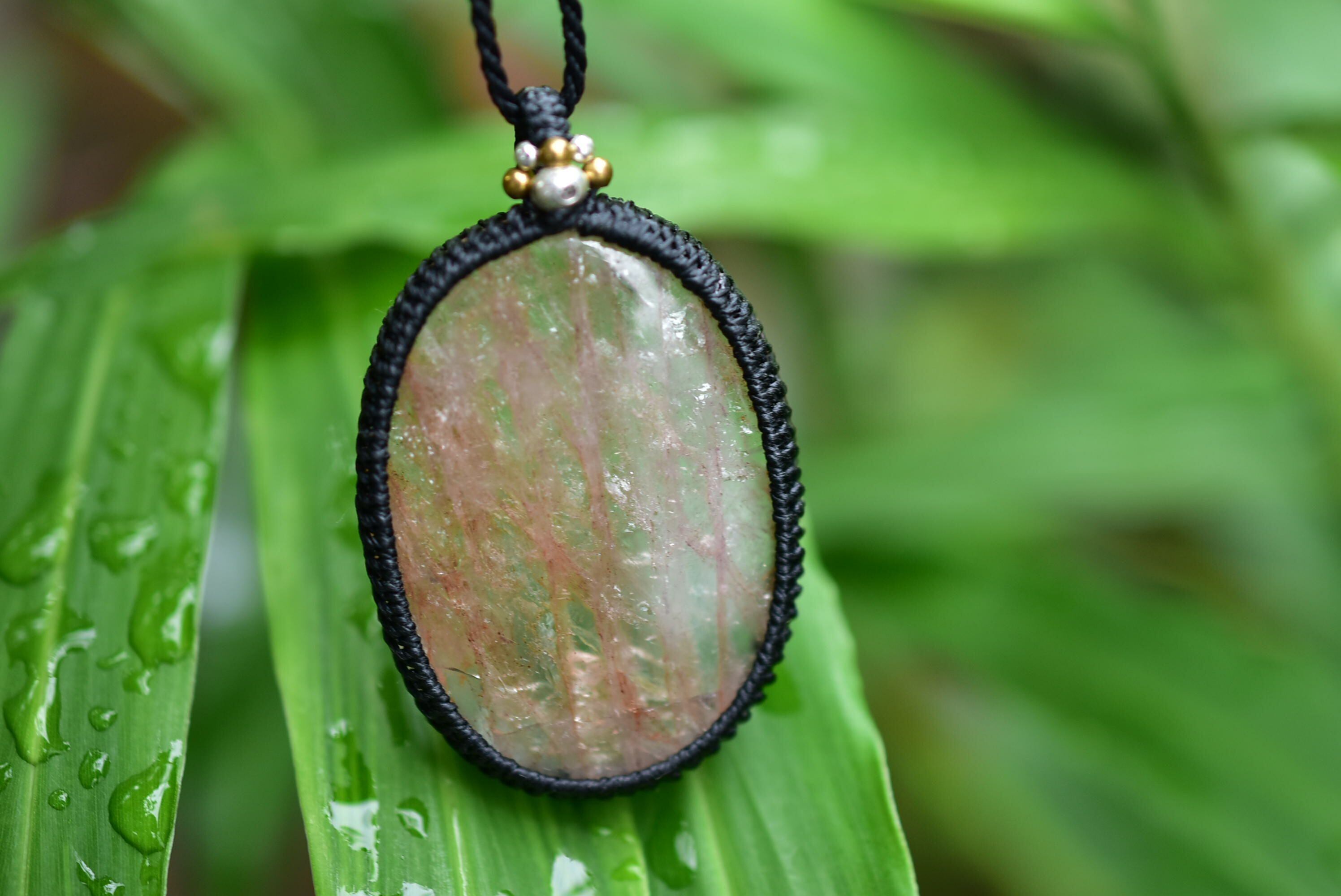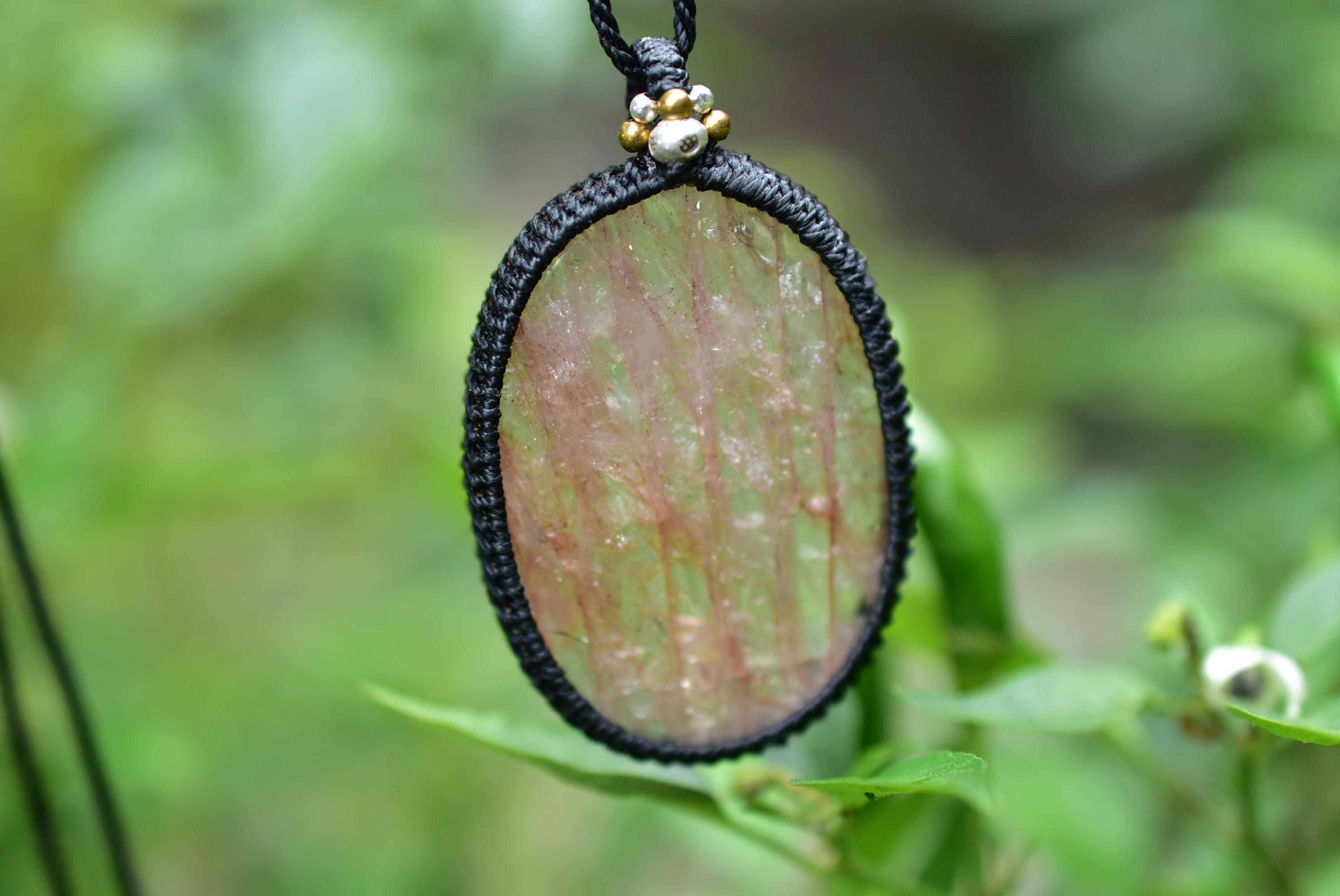 愛らしい魅力を持つ天然石を、シンプルなマクラメペンダントに仕上げました。
