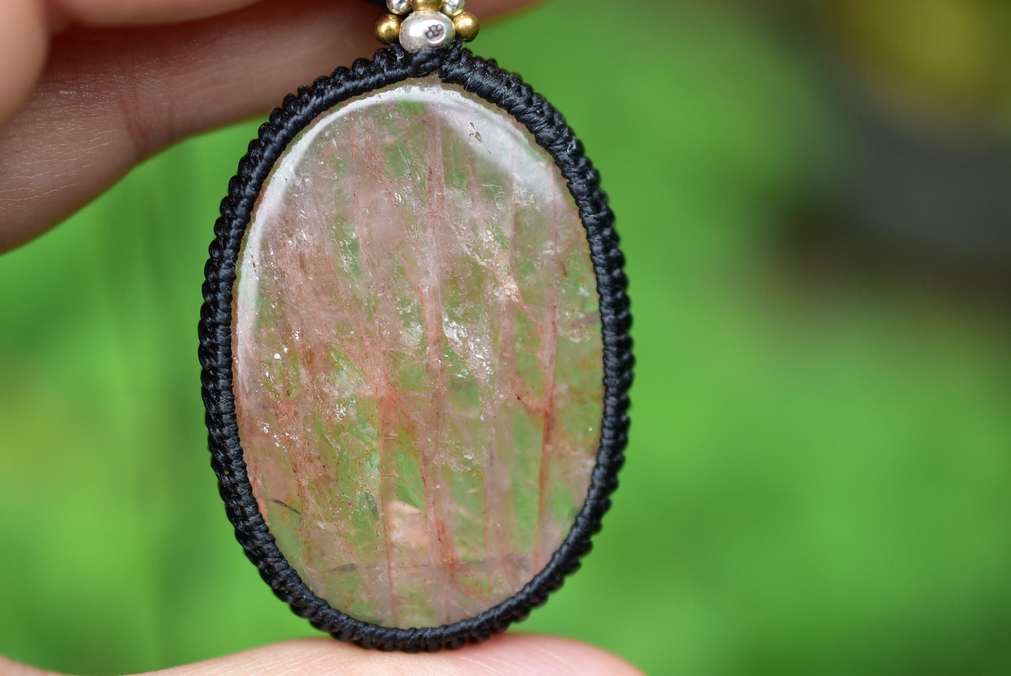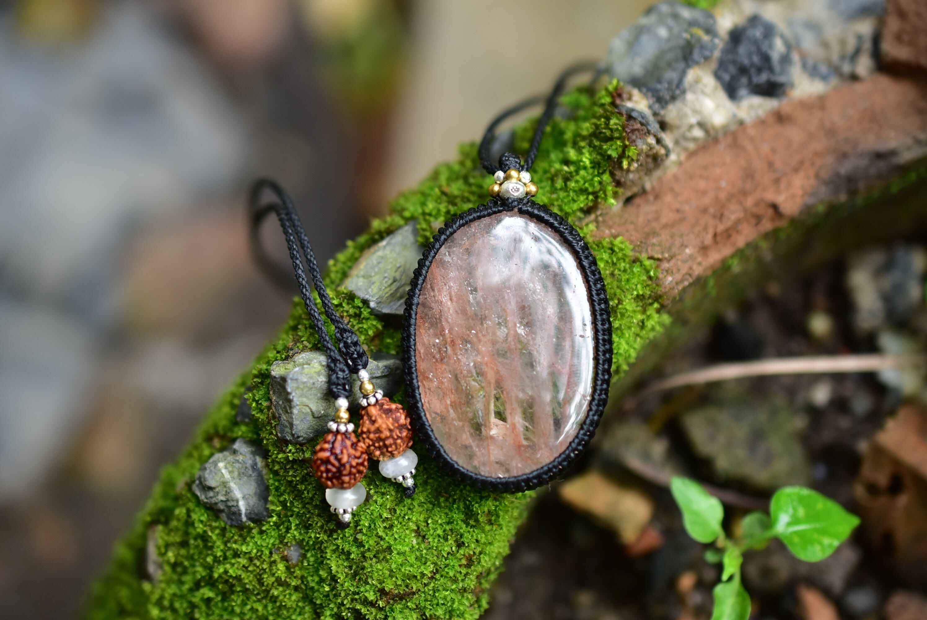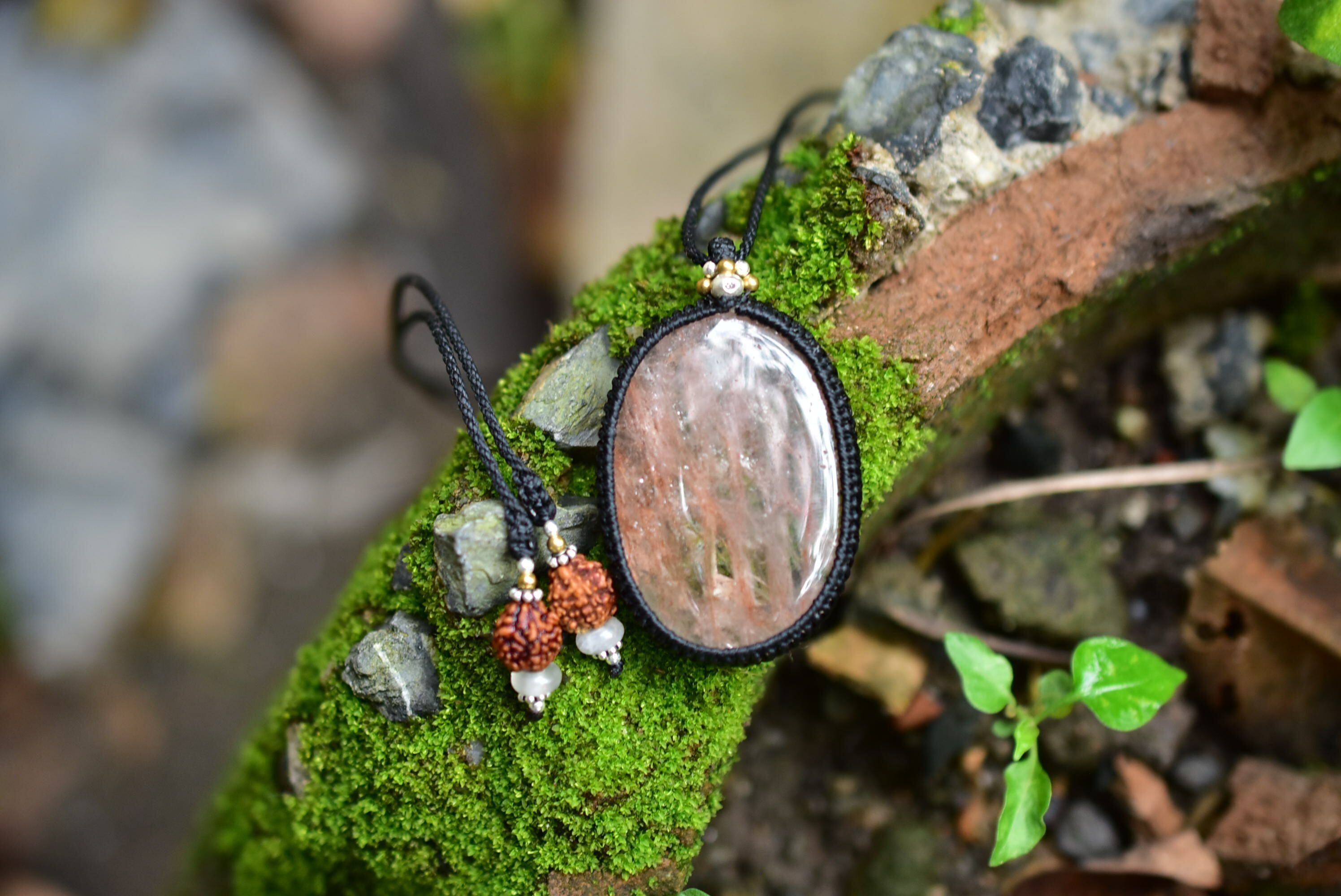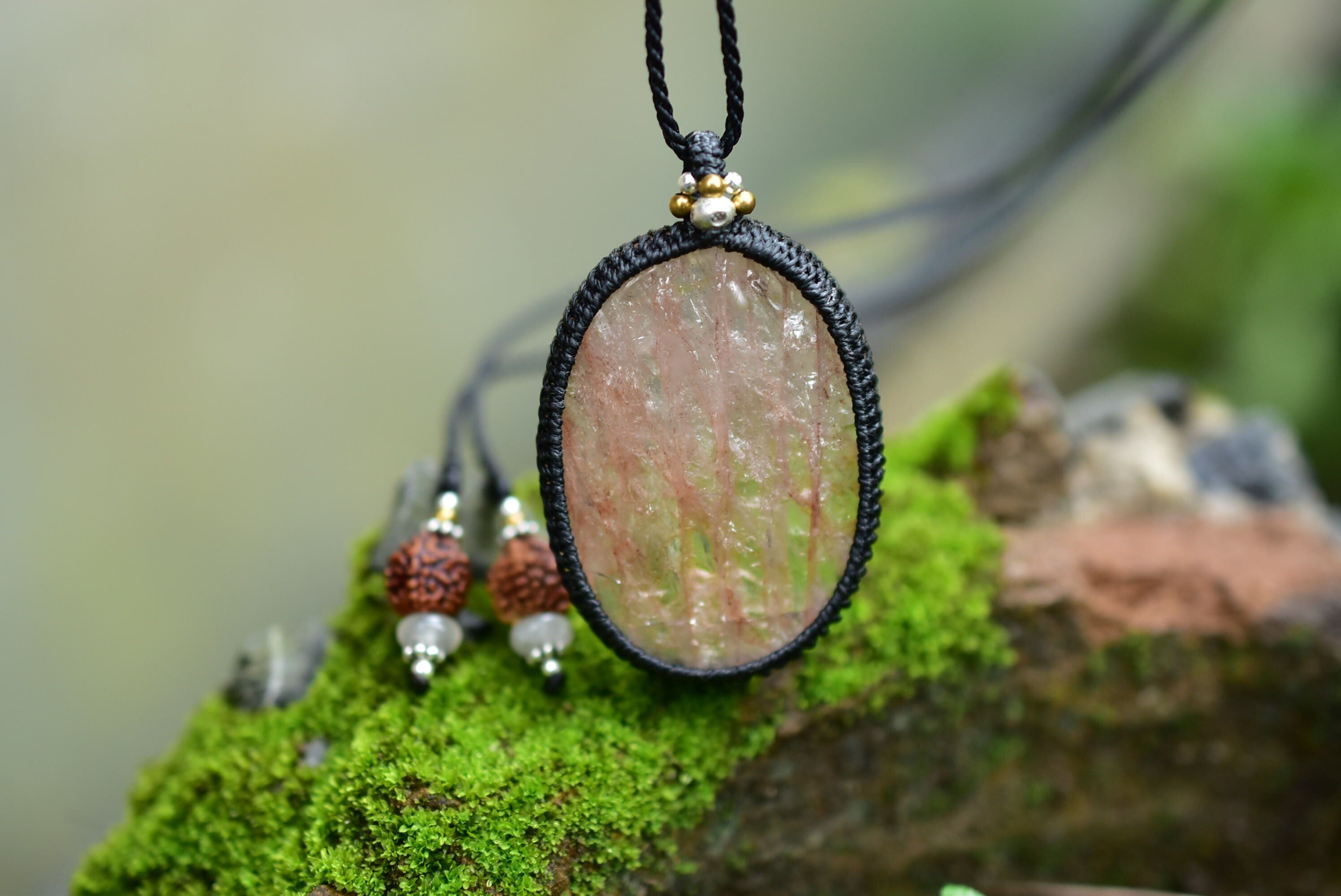 愛らしい魅力を持つ天然石を、シンプルなマクラメペンダントに仕上げました。