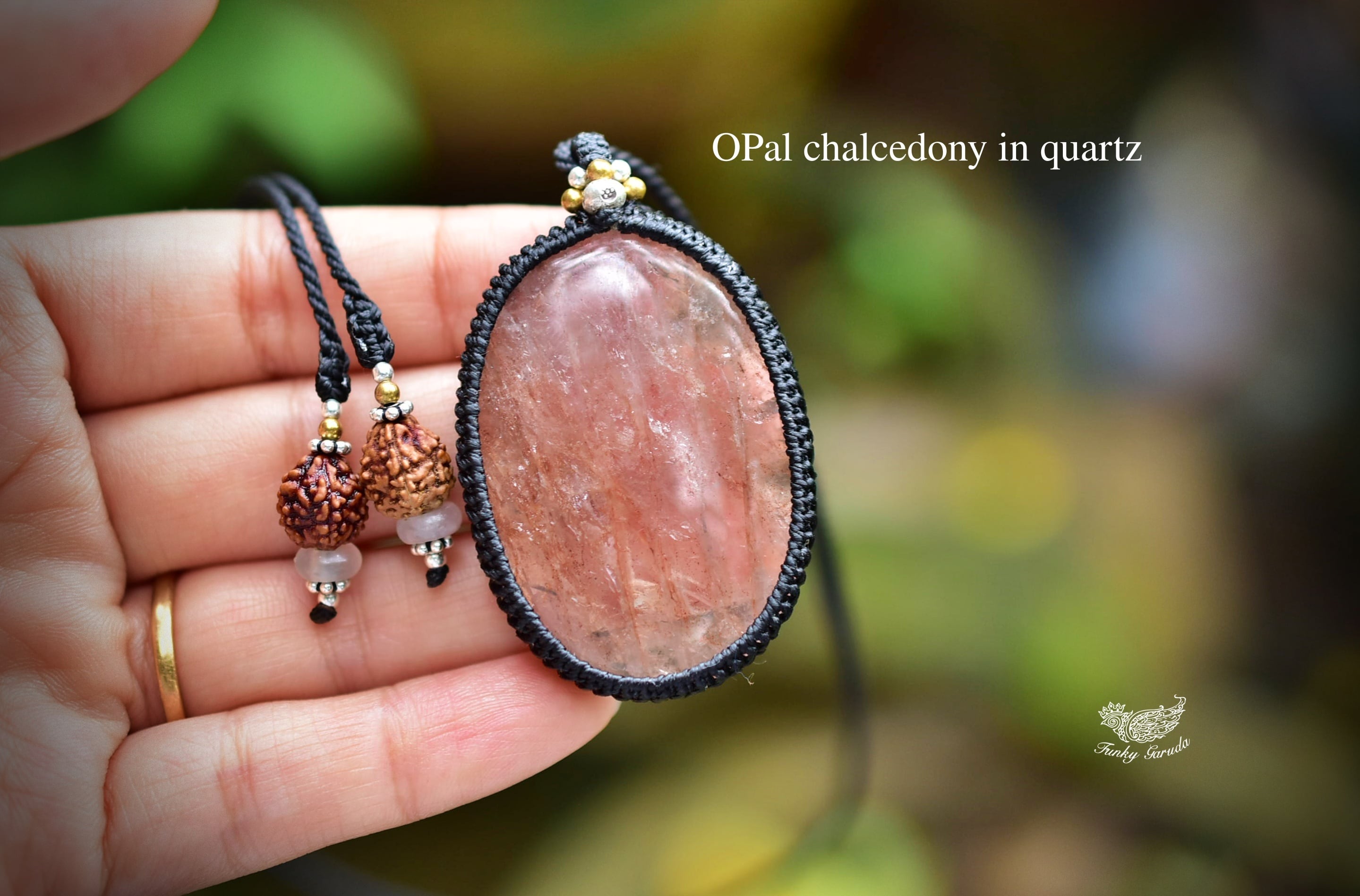 透明珊瑚★オパールカルセドニーインクォーツ マクラメペンダント ocy001