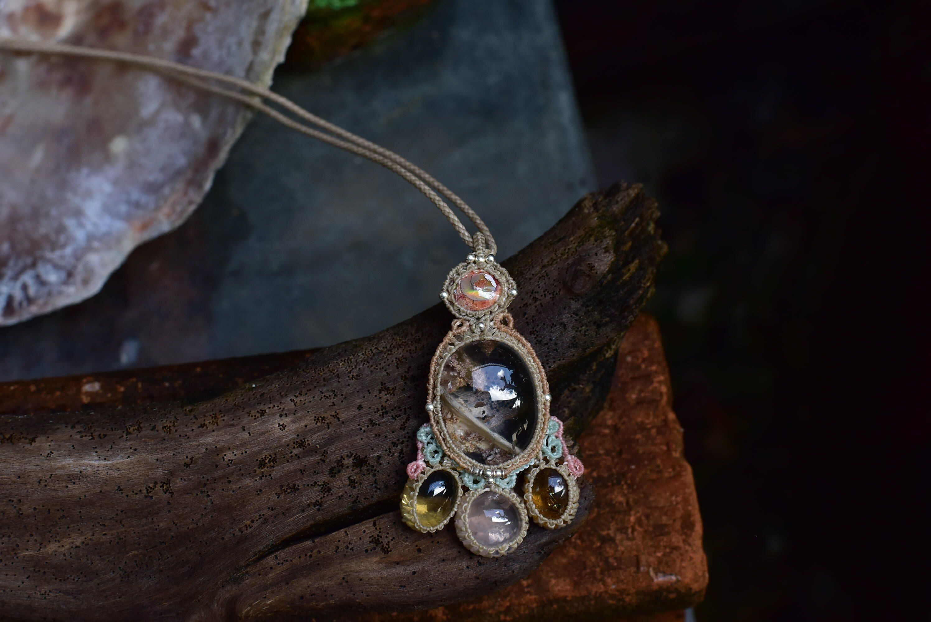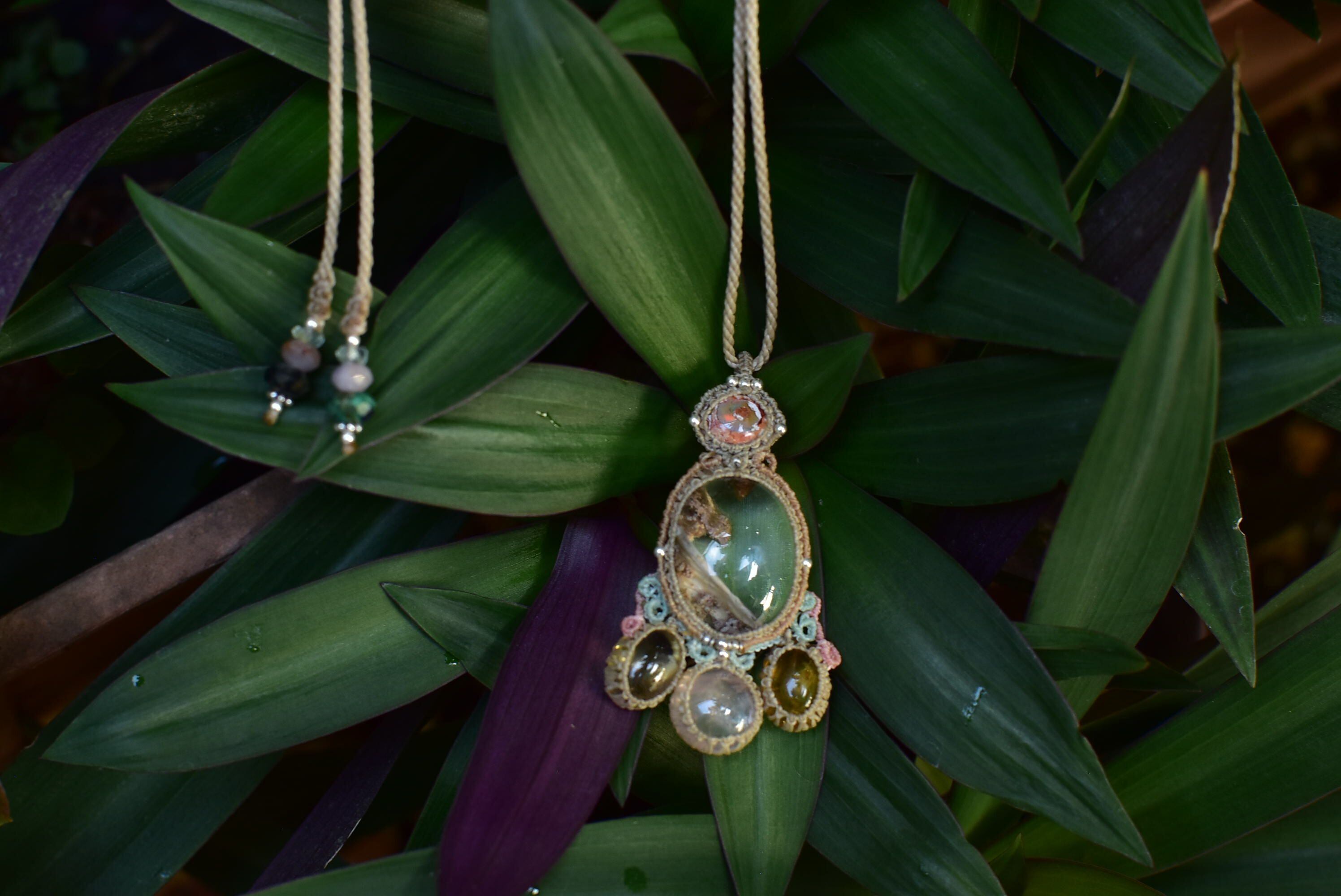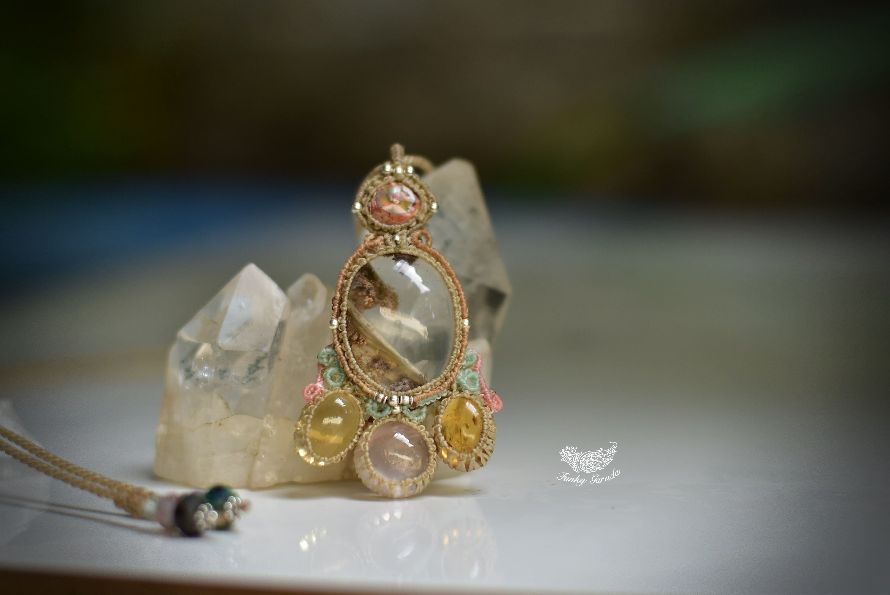透明感と古代の奇跡★カンテラオパール+ガーデンクォーツ マクラメペンダントopal022