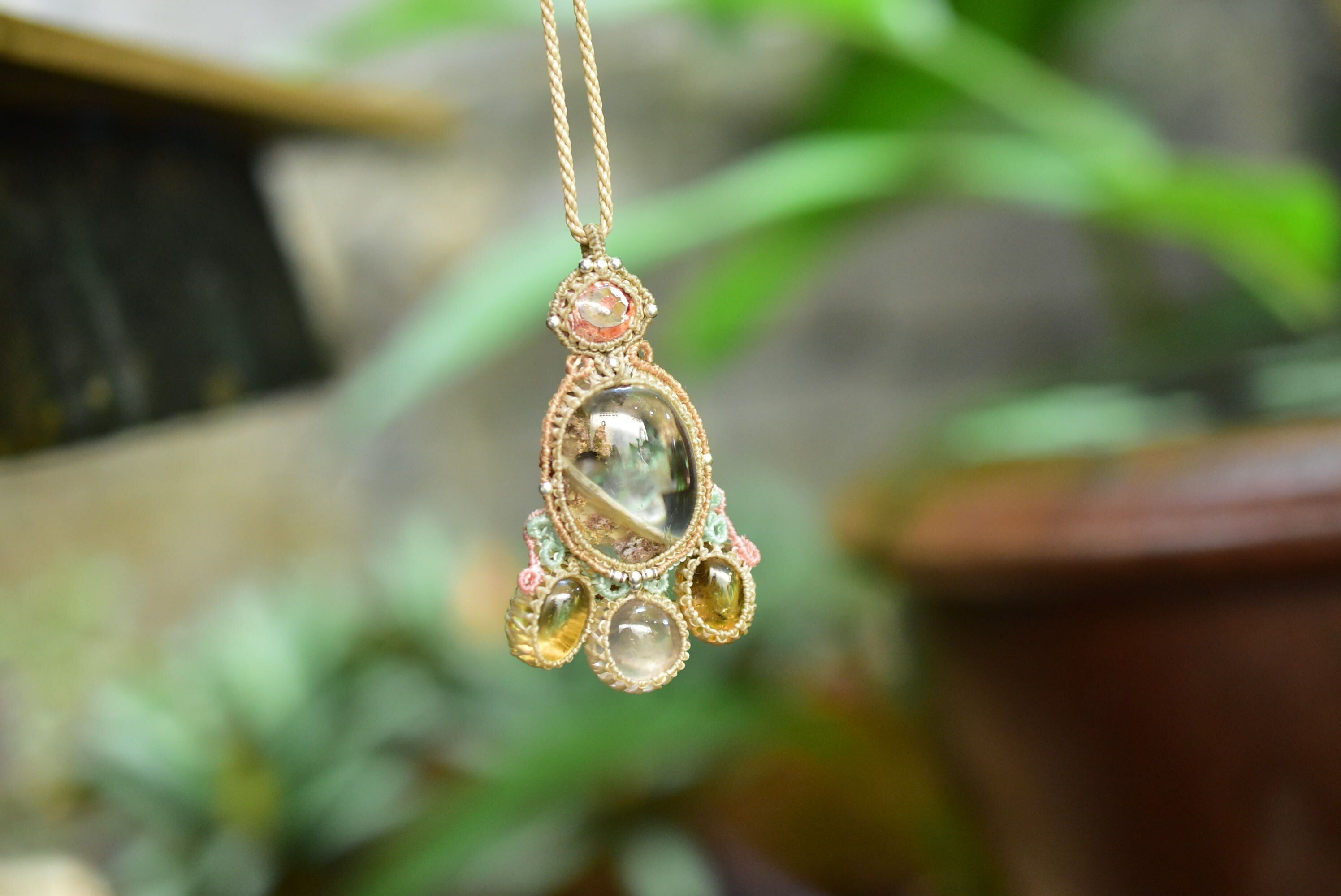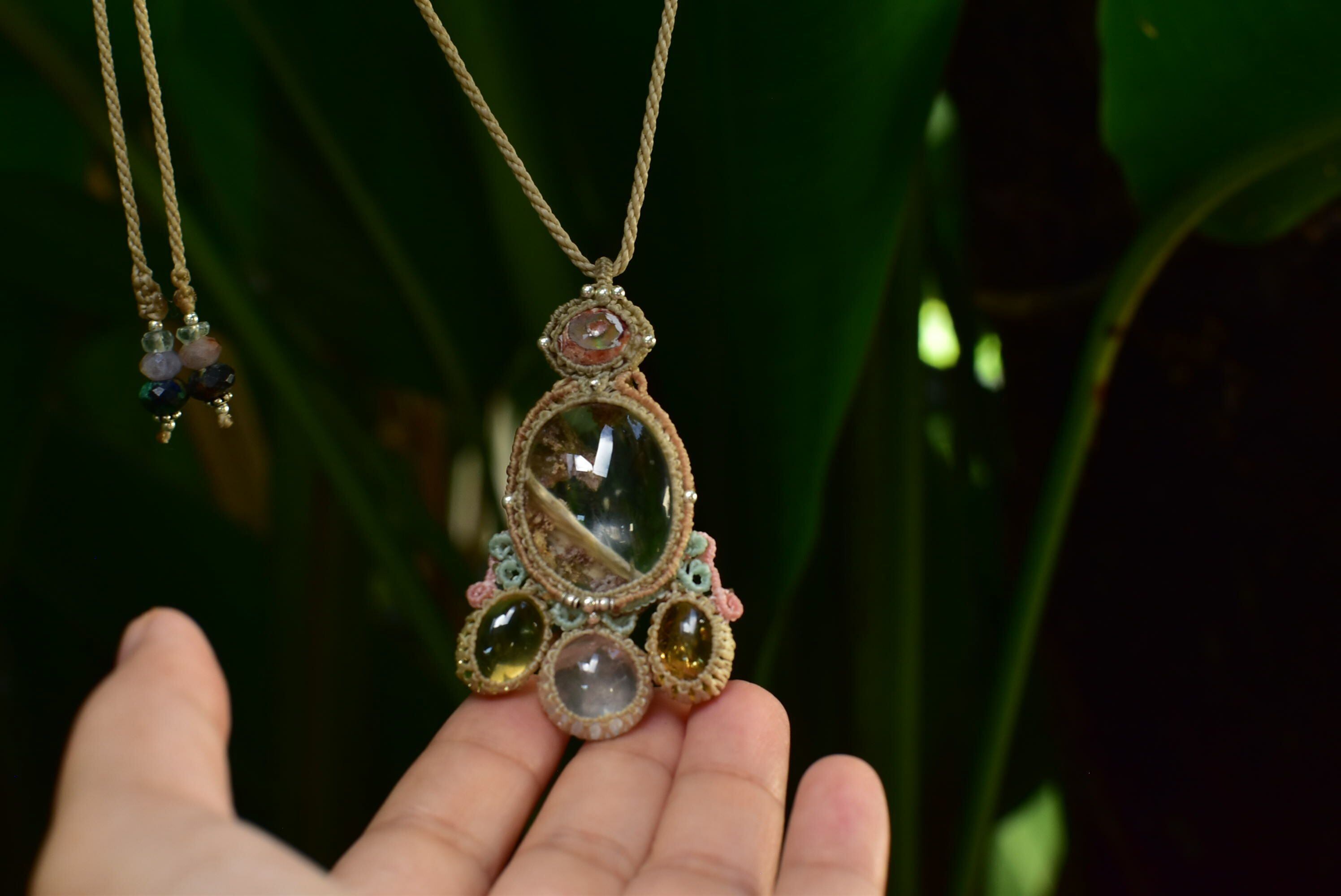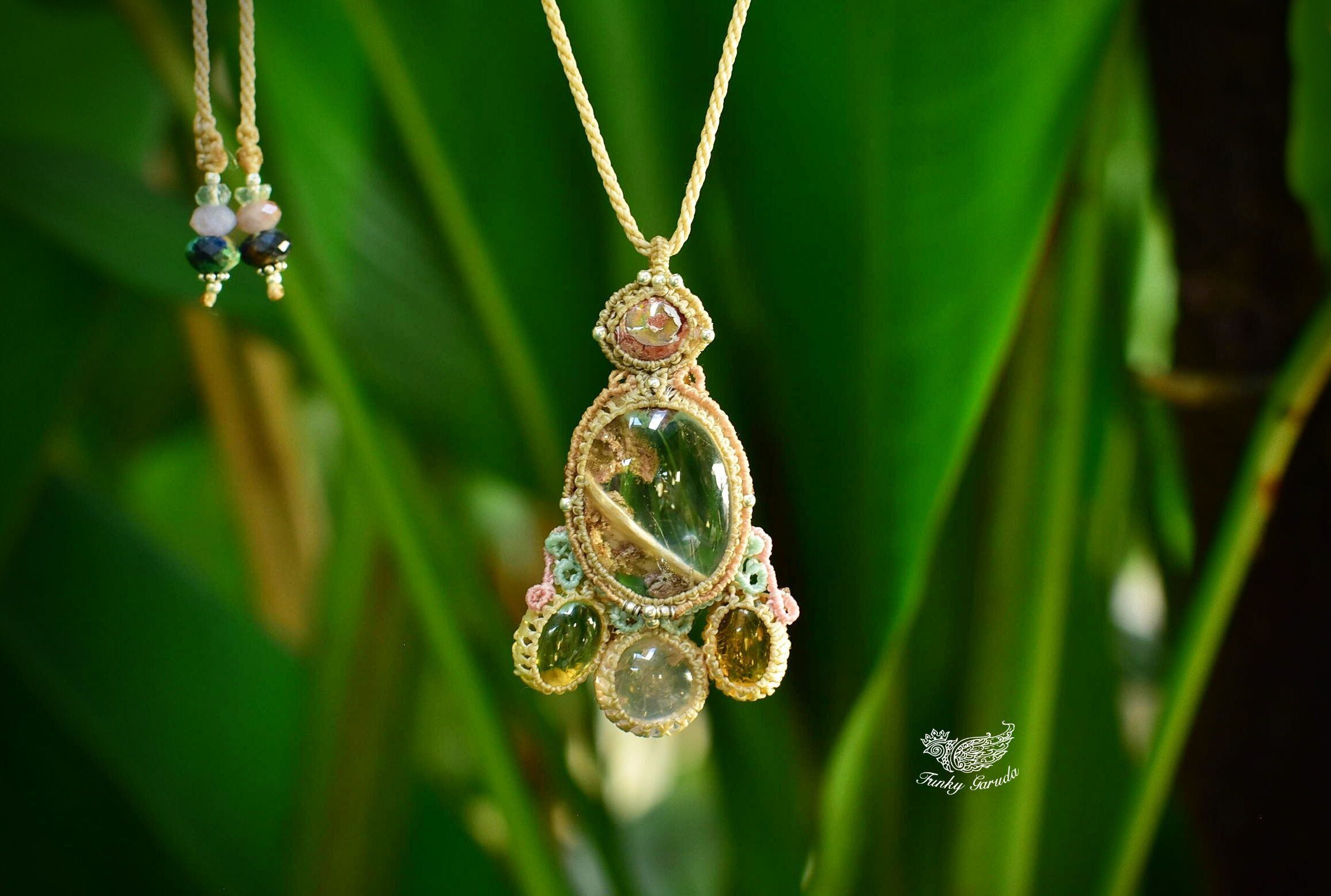 透明感と古代の奇跡★カンテラオパール+ガーデンクォーツ マクラメペンダントopal022