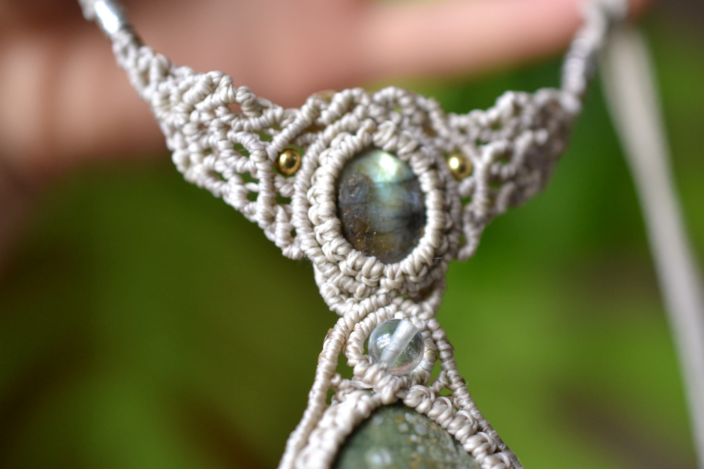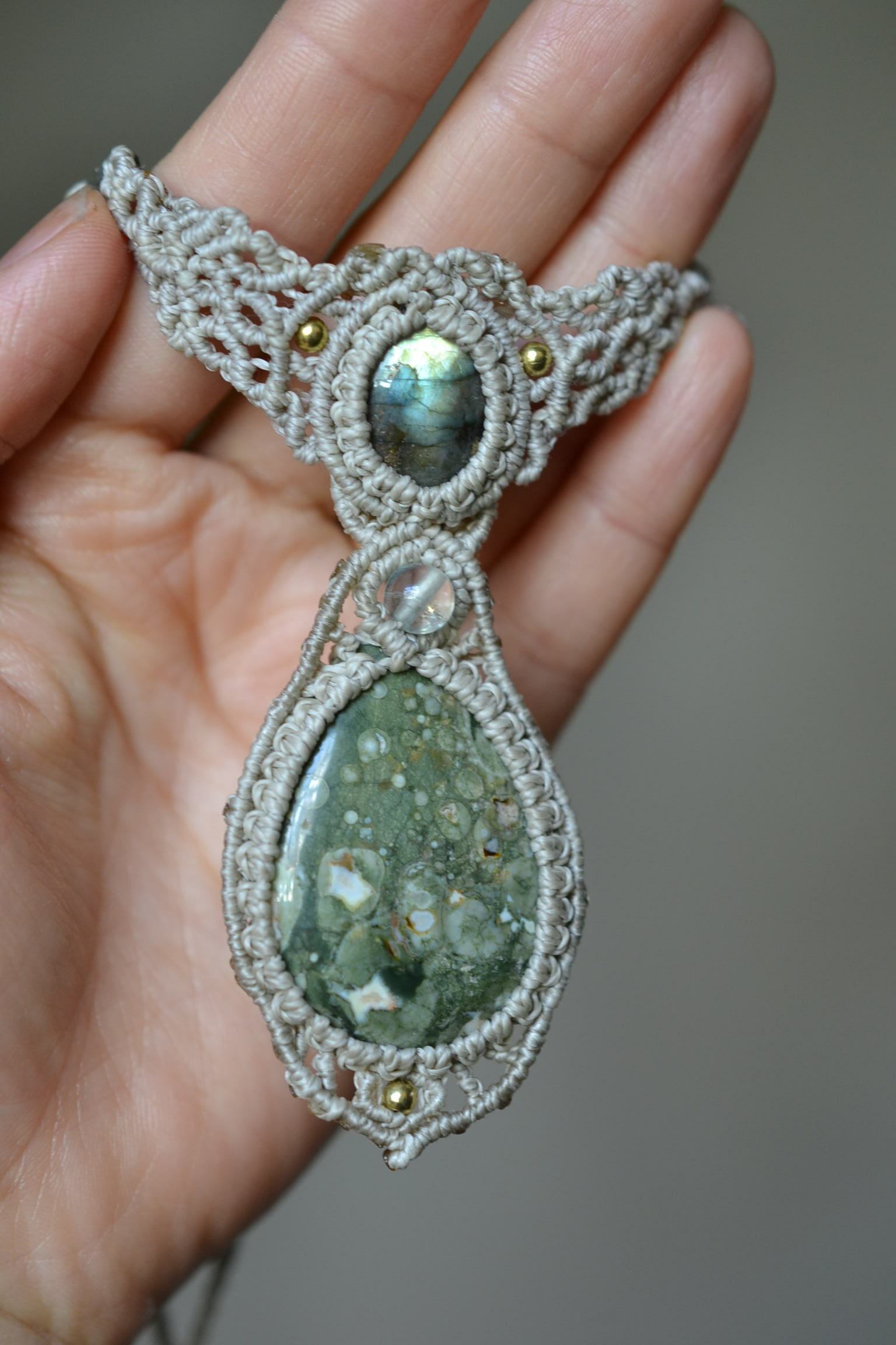 ゴージャス★ラブラドライト × オーシャンジャスパー マクラメネックレス