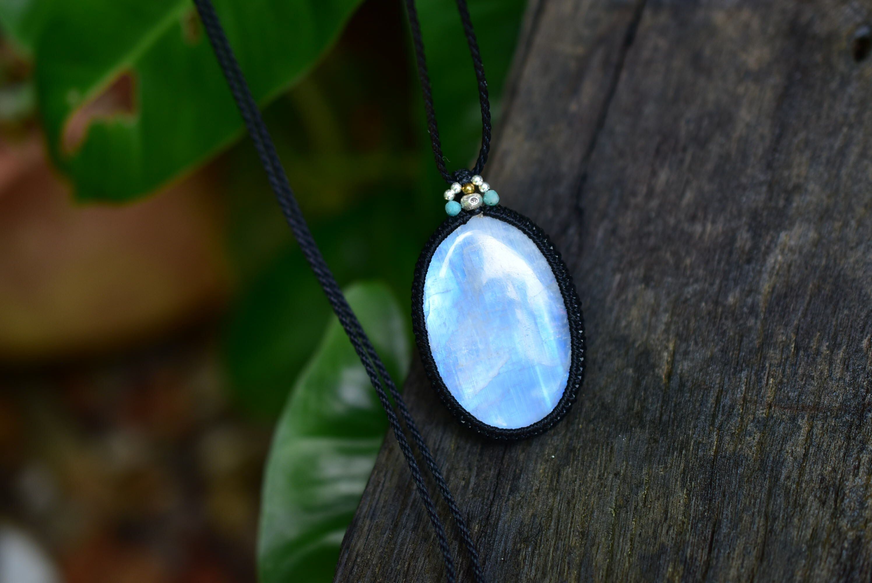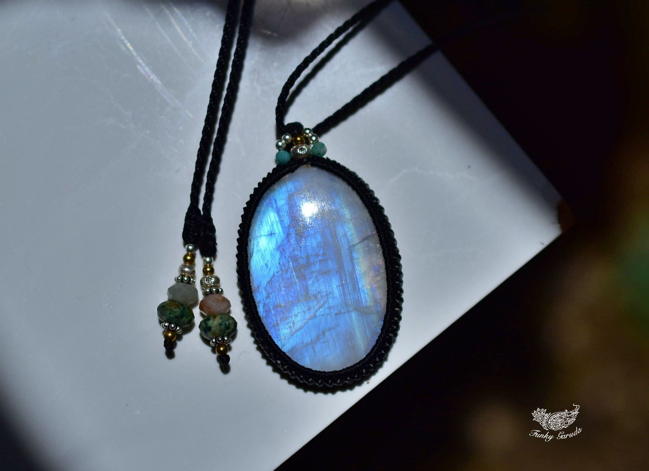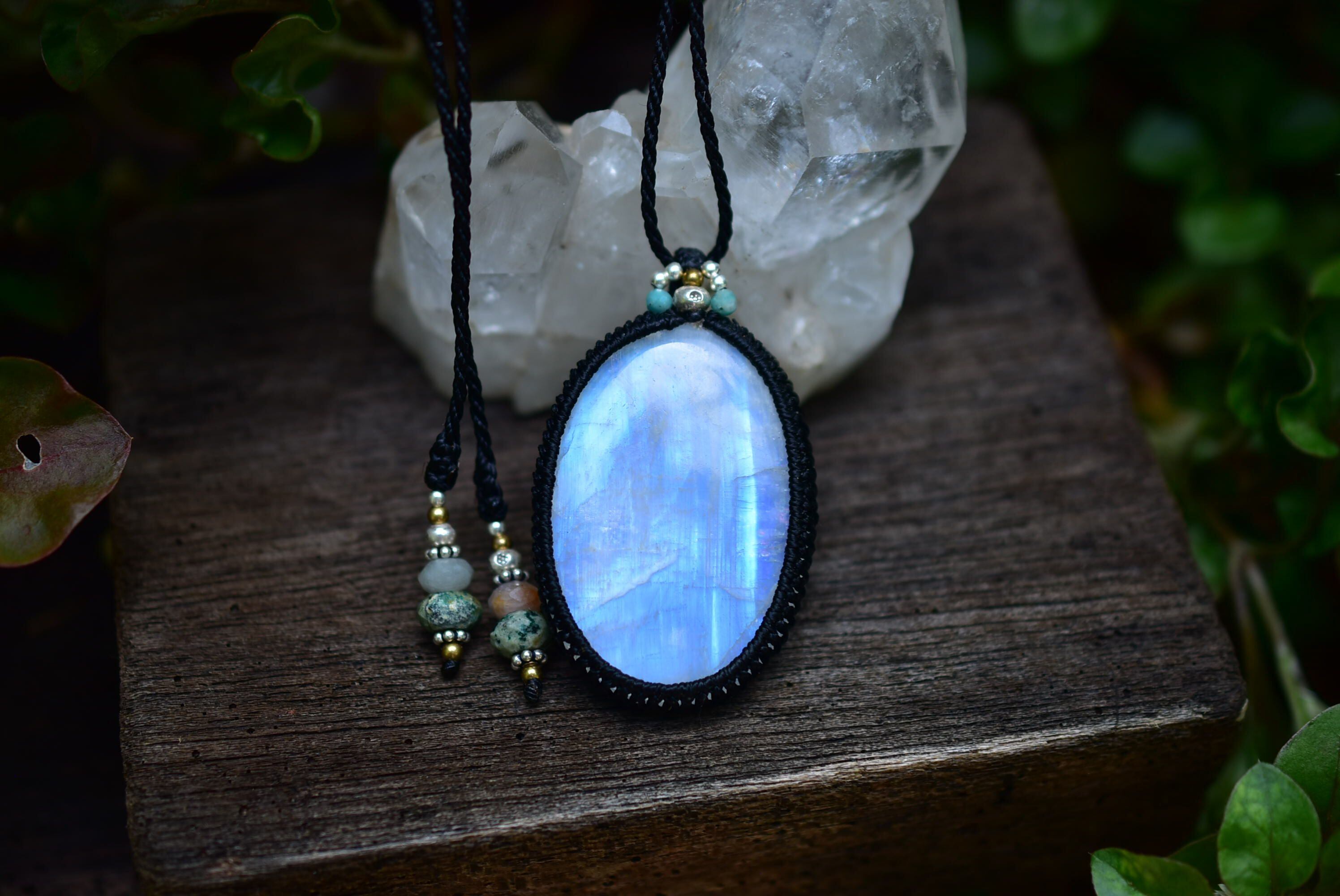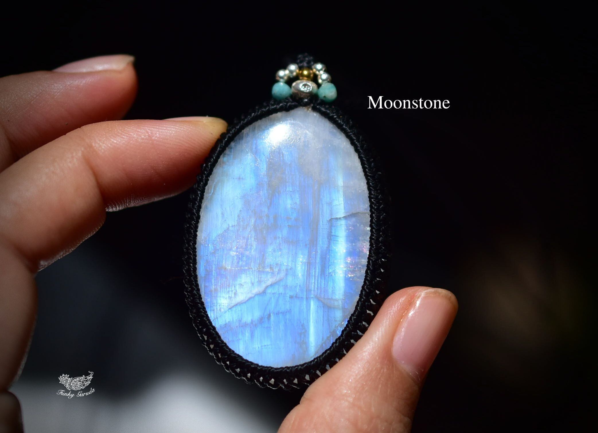 月とほんのり虹★高品質★レインボームーンストーン シンプルマクラメペンダント moony009