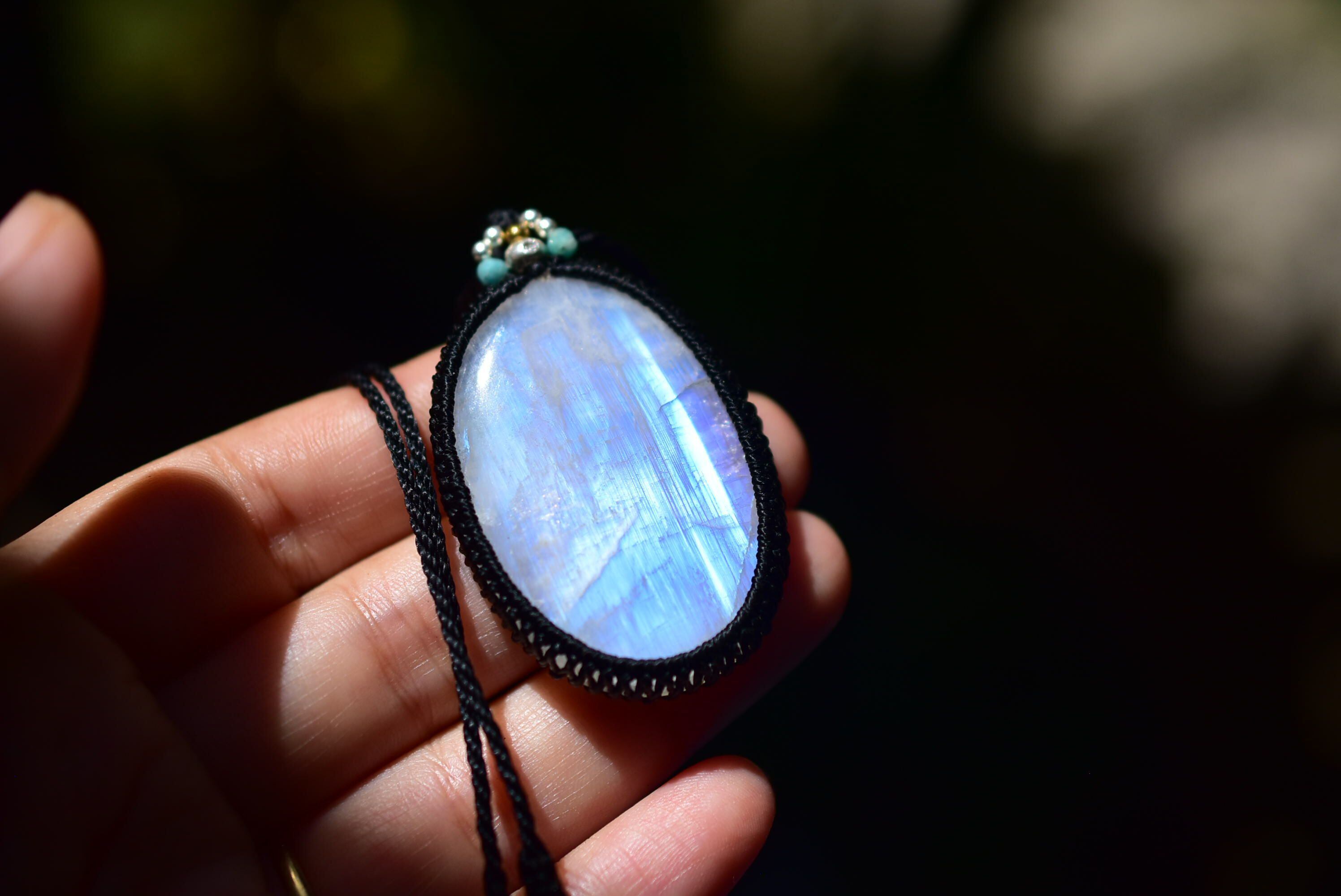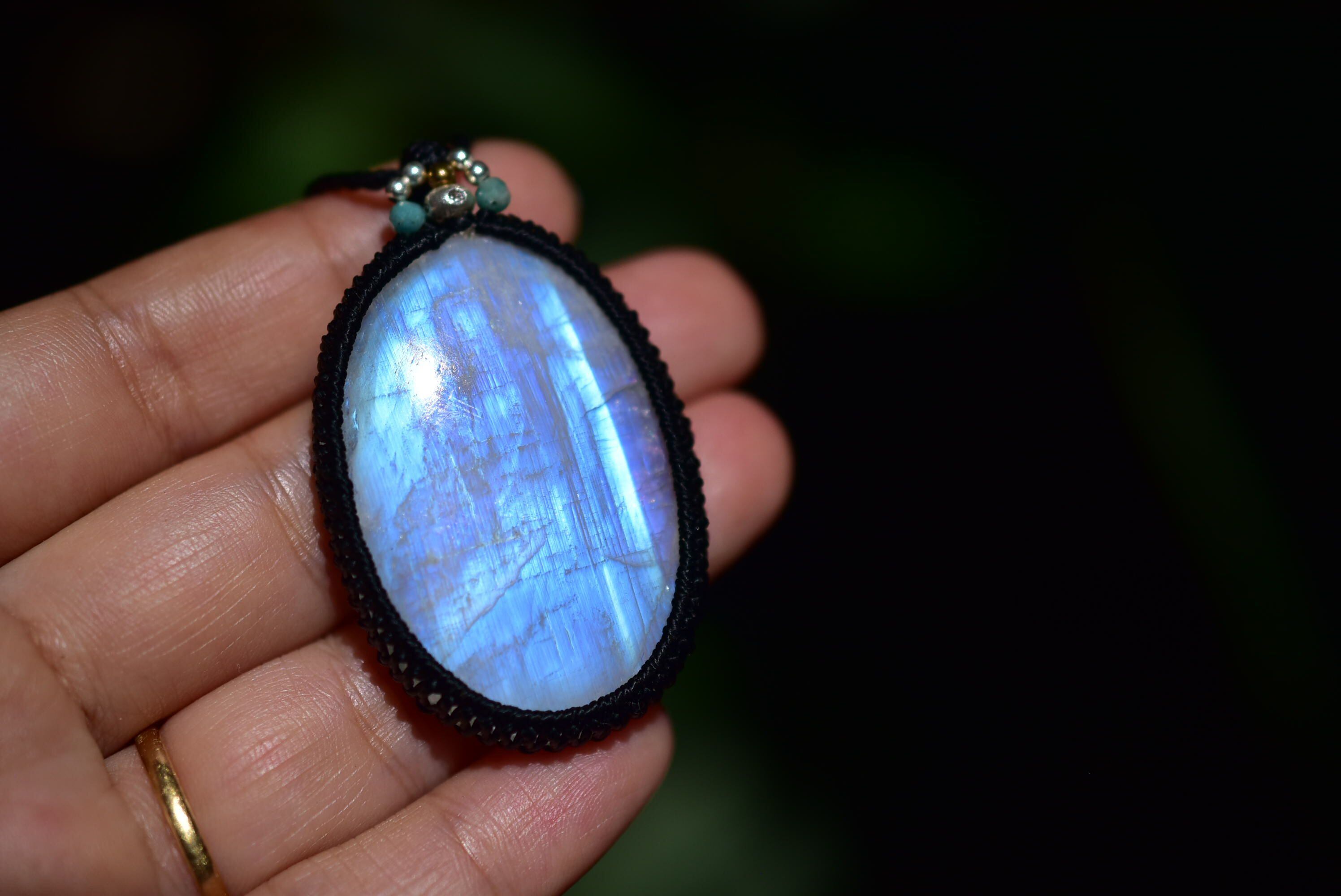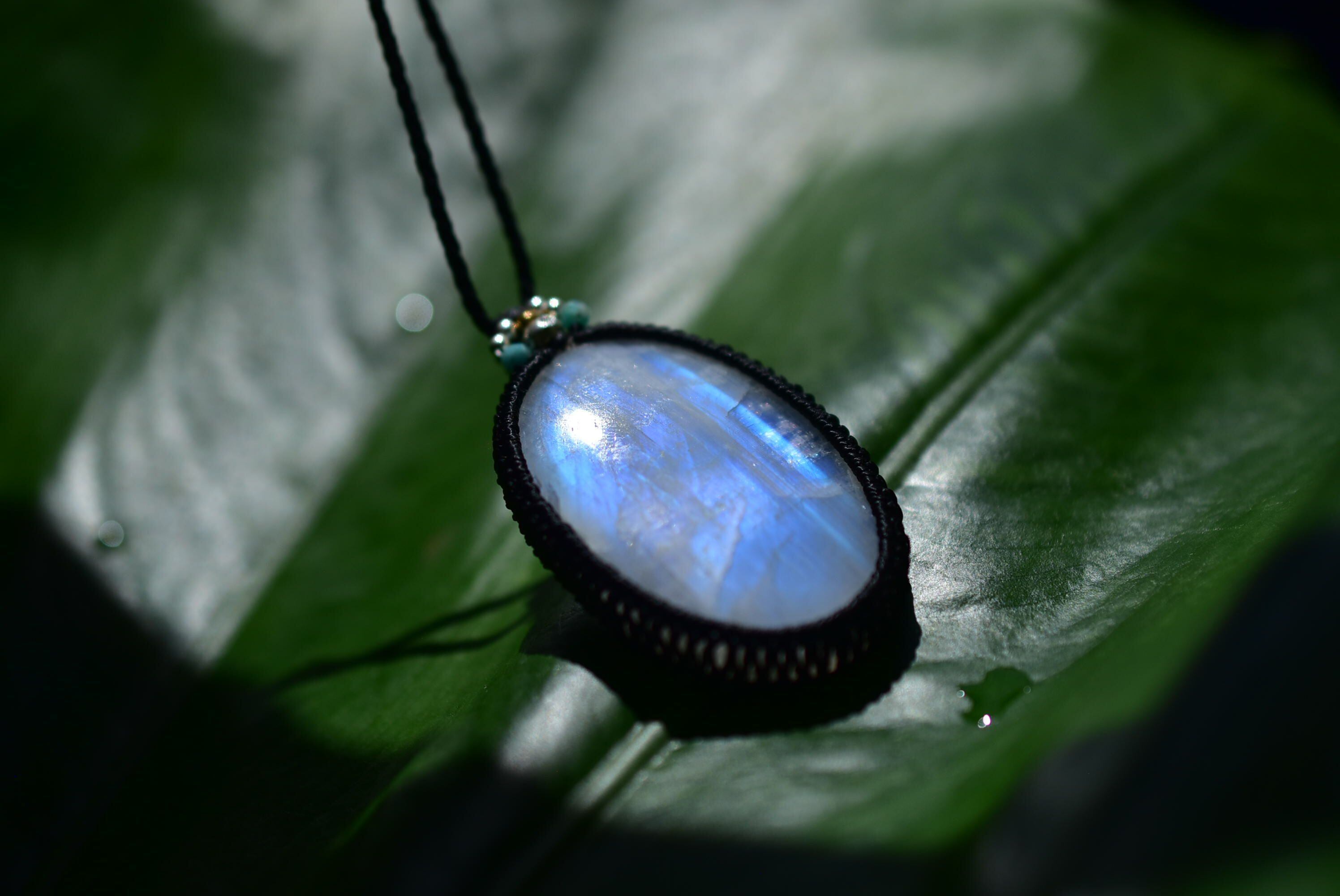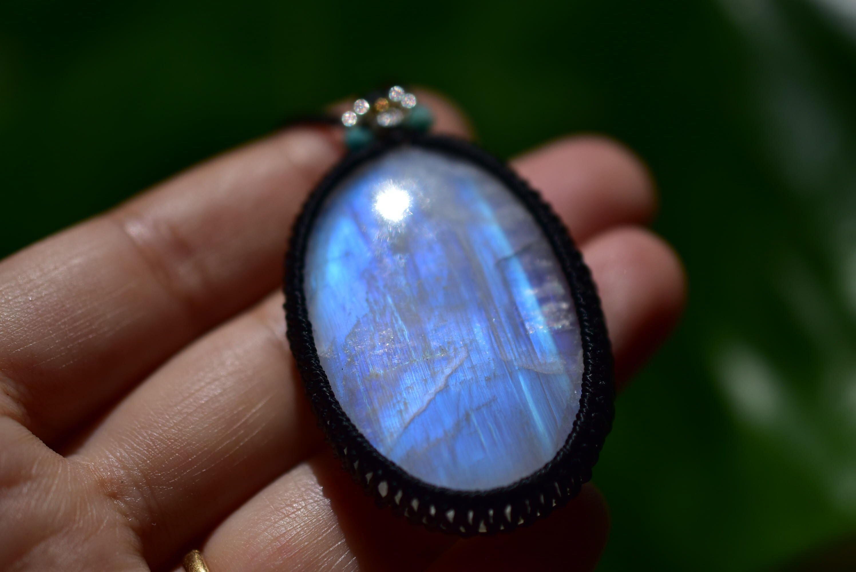 月とほんのり虹★高品質★レインボームーンストーン シンプルマクラメペンダント moony009
