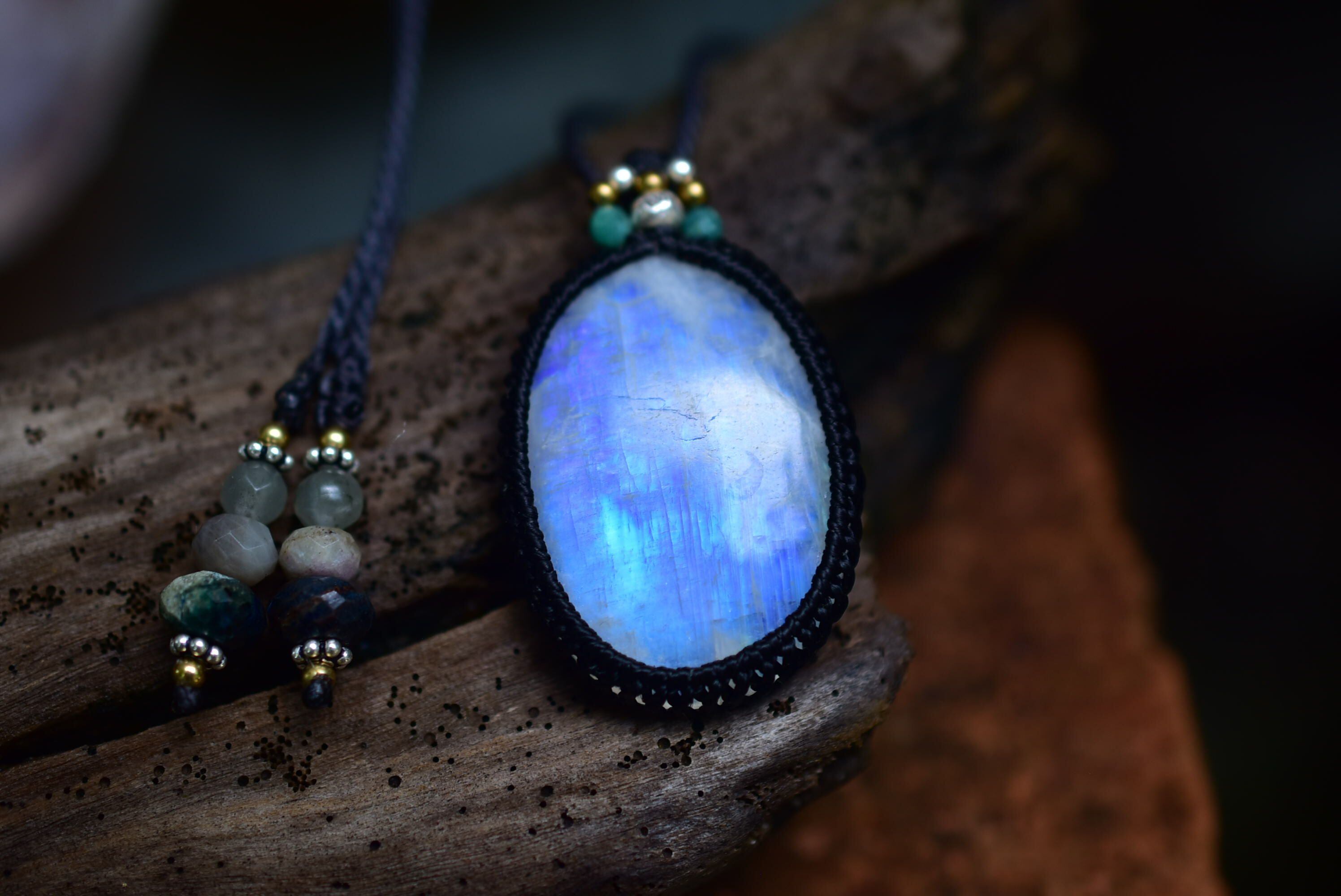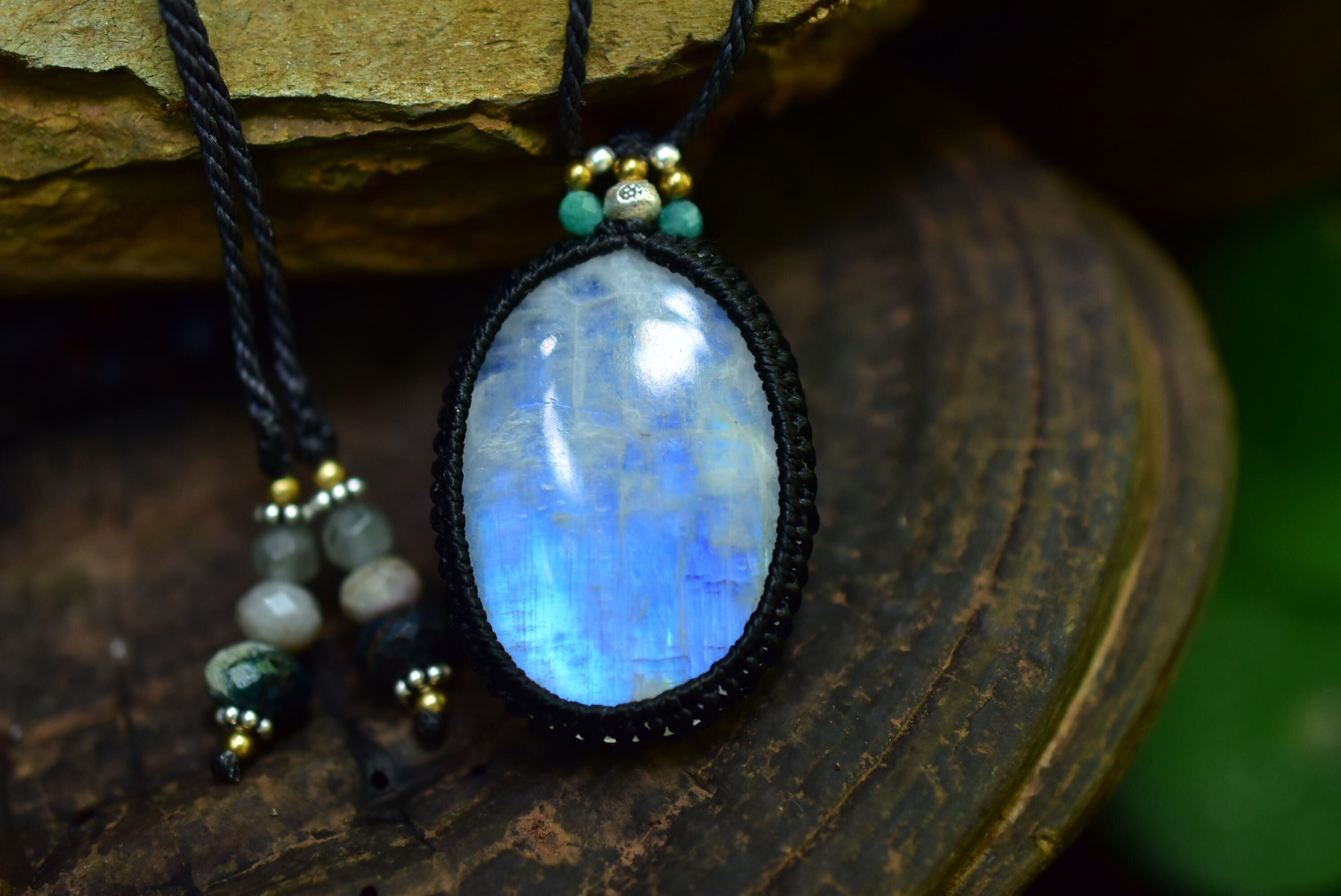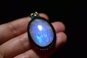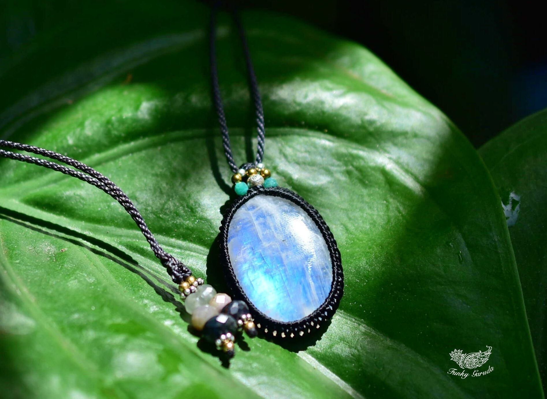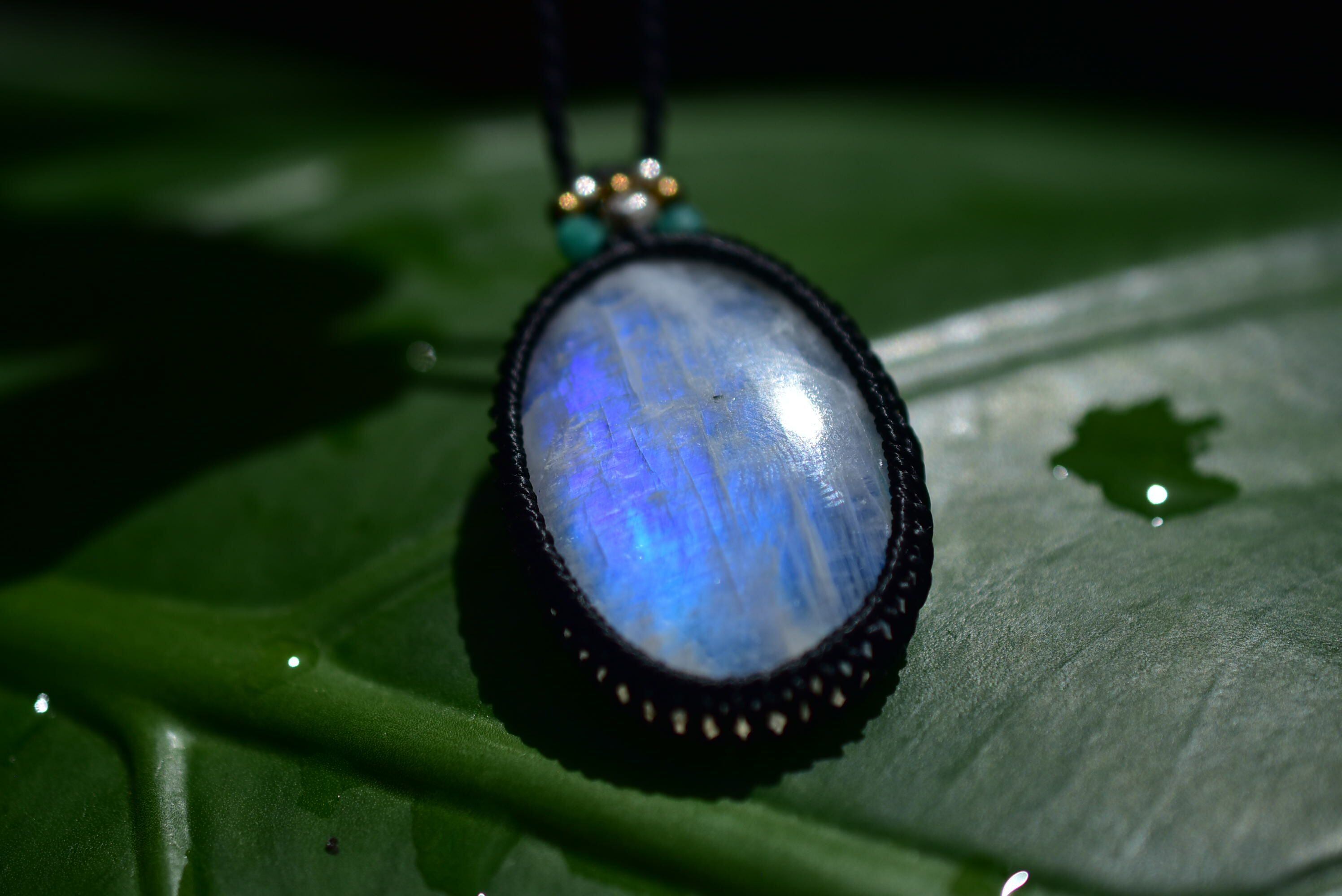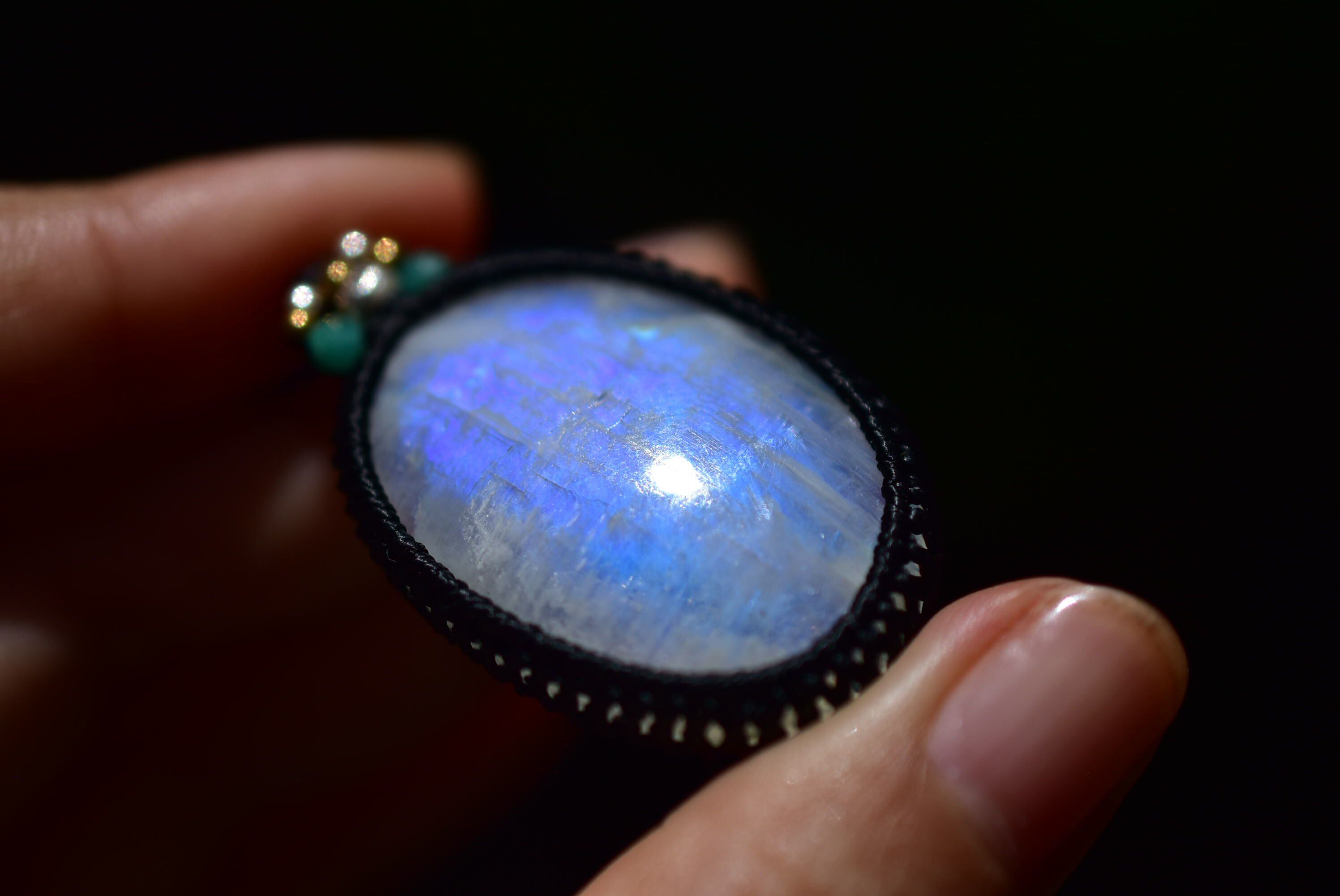 ブルーの月光★ムーンストーン シンプルマクラメペンダント moony010