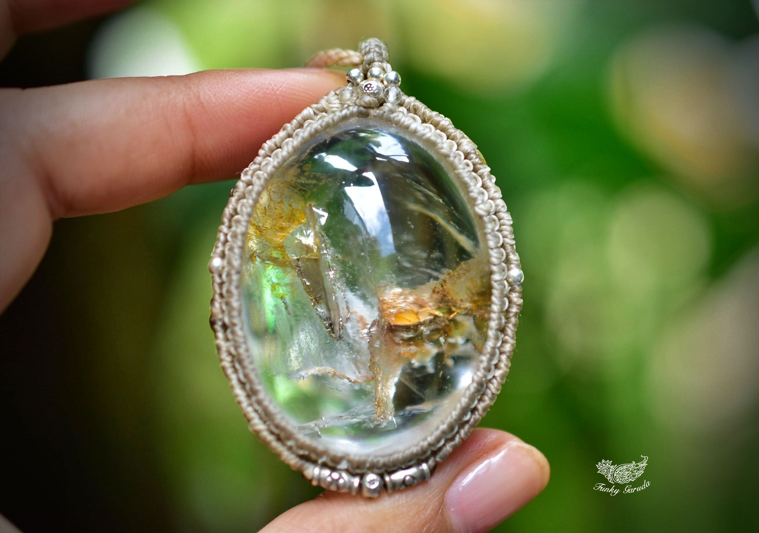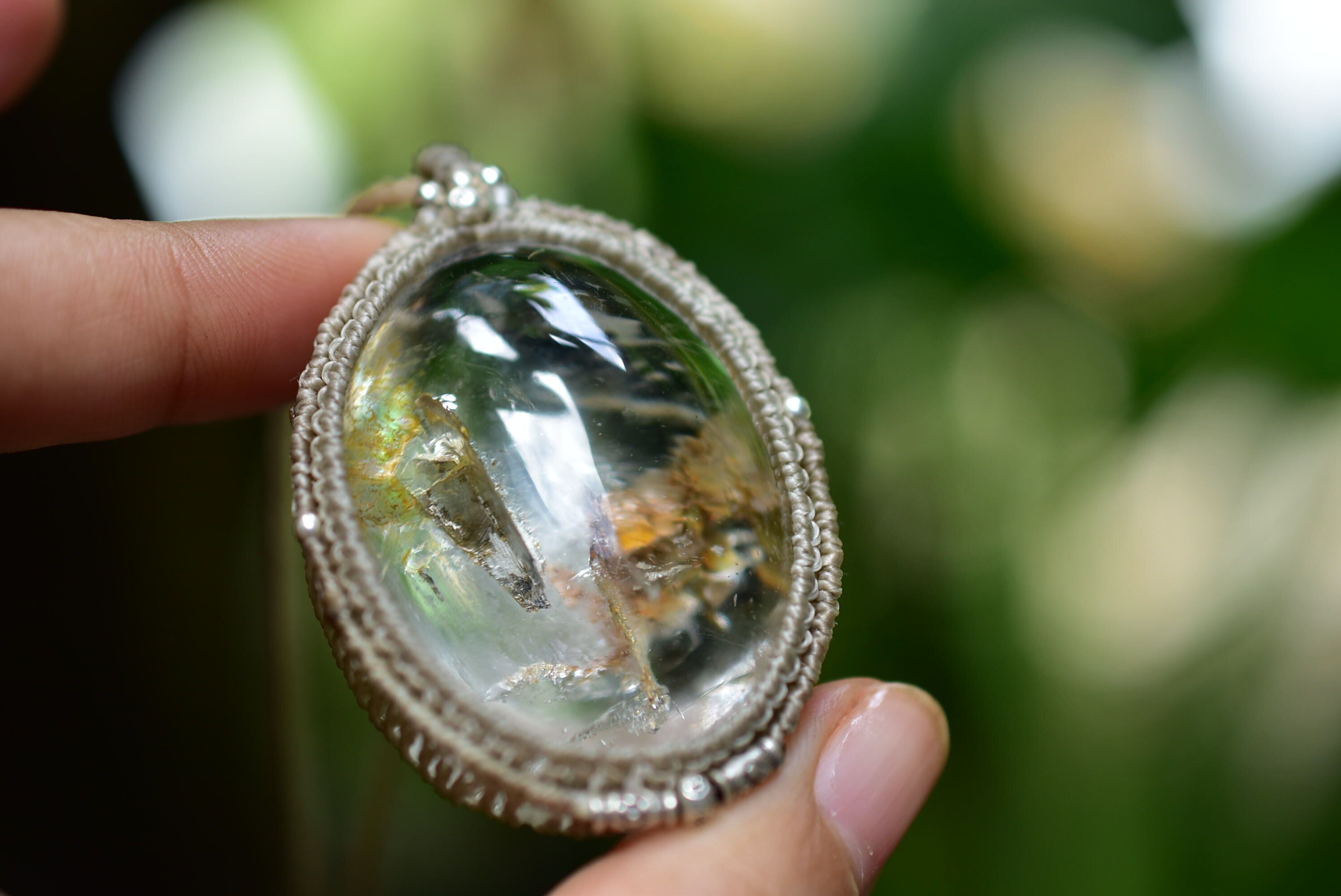 鏡の世界★大粒★クォーツインクォーツ マクラメペンダントgarm133