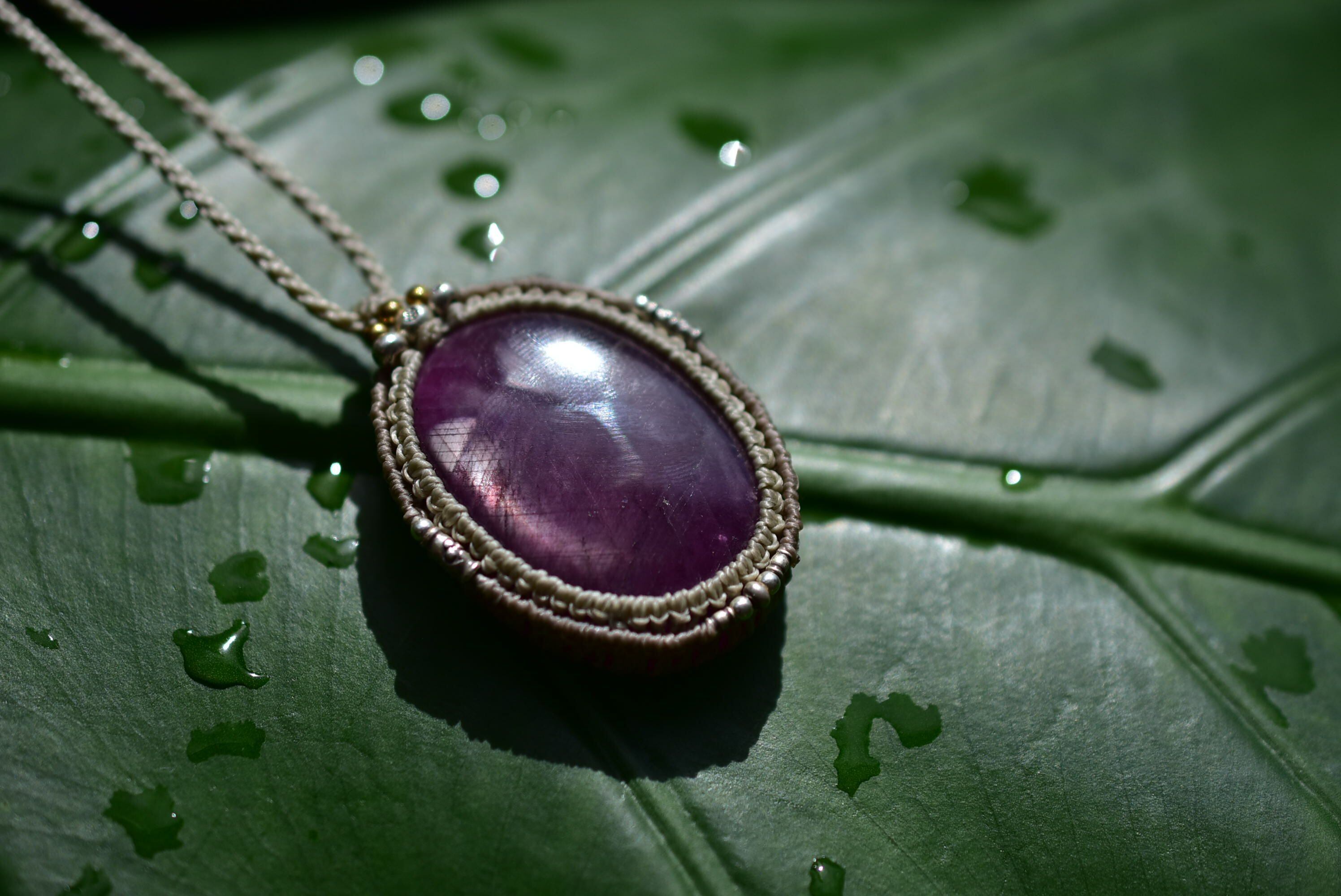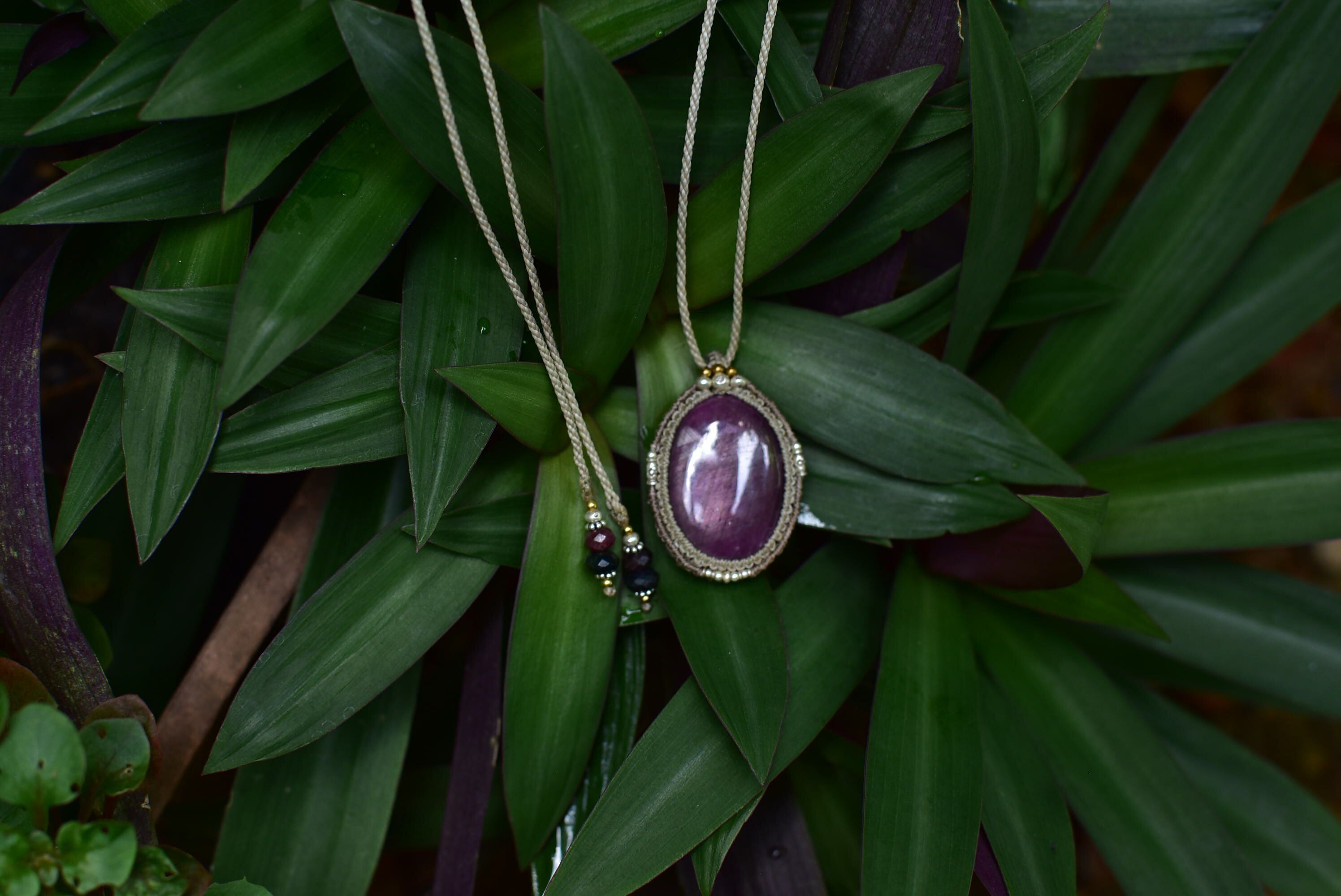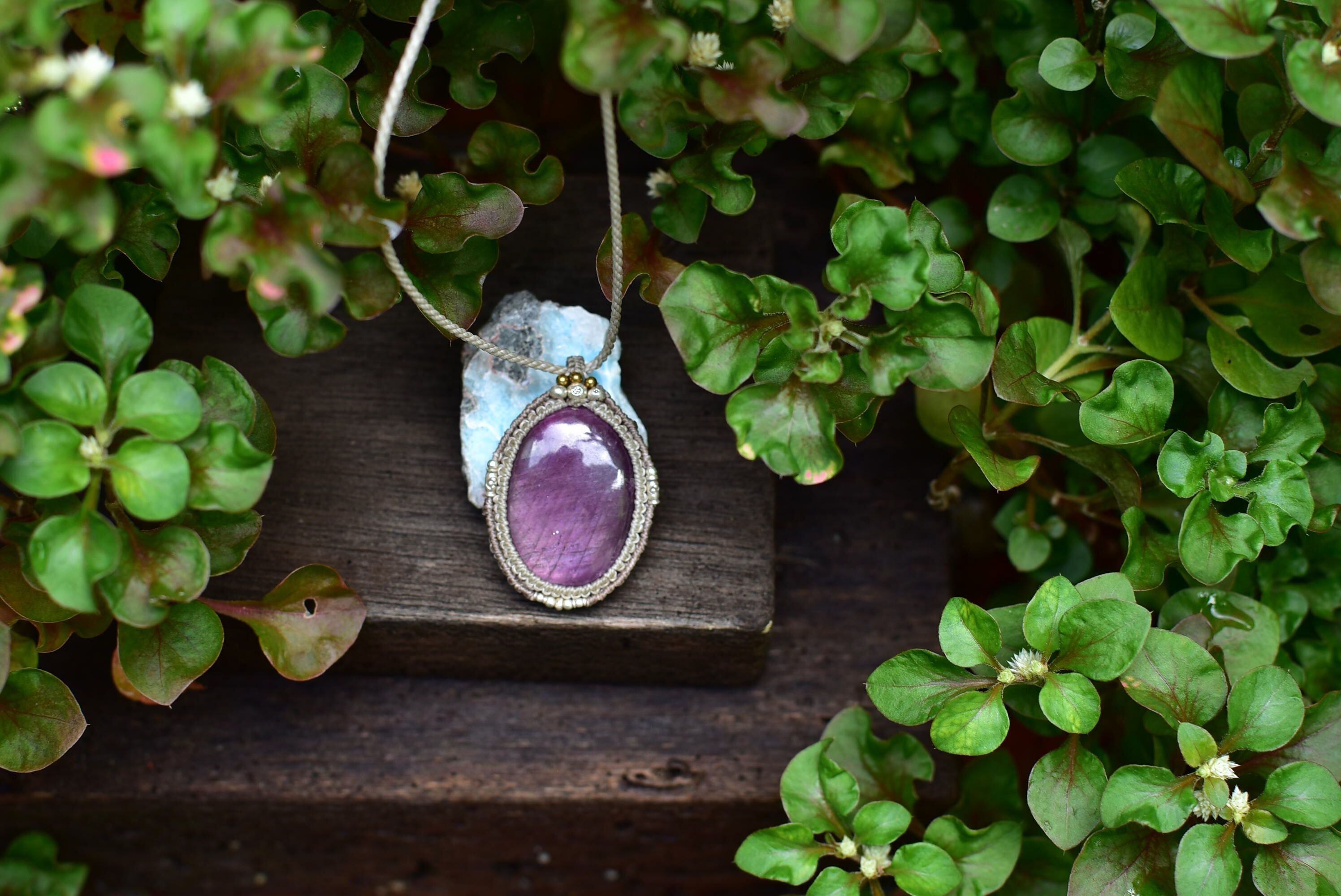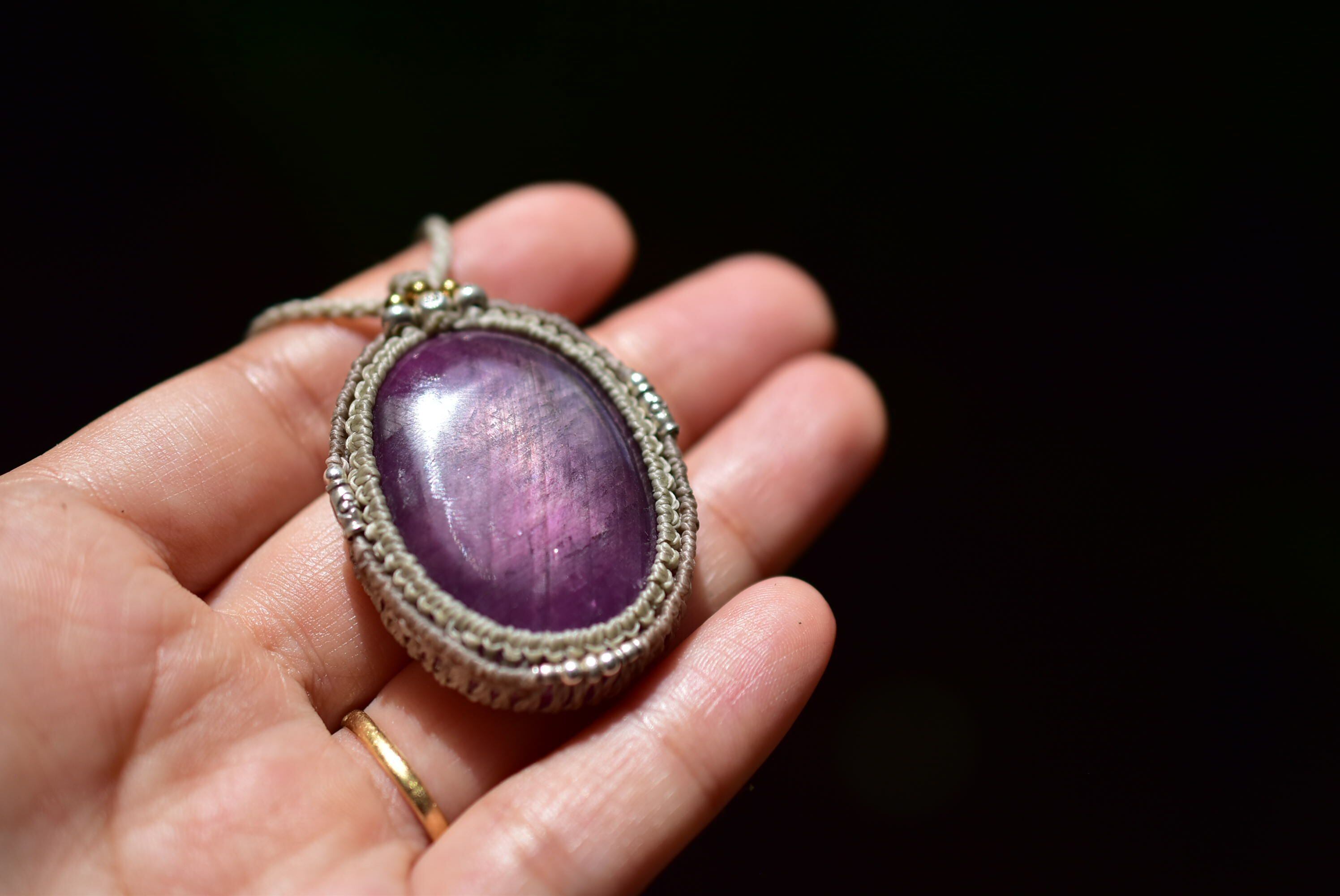 マクラメ編み装飾を施し、ペンダントに仕上げました。
