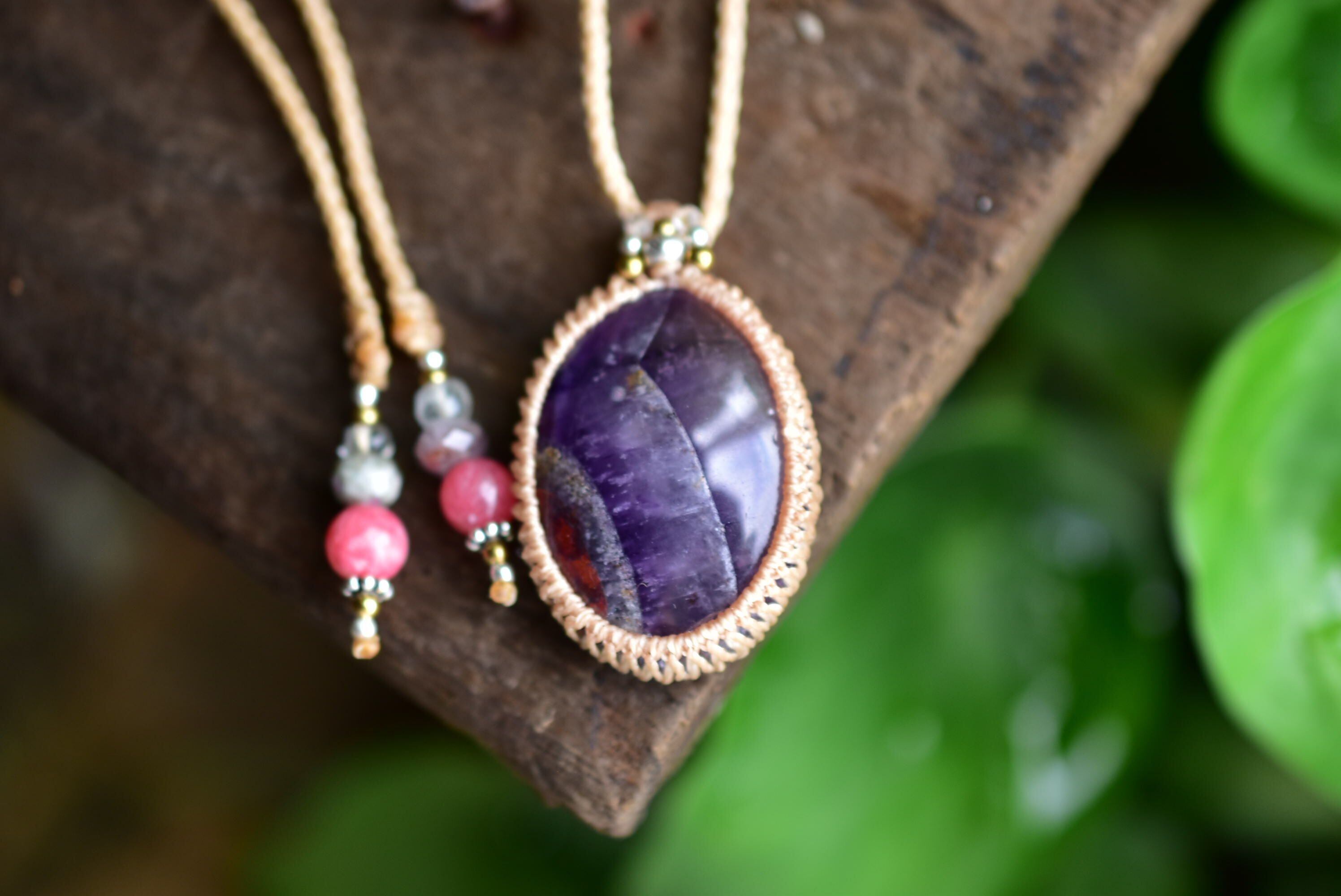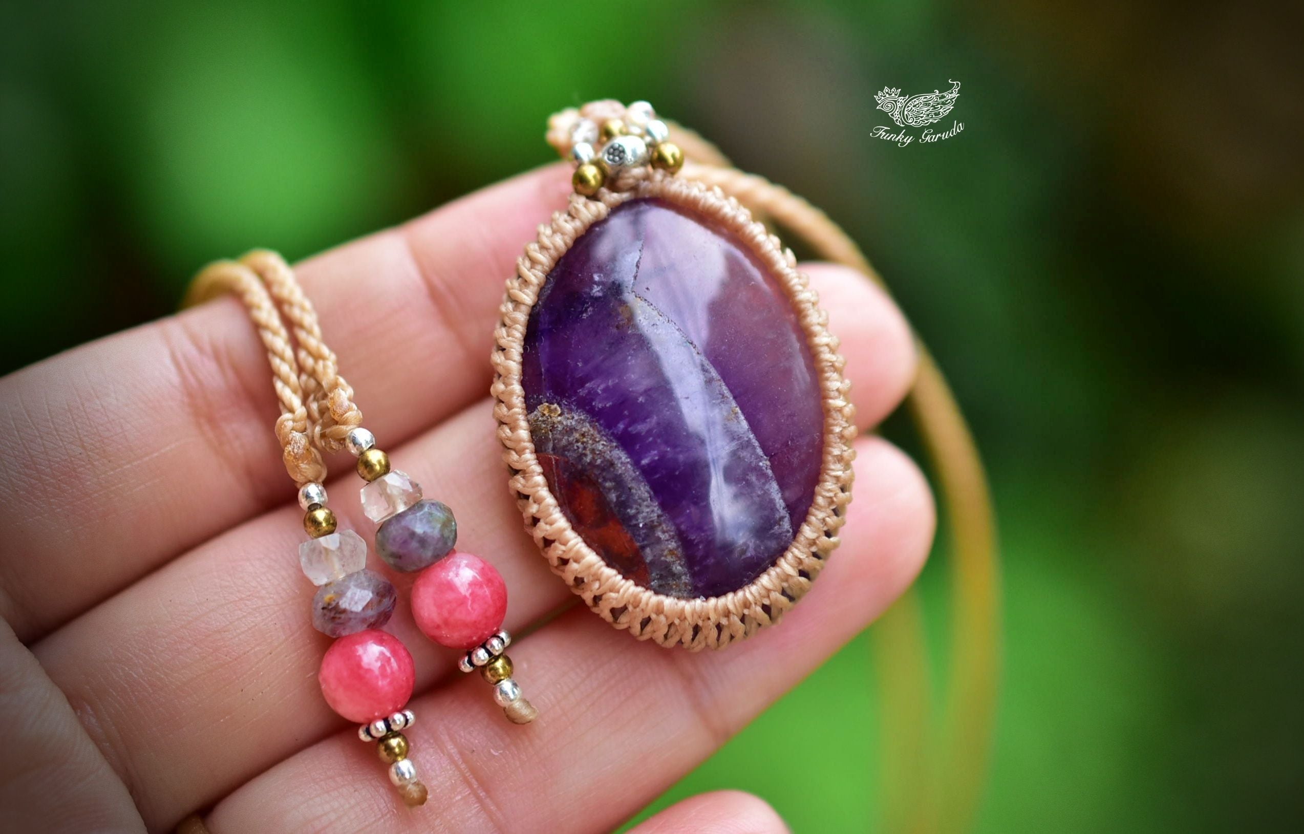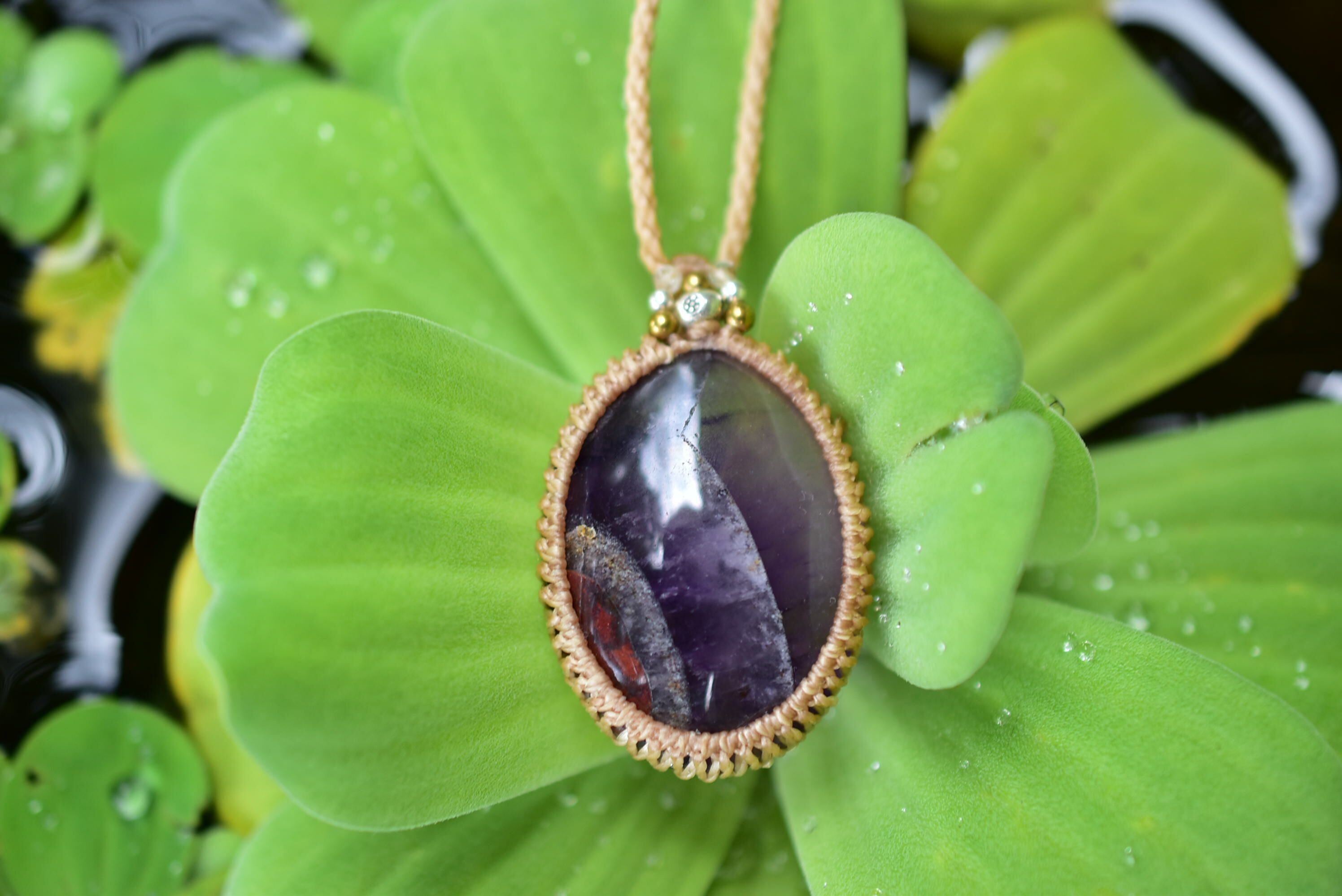 優艶なパープル★ケープアメジスト マクラメペンダント amey002