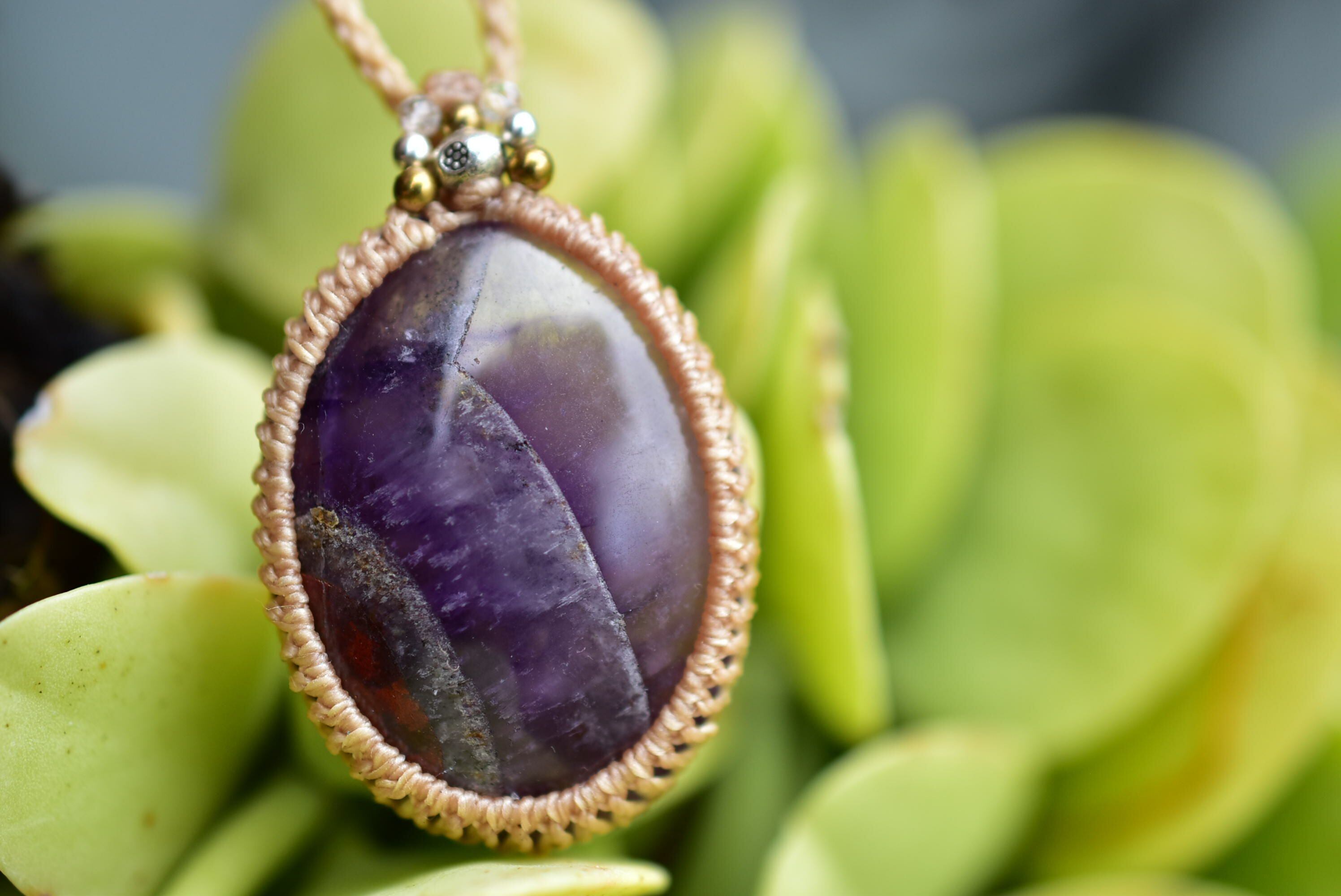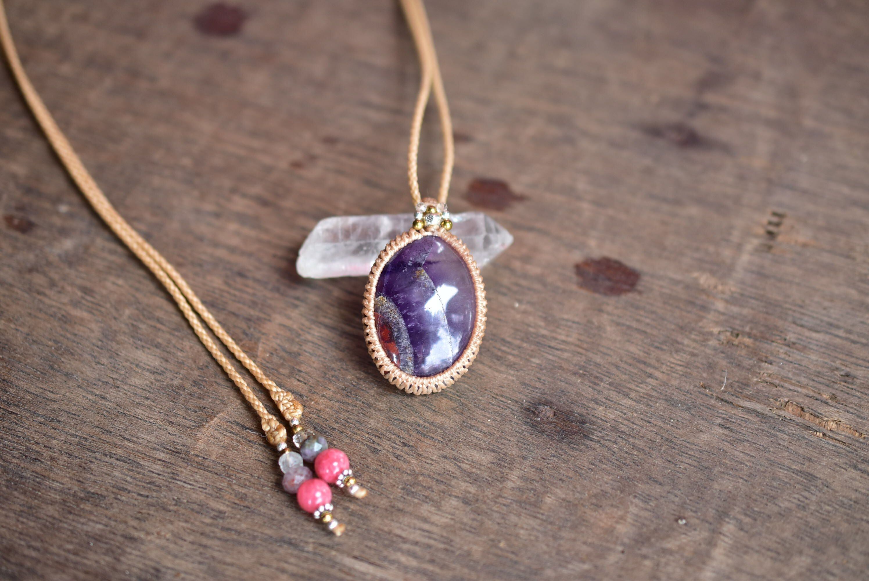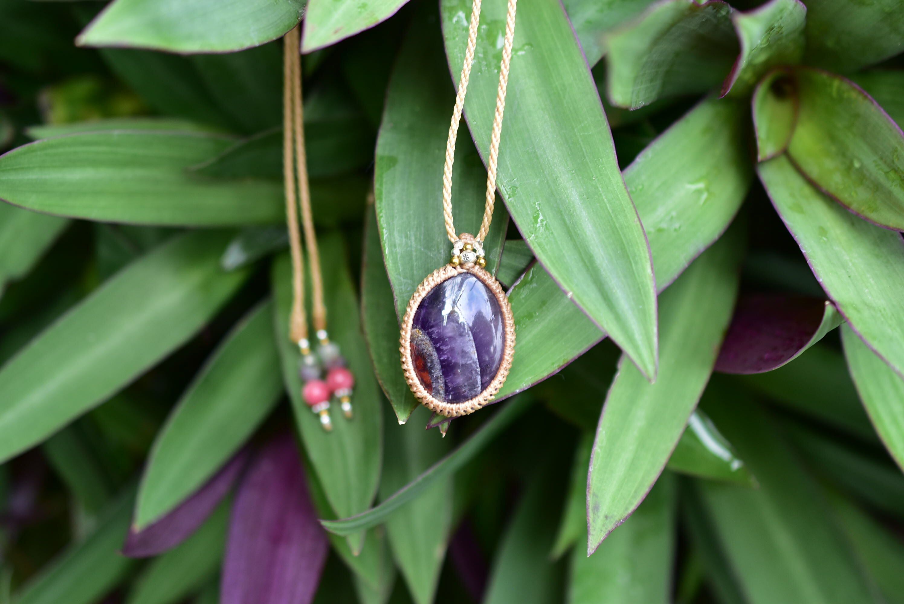 優艶なパープル★ケープアメジスト マクラメペンダント amey002