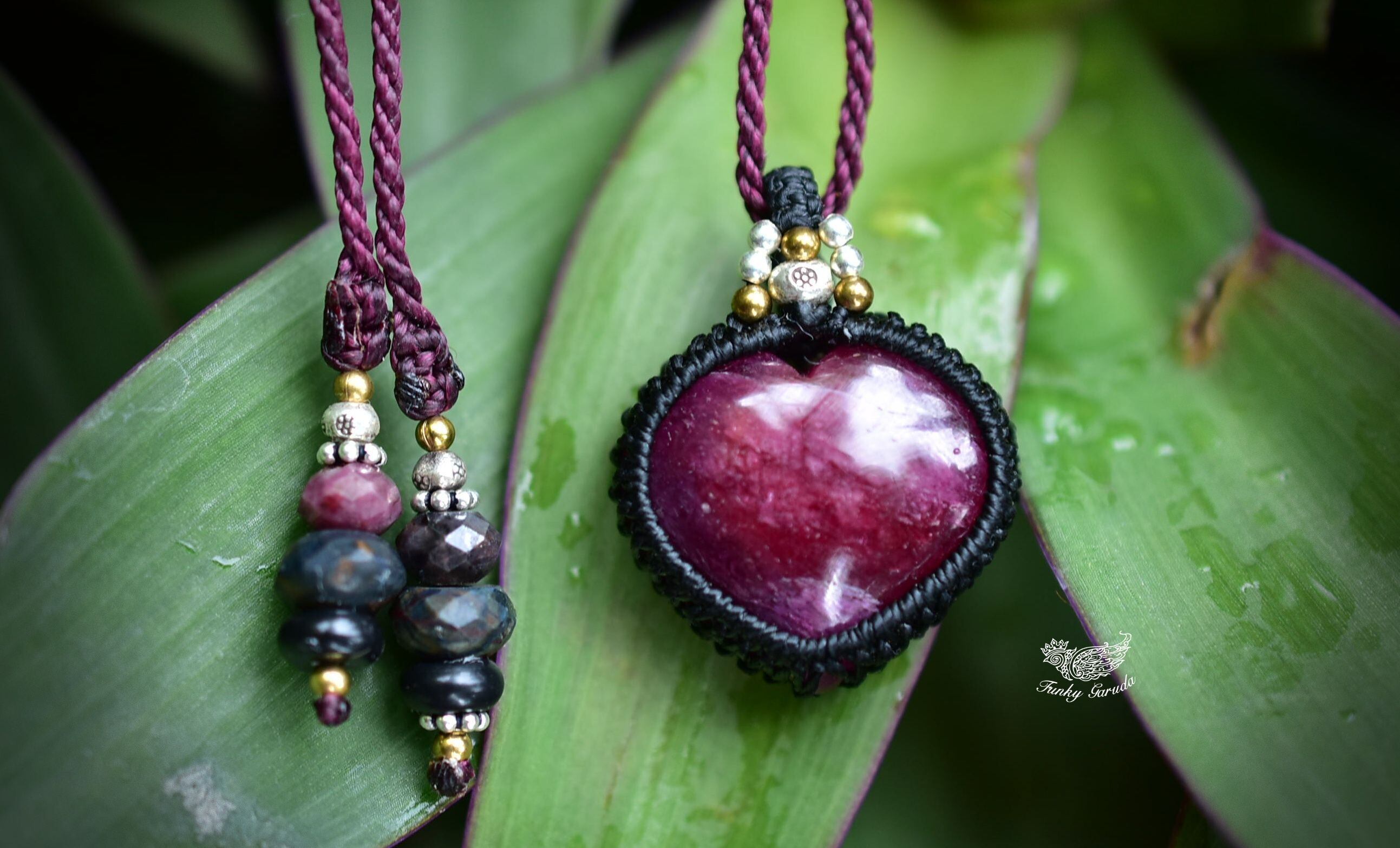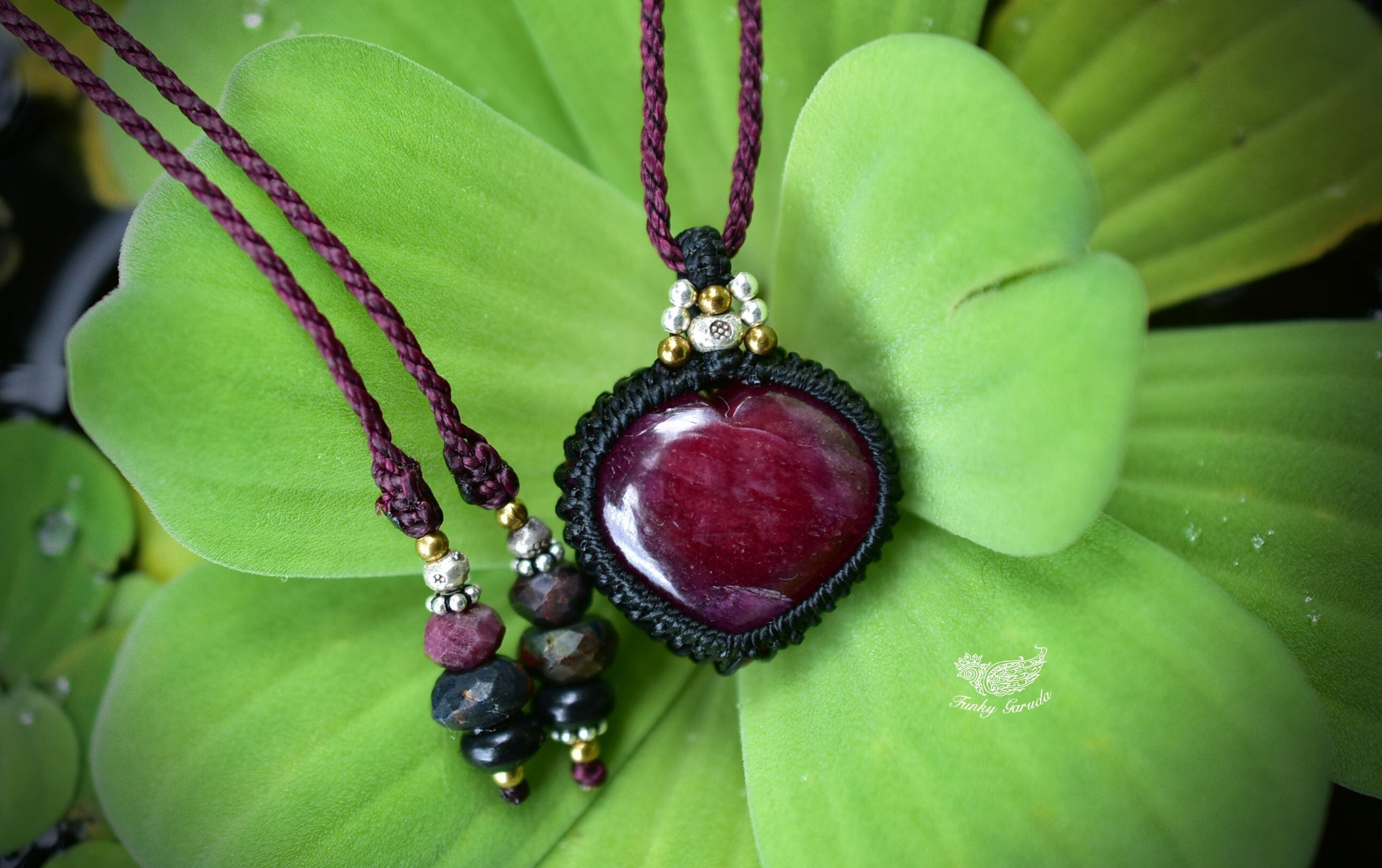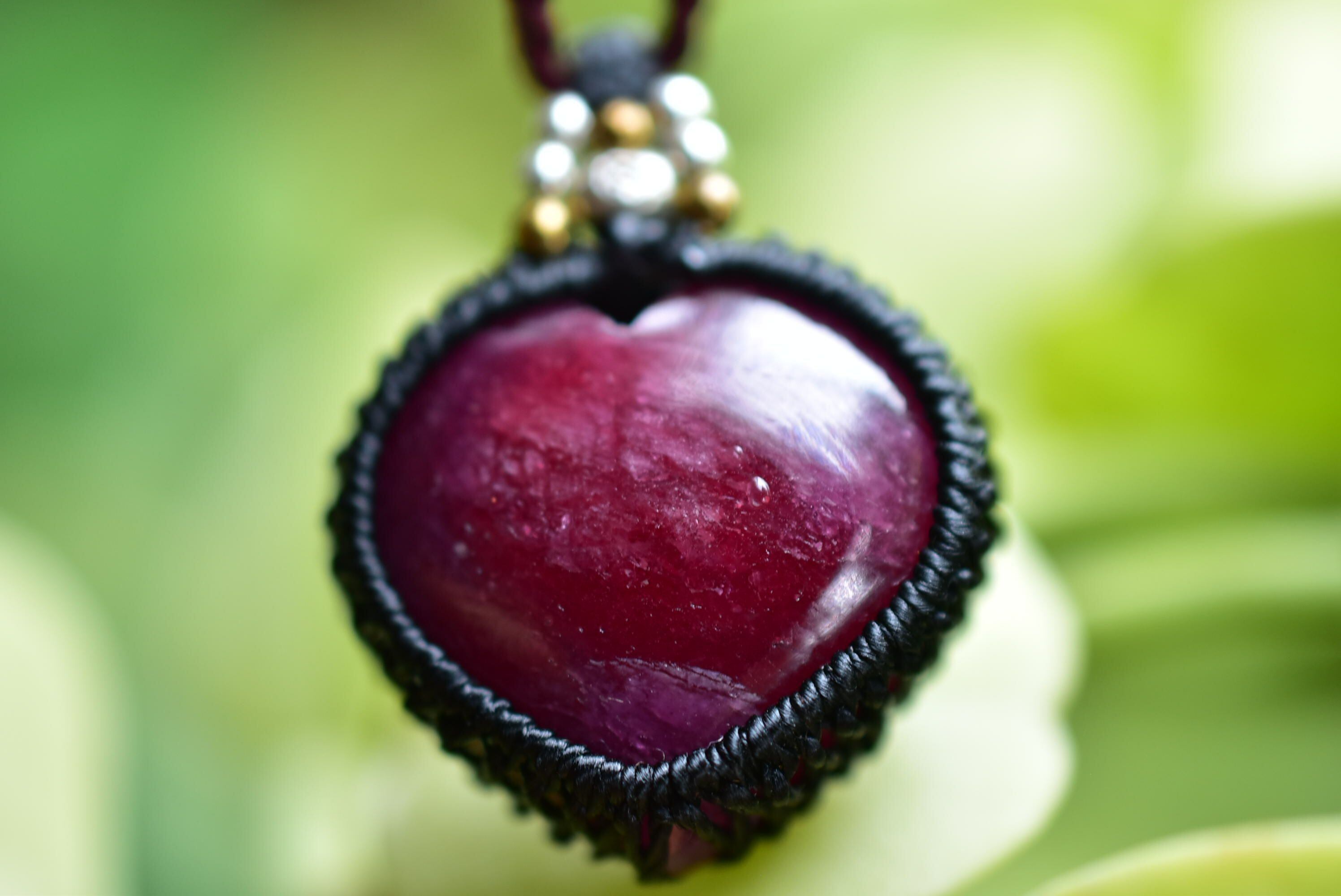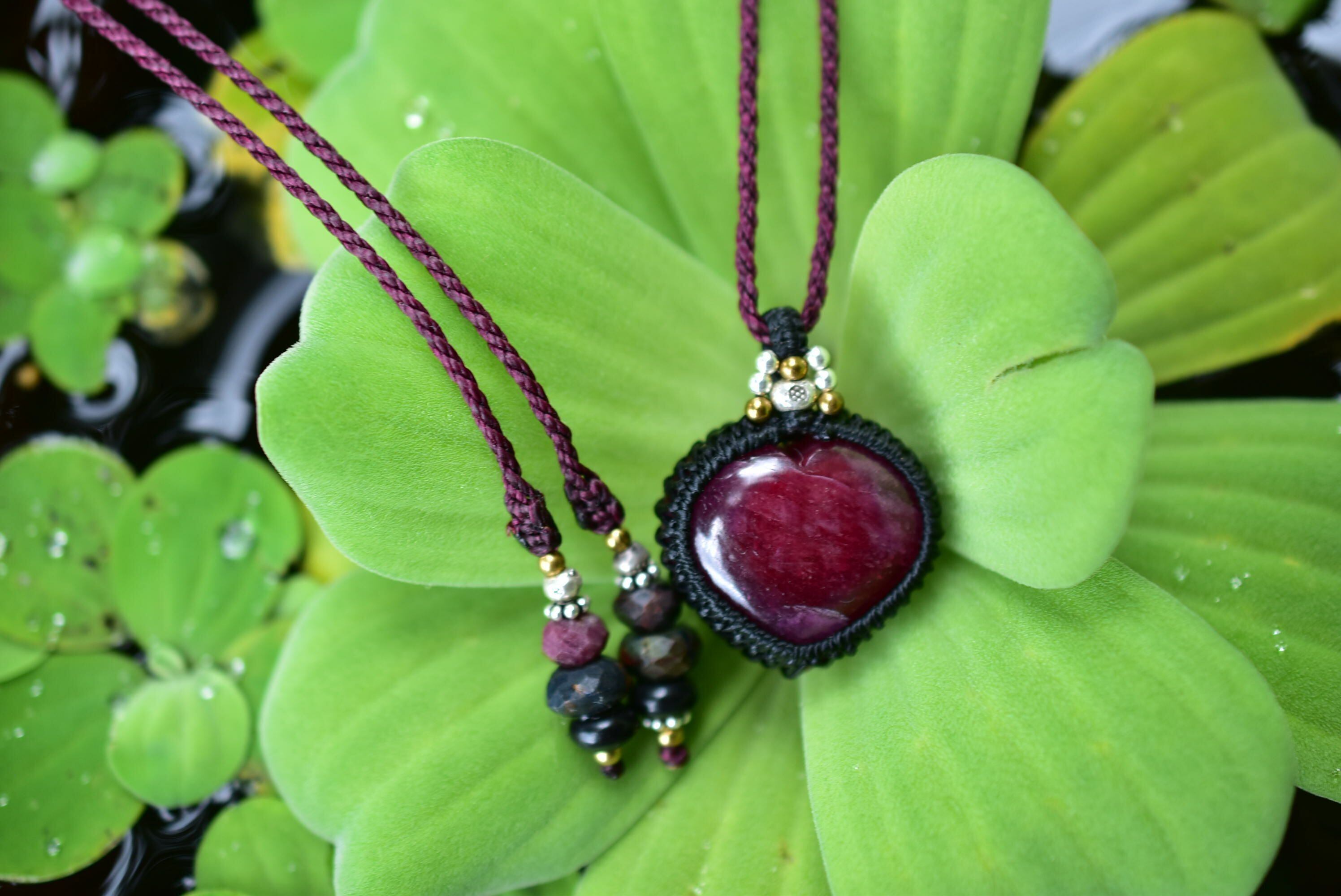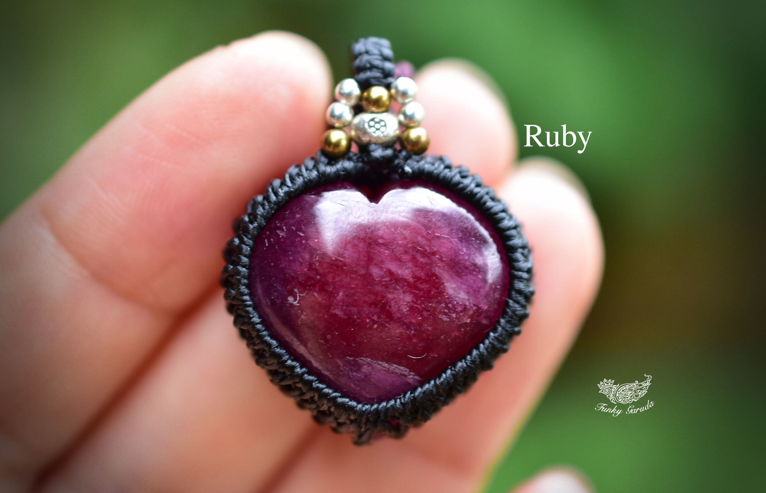 高品質★ハート型★ルビー シンプルマクラメペンダント rubyy015