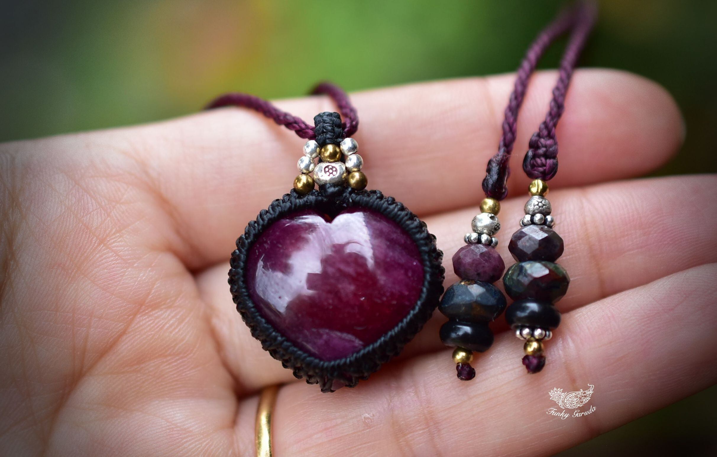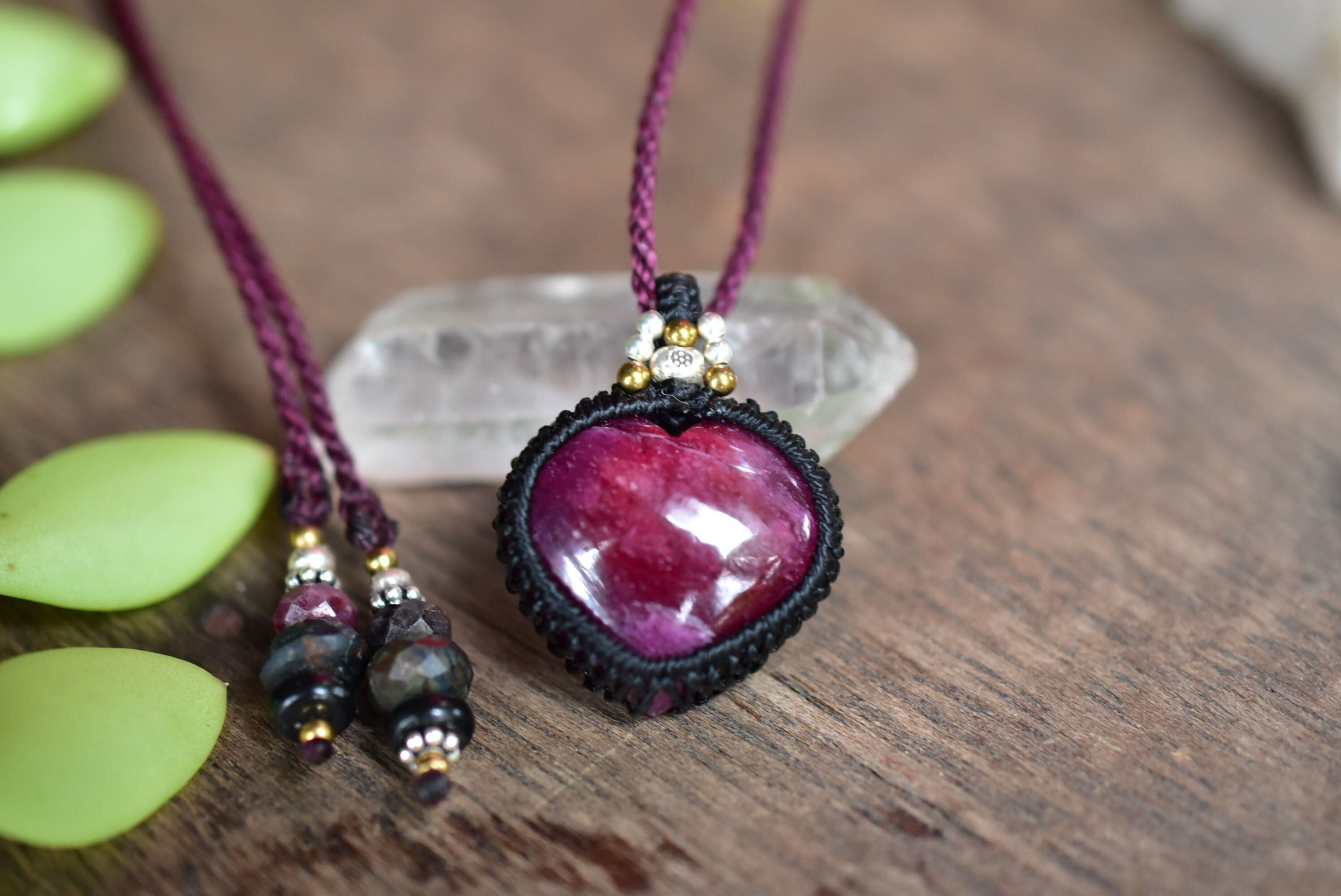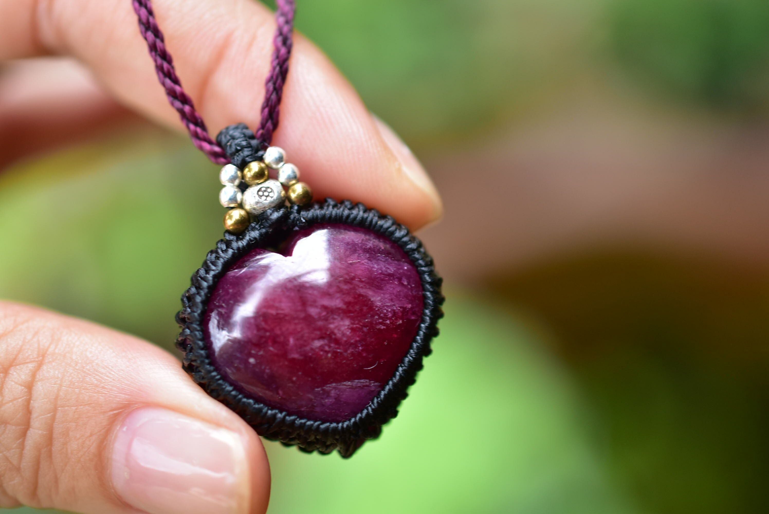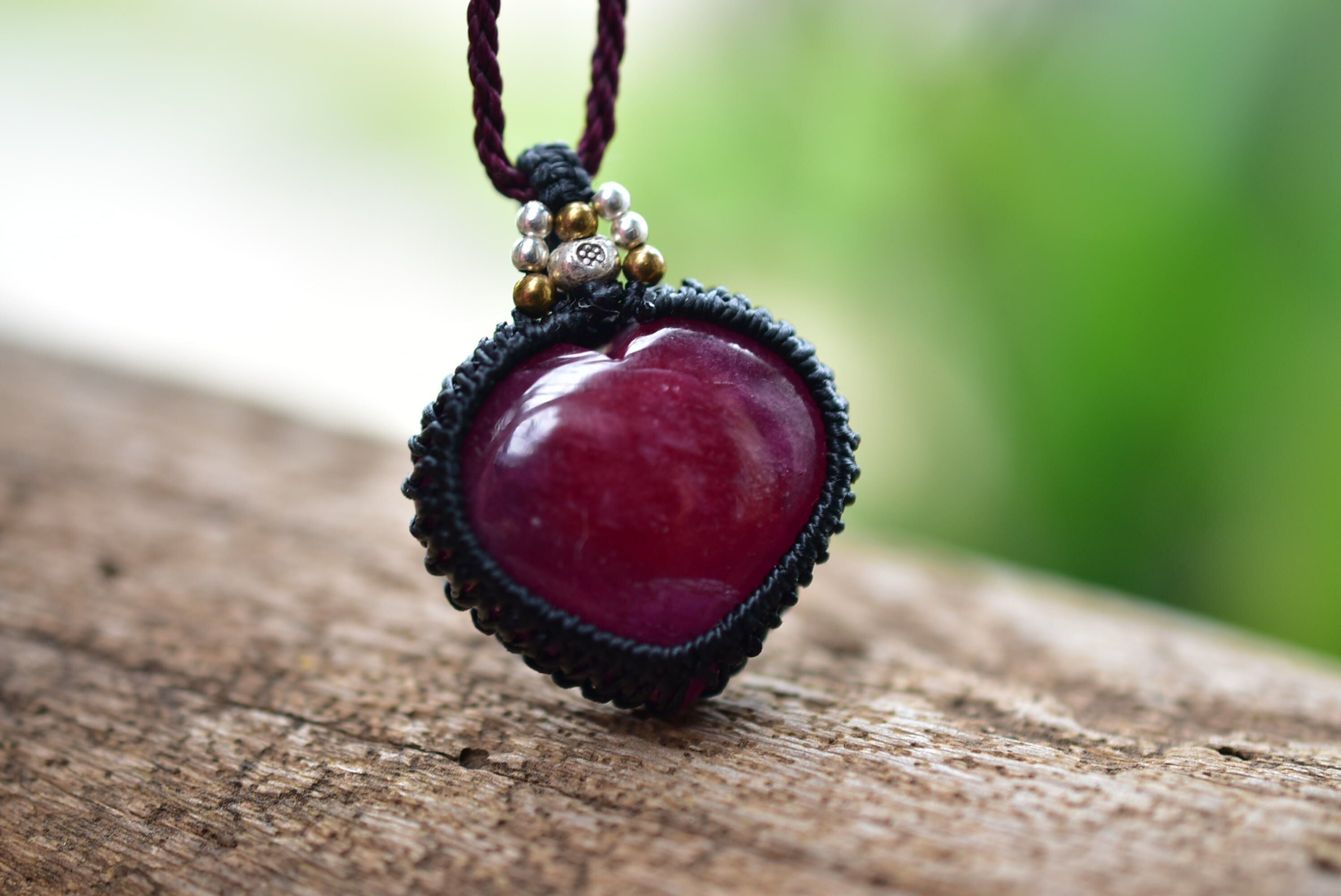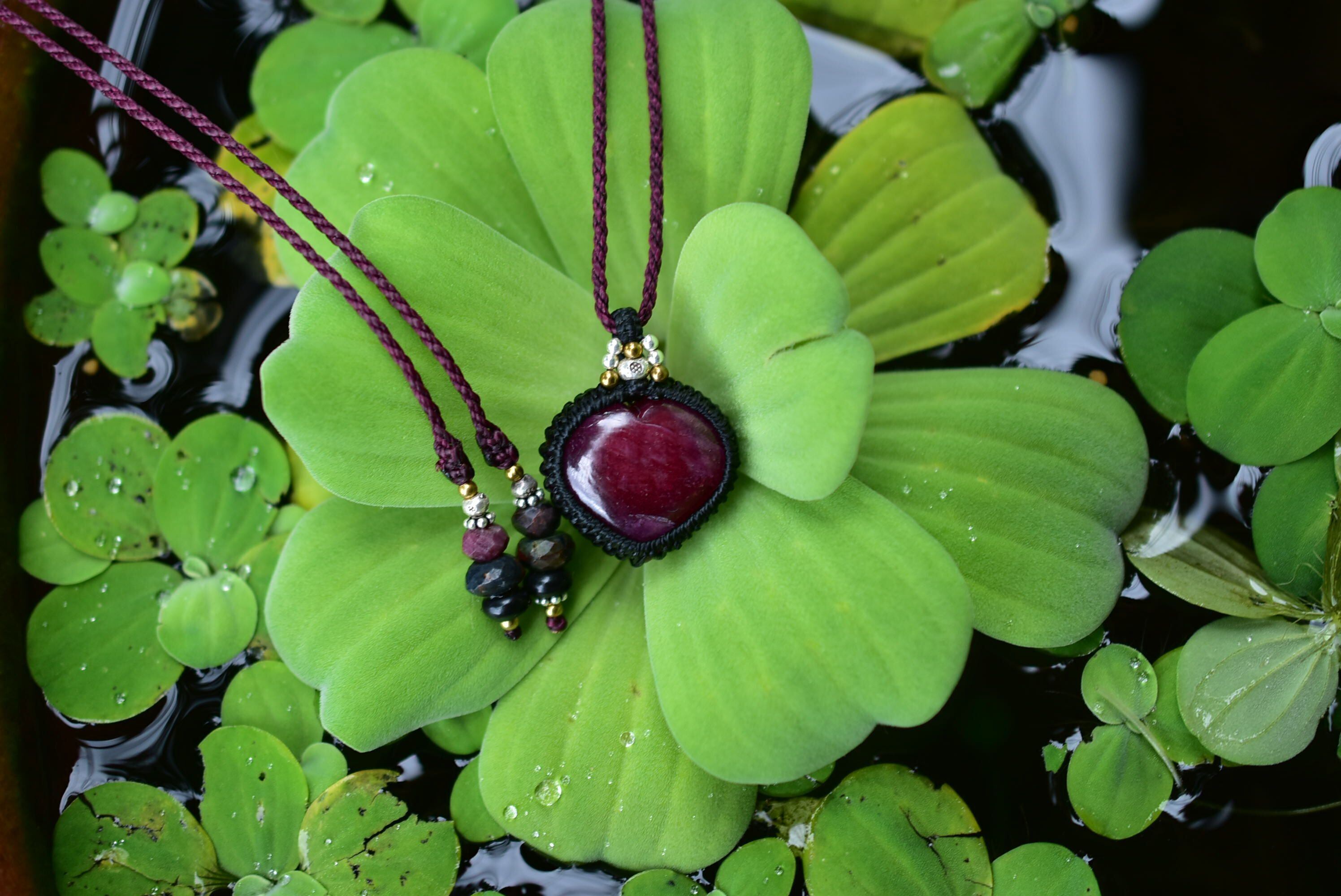 高品質★ハート型★ルビー シンプルマクラメペンダント rubyy015