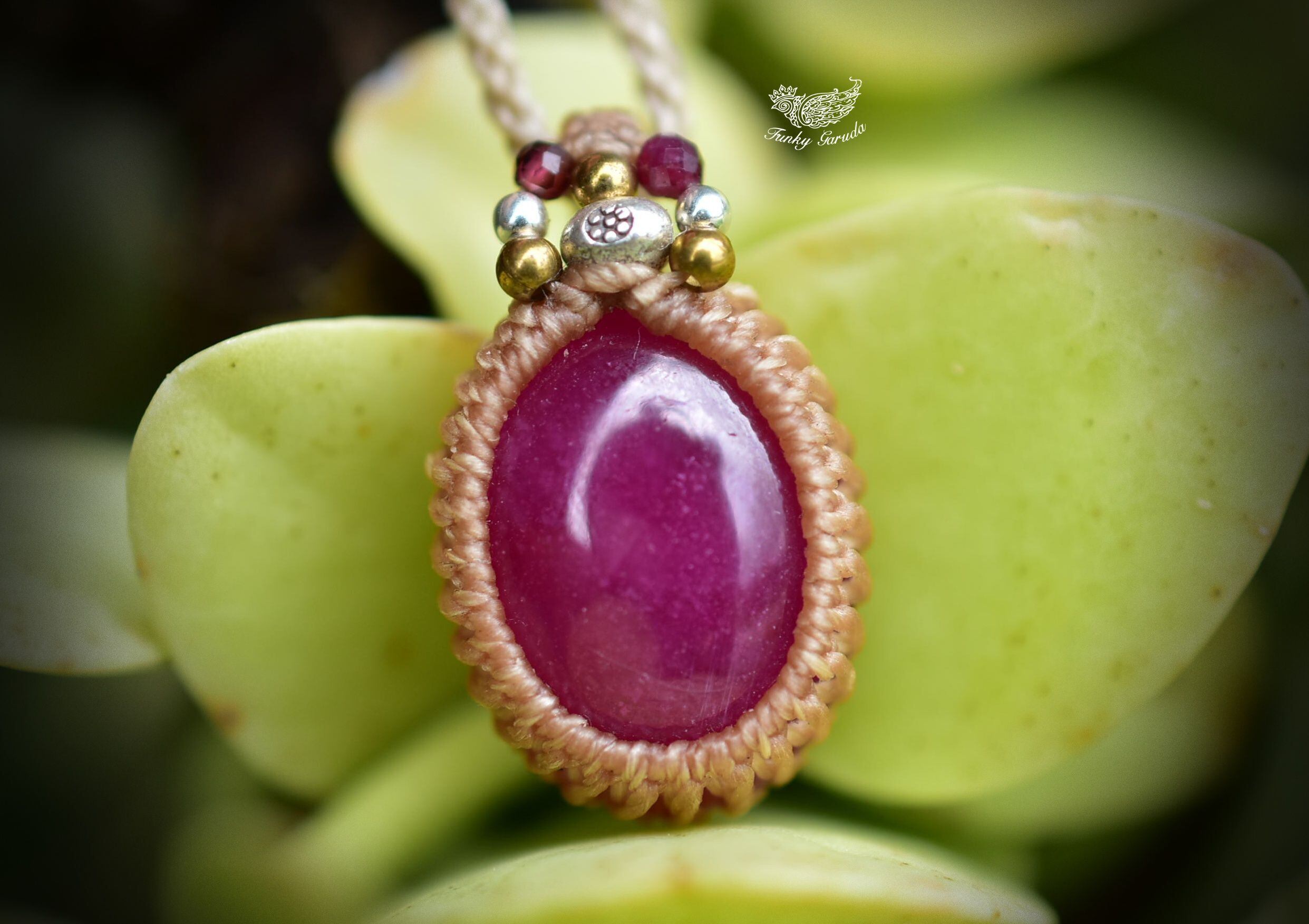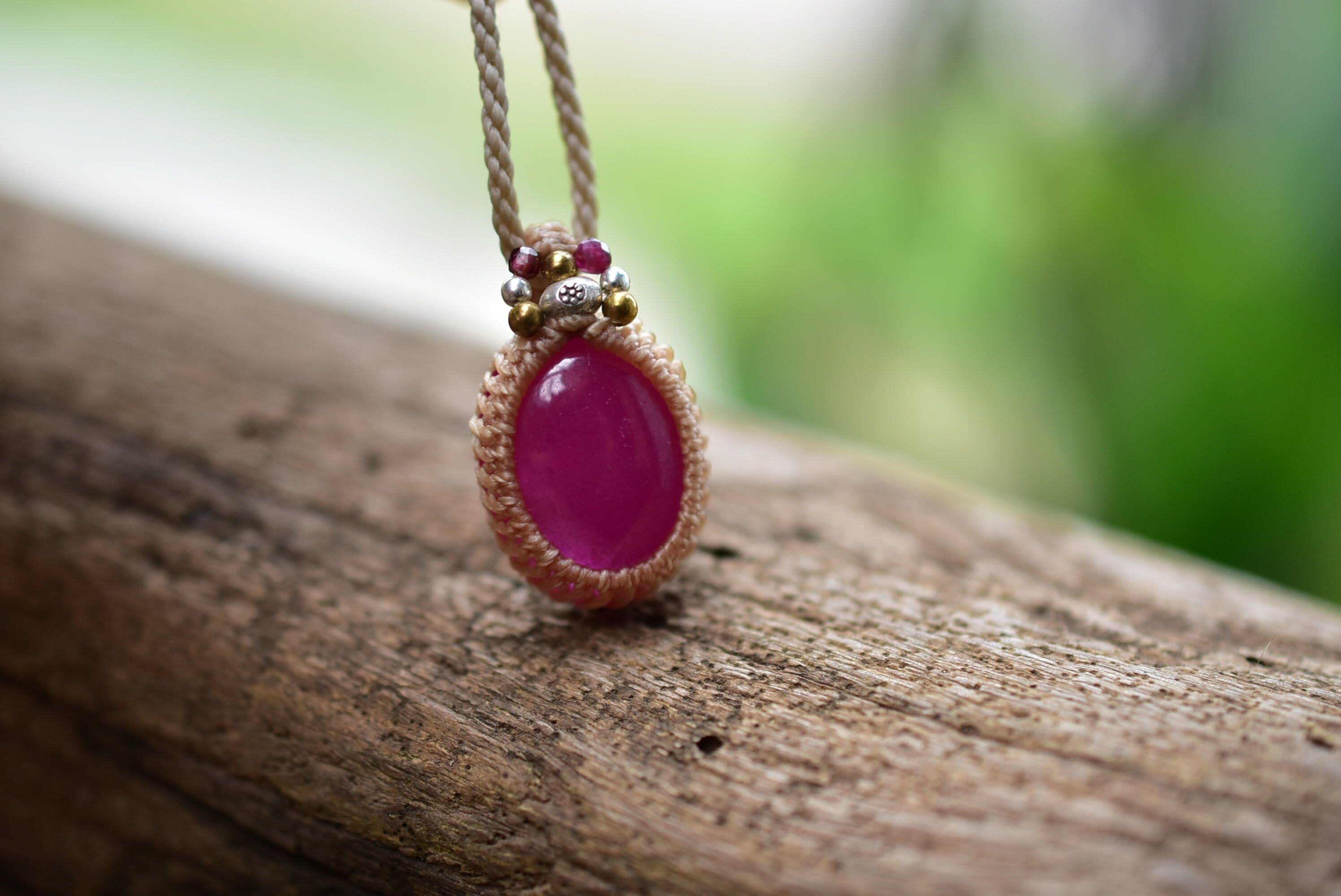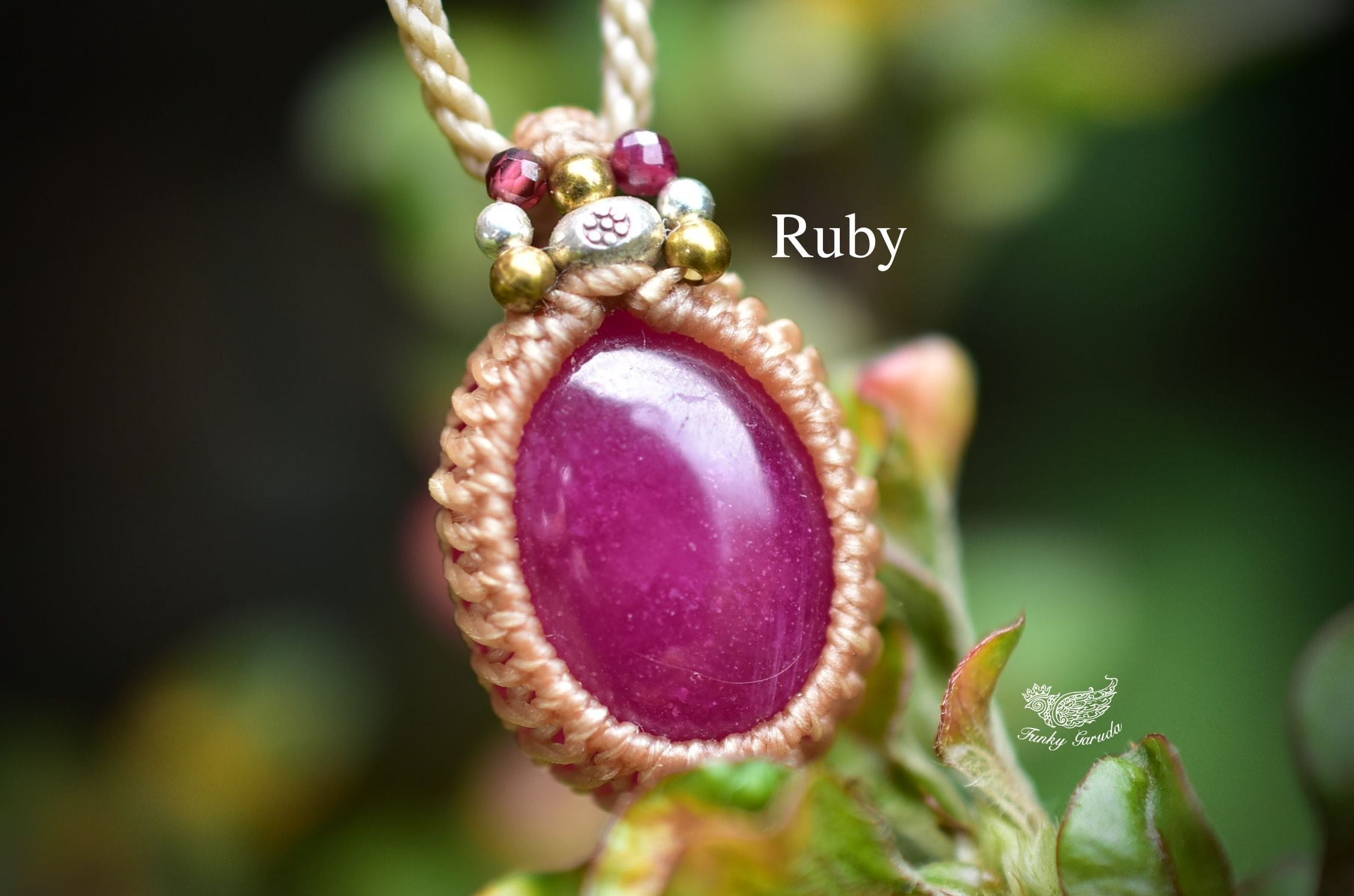ルビーピンクの彩★ルビー シンプルマクラメペンダント rubyy017