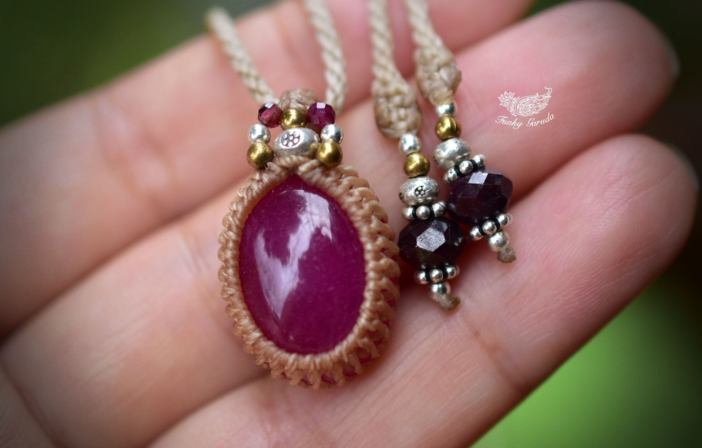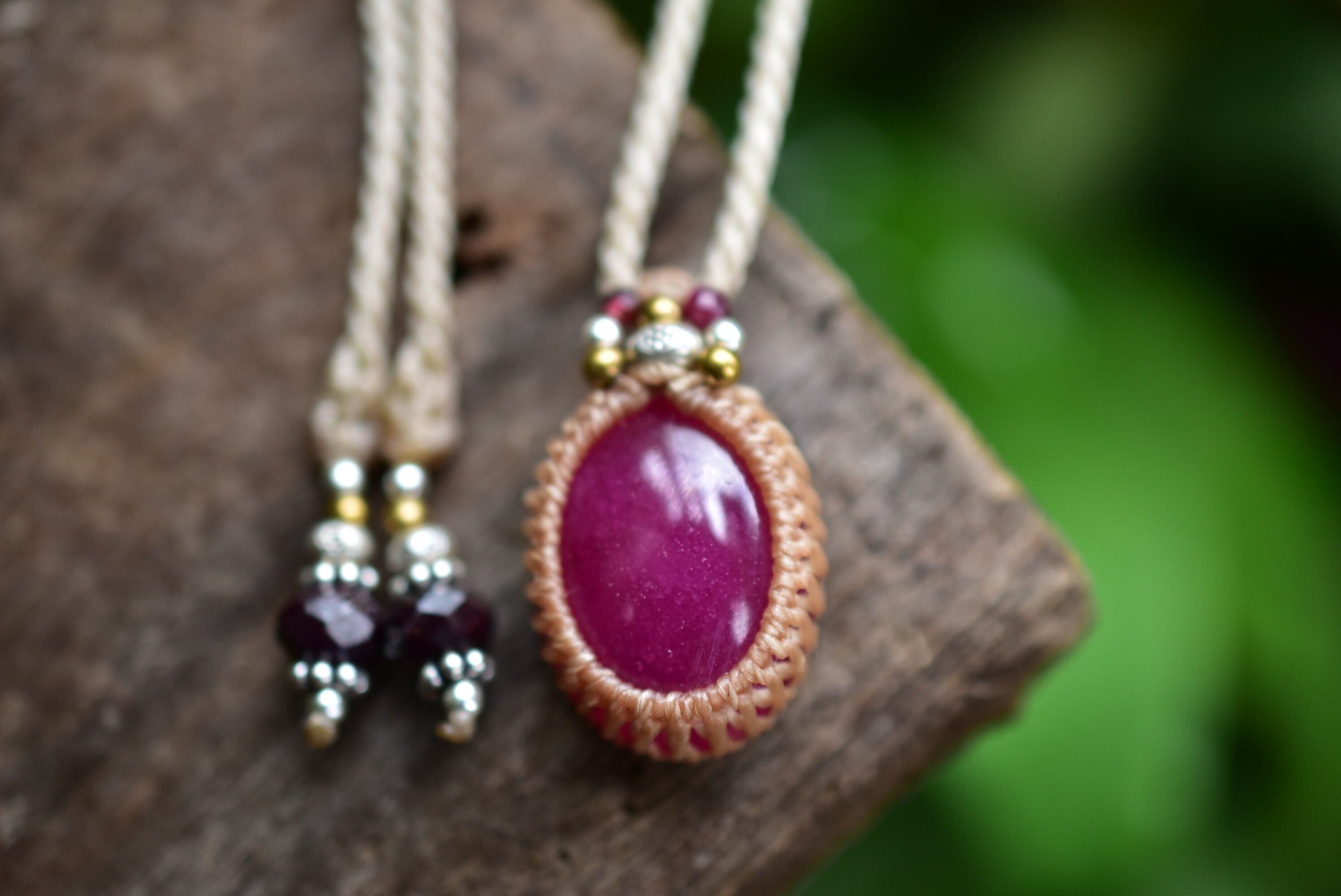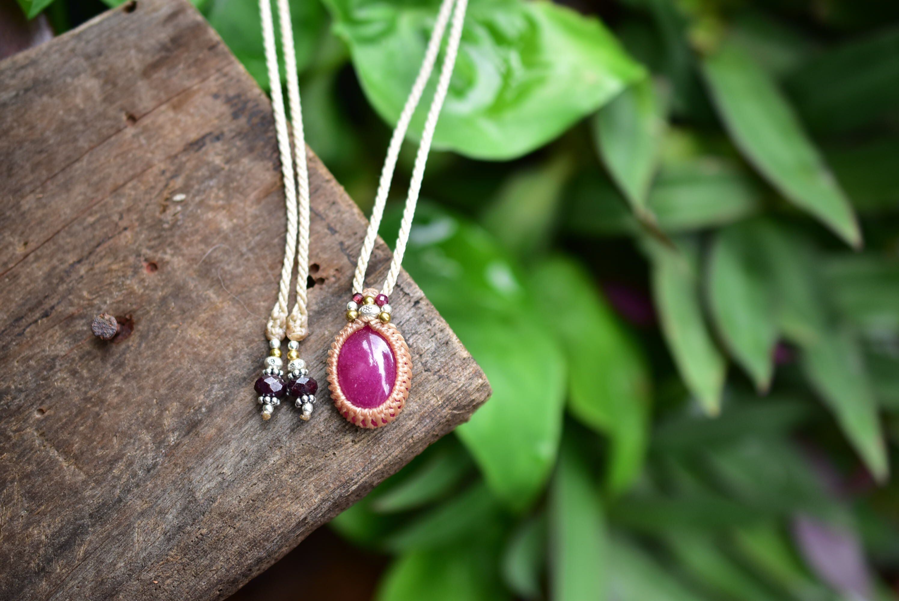 ルビーピンクの彩★ルビー シンプルマクラメペンダント rubyy017