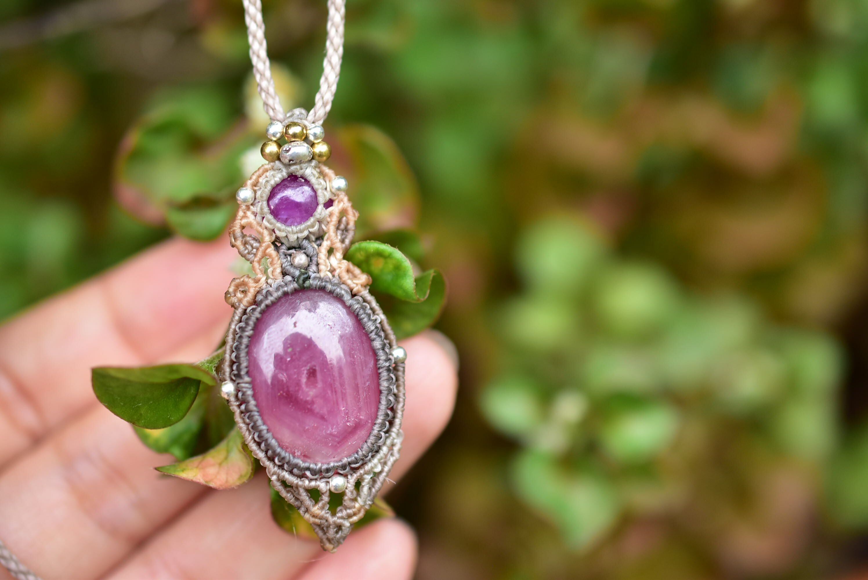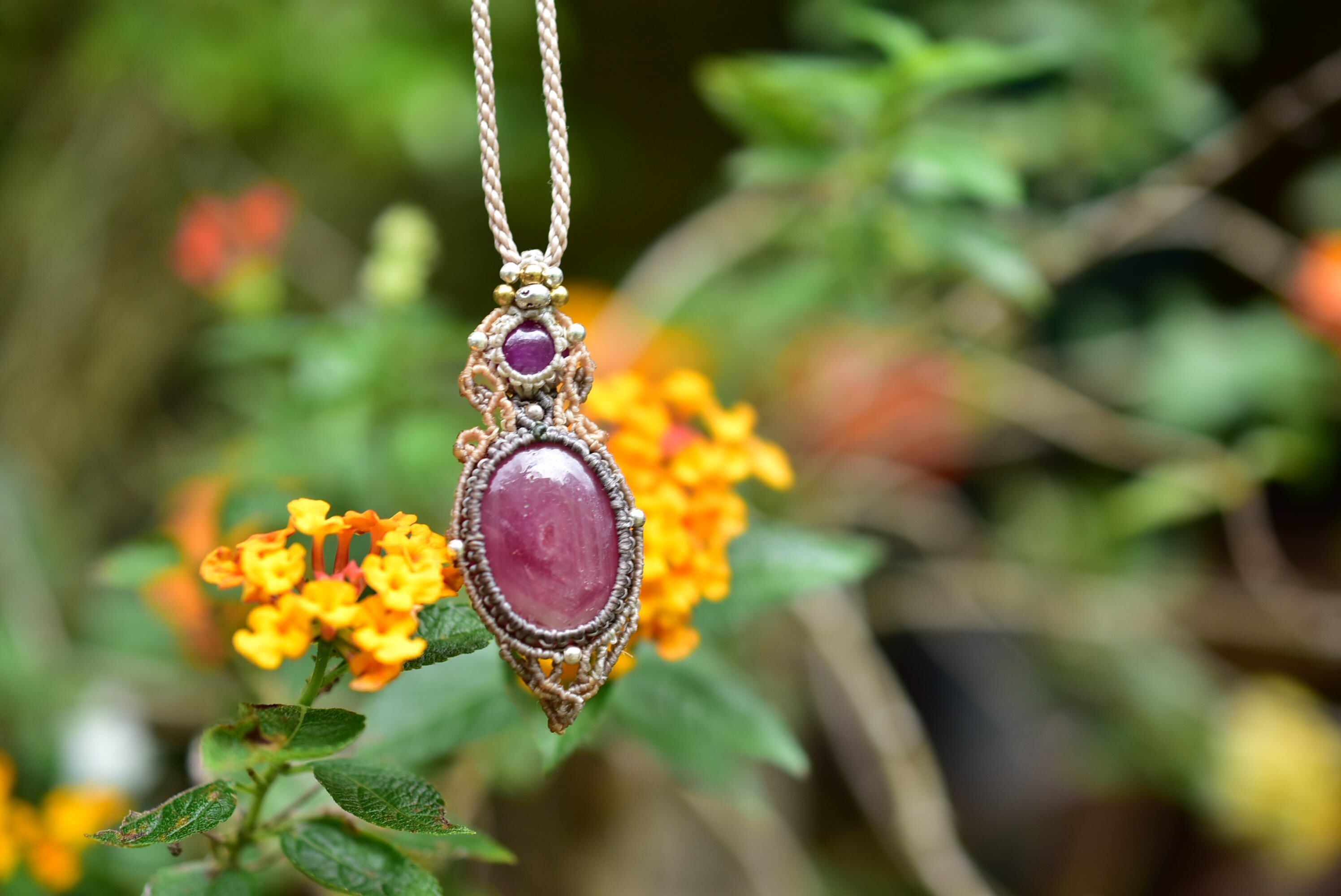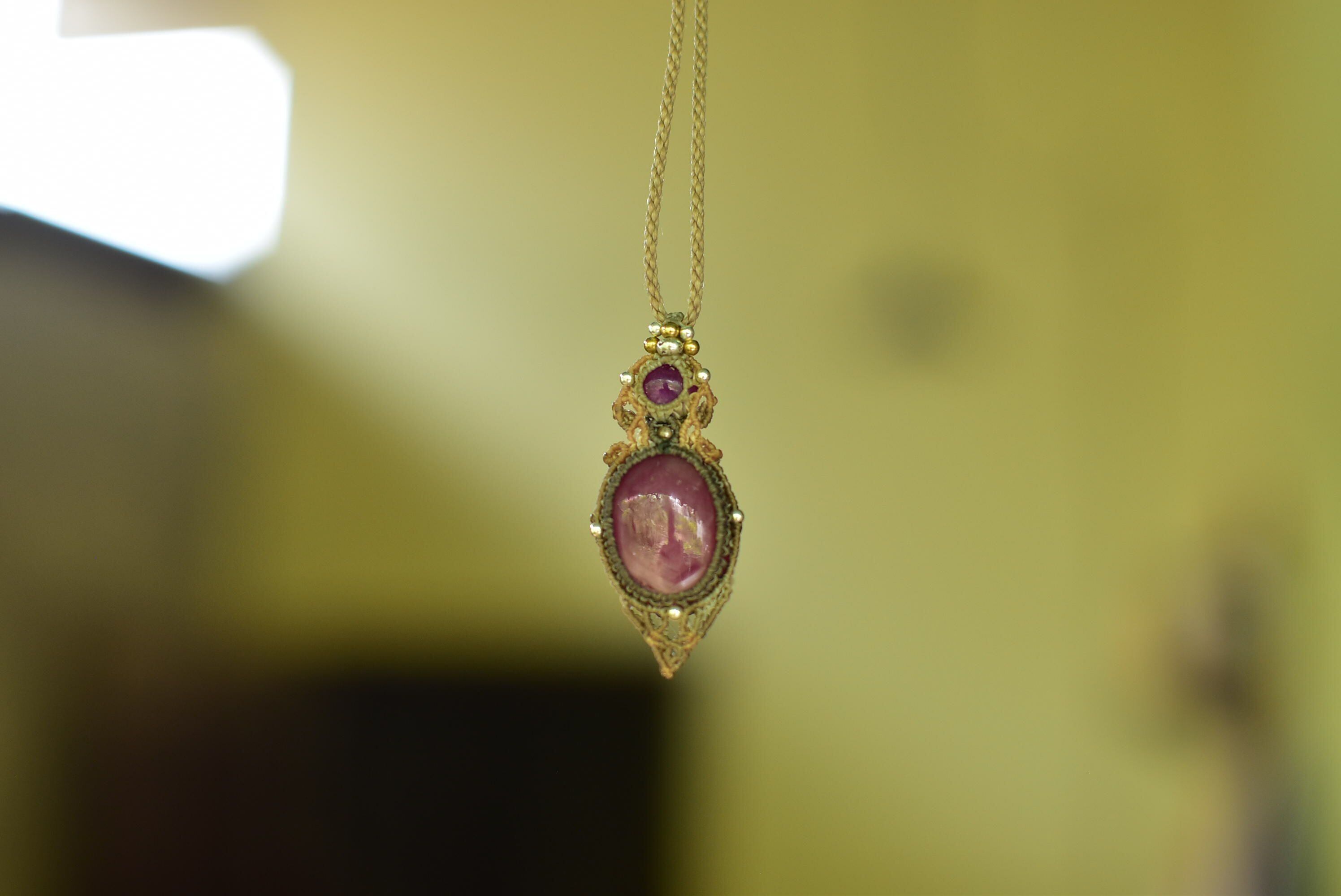 2石をひとつにしてマクラメ編み装飾を施してペンダントに仕上げました。