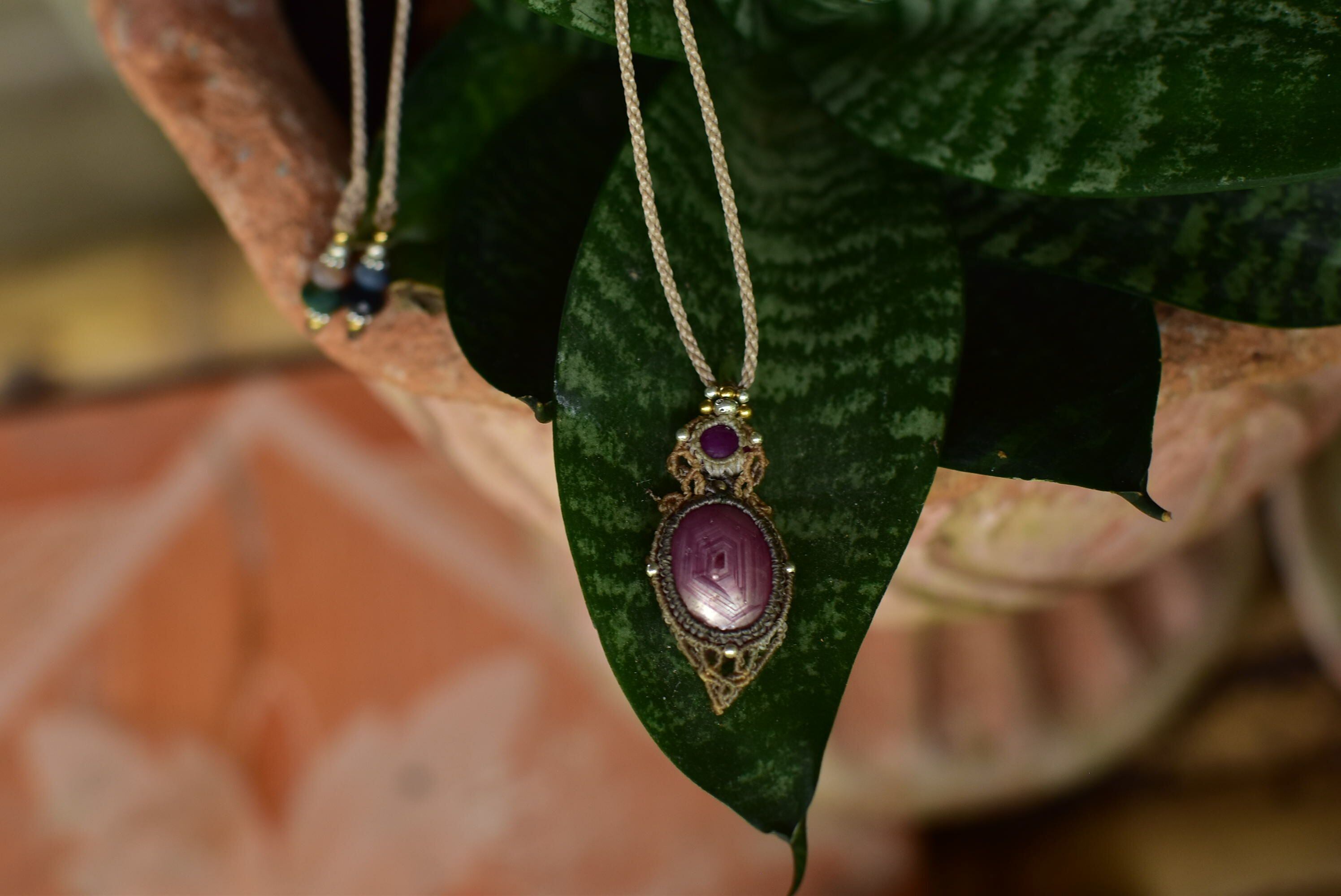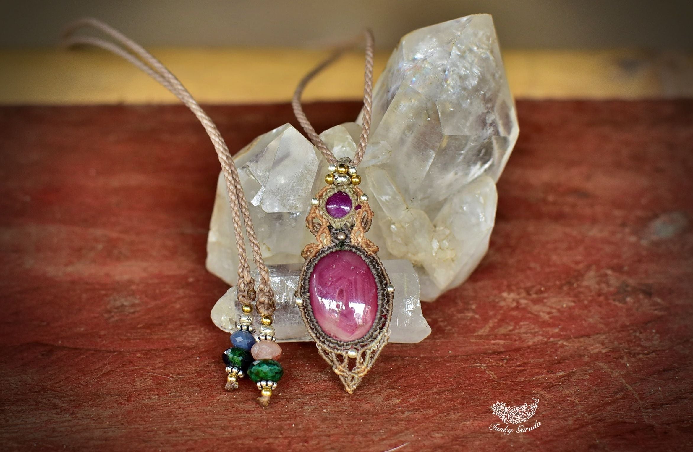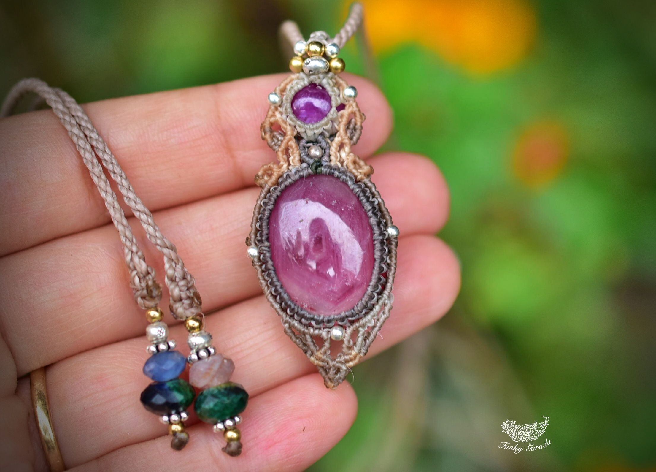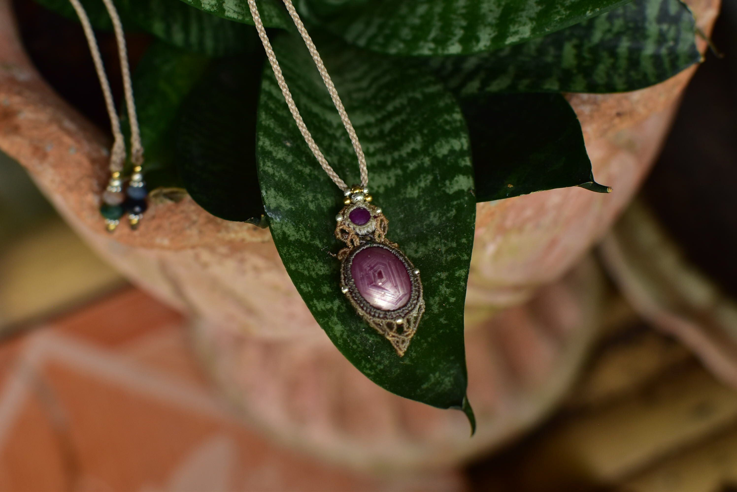 2石をひとつにしてマクラメ編み装飾を施してペンダントに仕上げました。