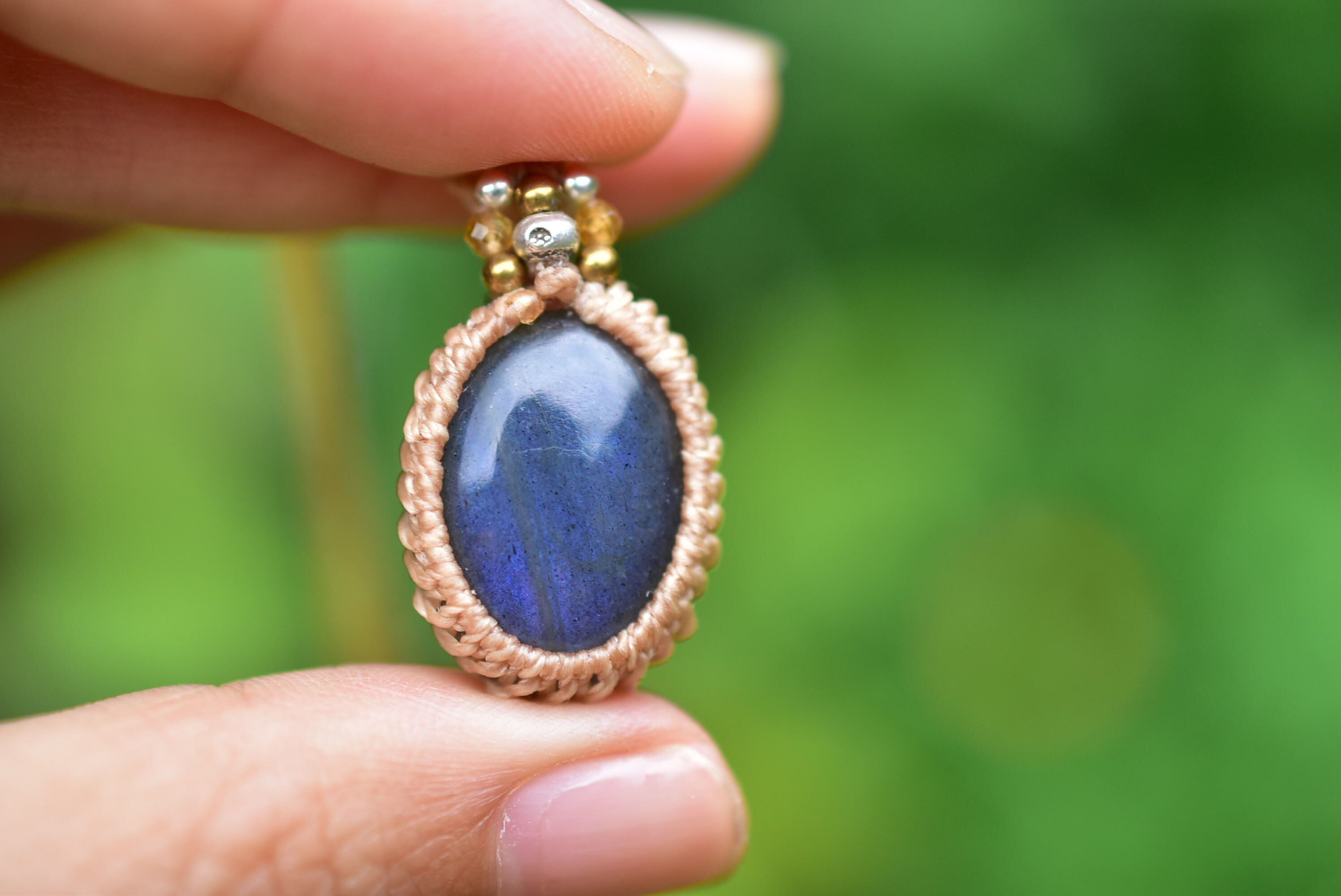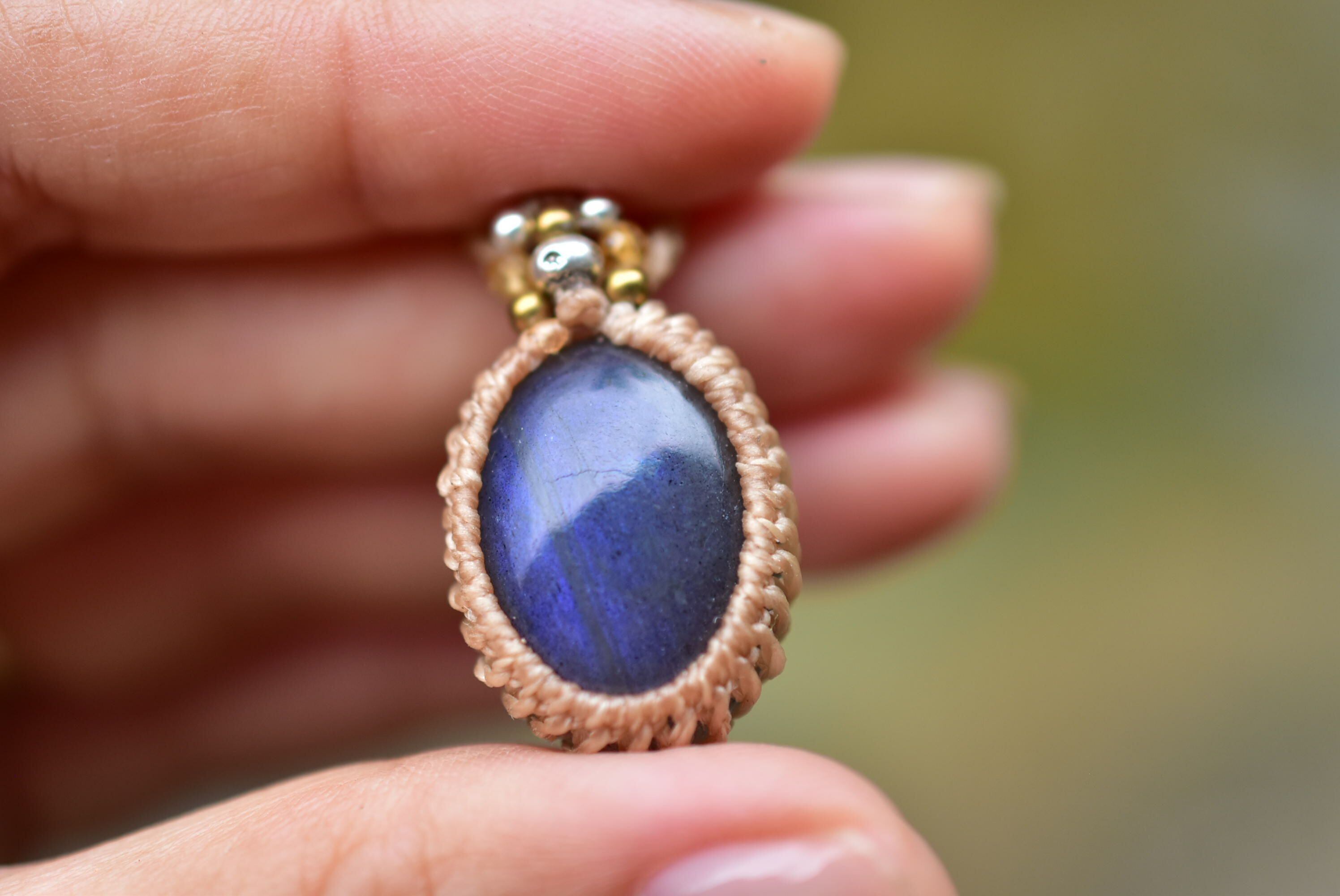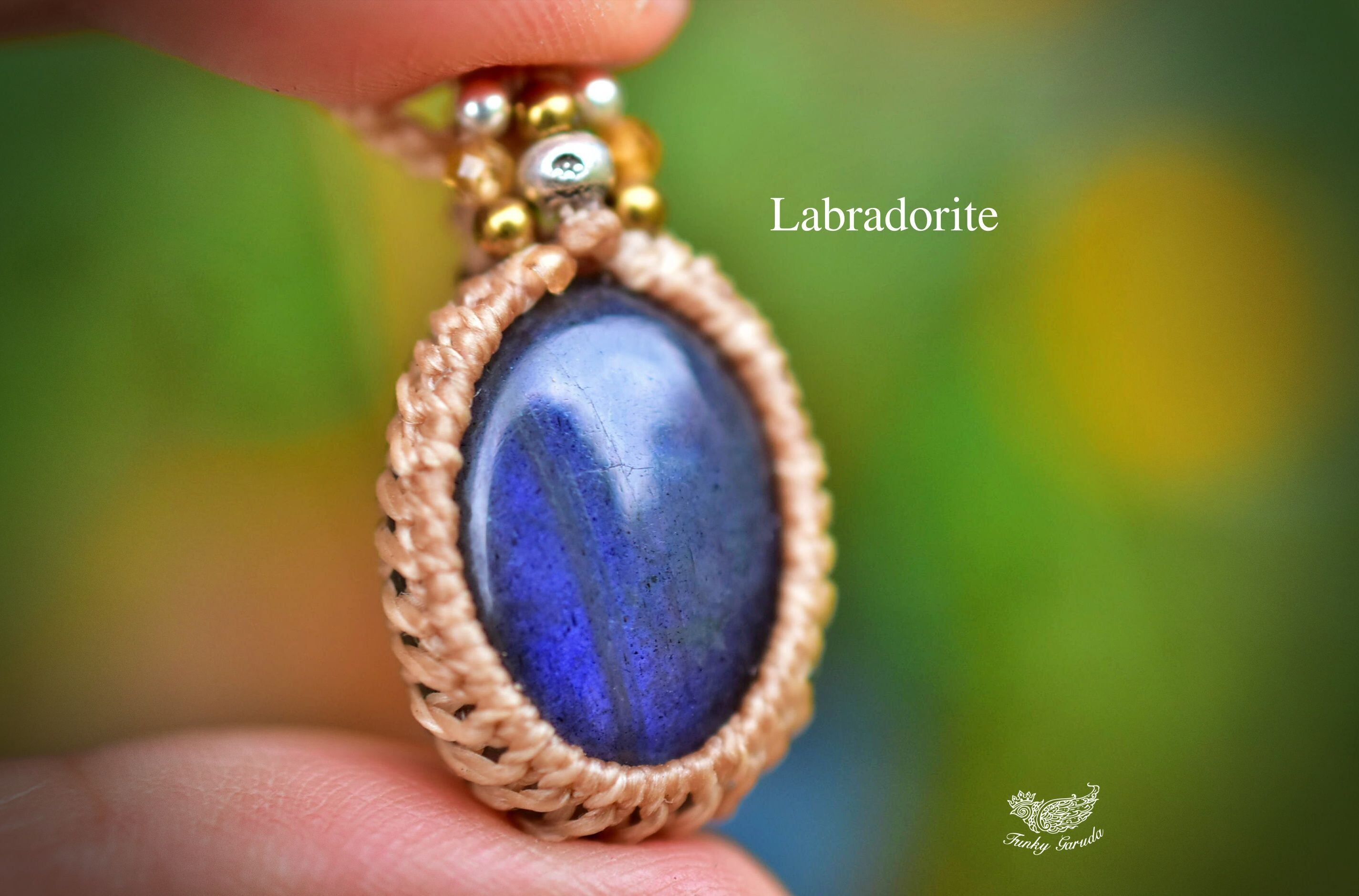 幻想ブルー★ブルーラブラドライト マクラメペンダント lay021