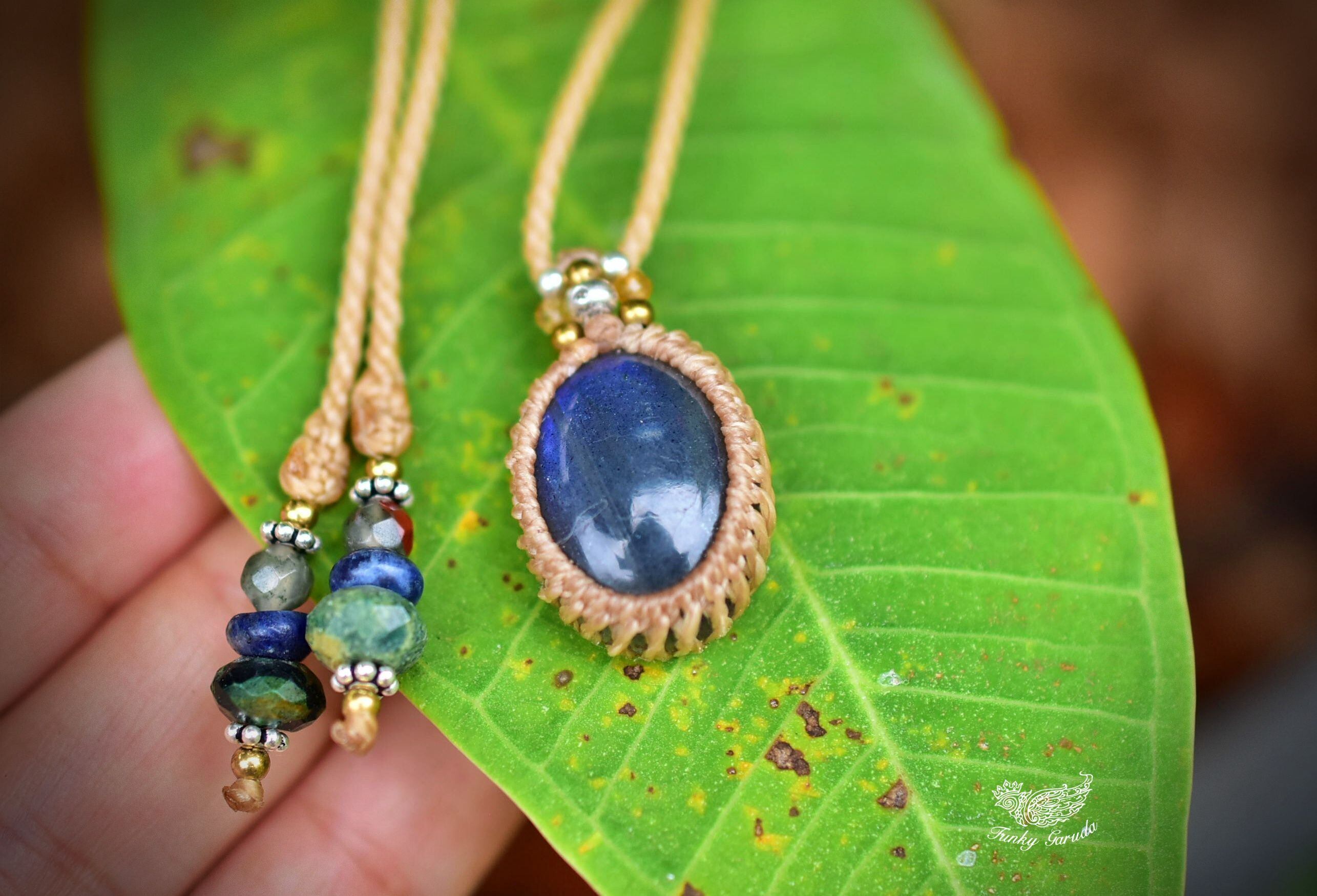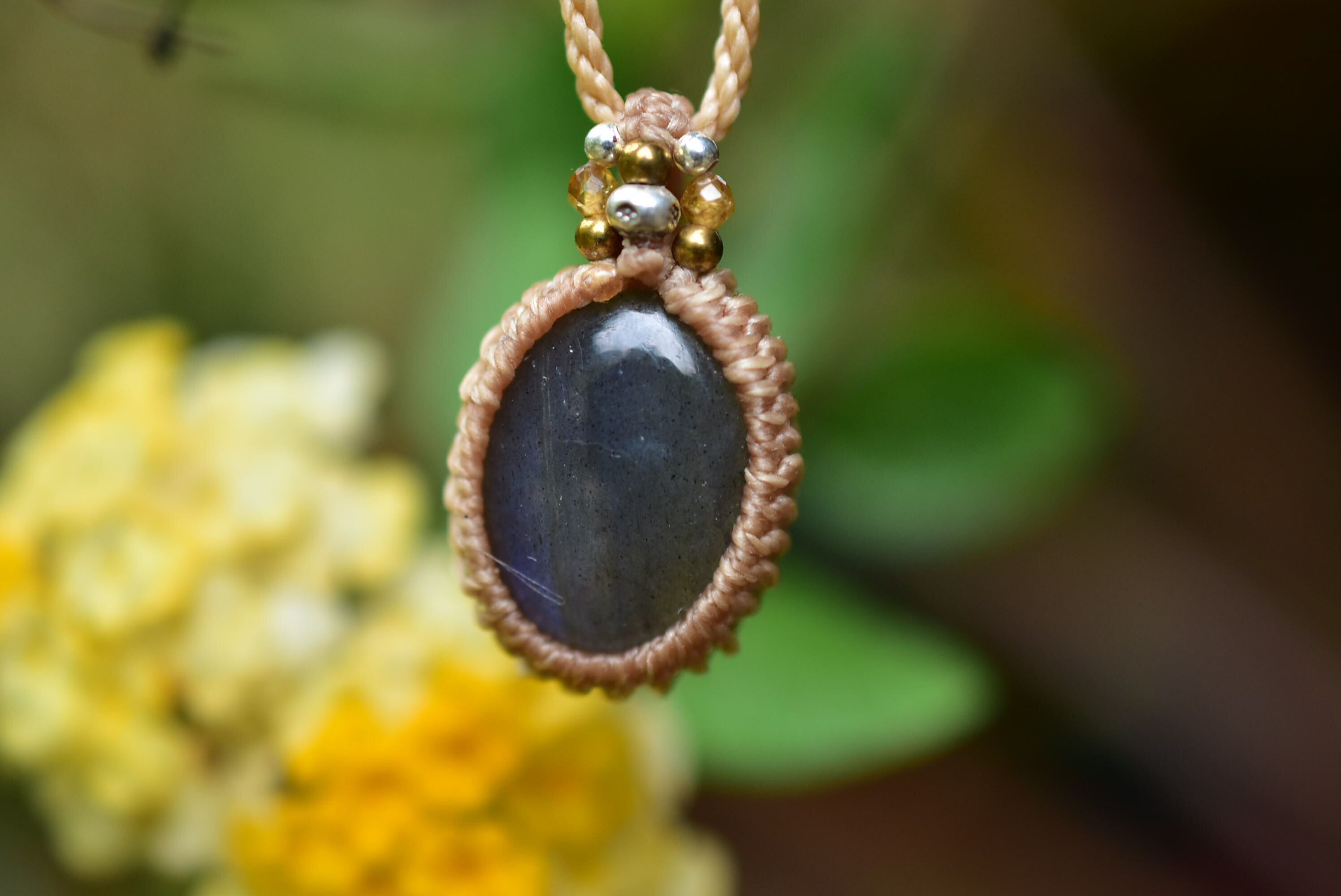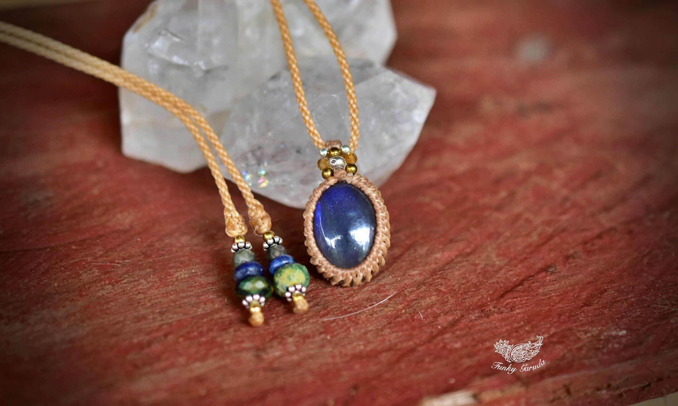幻想ブルー★ブルーラブラドライト マクラメペンダント lay021
