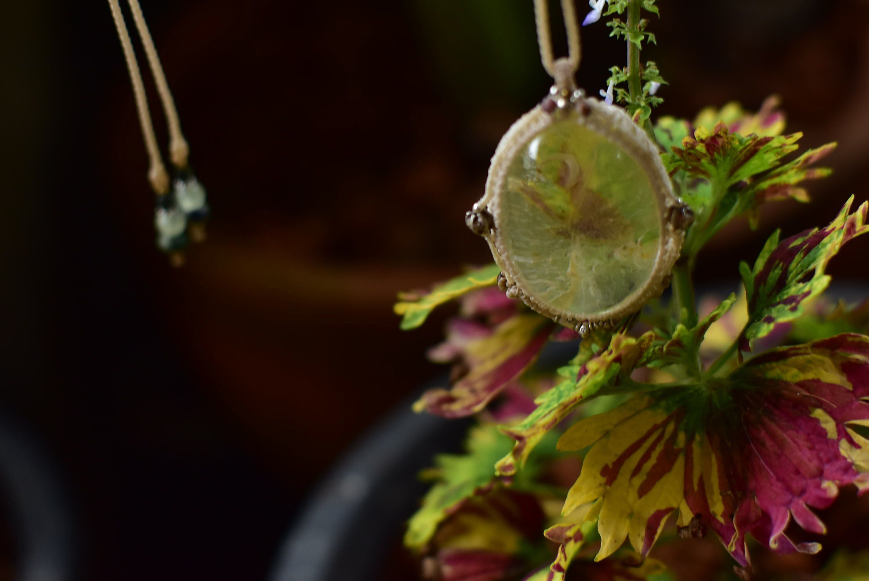 丁寧にマクラメペンダントに仕上げました。