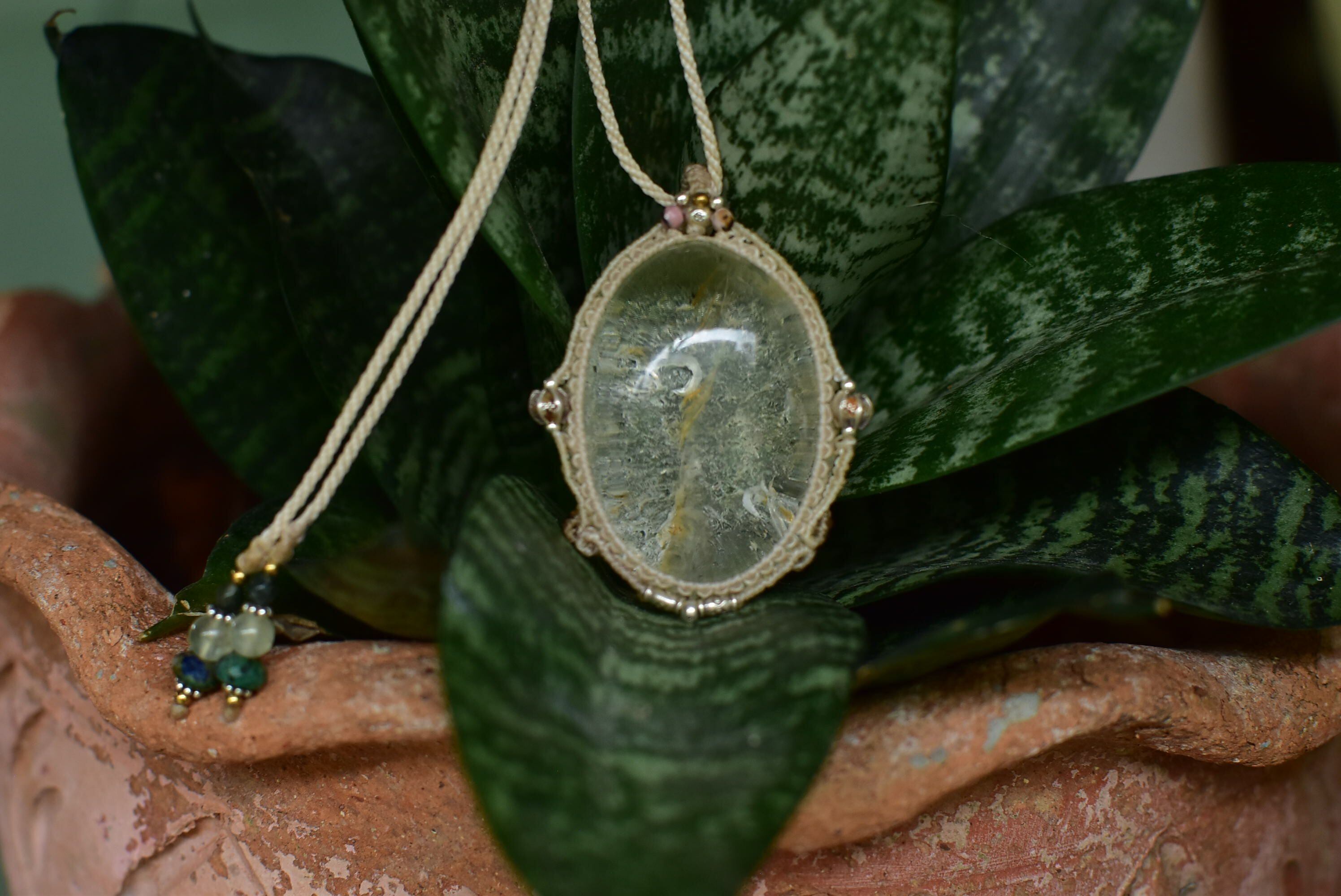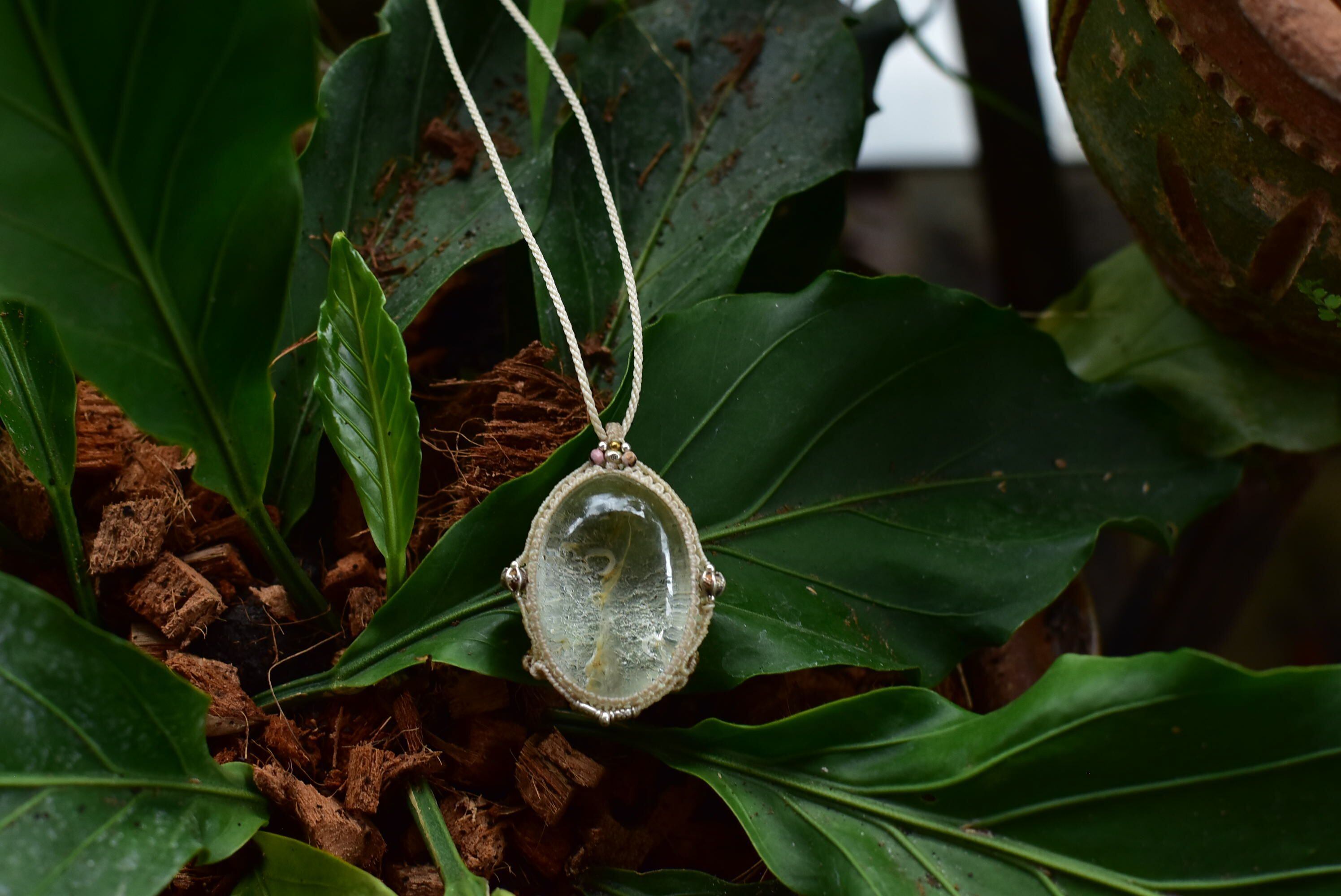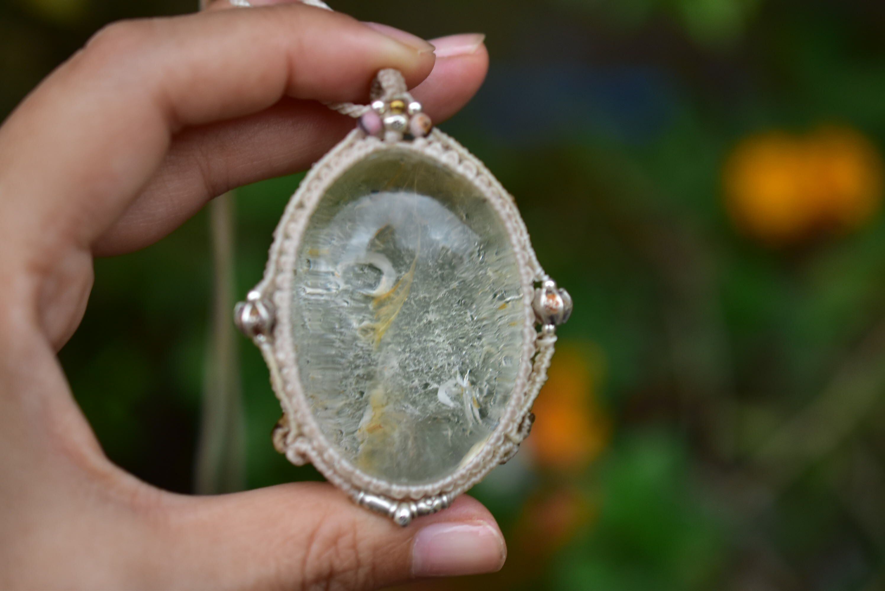 特大★白い滝★ガーデンクォーツ マクラメペンダントgarm134