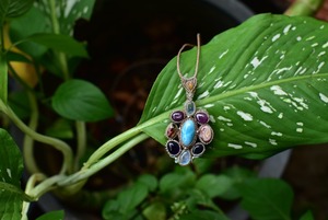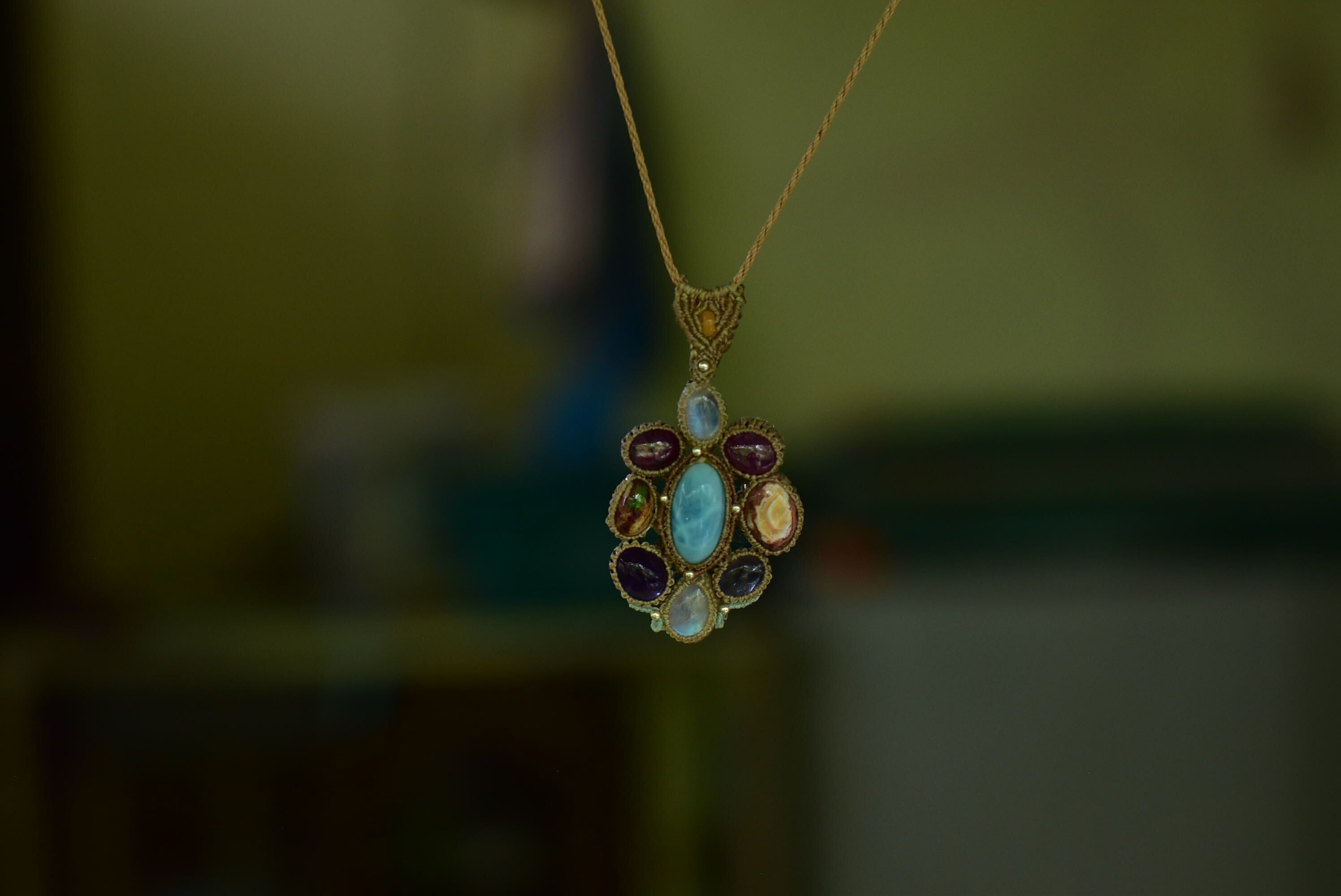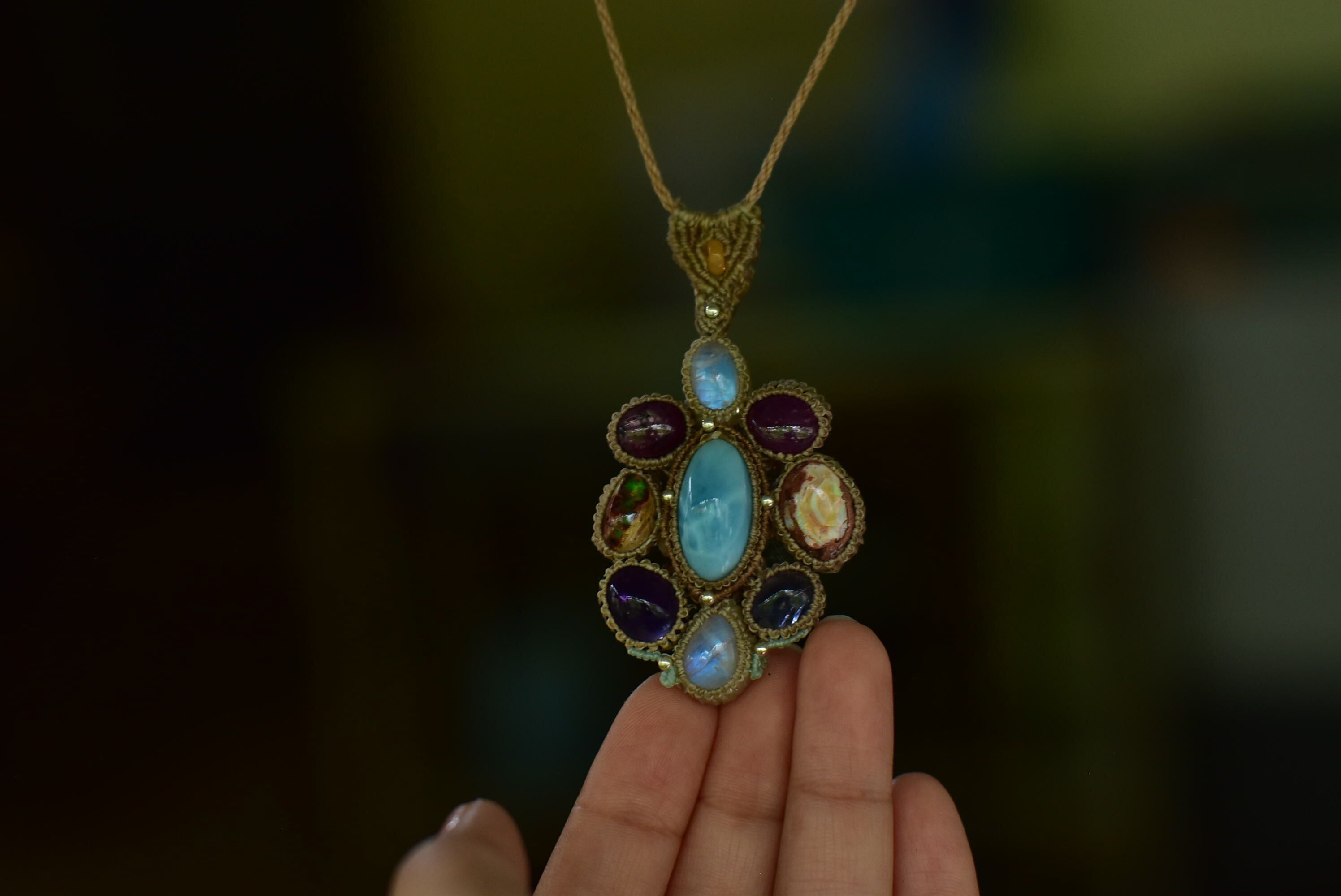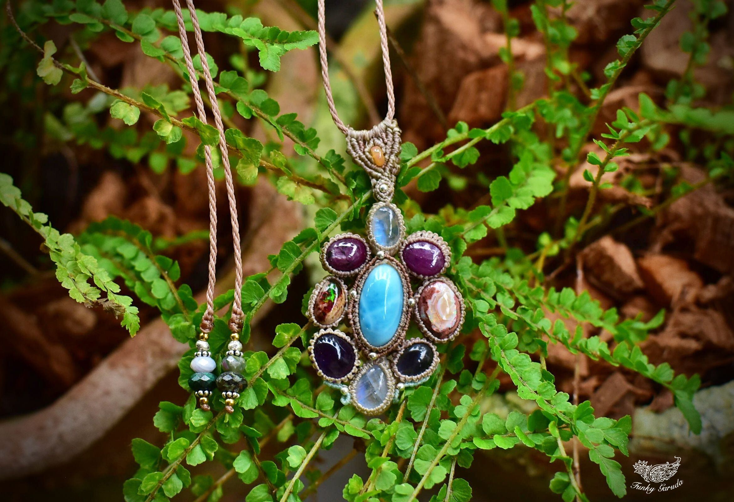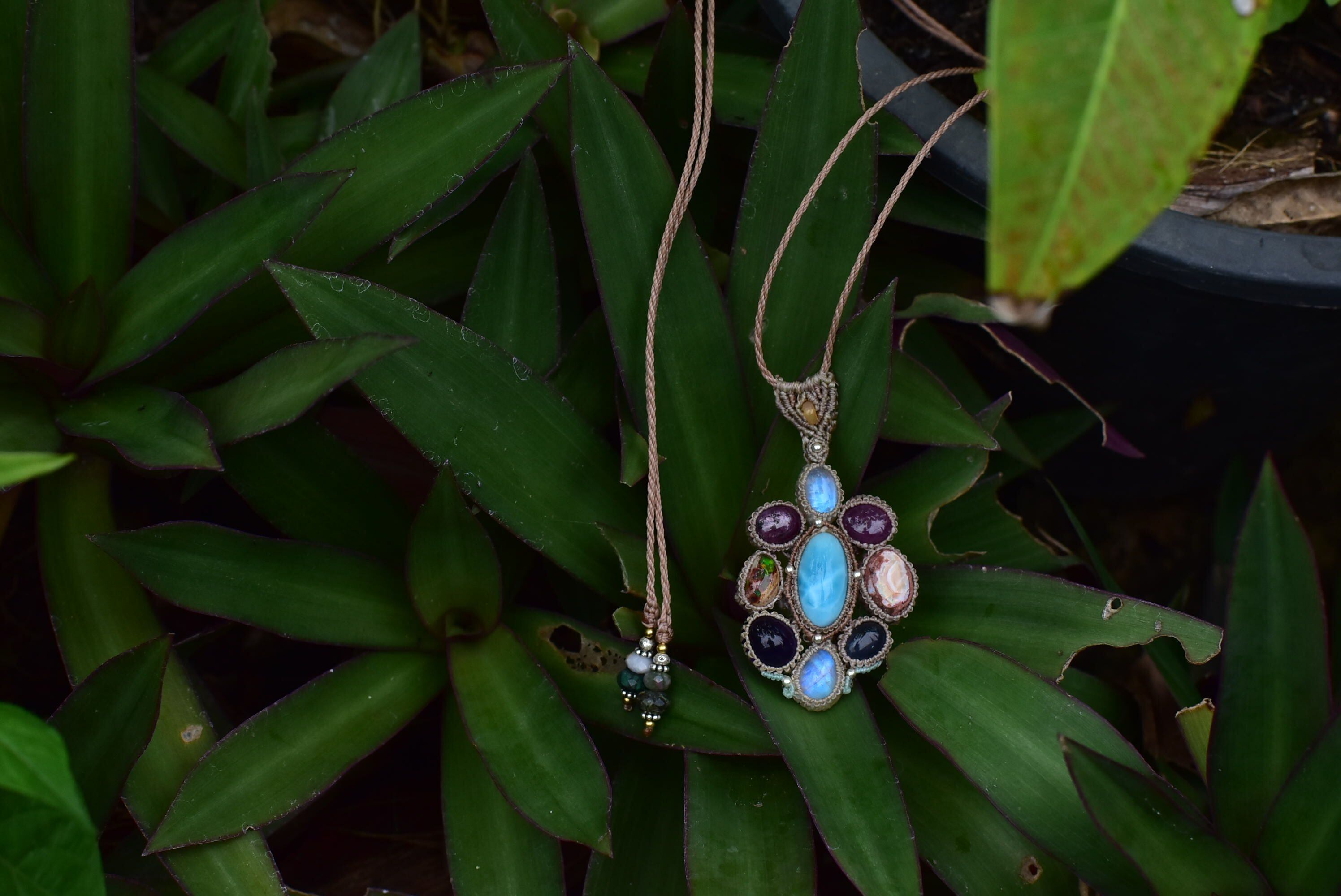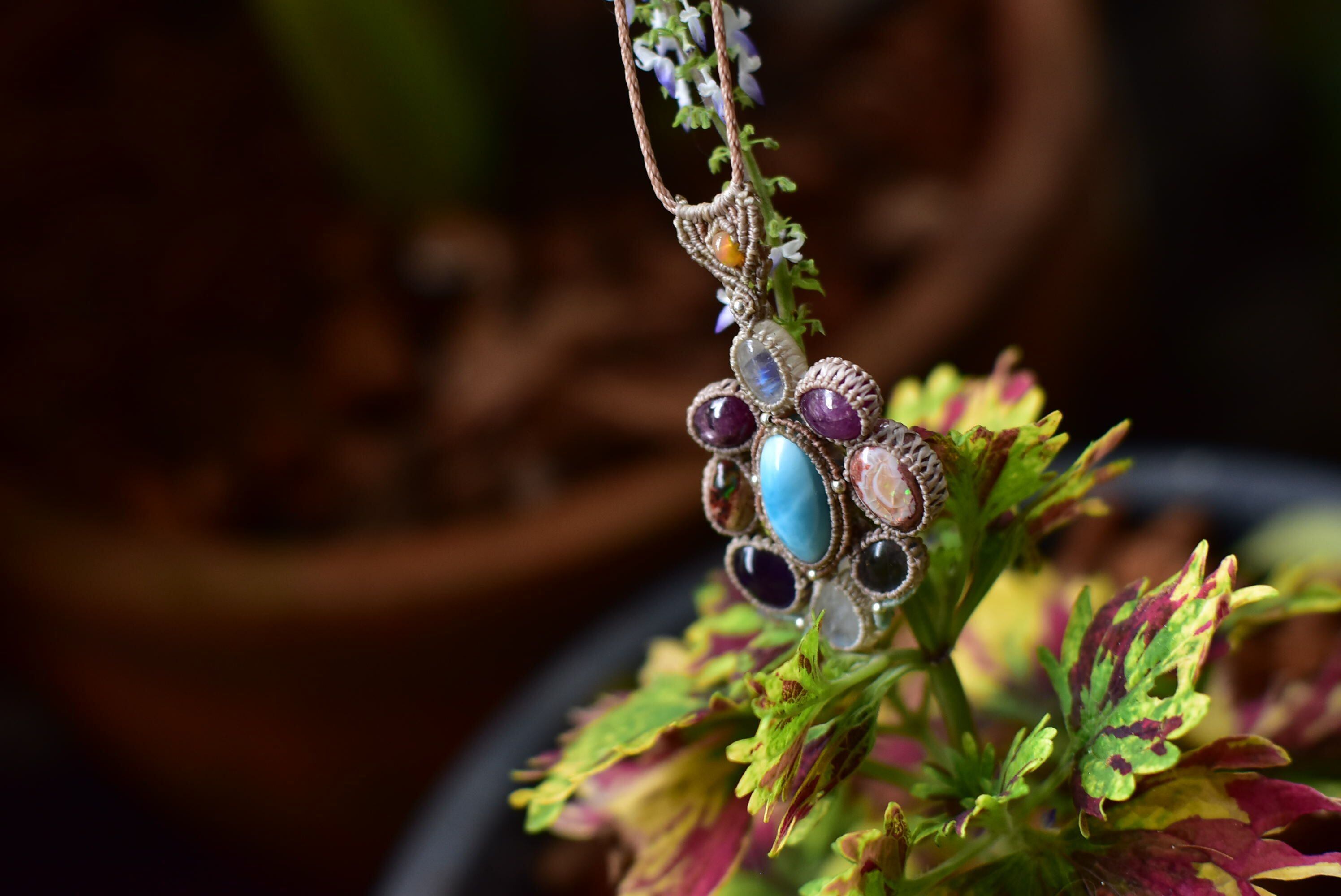 お花★ムーンストーン カンテラオパール ラリマー ルビー マクラメペンダント moon053