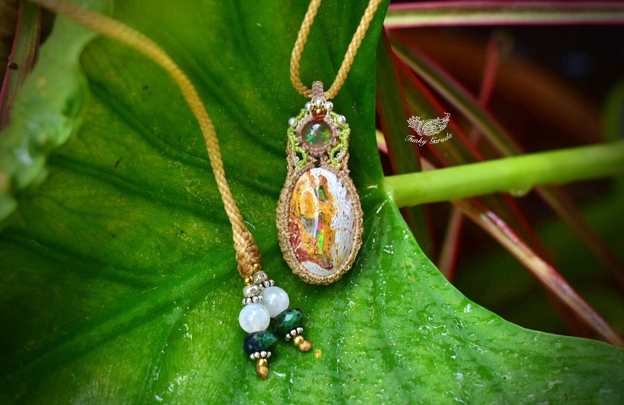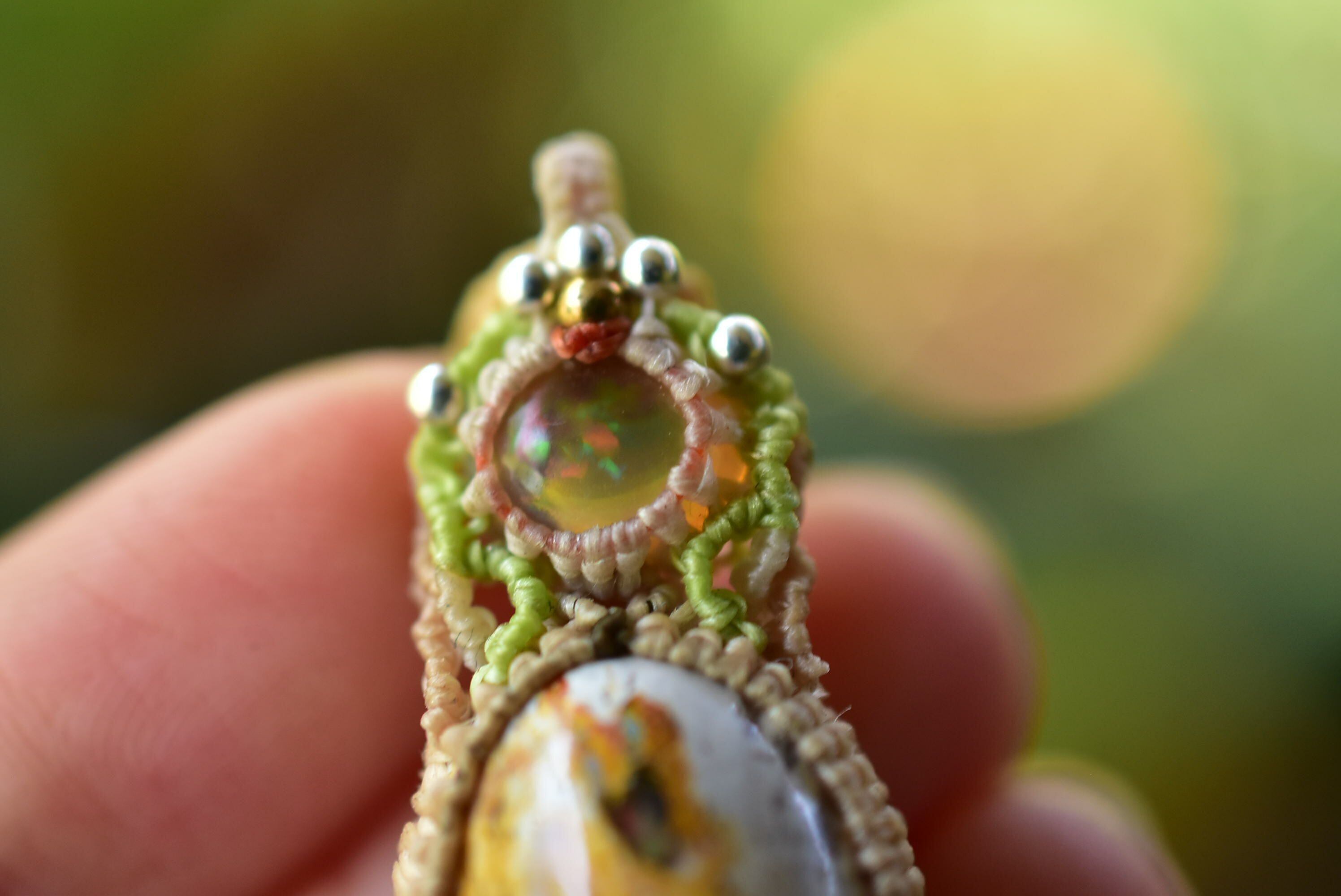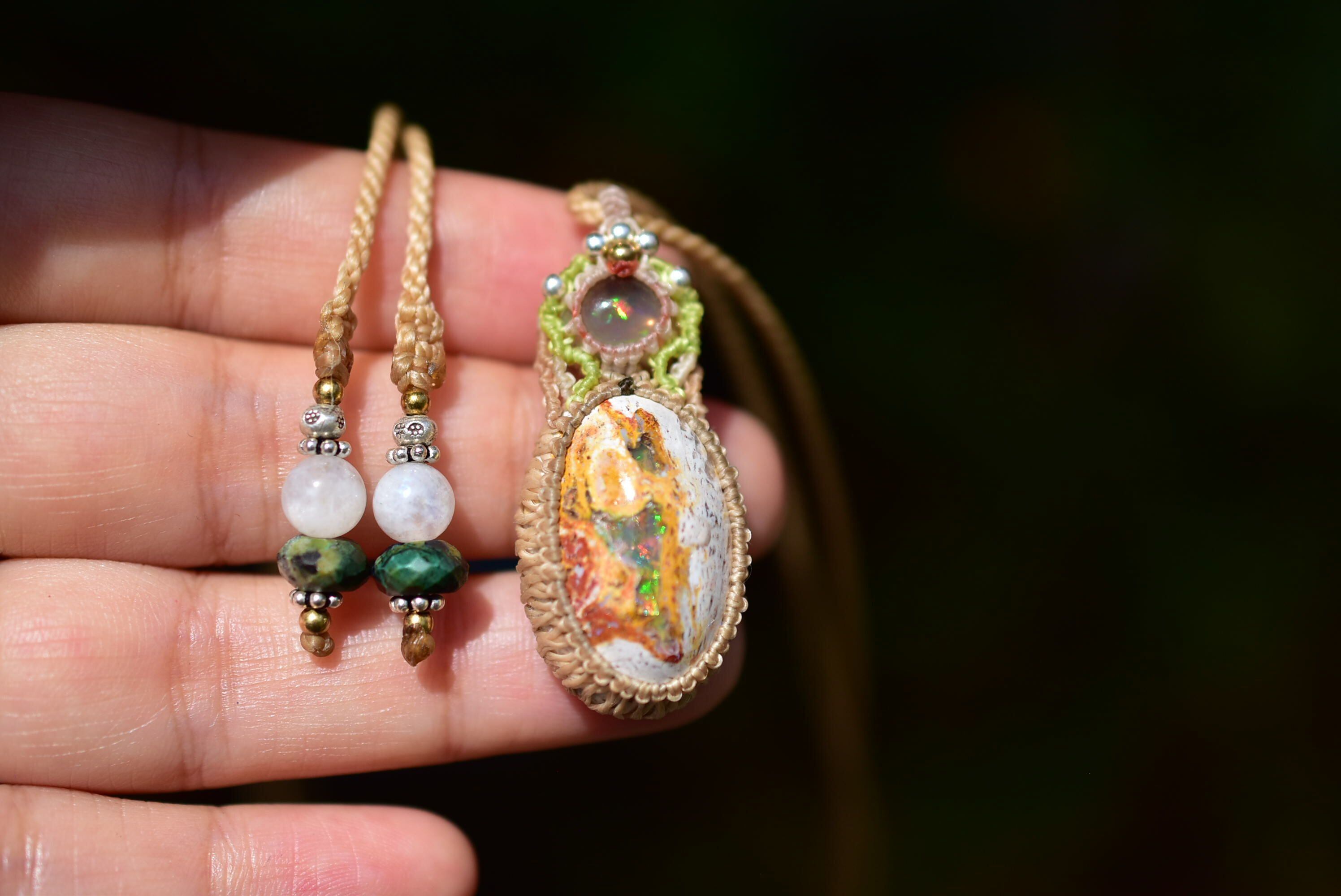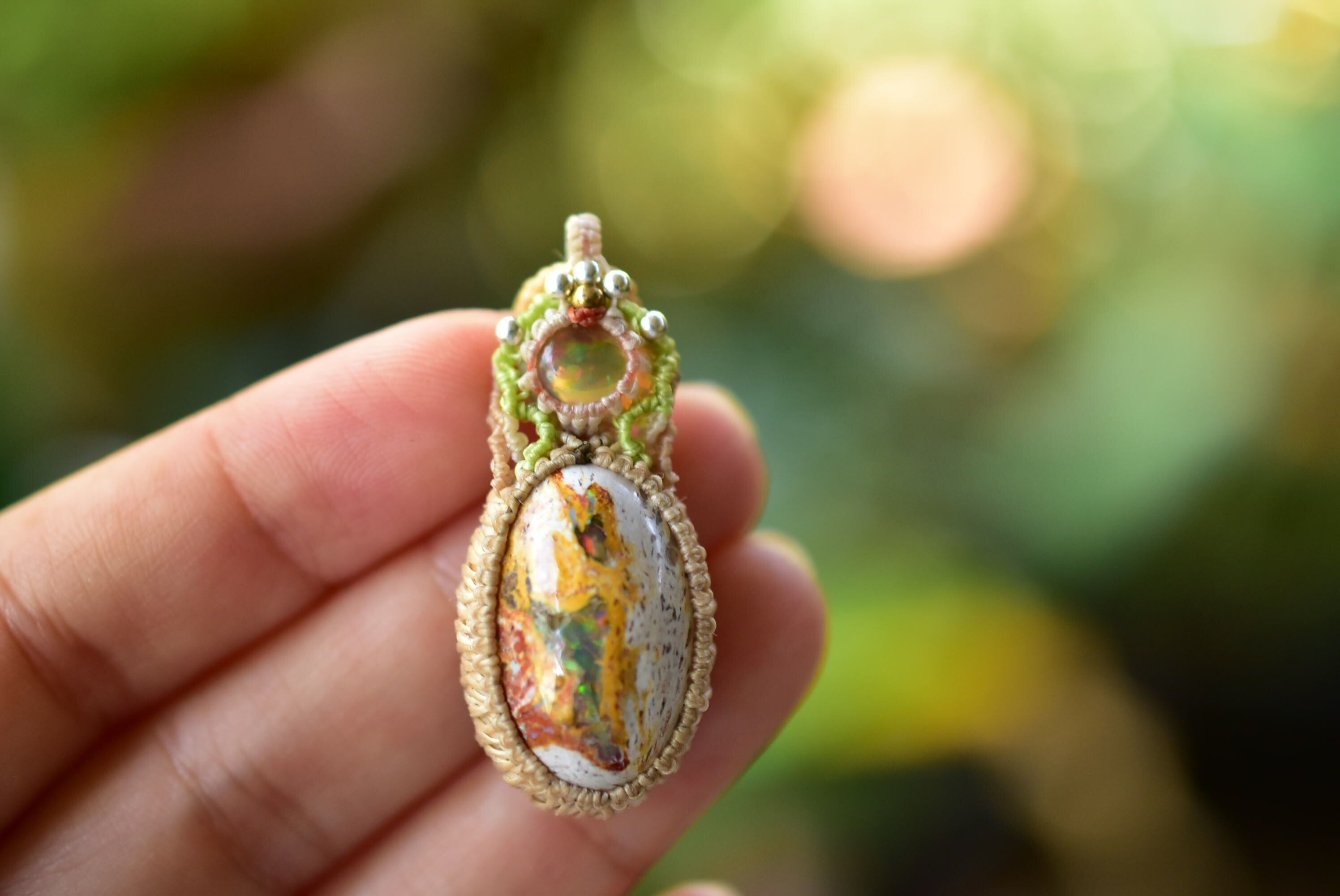 虹色の夢世界★プレシャスオパール カンテラオパール マクラメペンダント opal025