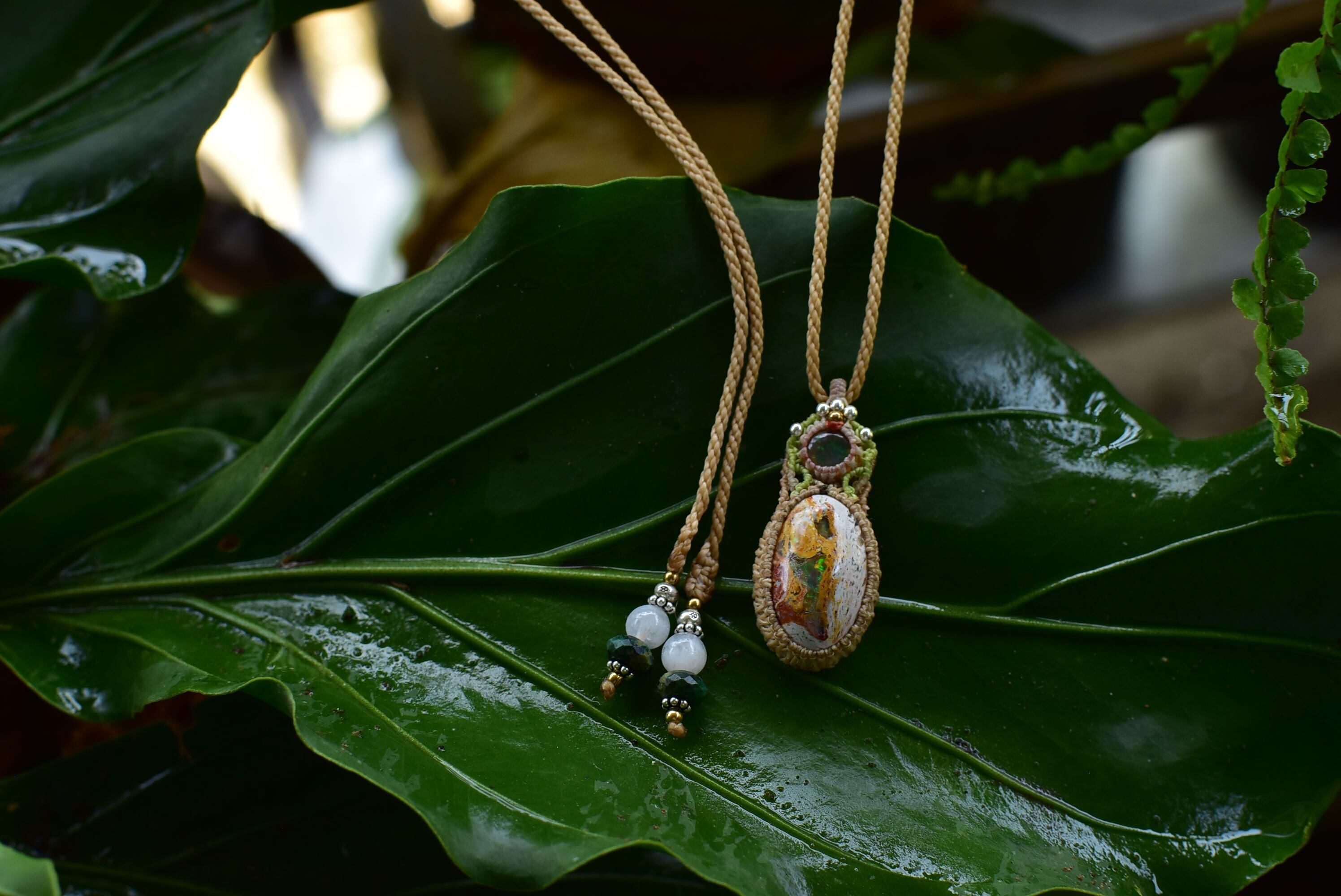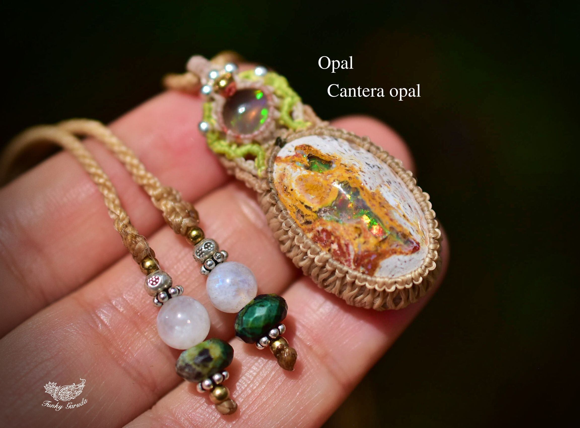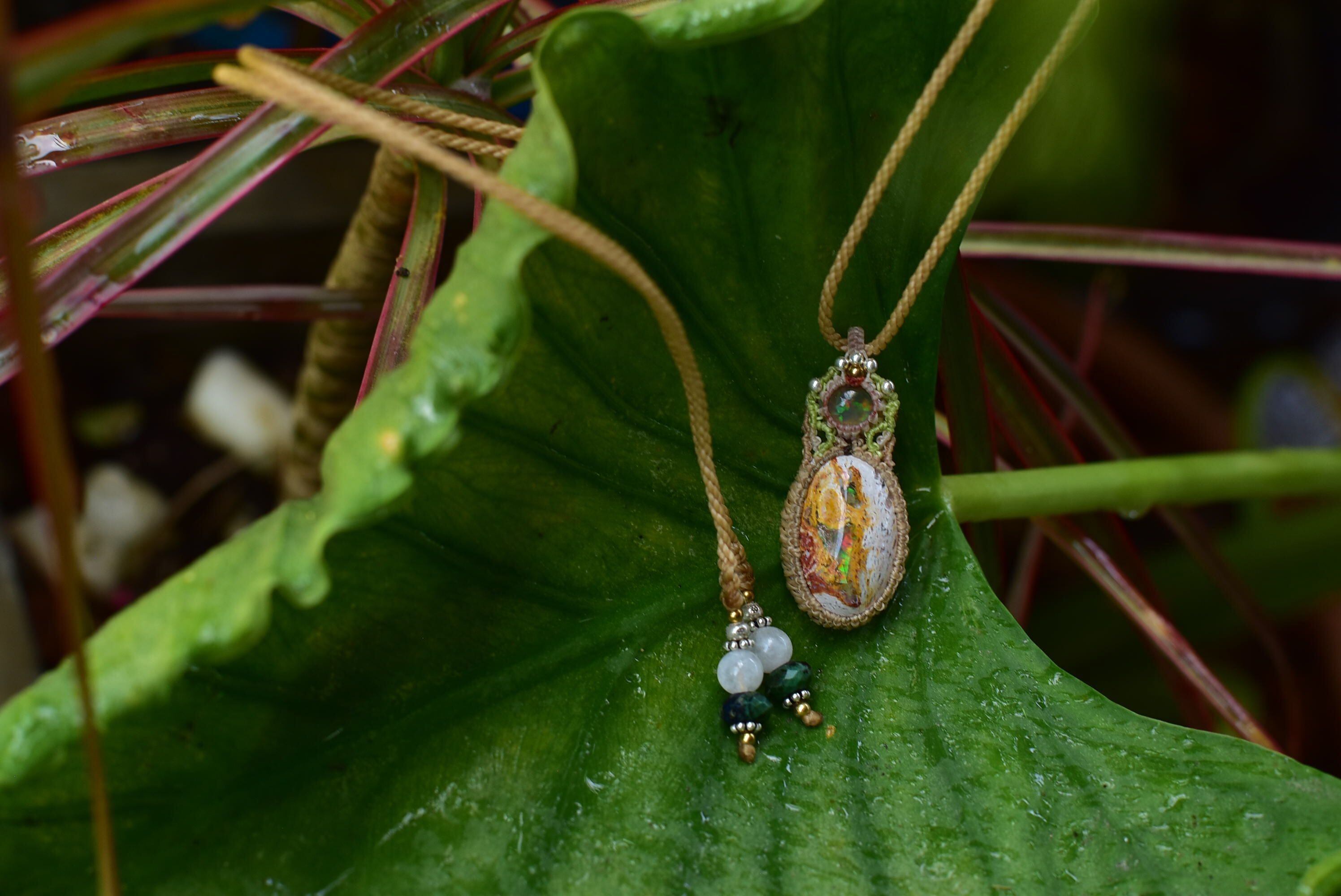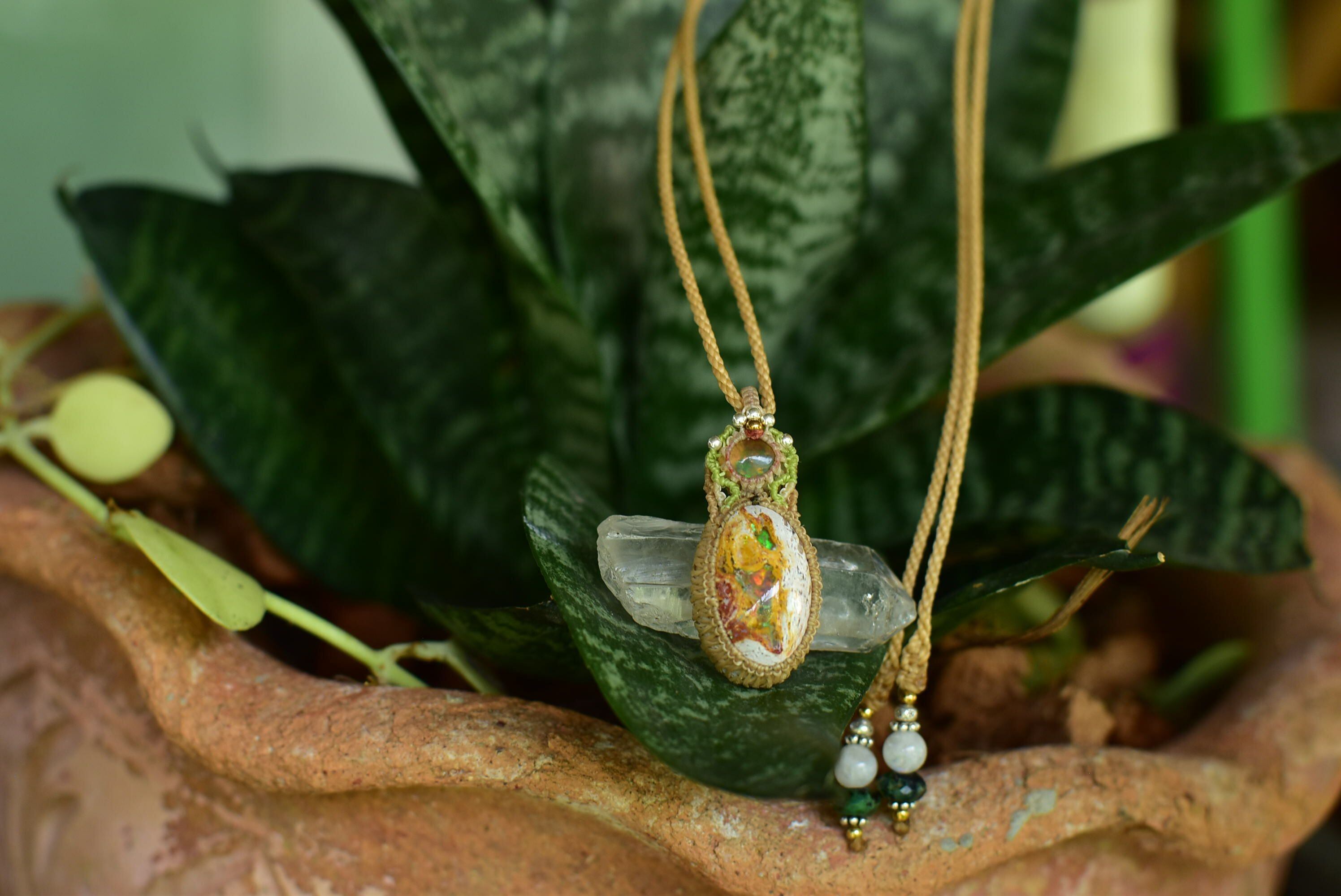 虹色の夢世界★プレシャスオパール カンテラオパール マクラメペンダント opal025