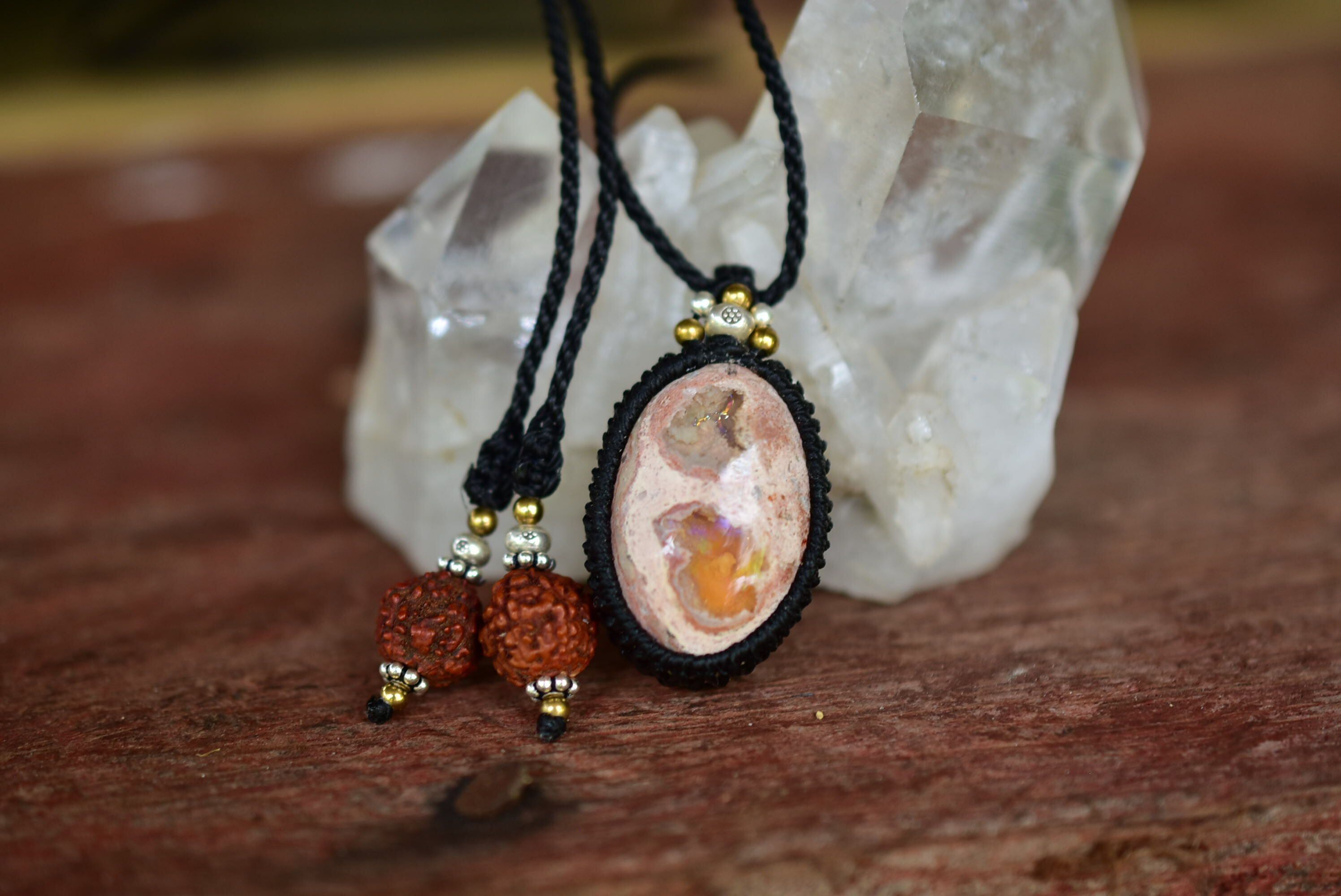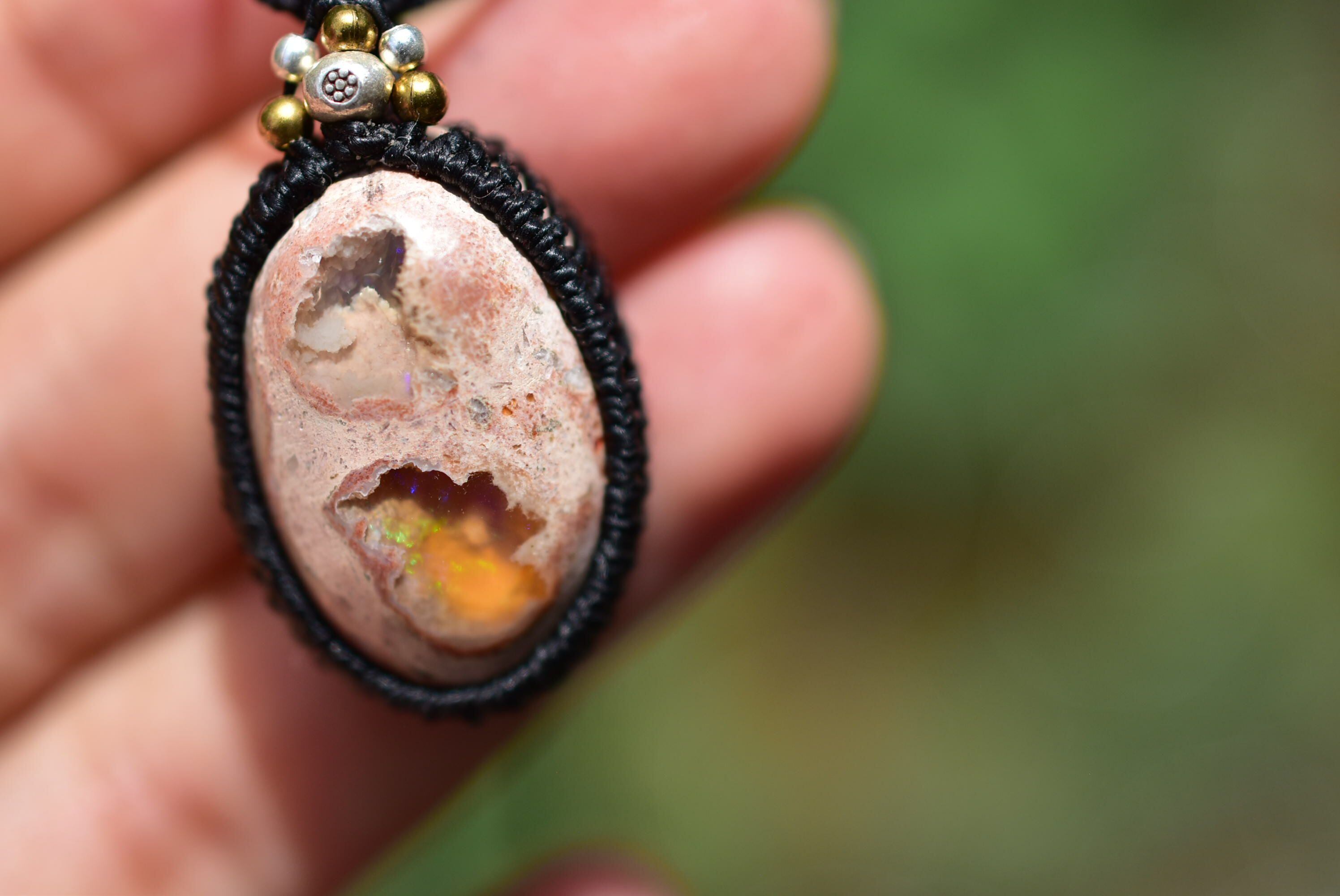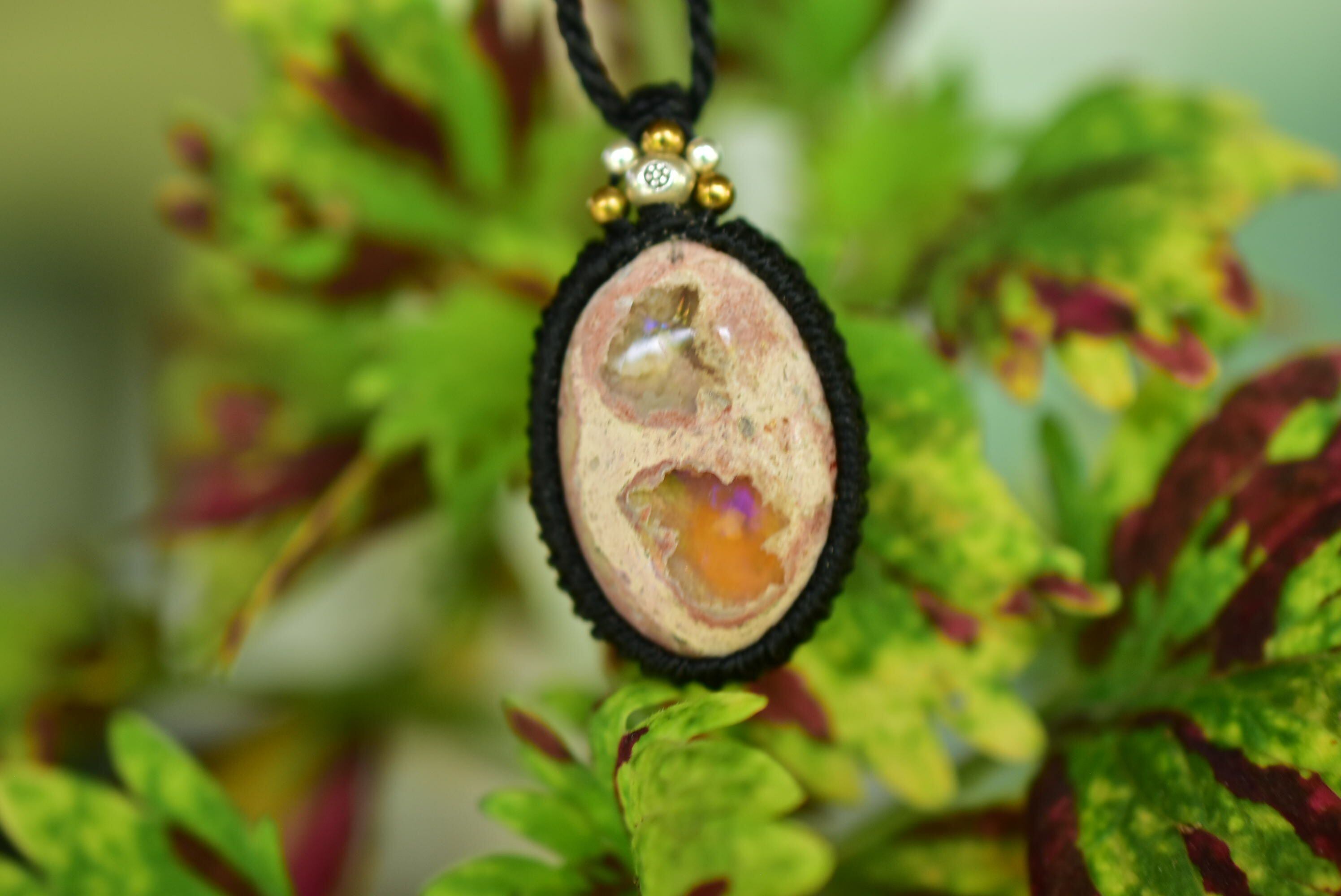 揺らめく秘宝★高品質★カンテラオパール マクラメペンダント opay007