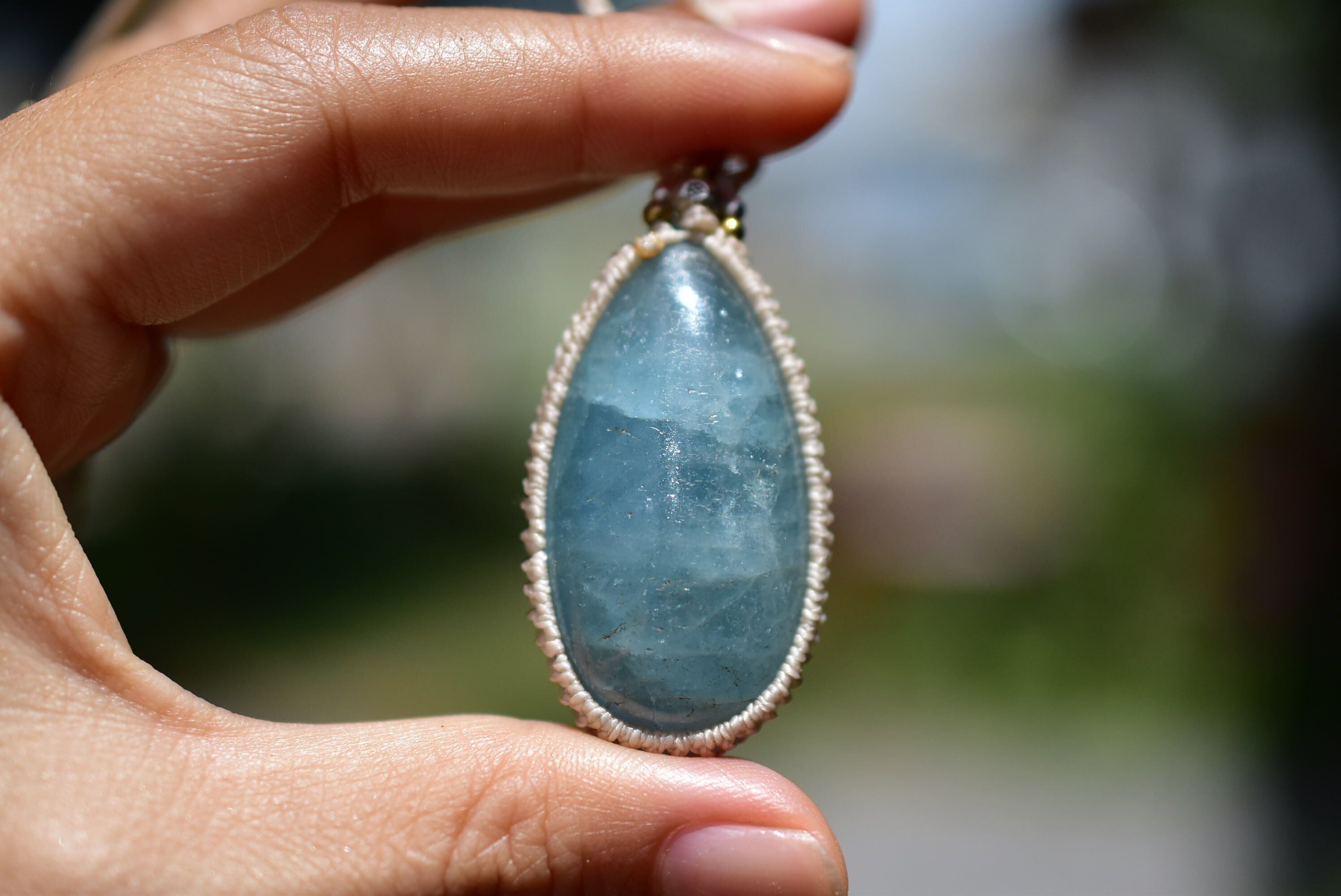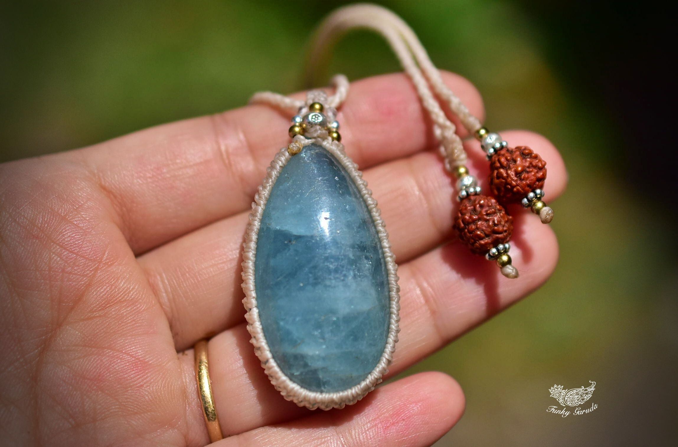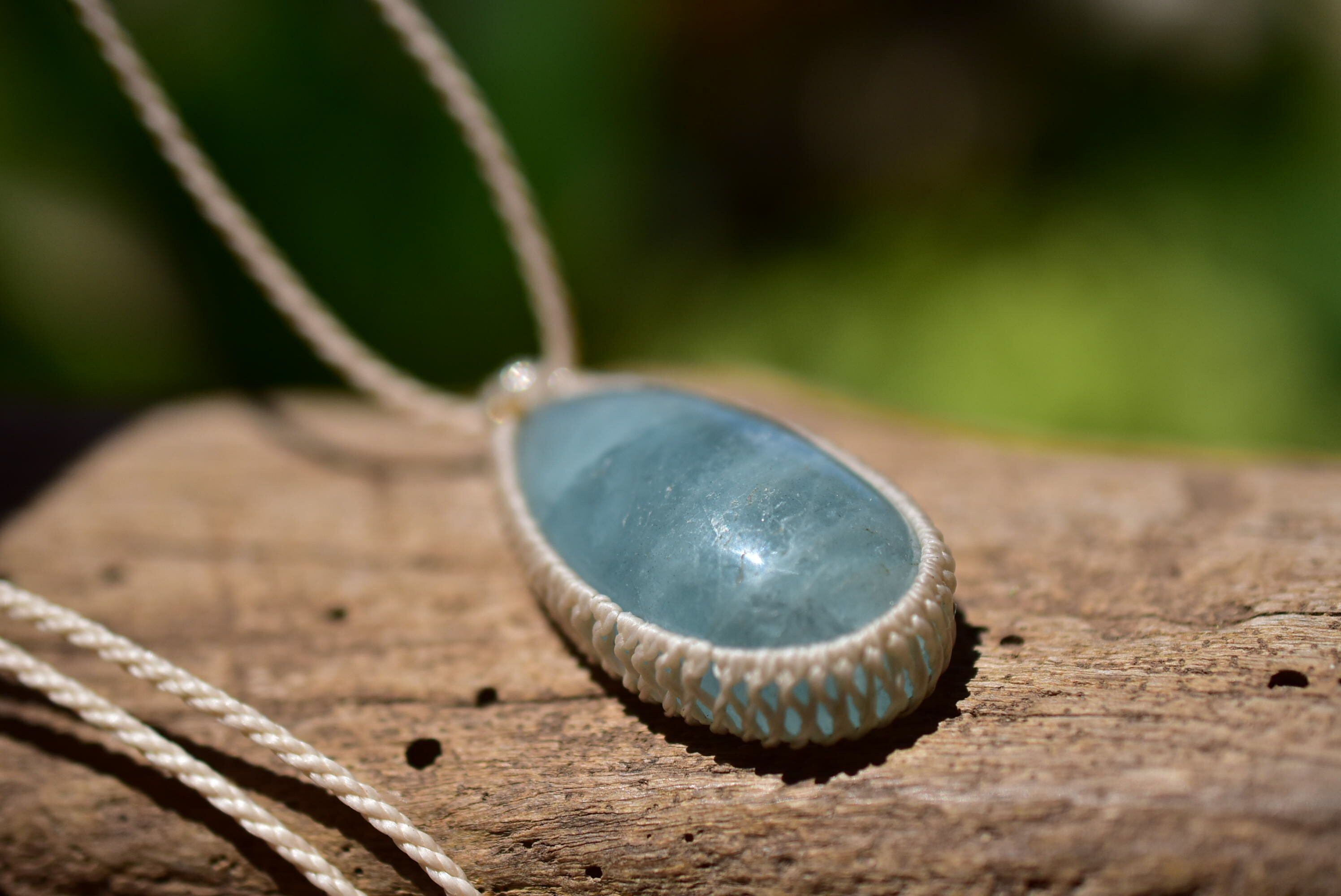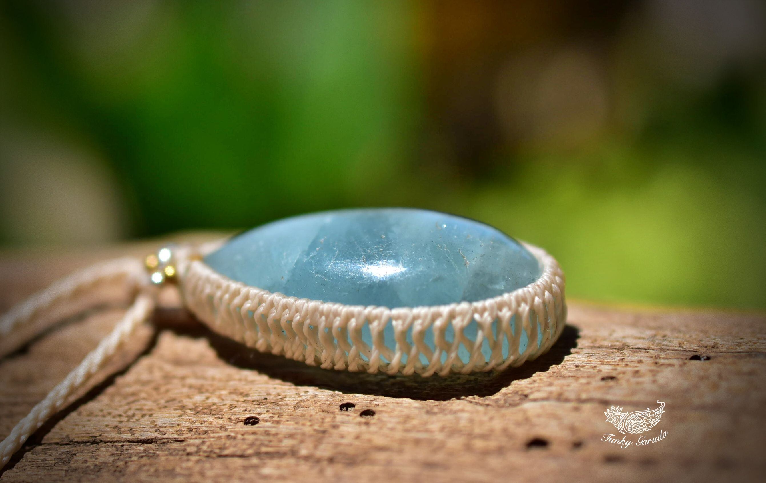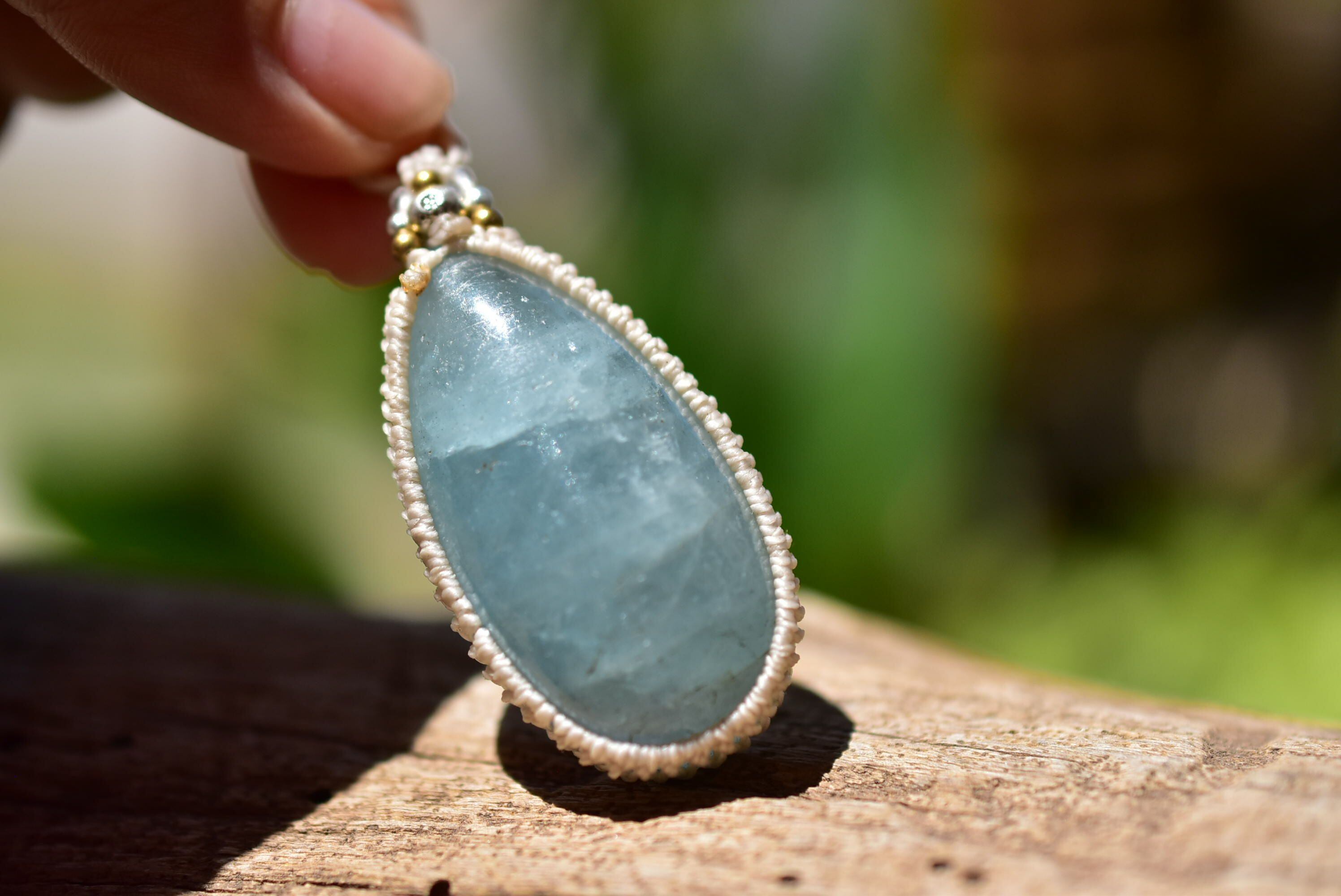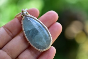 ブルーのそよ風★アクアマリン マクラメペンダントaquy003