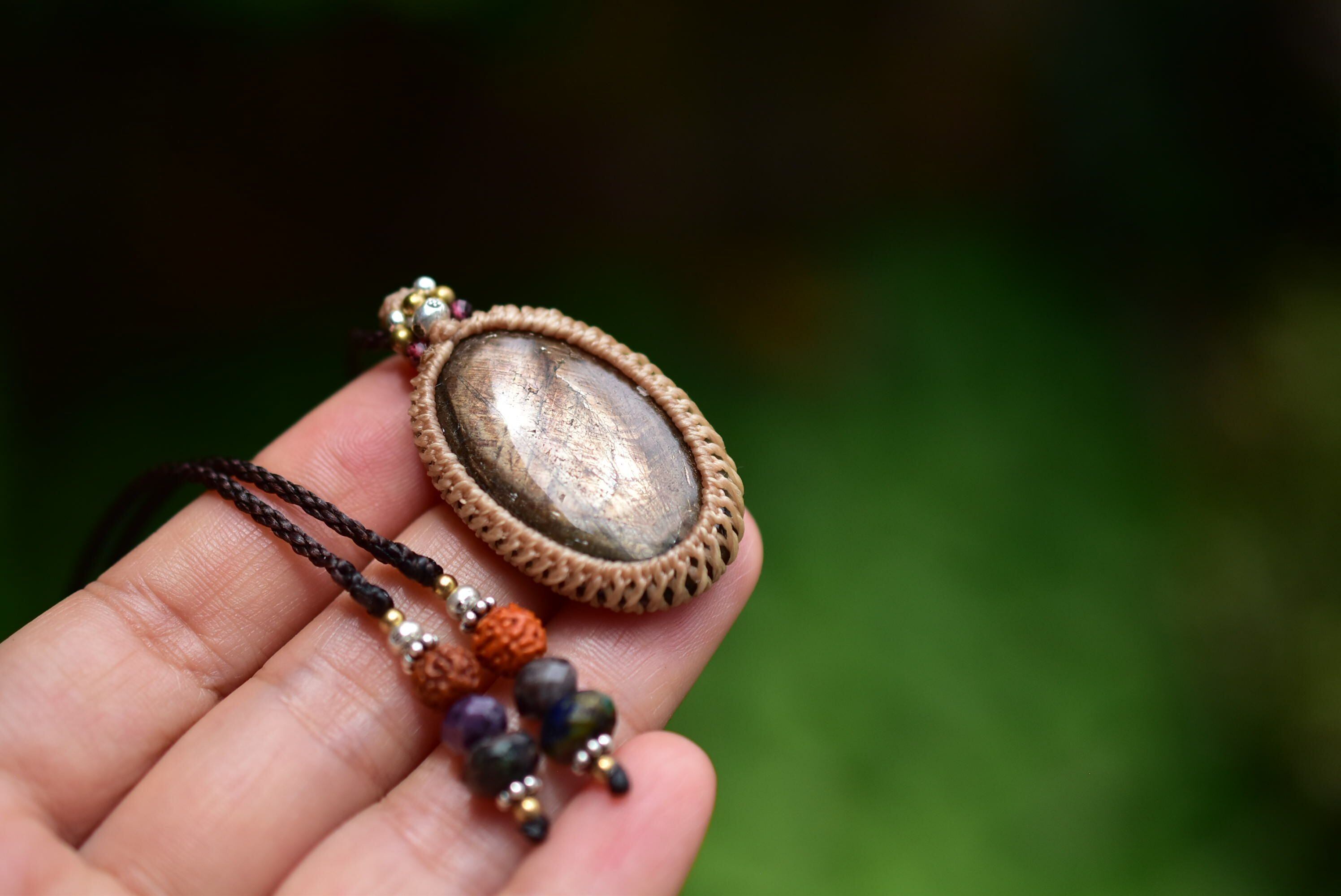明るい輝き★ブラックサファイア マクラメペンダント safy007