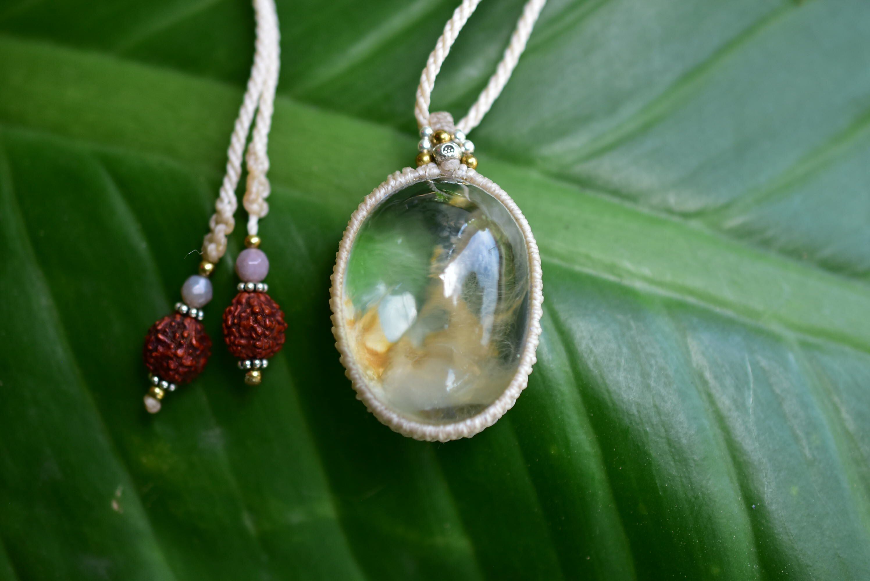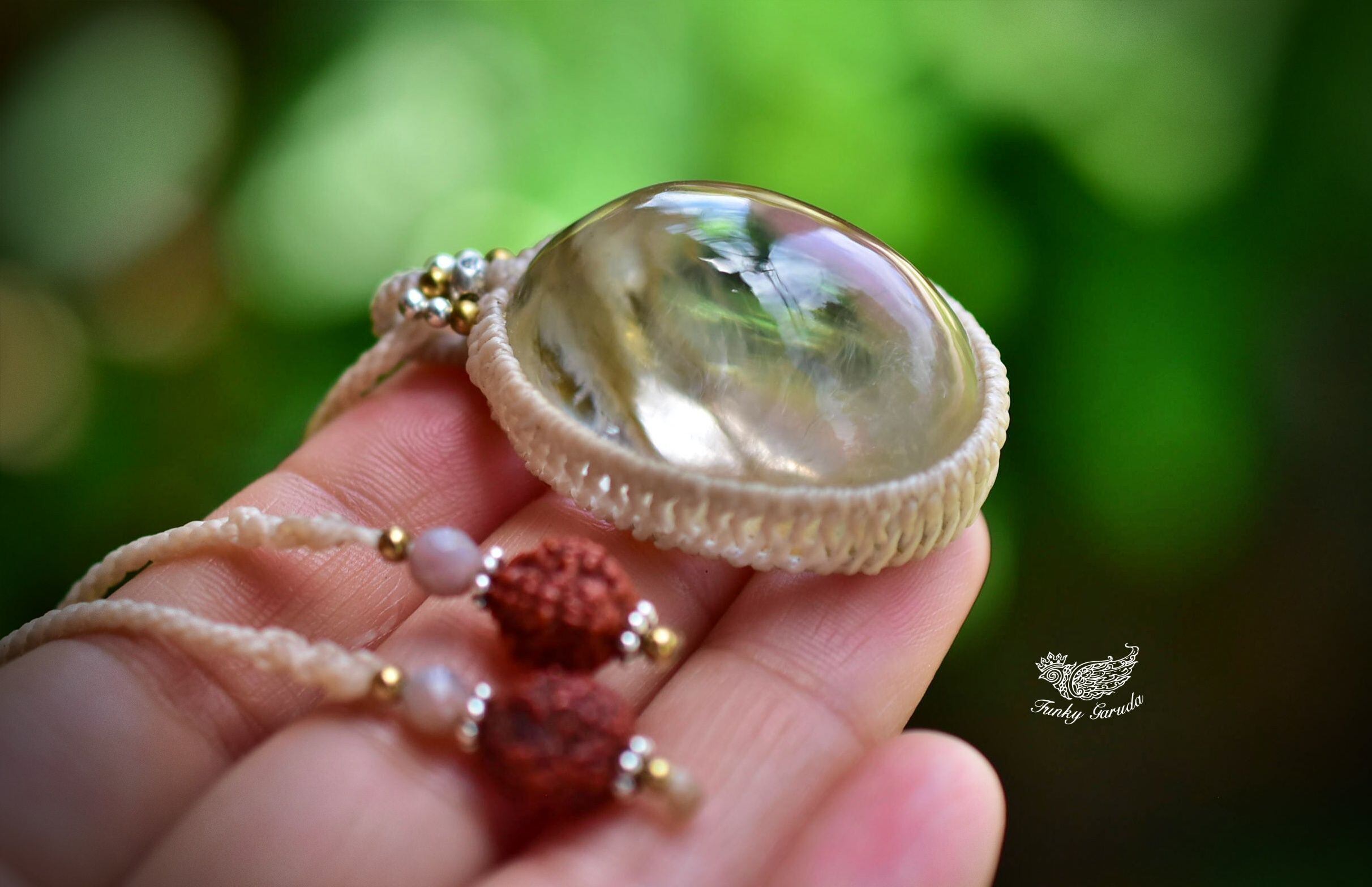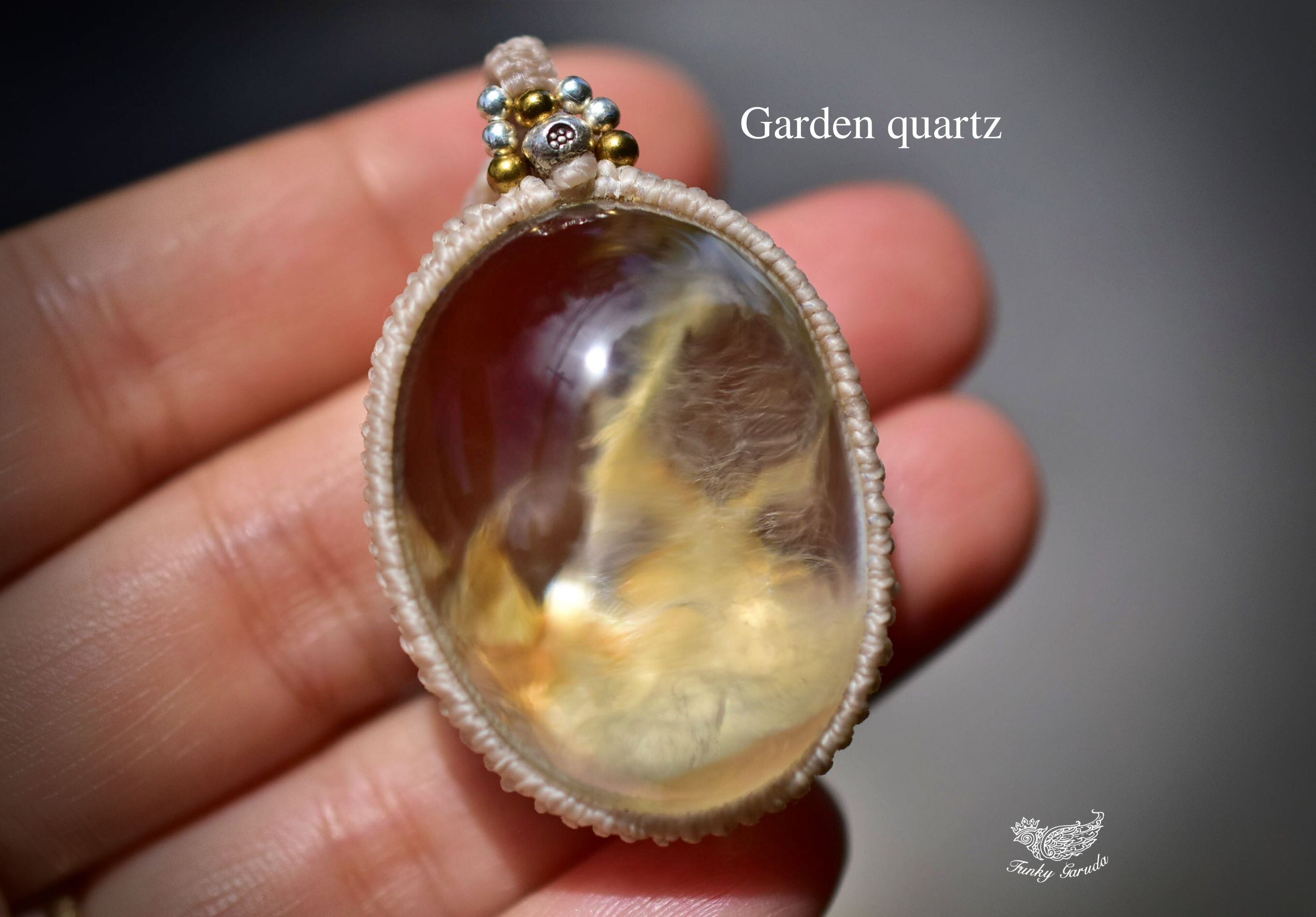 広がる羽★ぷっくり★ガーデンクォーツ マクラメペンダント gy067