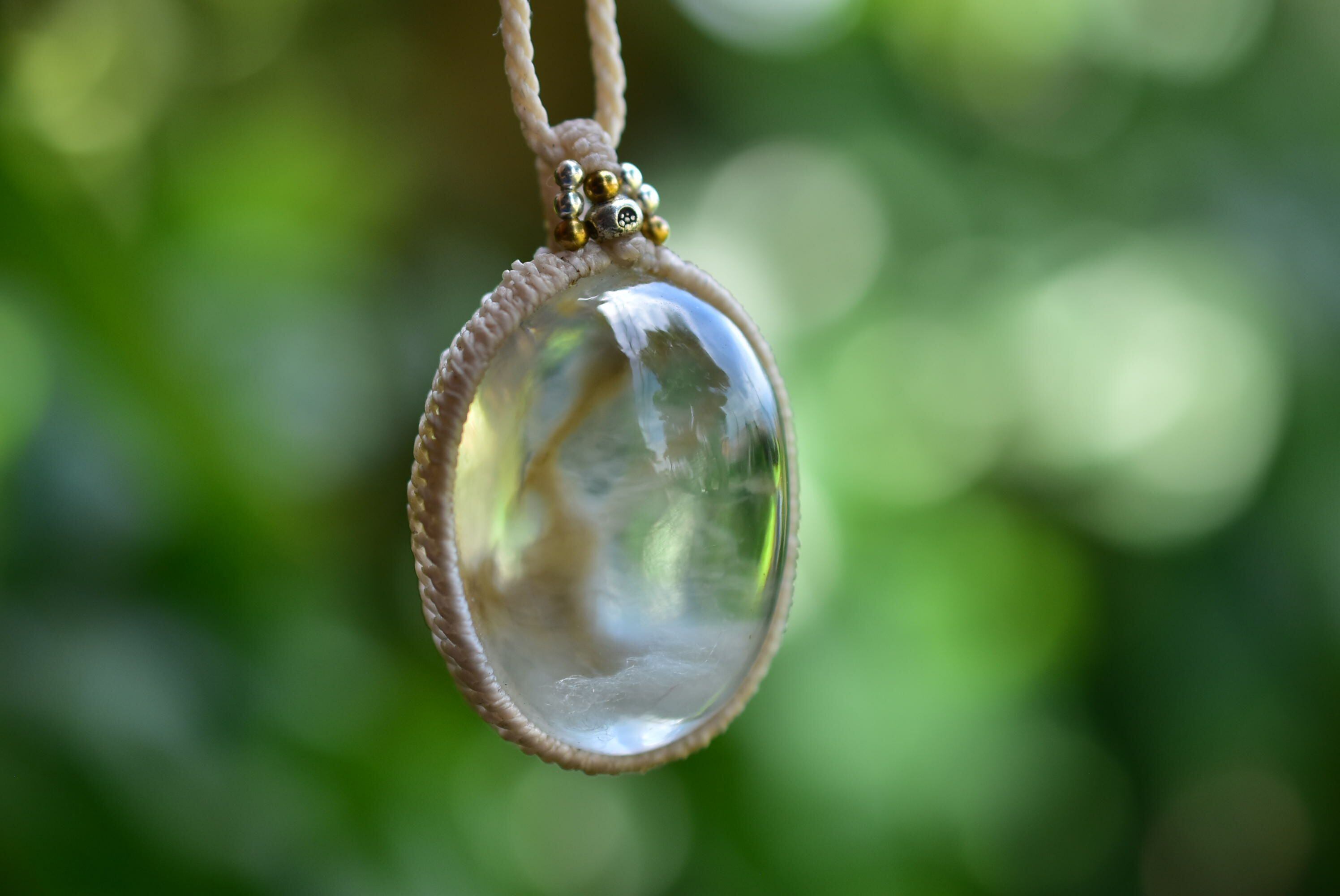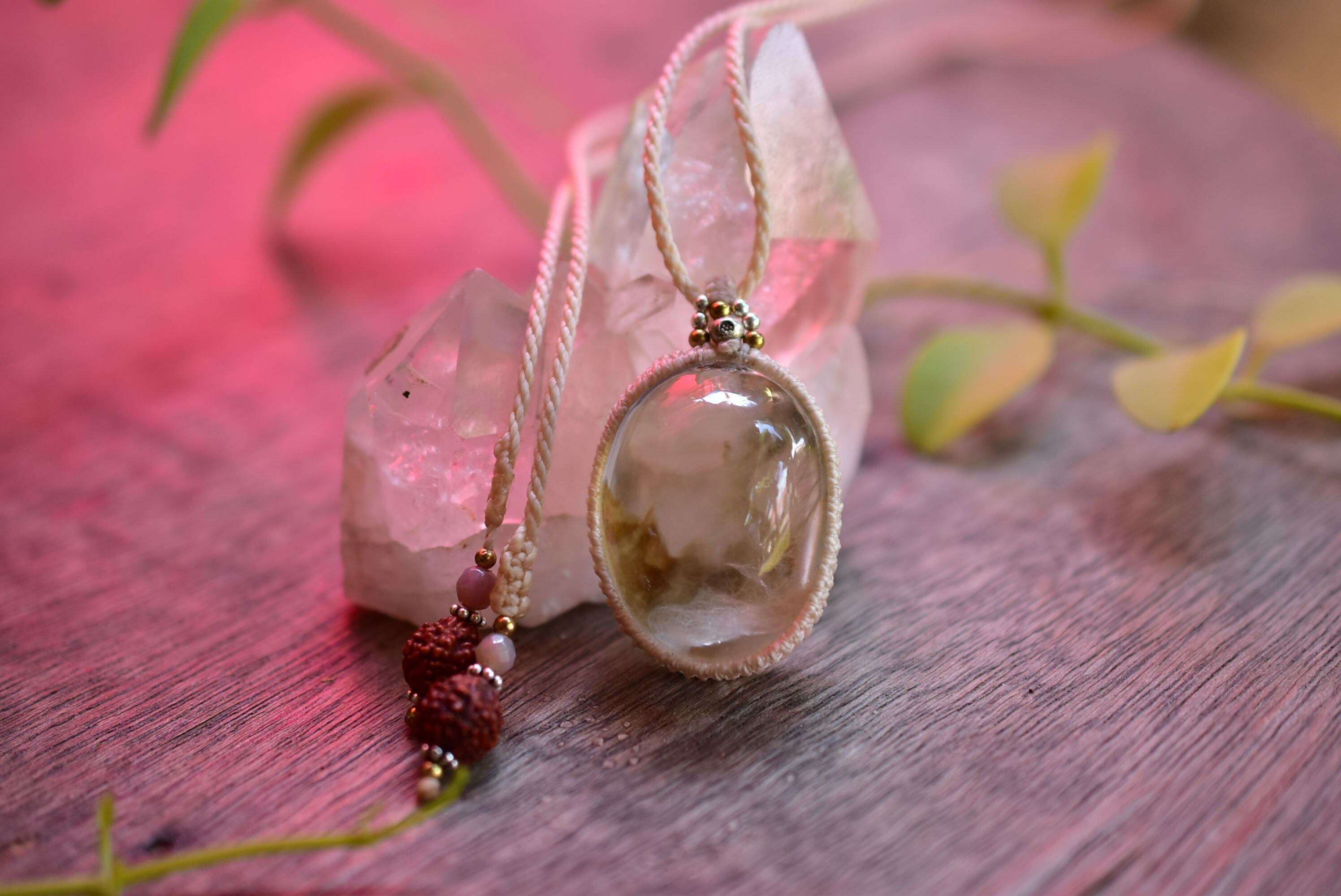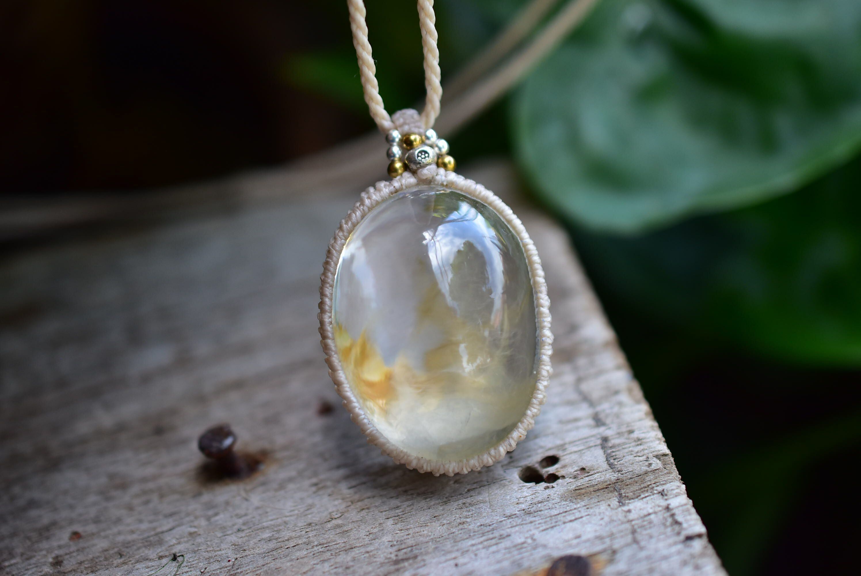 広がる羽★ぷっくり★ガーデンクォーツ マクラメペンダント gy067