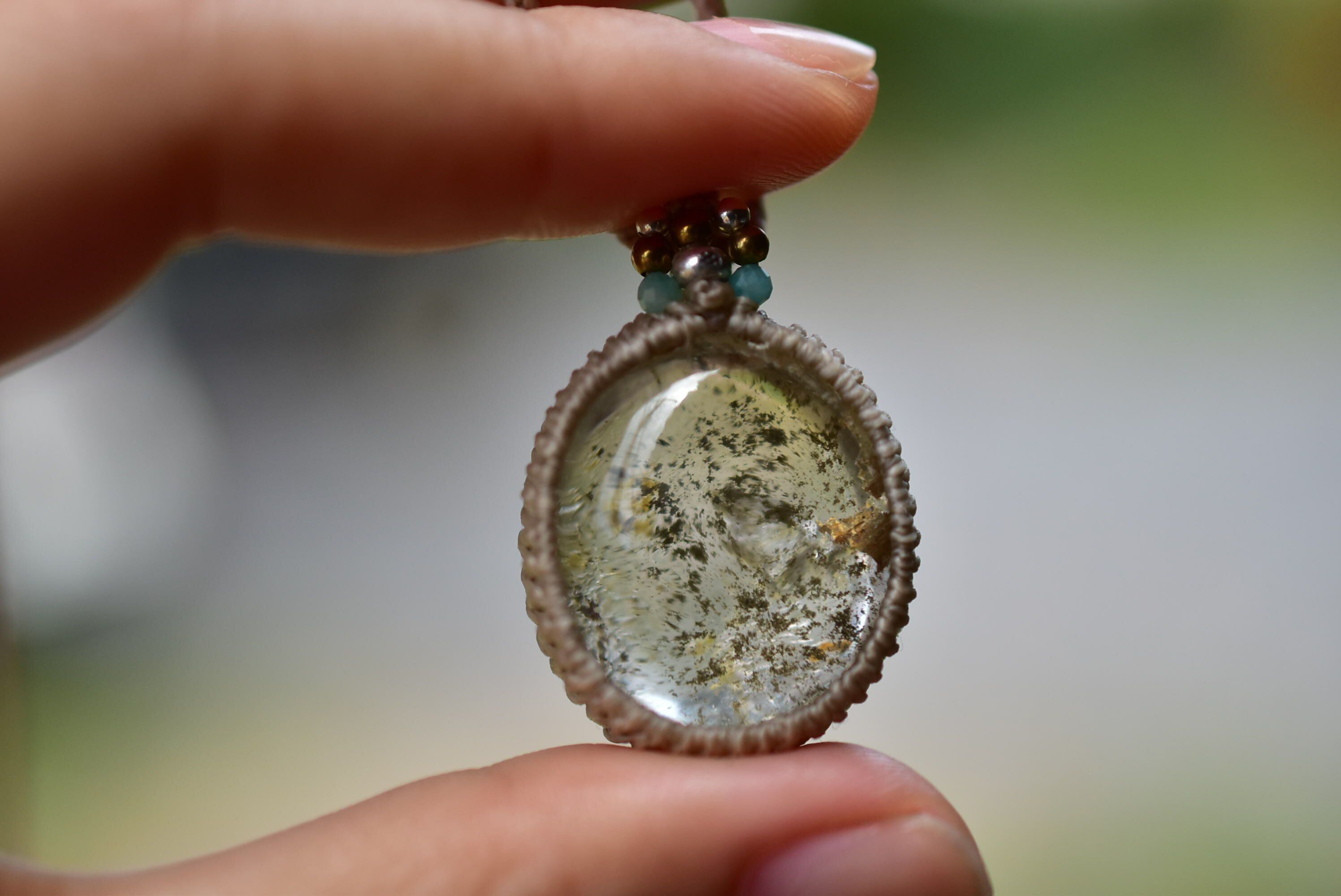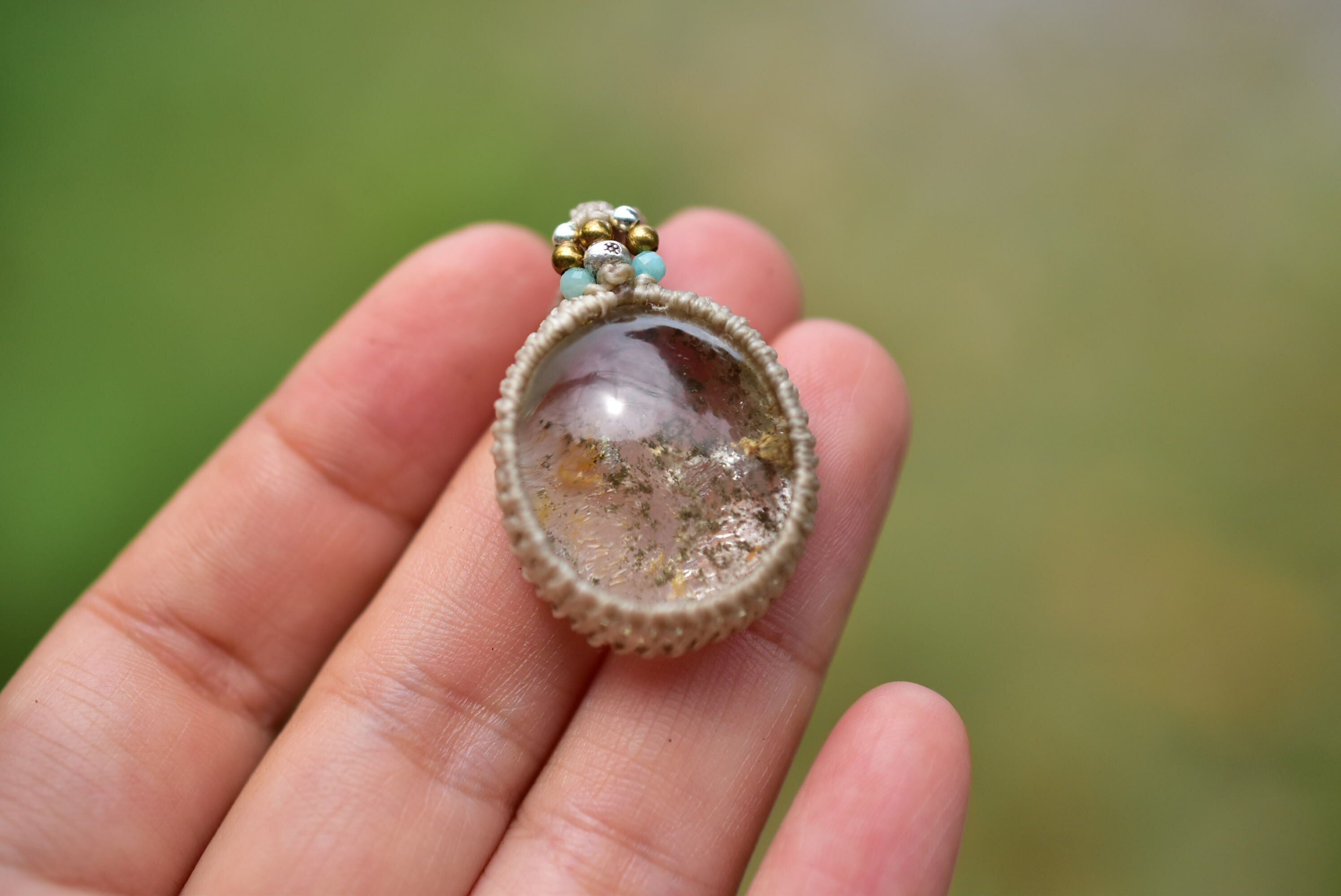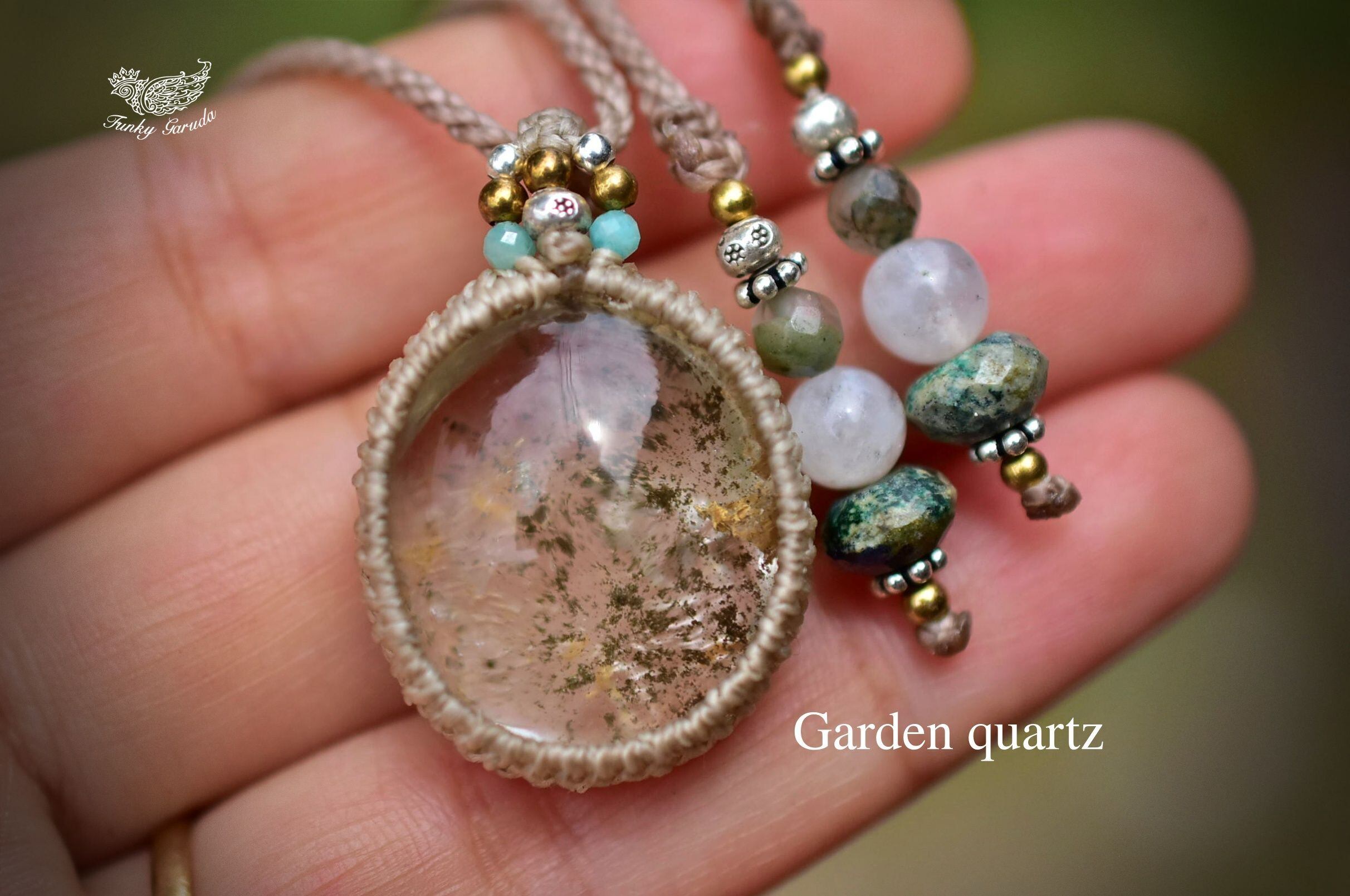 舞うクローライト★ガーデンクォーツマクラメペンダント gy068