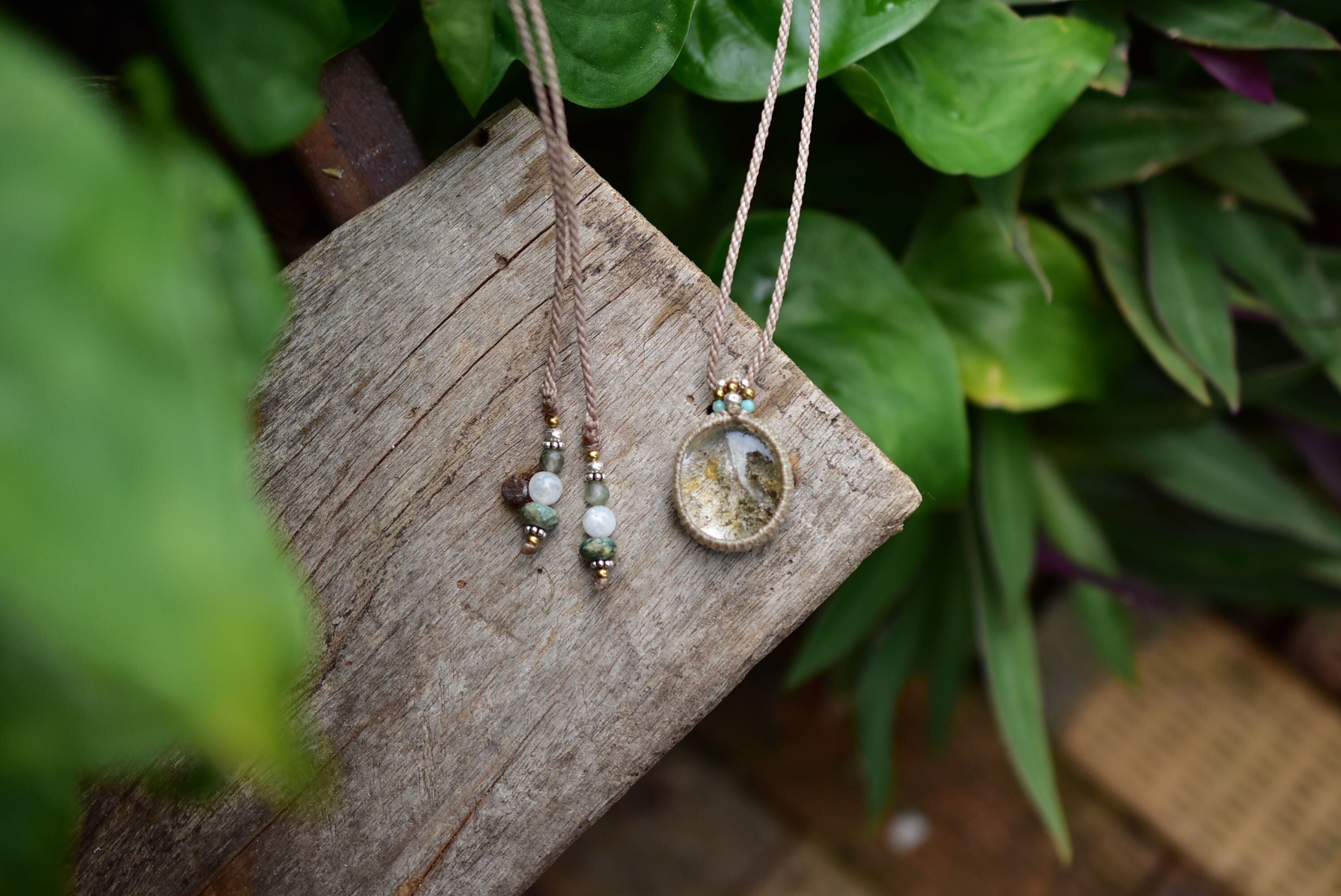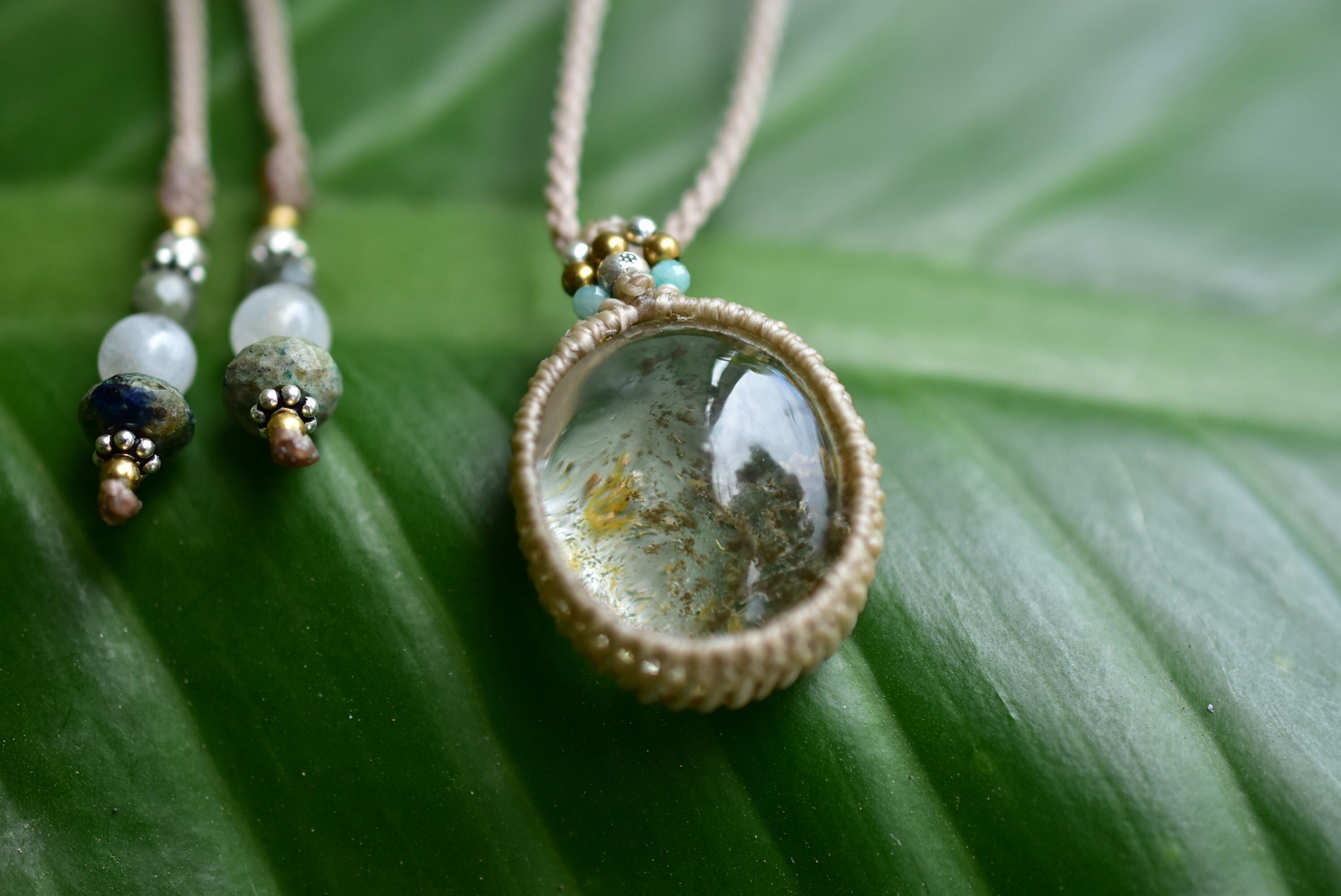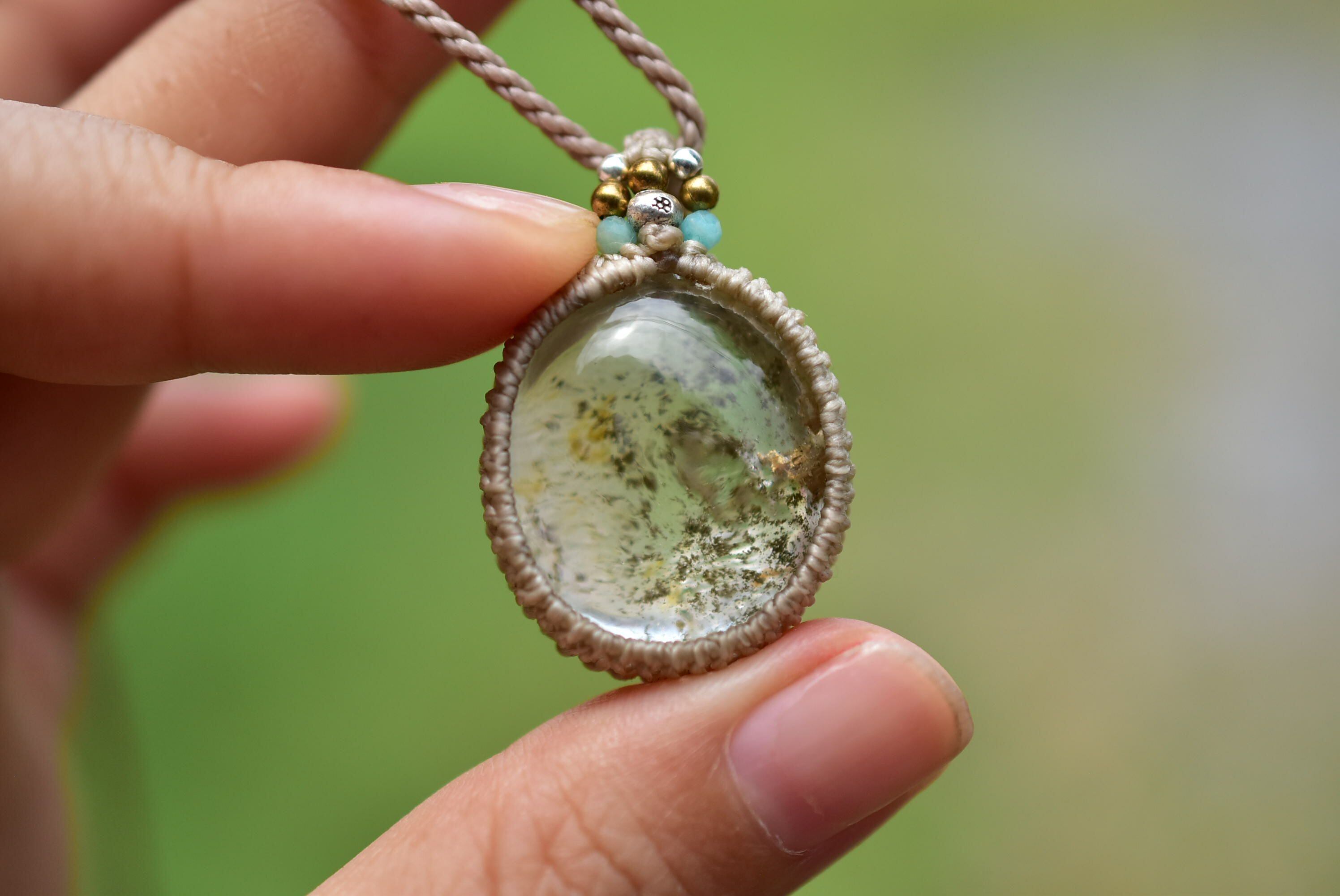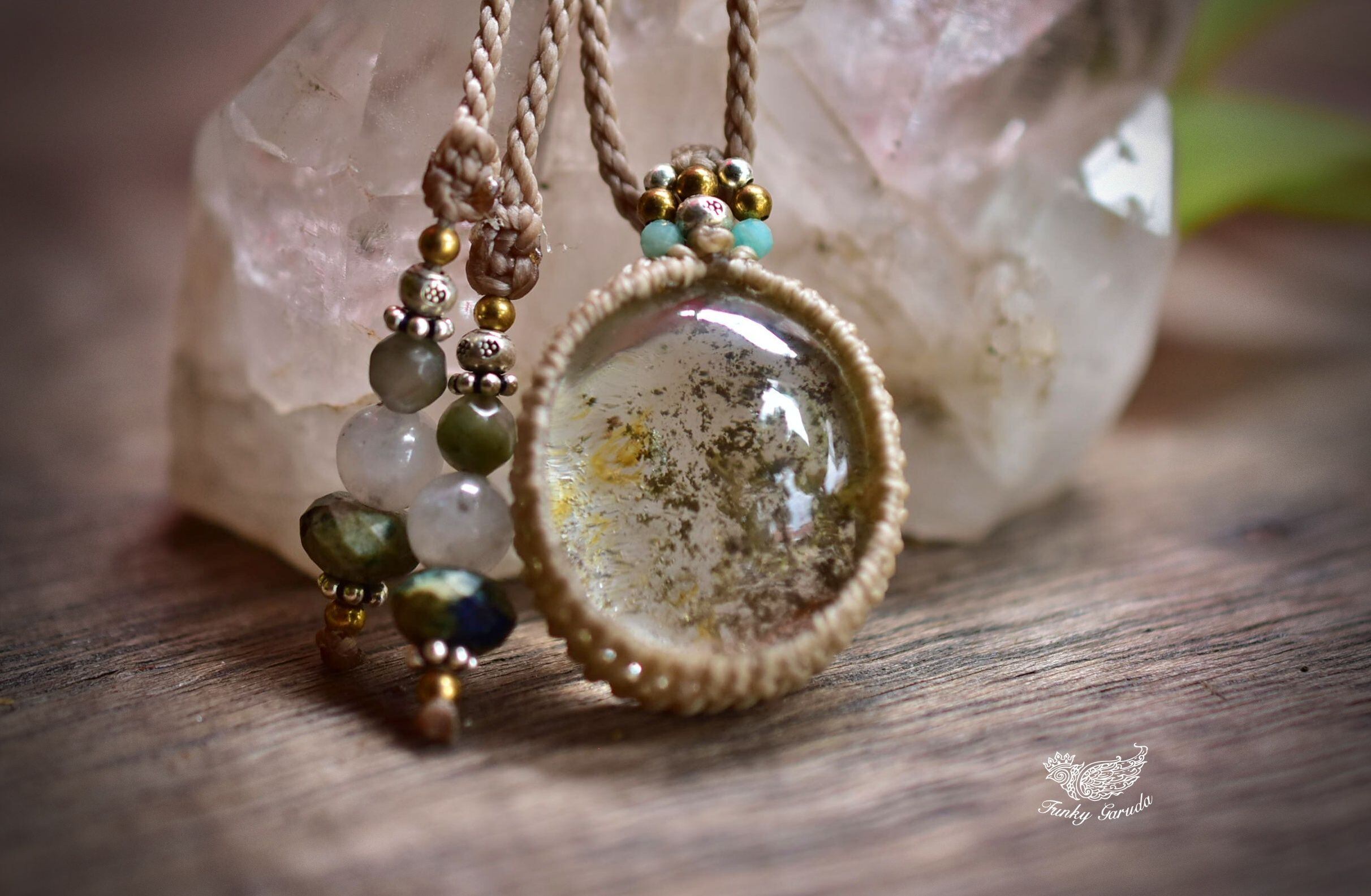 舞うクローライト★ガーデンクォーツマクラメペンダント gy068
