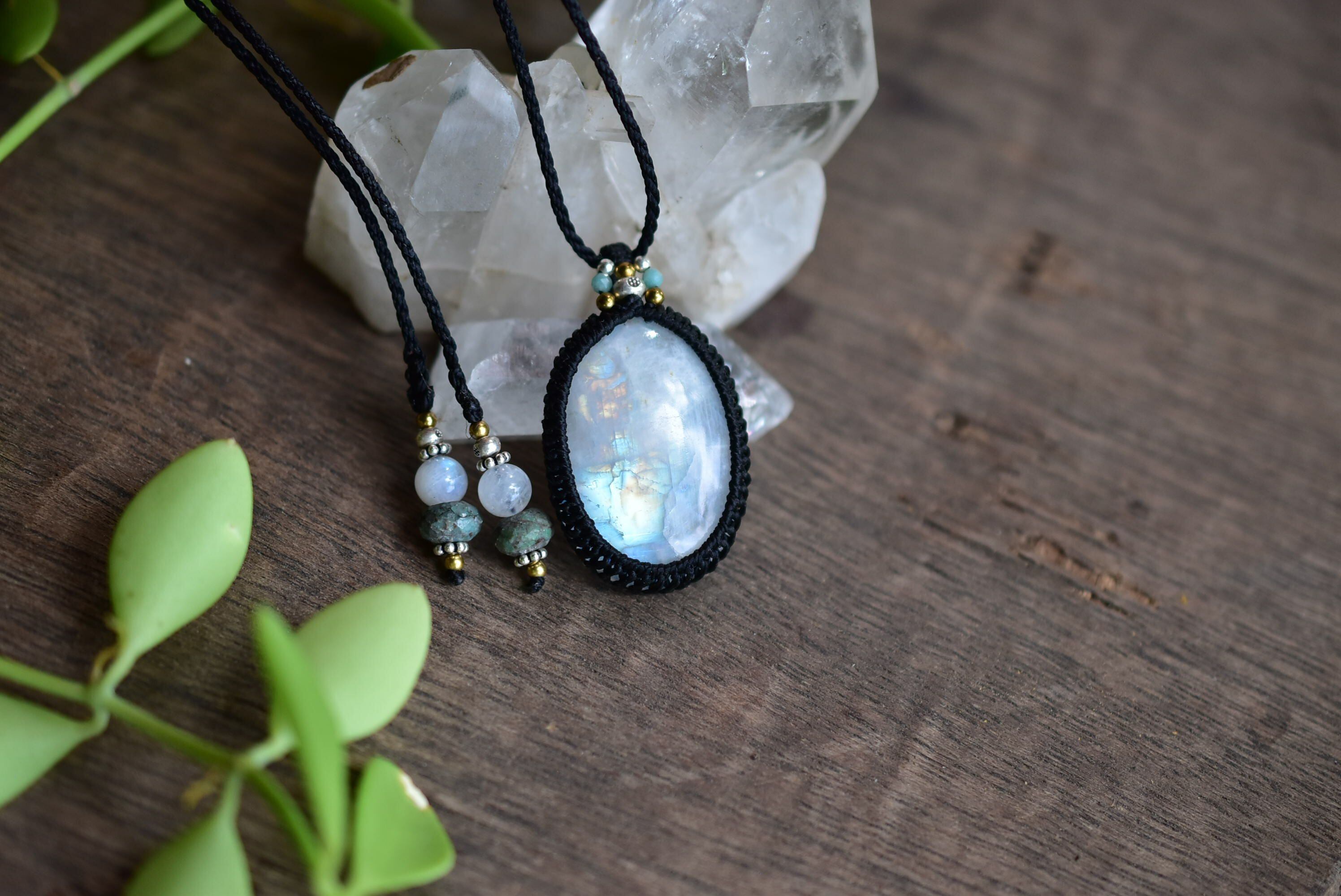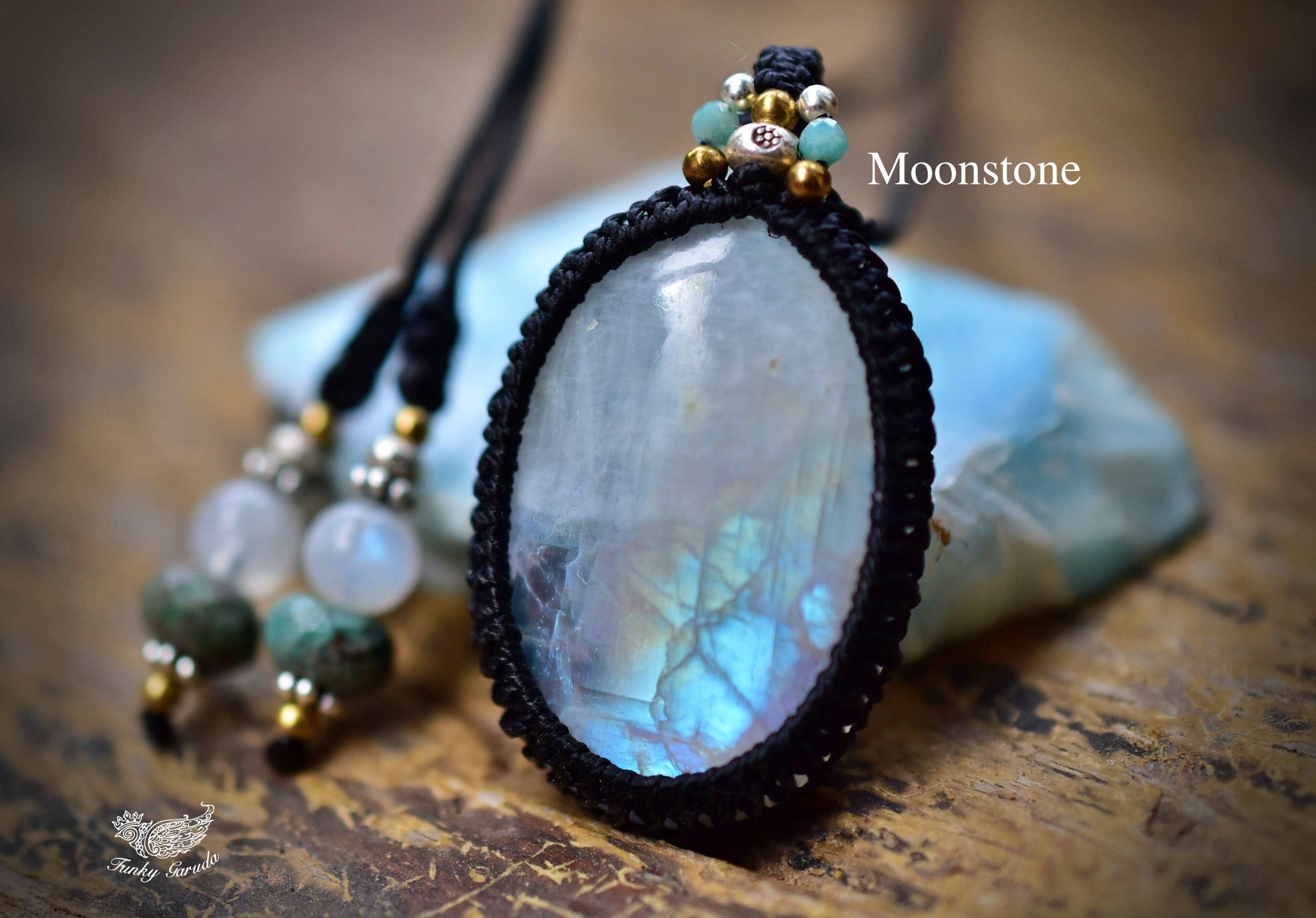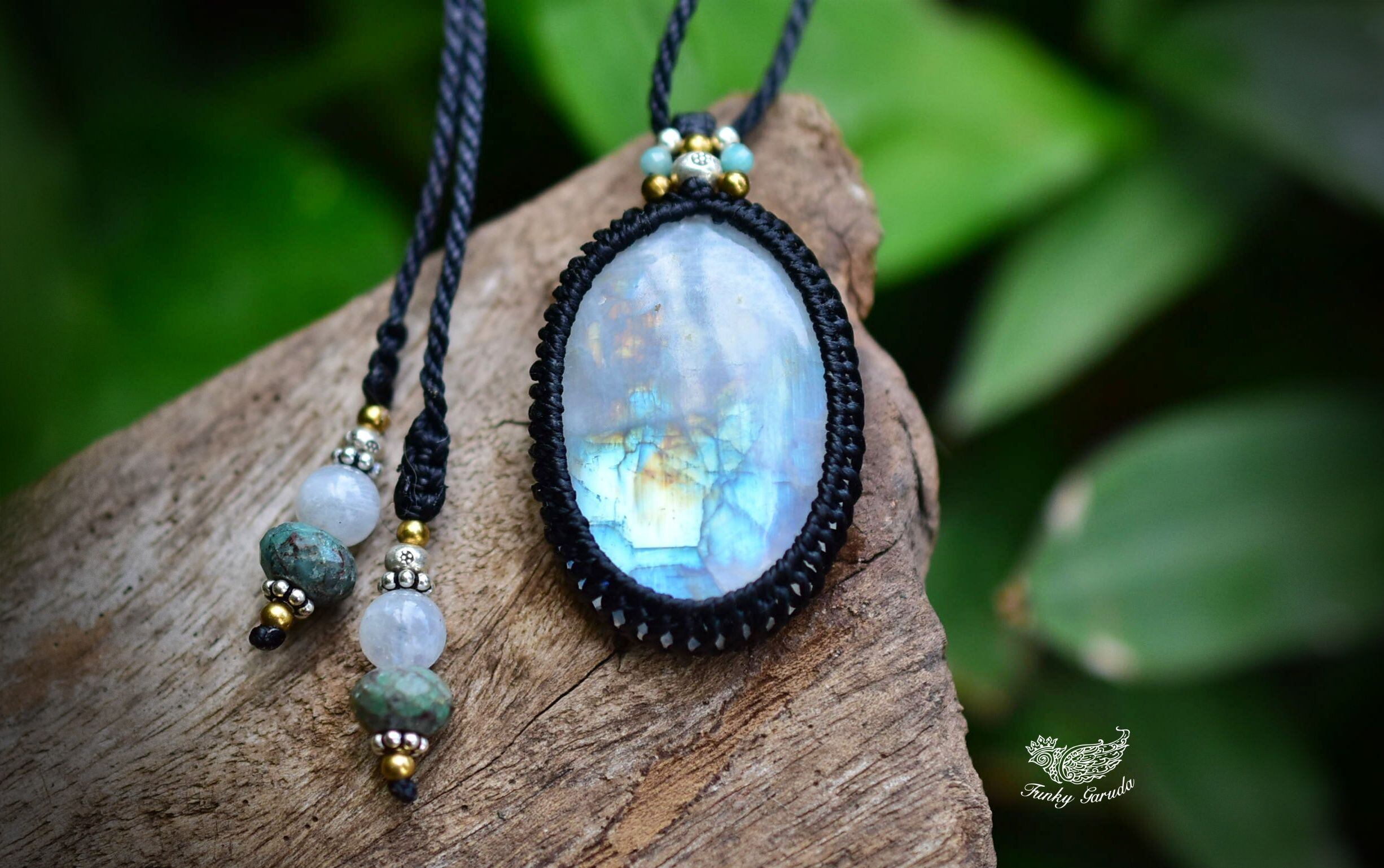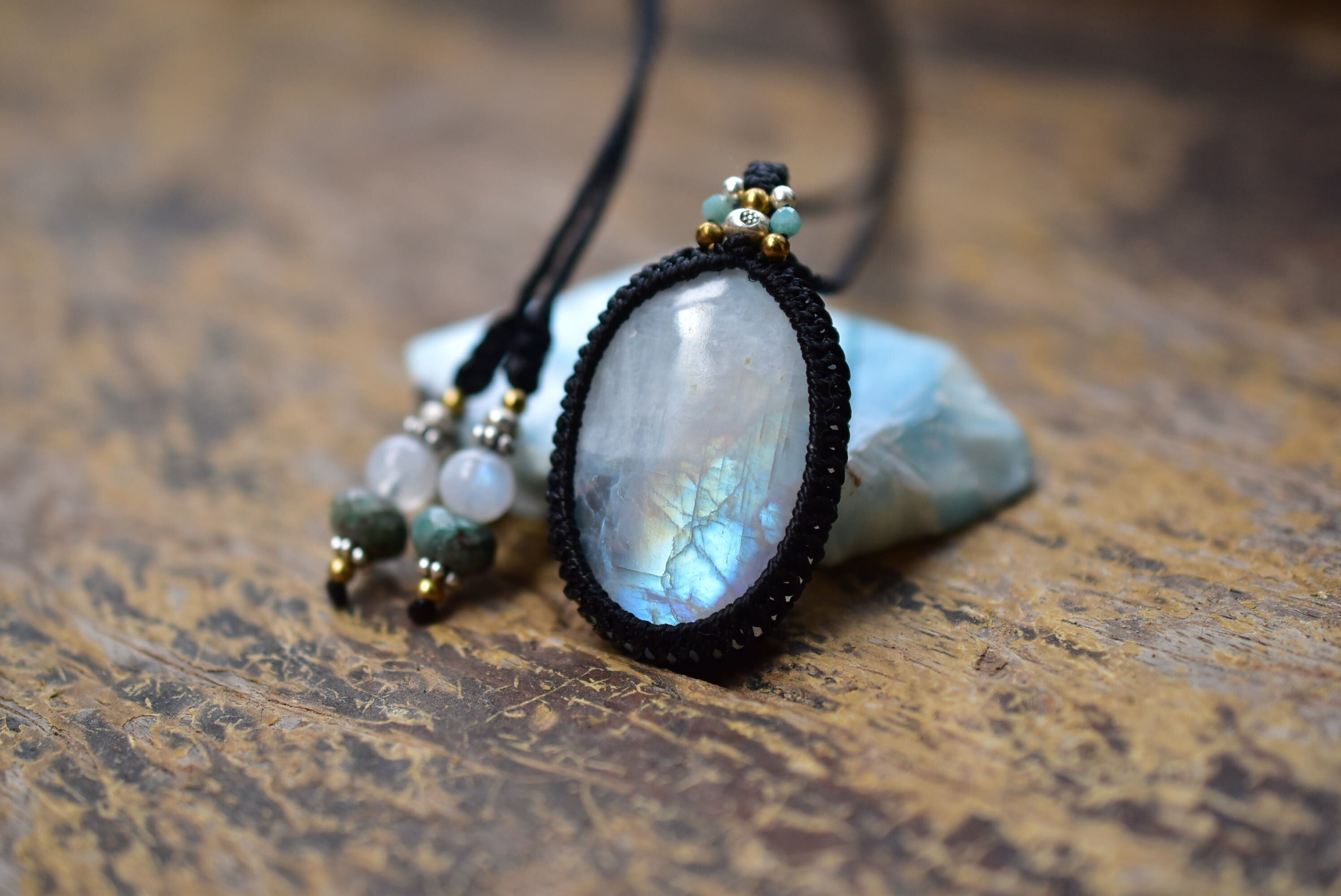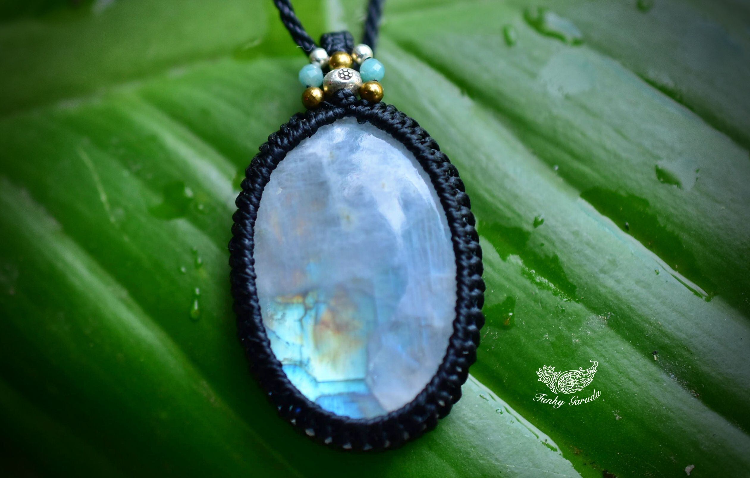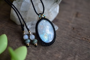 淑やかな月の輝き★レインボームーンストーン マクラメペンダント moony011