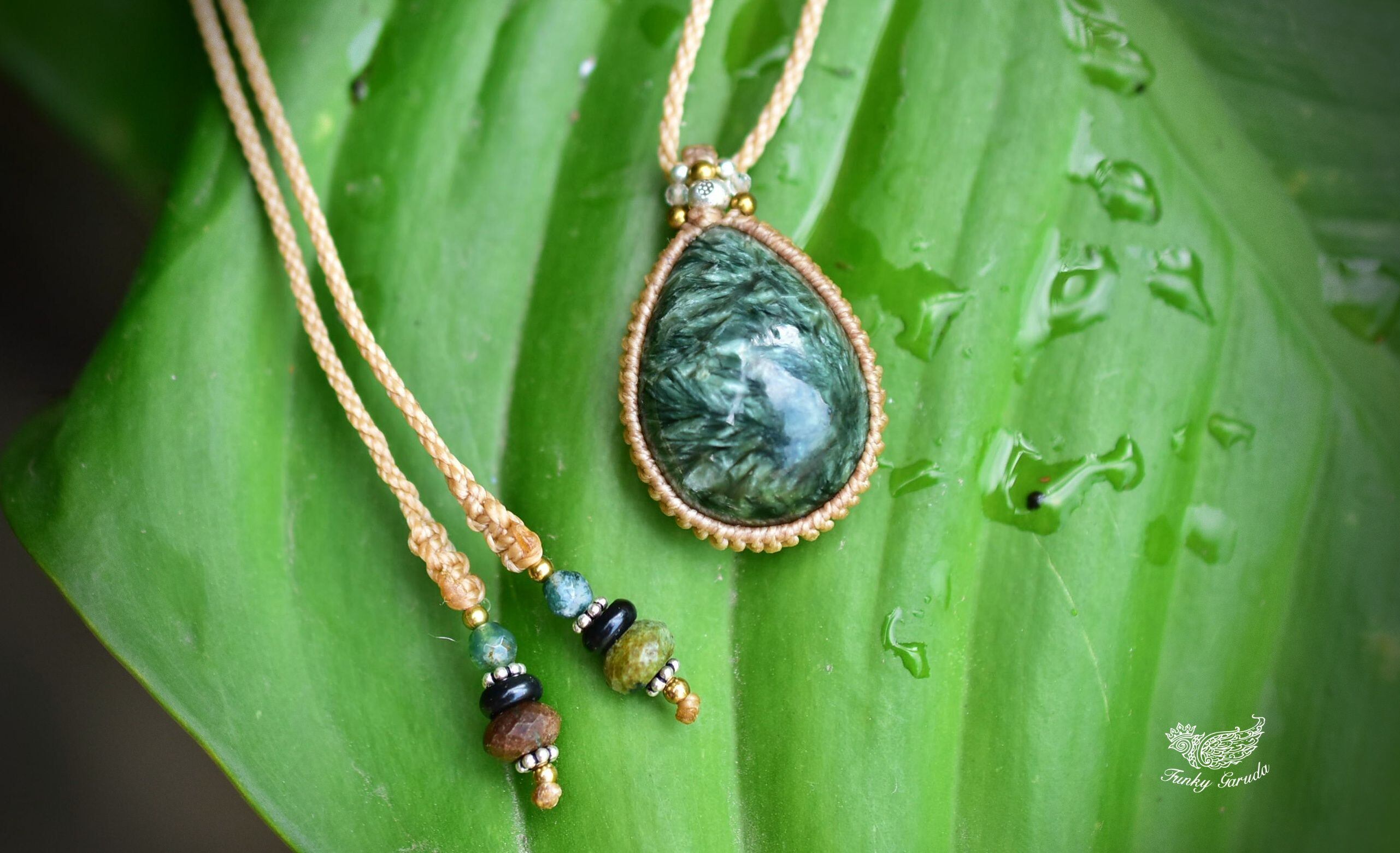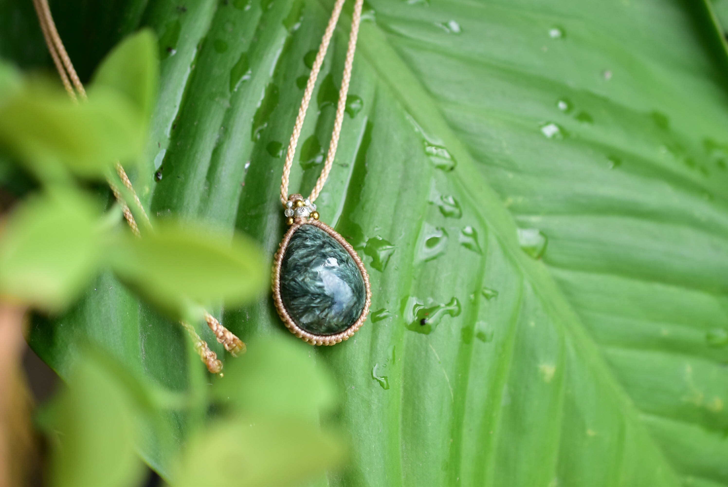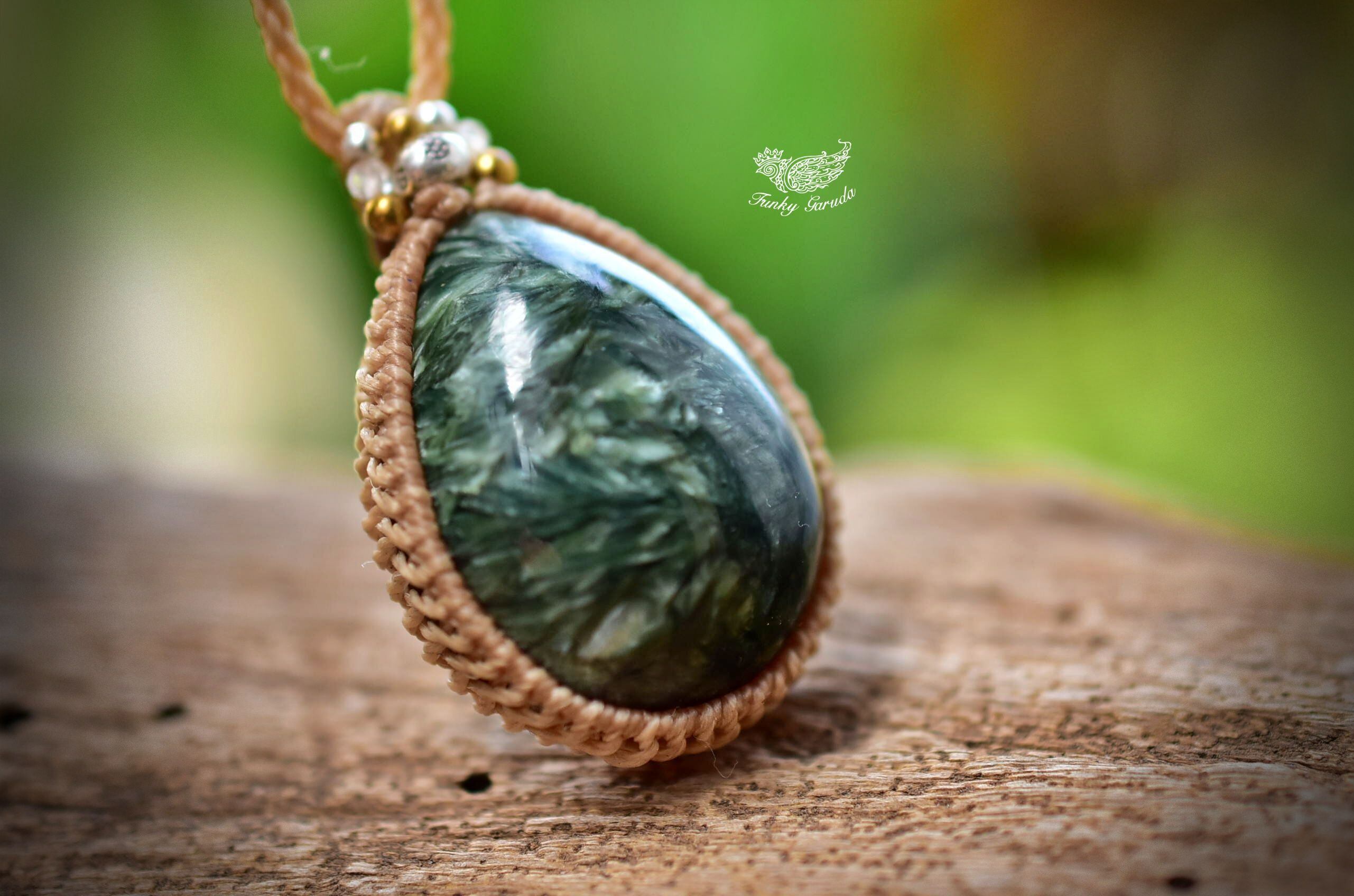 グリーンフェザー★セラフィナイト マクラメペンダント sery004