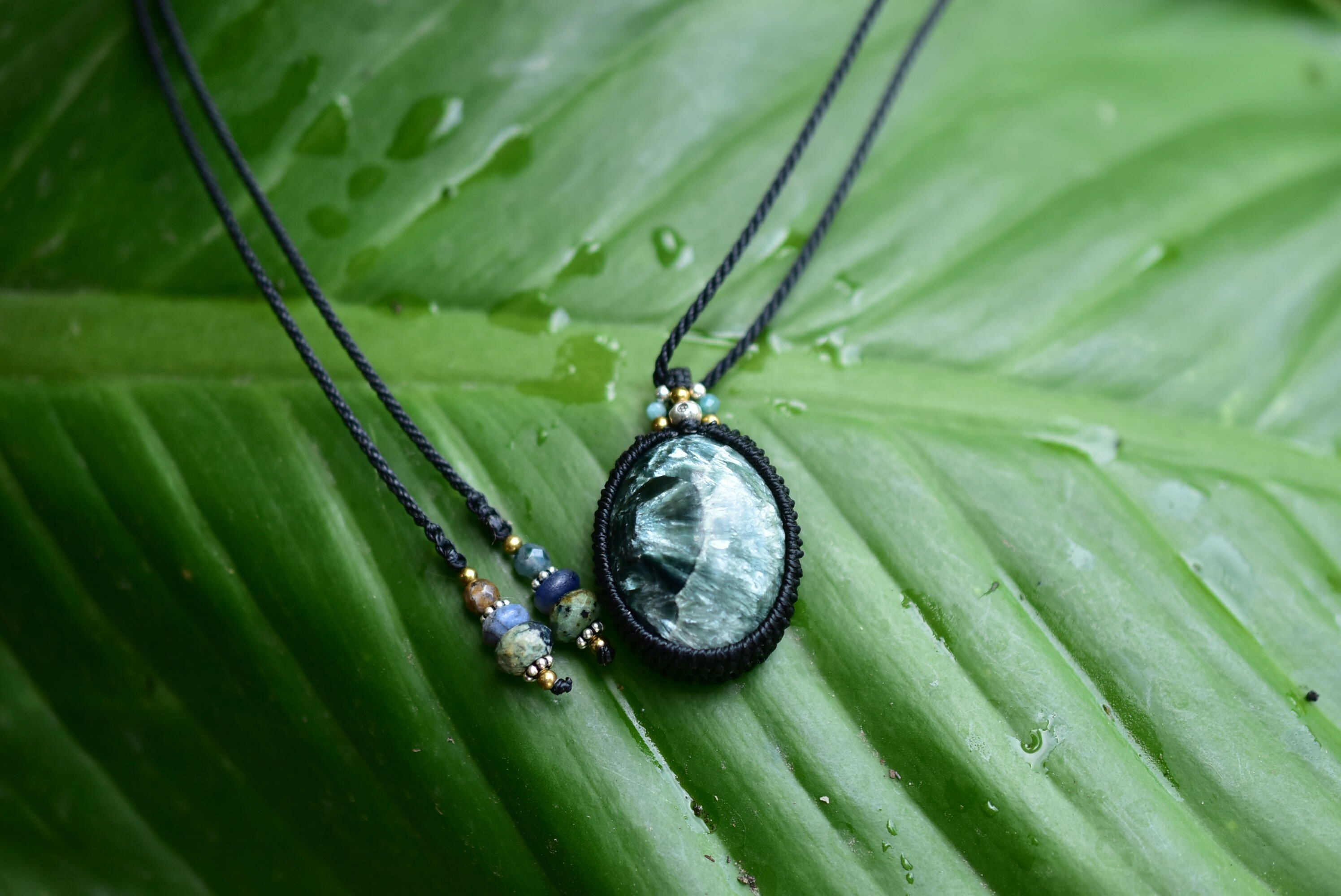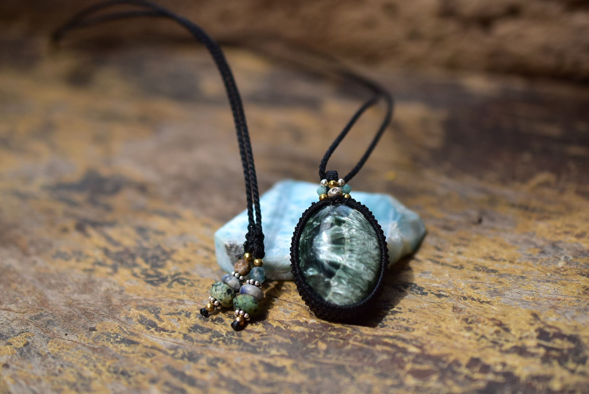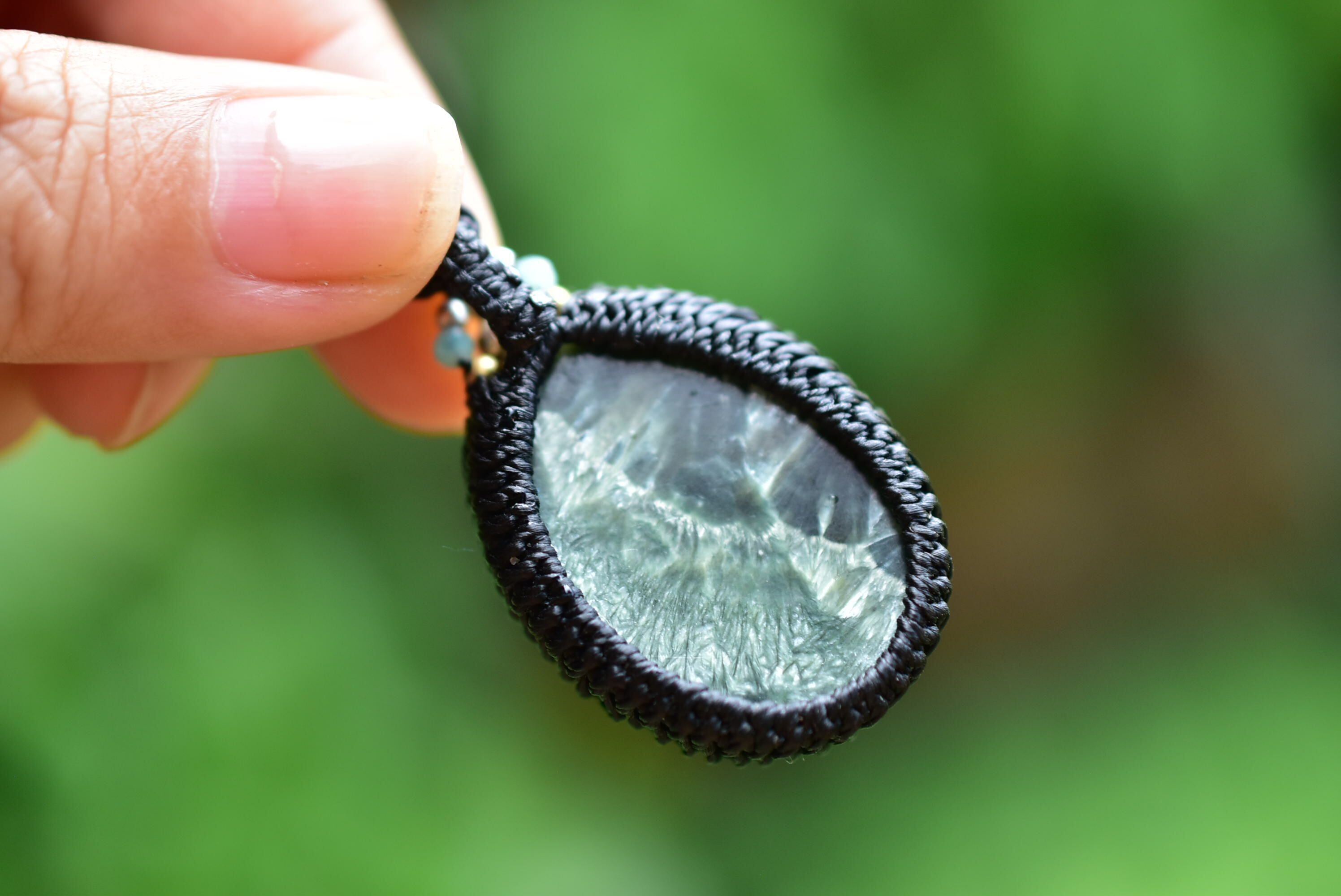 広がる白翼★セラフィナイト シンプルマクラメペンダント sery005