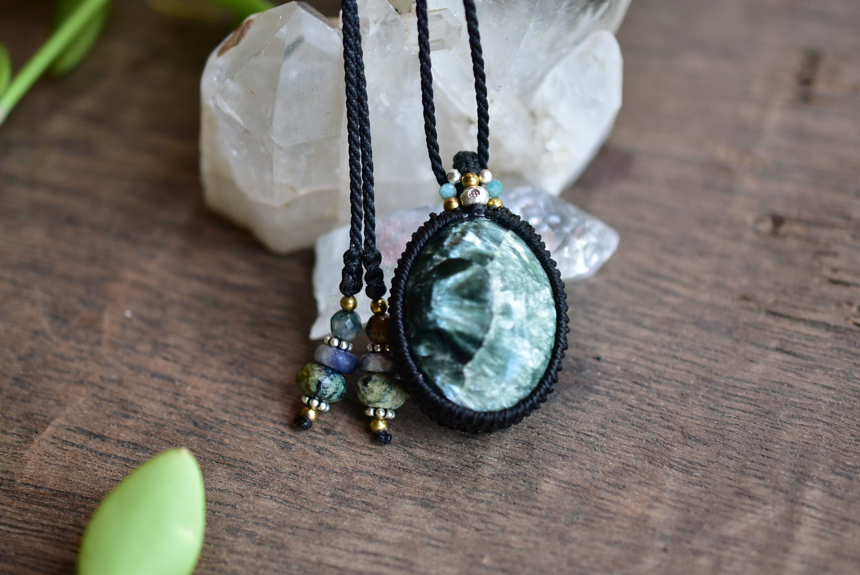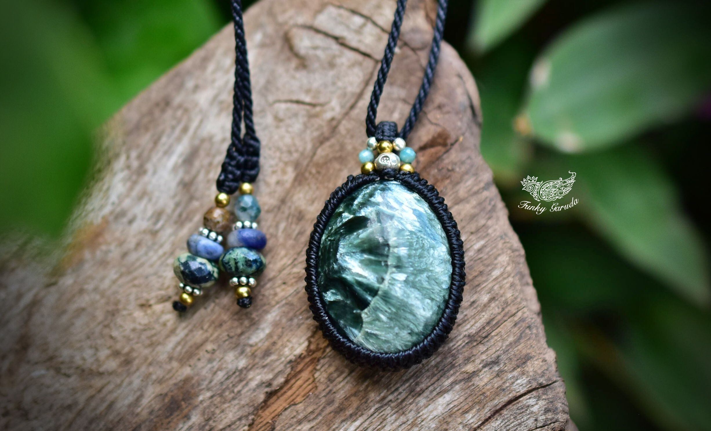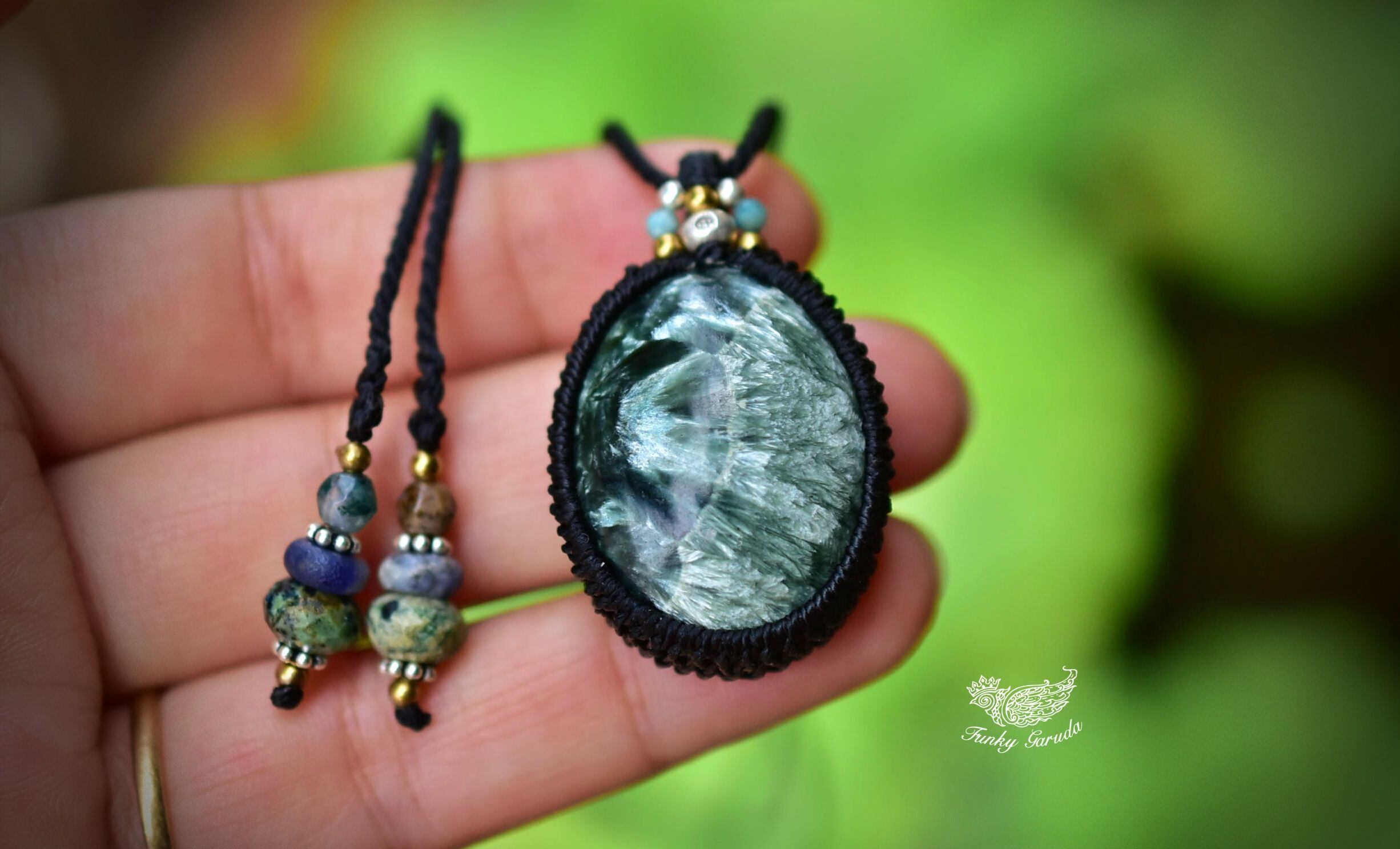 広がる白翼★セラフィナイト シンプルマクラメペンダント sery005