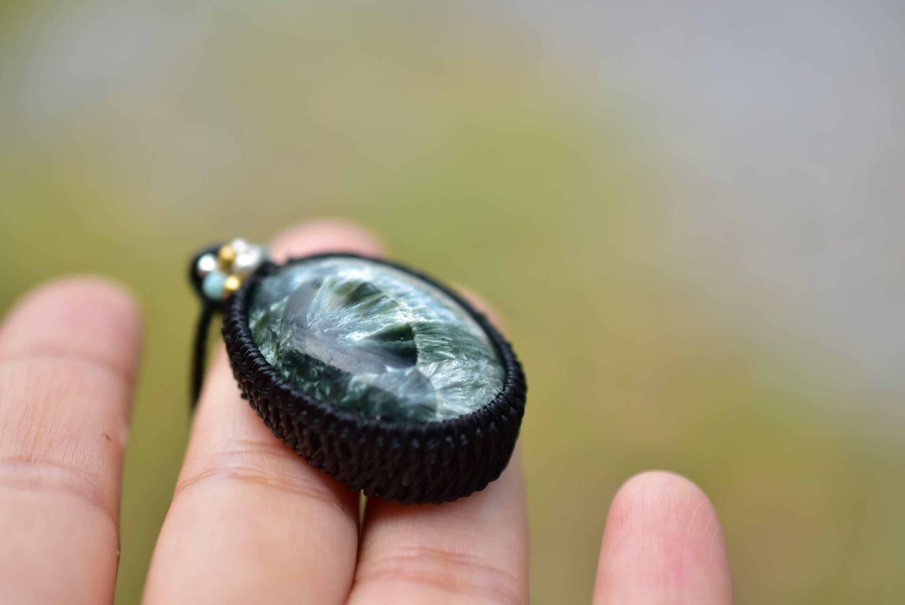 セラフィナイト特有のシラーが、キラキラと眩く煌めきます。