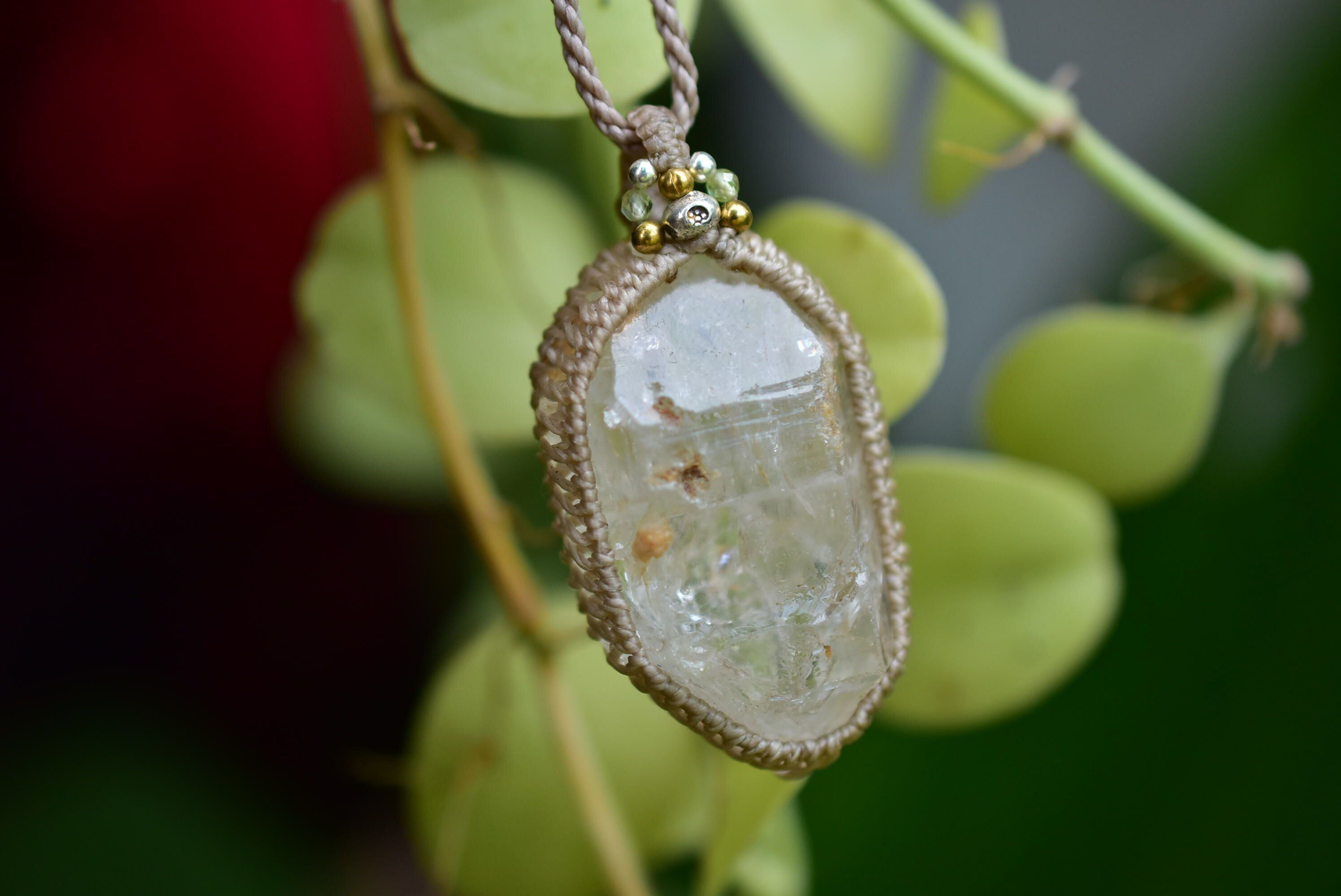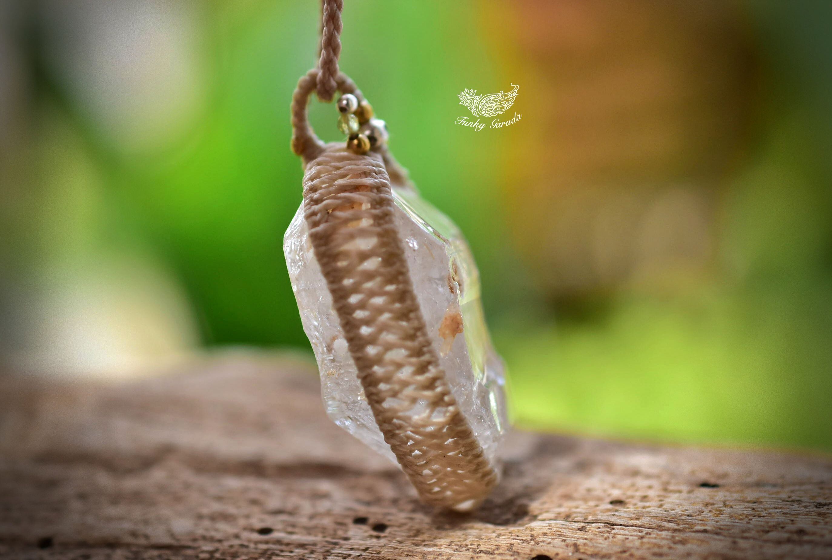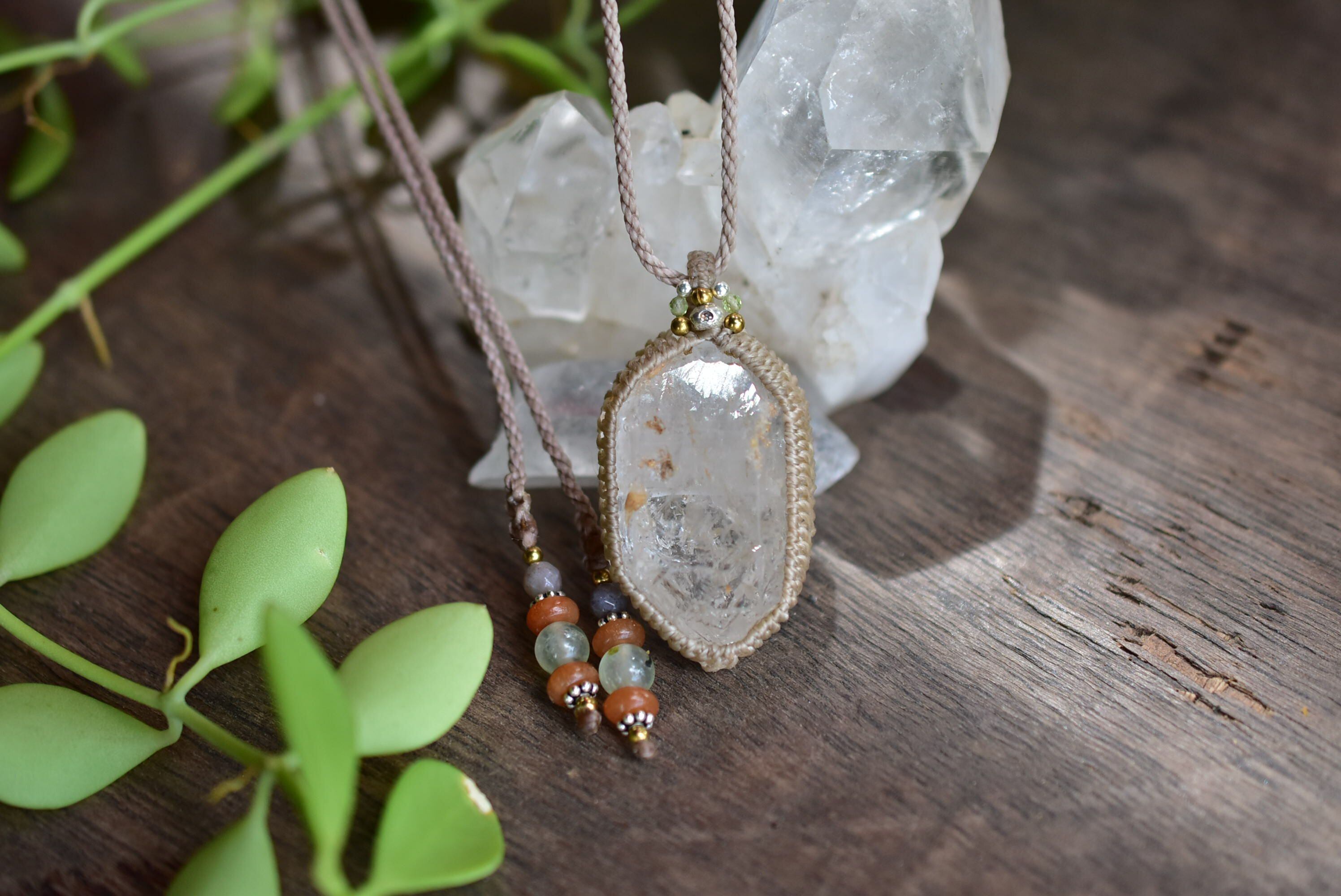 煌めく世界★虹入り★ハーキマー水晶 原石 マクラメペンダントhky003