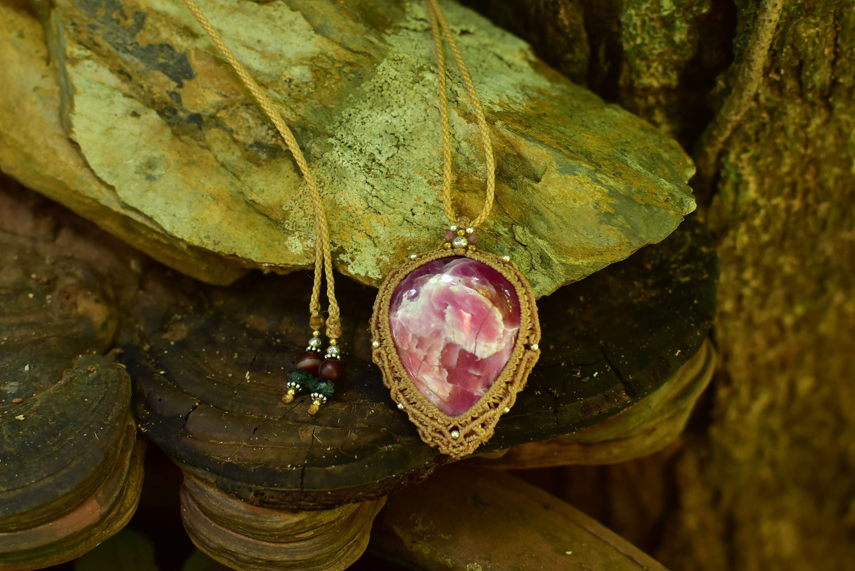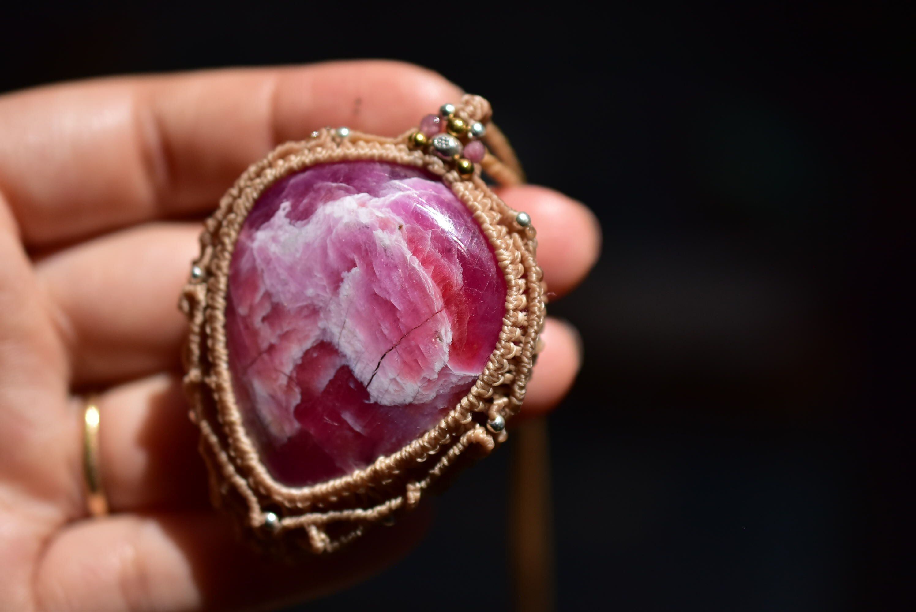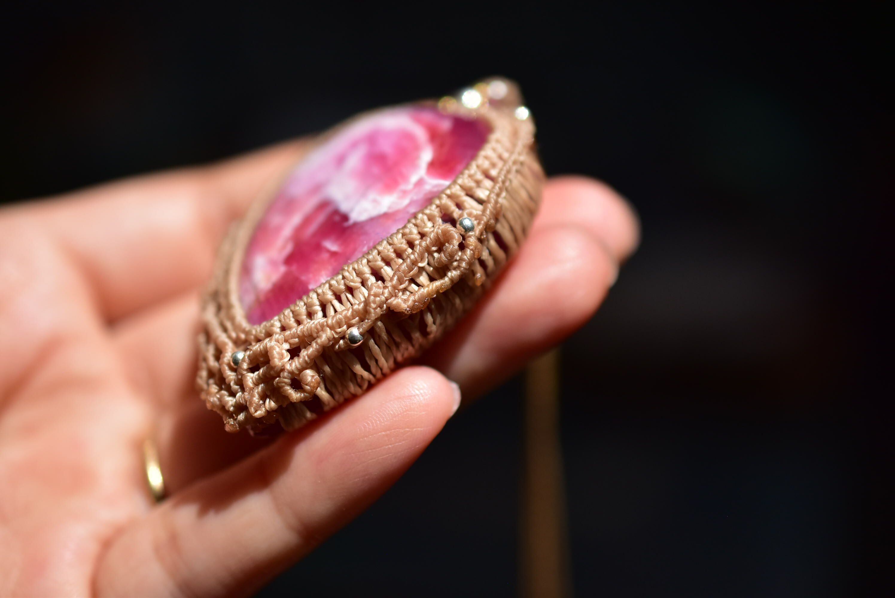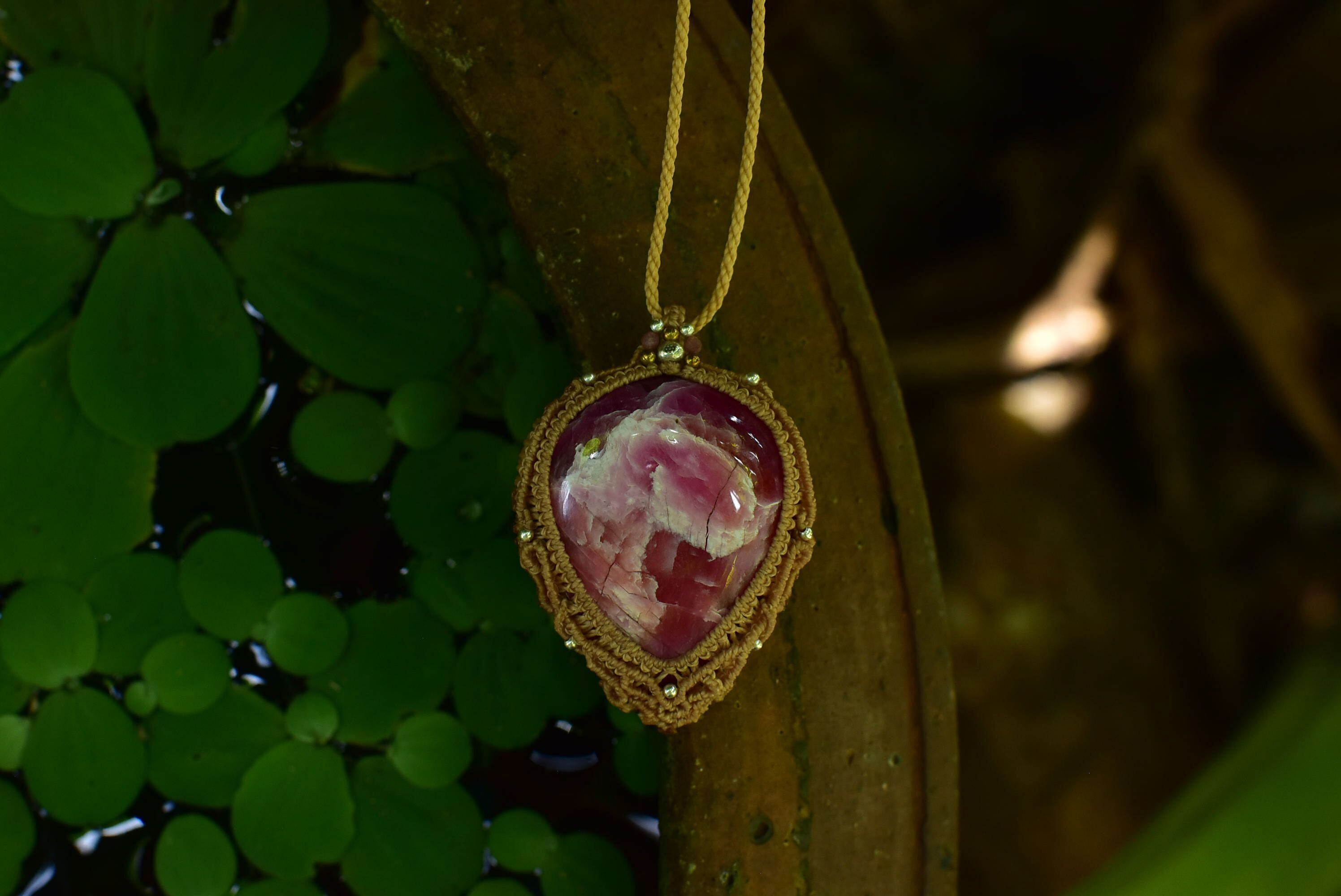 特大318ct★バラの花びら★ローズルビー マクラメペンダントruby044