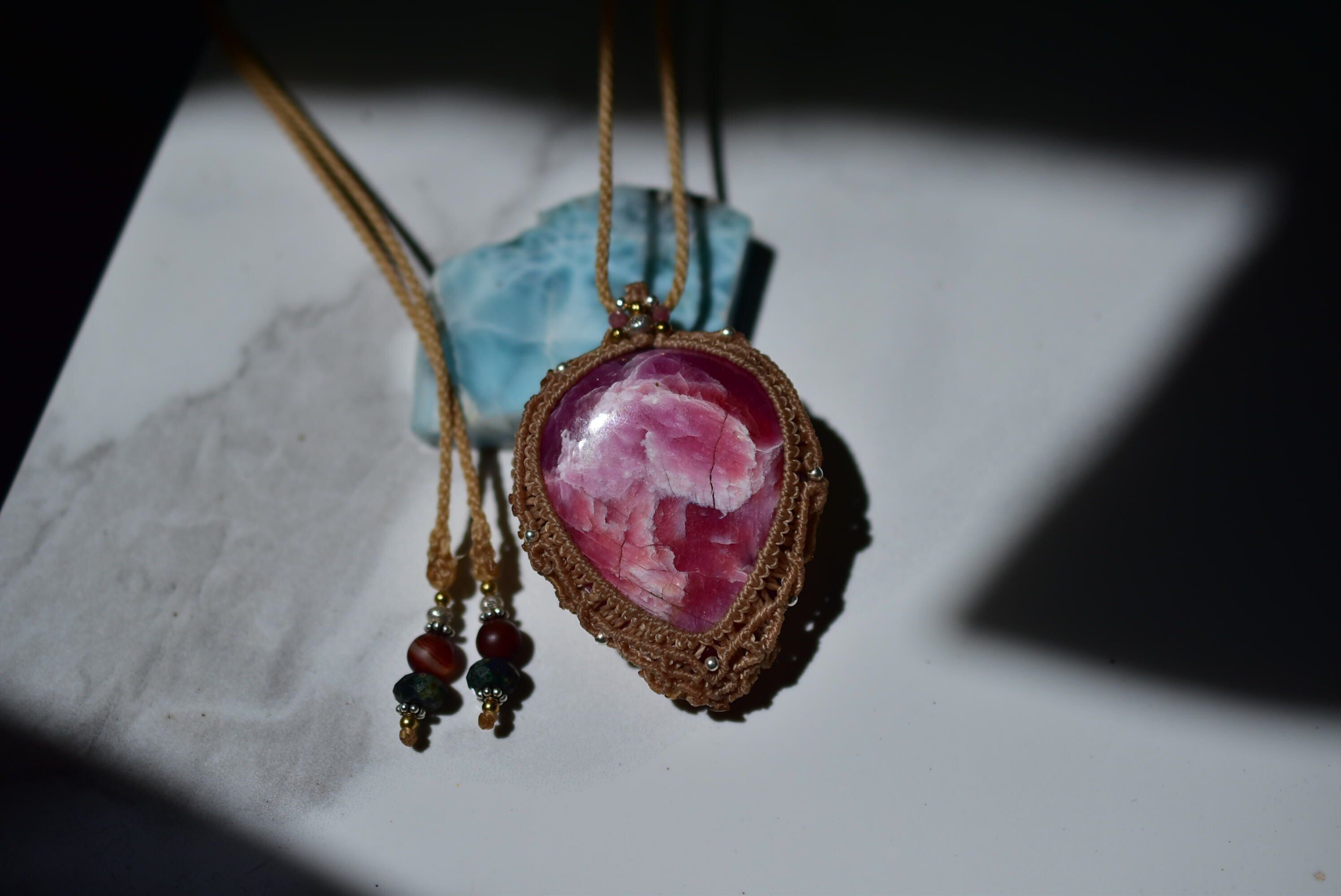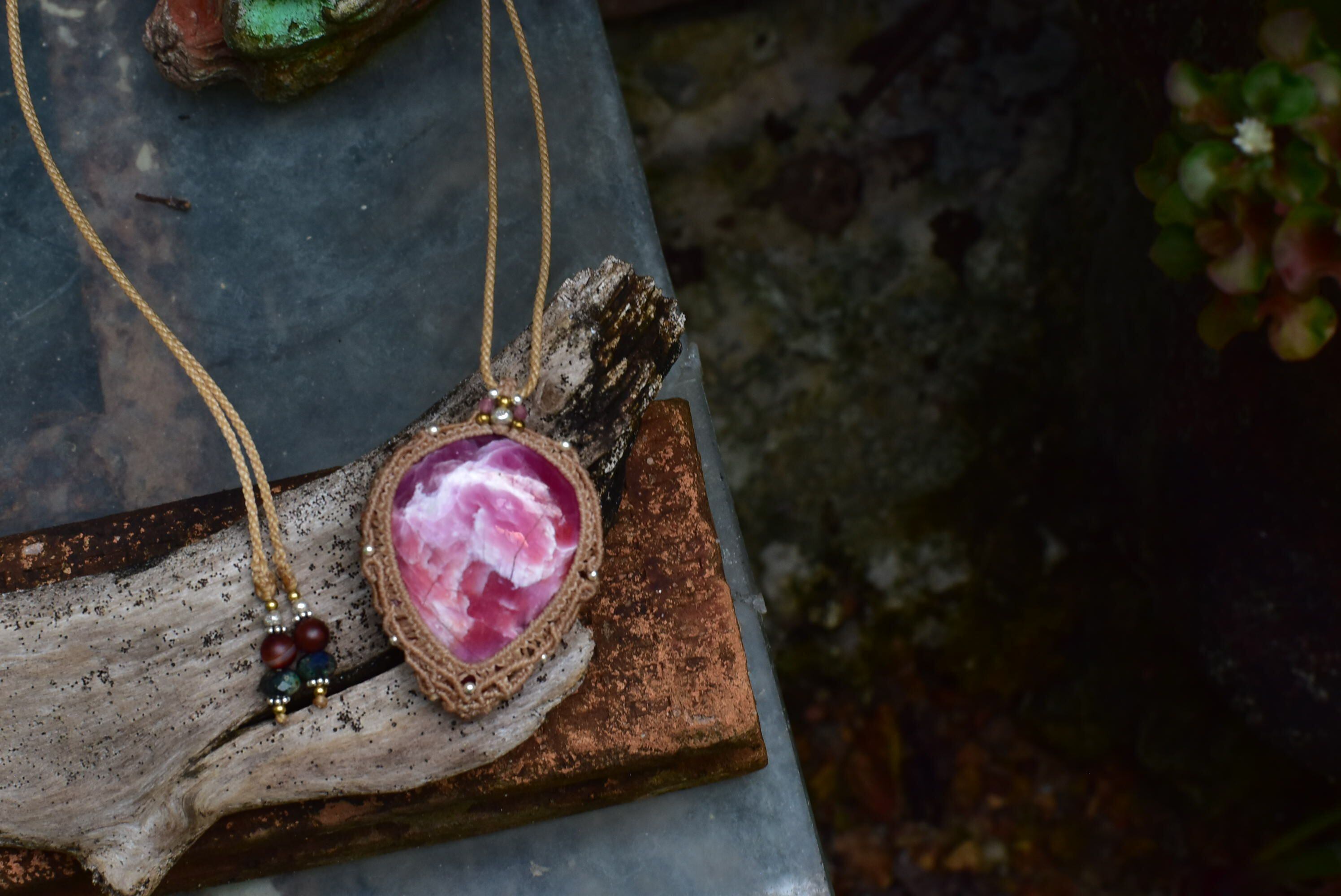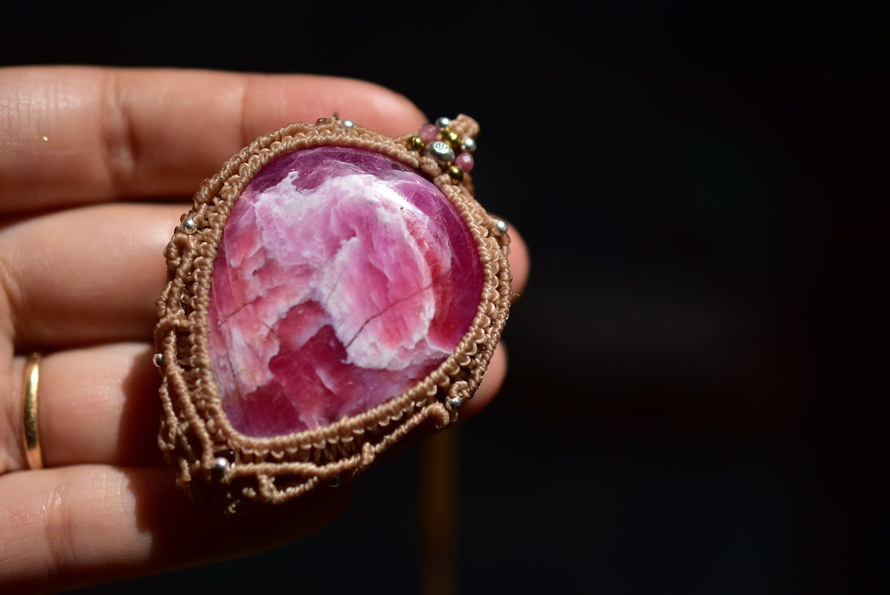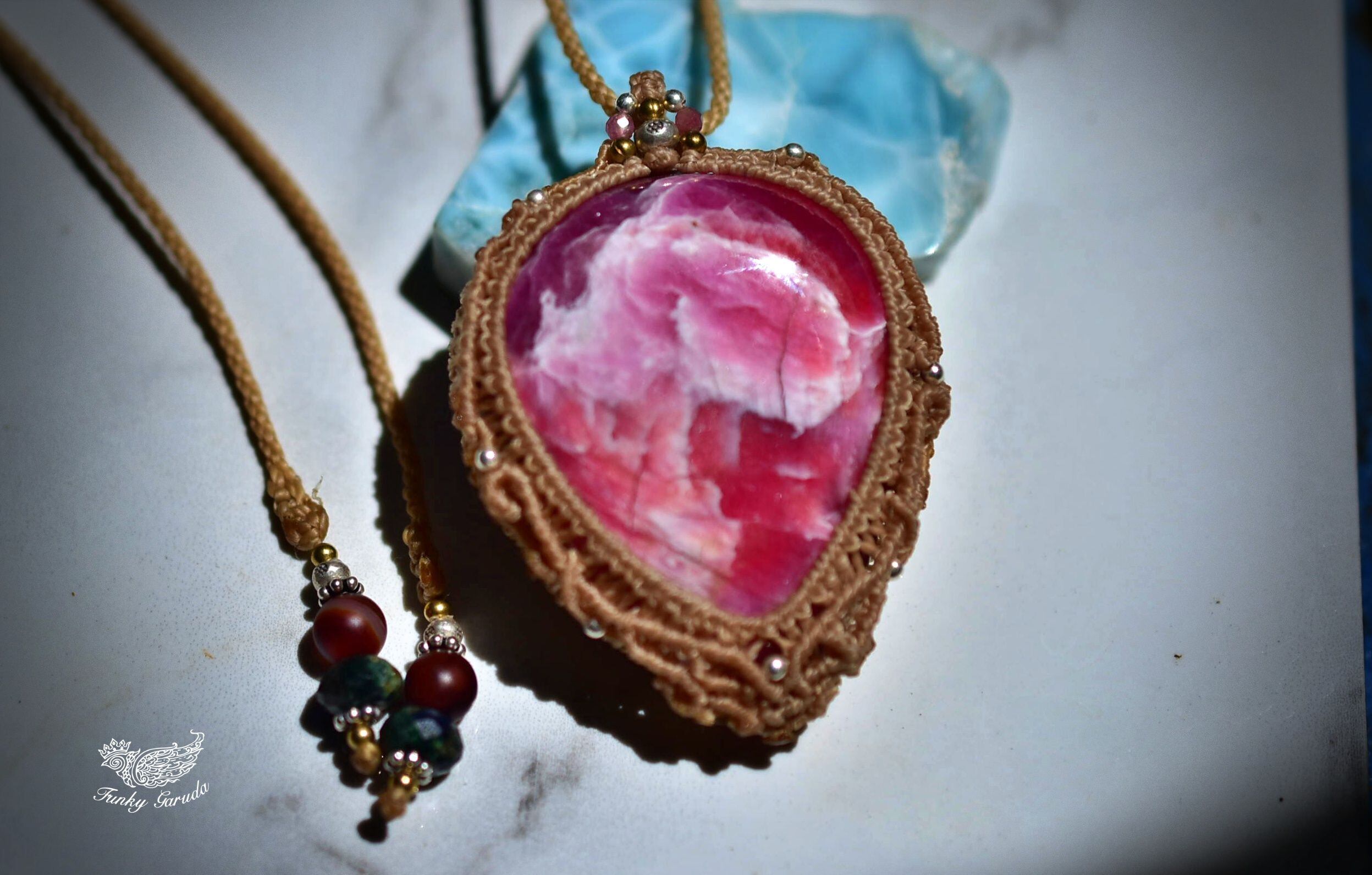 特大318ct★バラの花びら★ローズルビー マクラメペンダントruby044