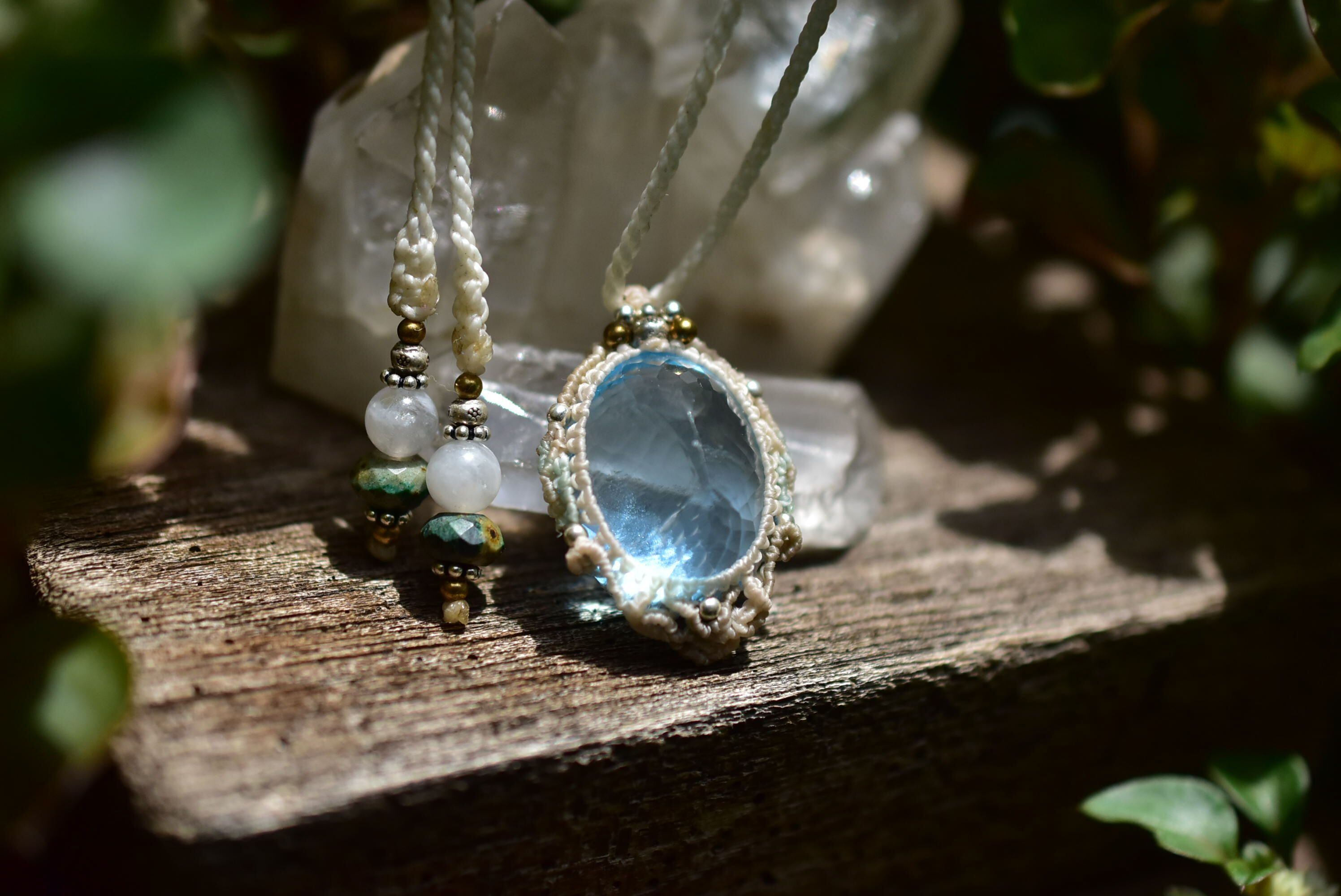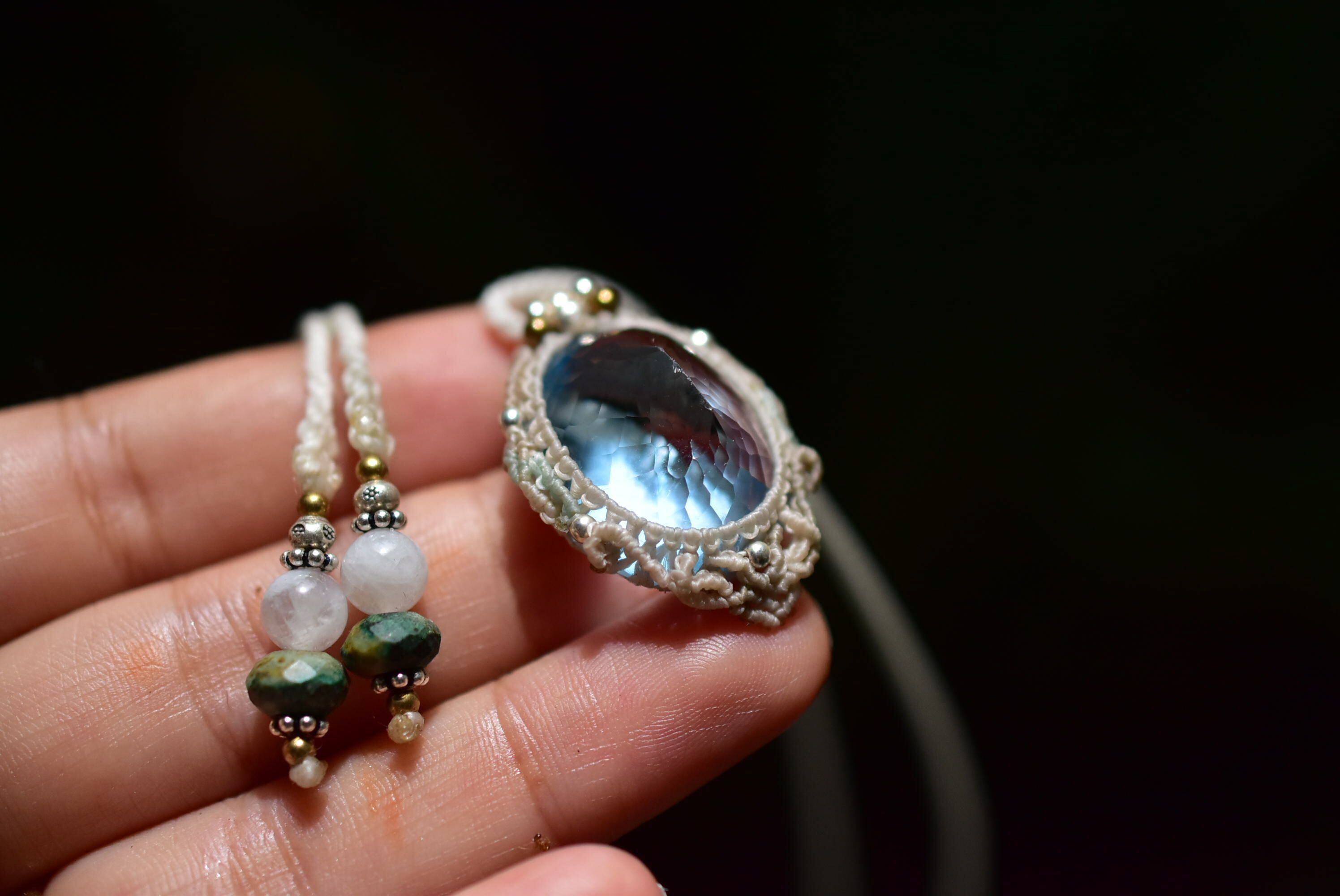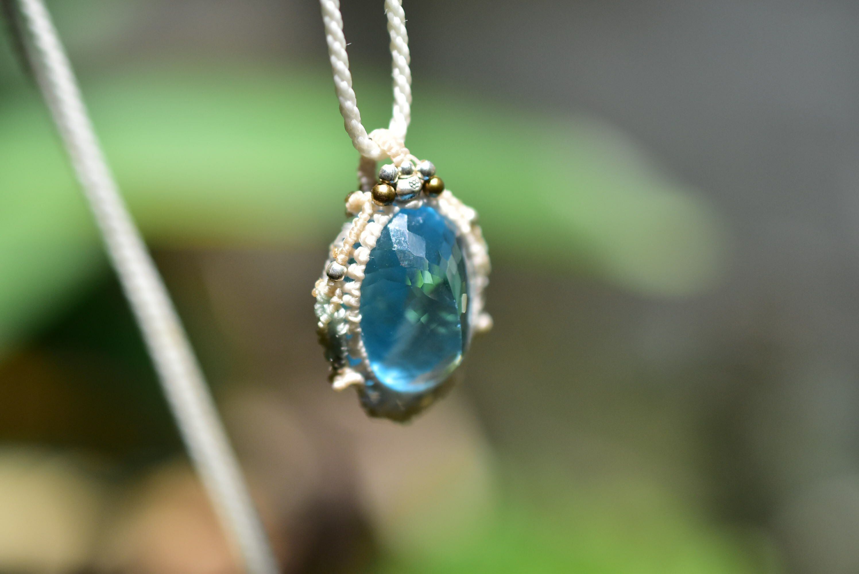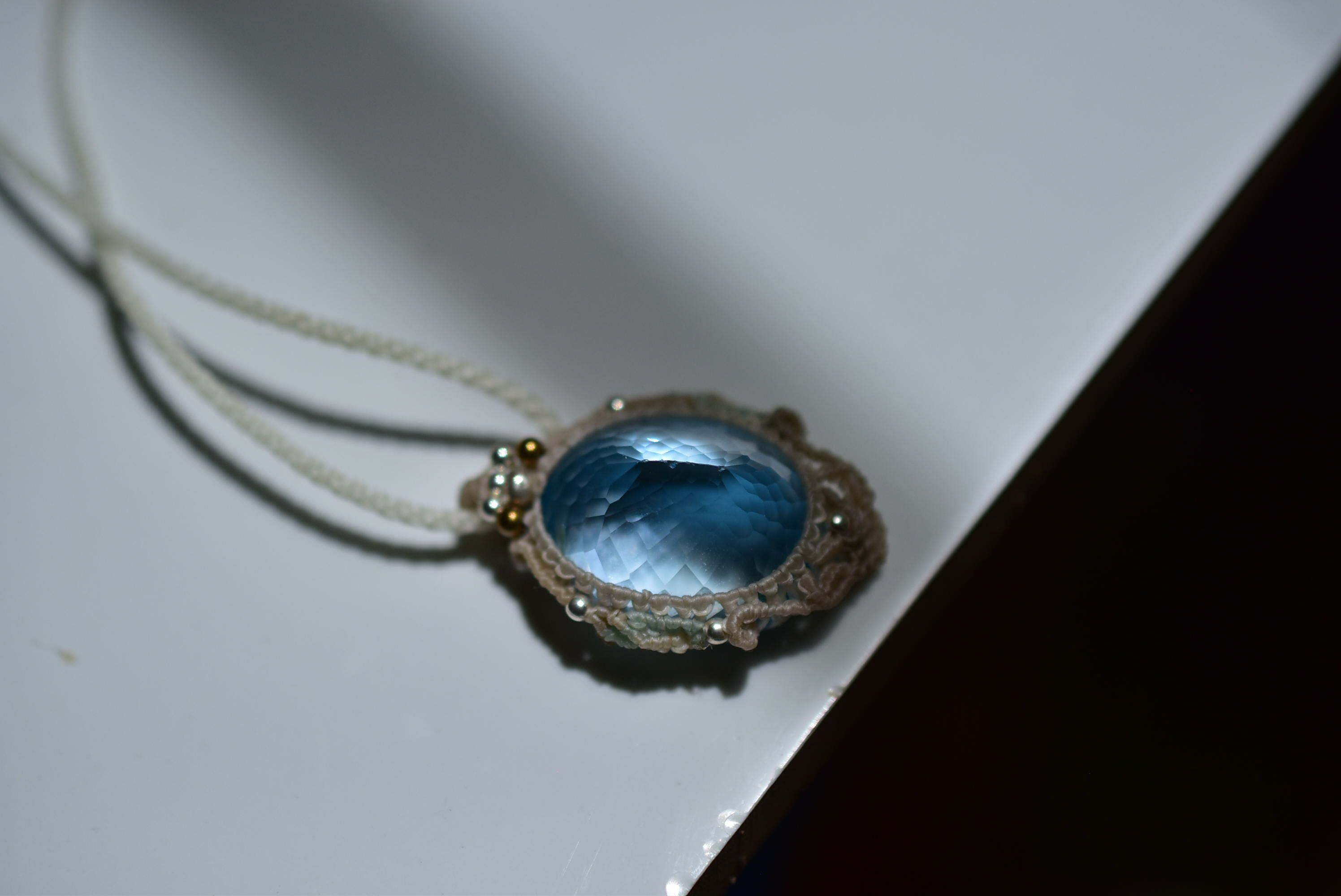 そよ風の空色★49ct★ブルートパーズ マクラメペンダントtopaz004