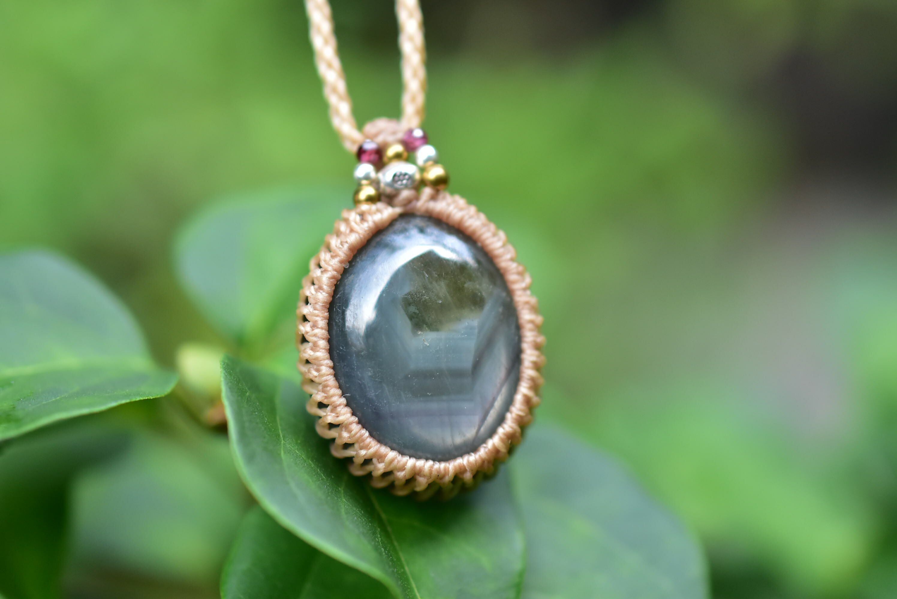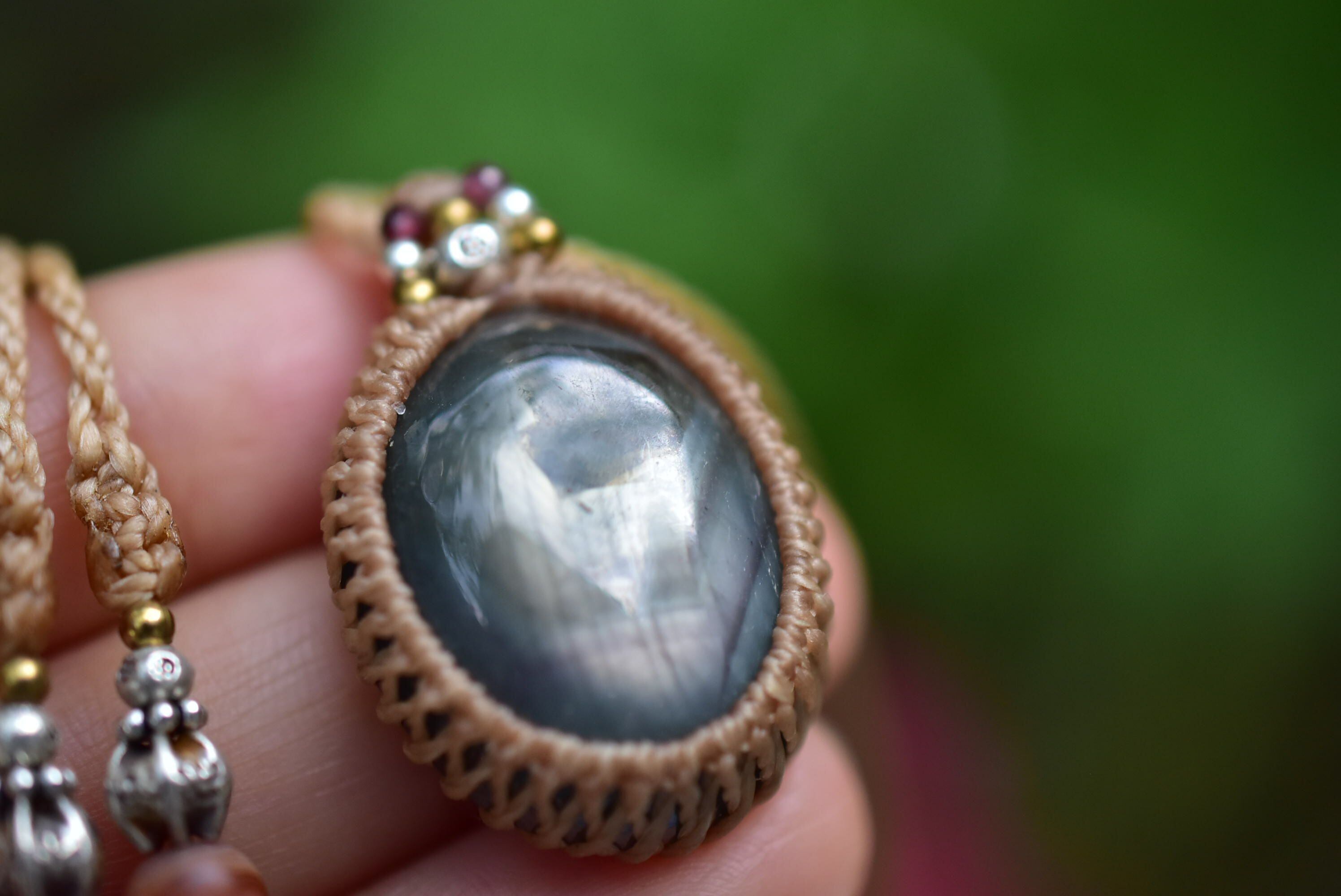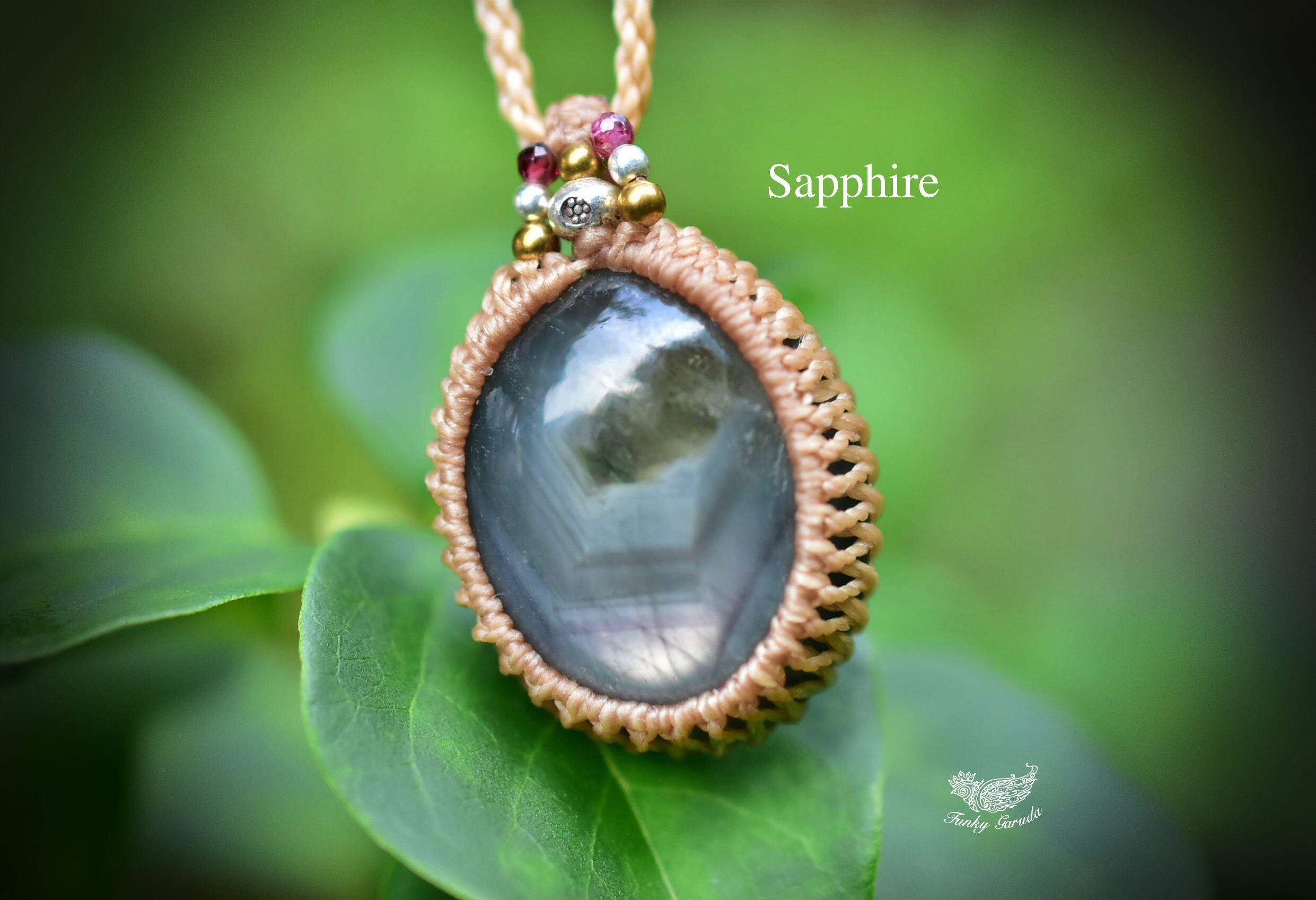 良質な半貴石 シルバーサファイアを、シンプルなマクラメペンダントに仕上げました。