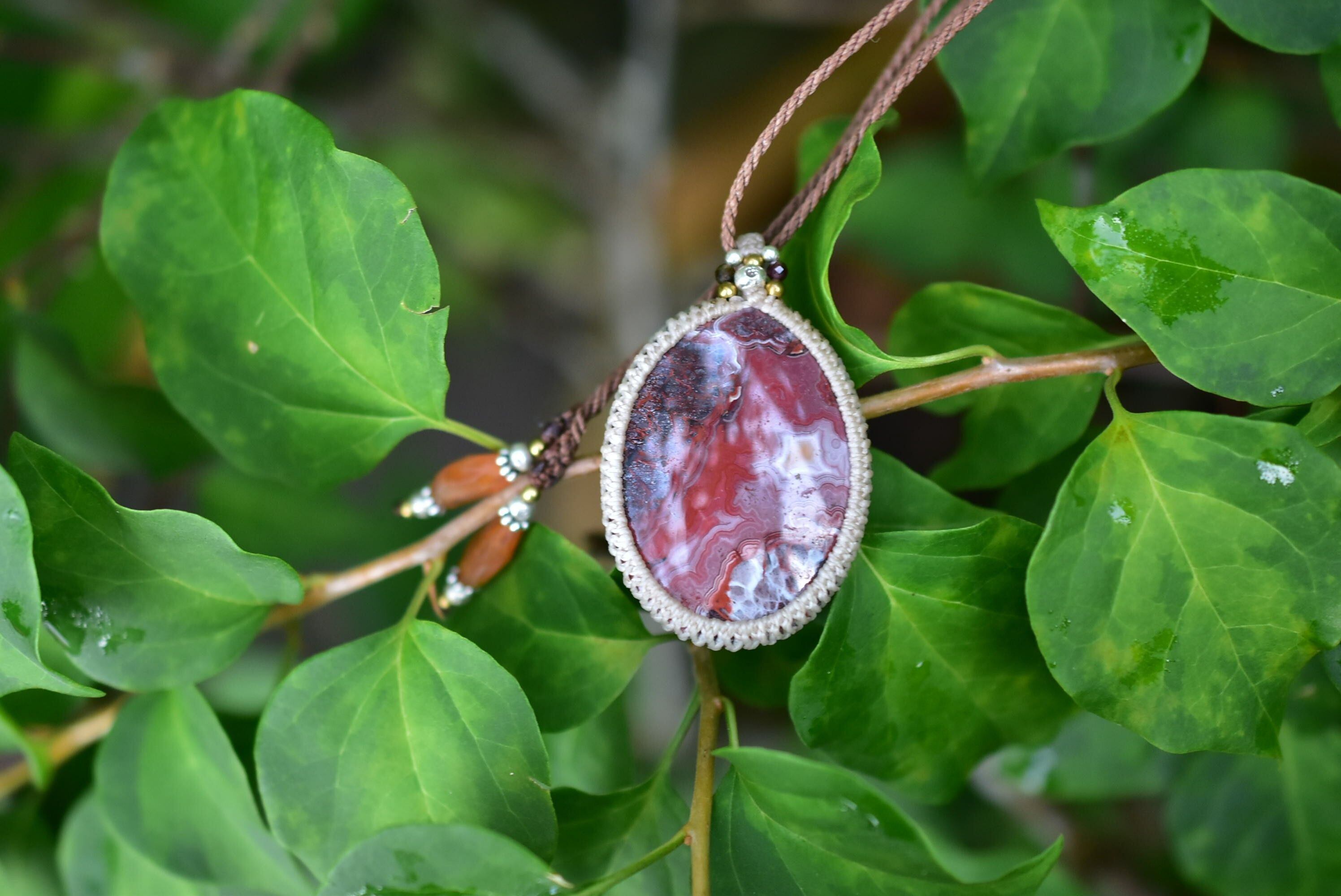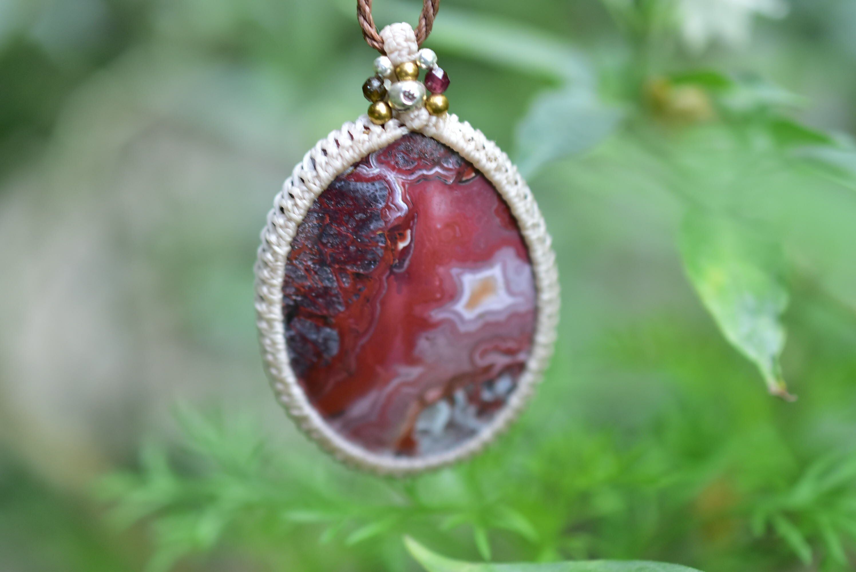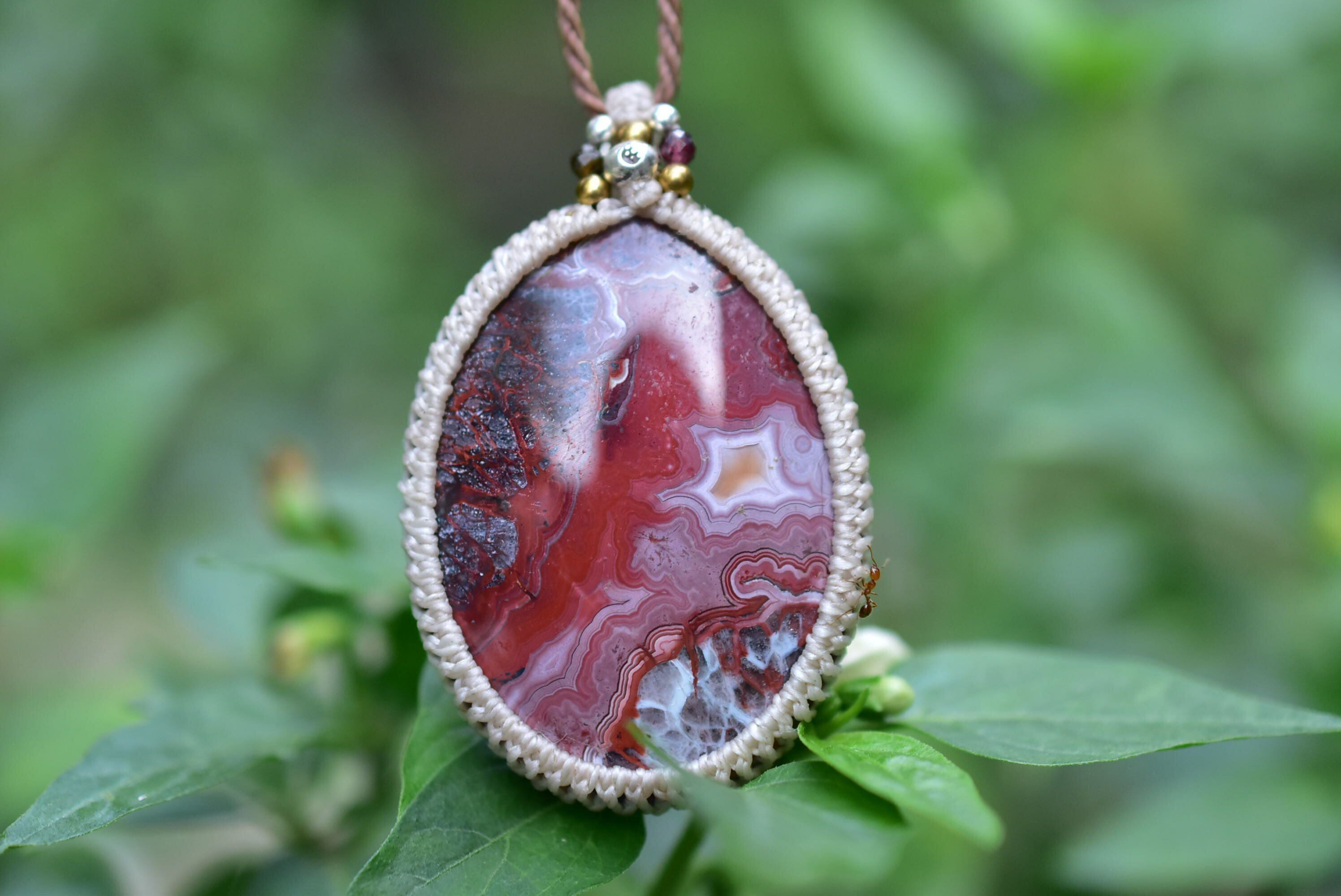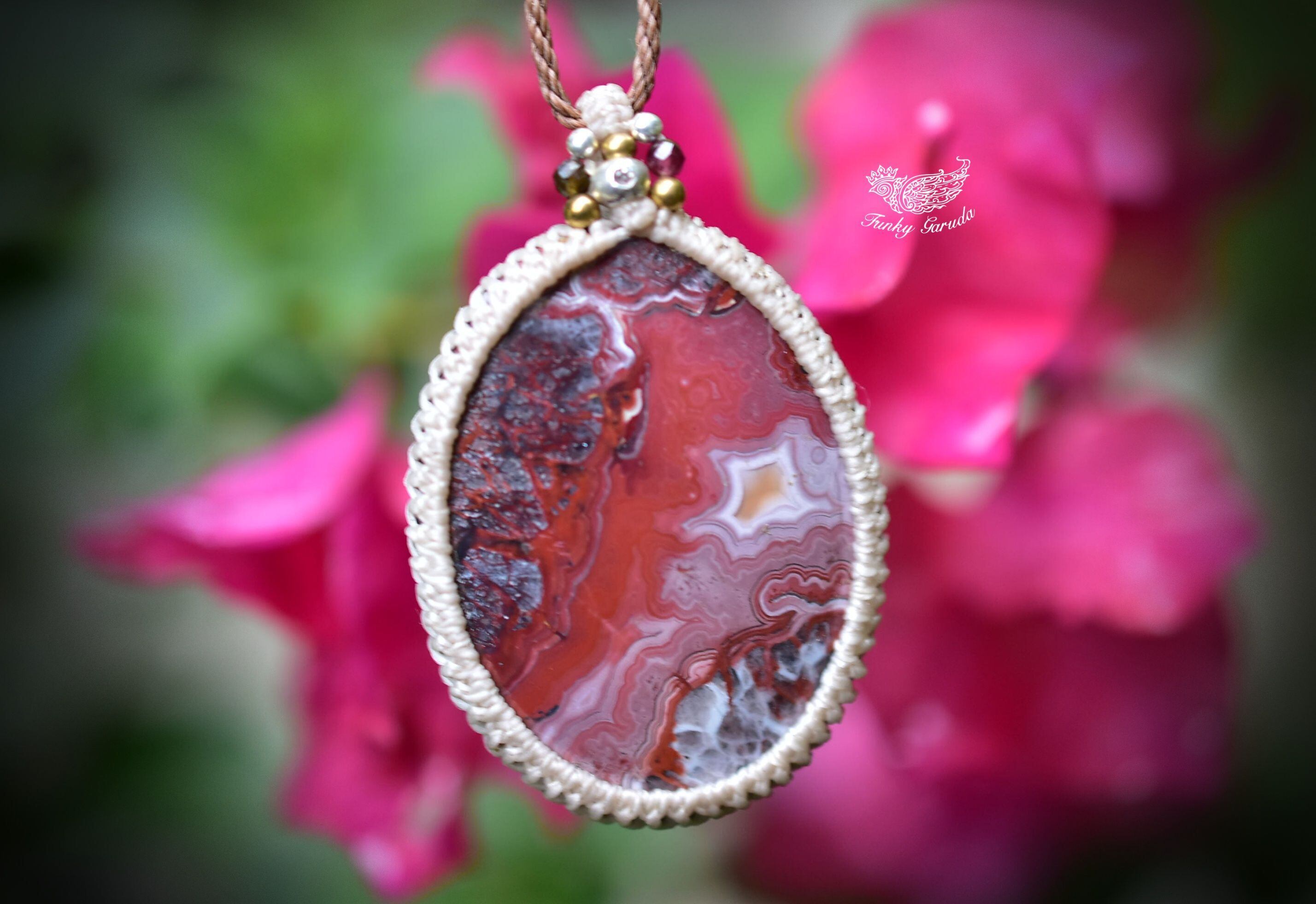 紅い大河★クレイジーレースアゲート マクラメペンダント agety007
