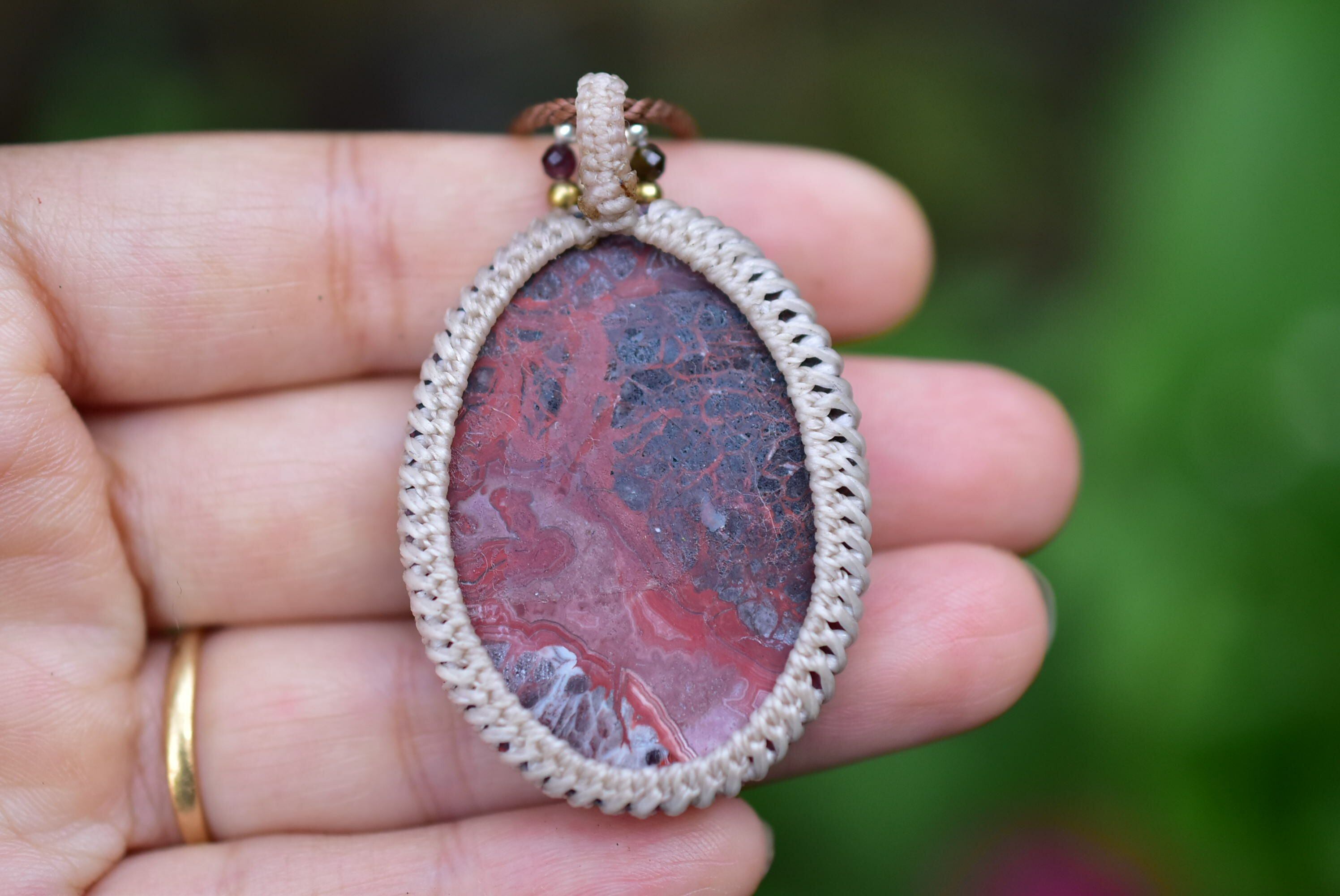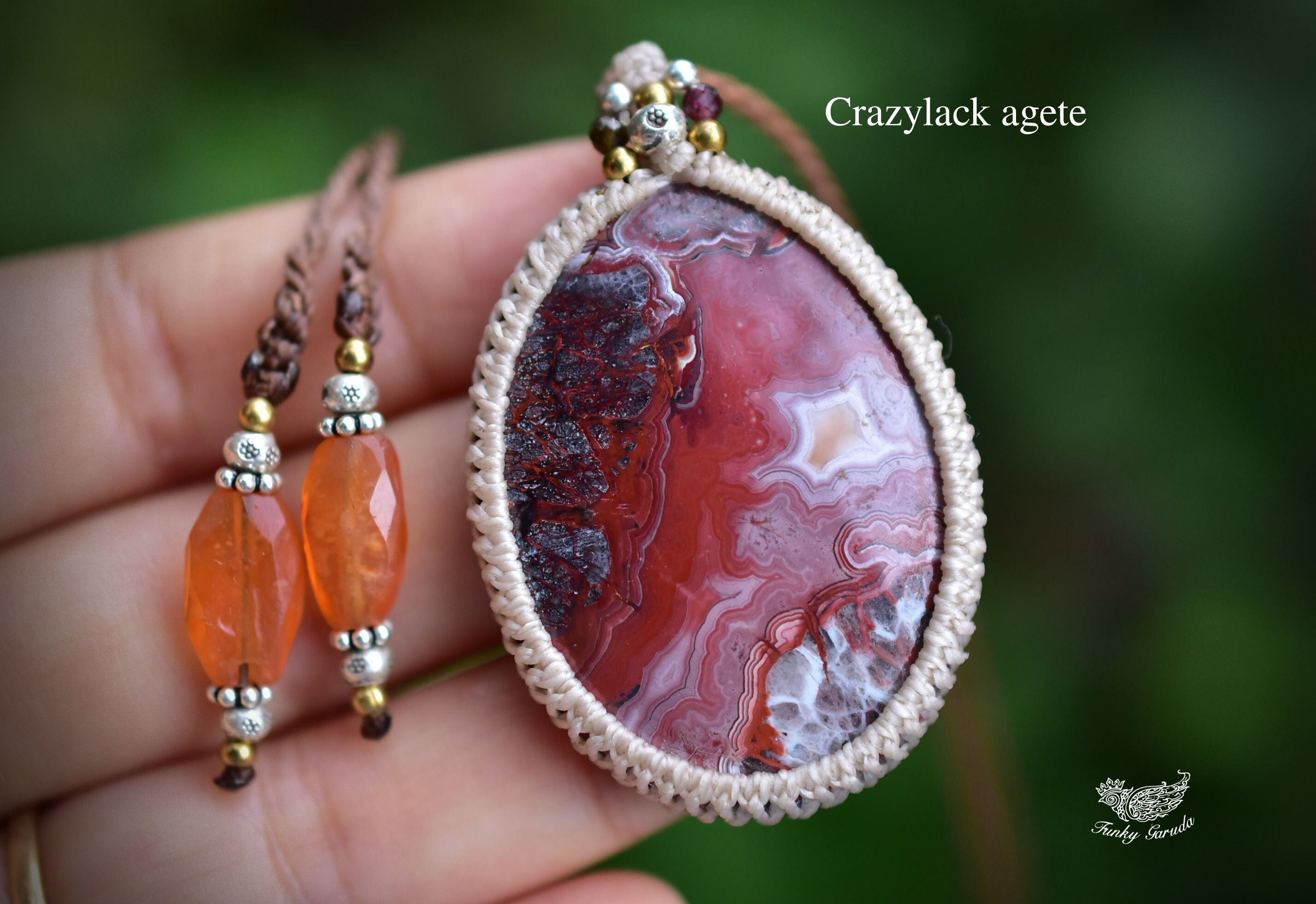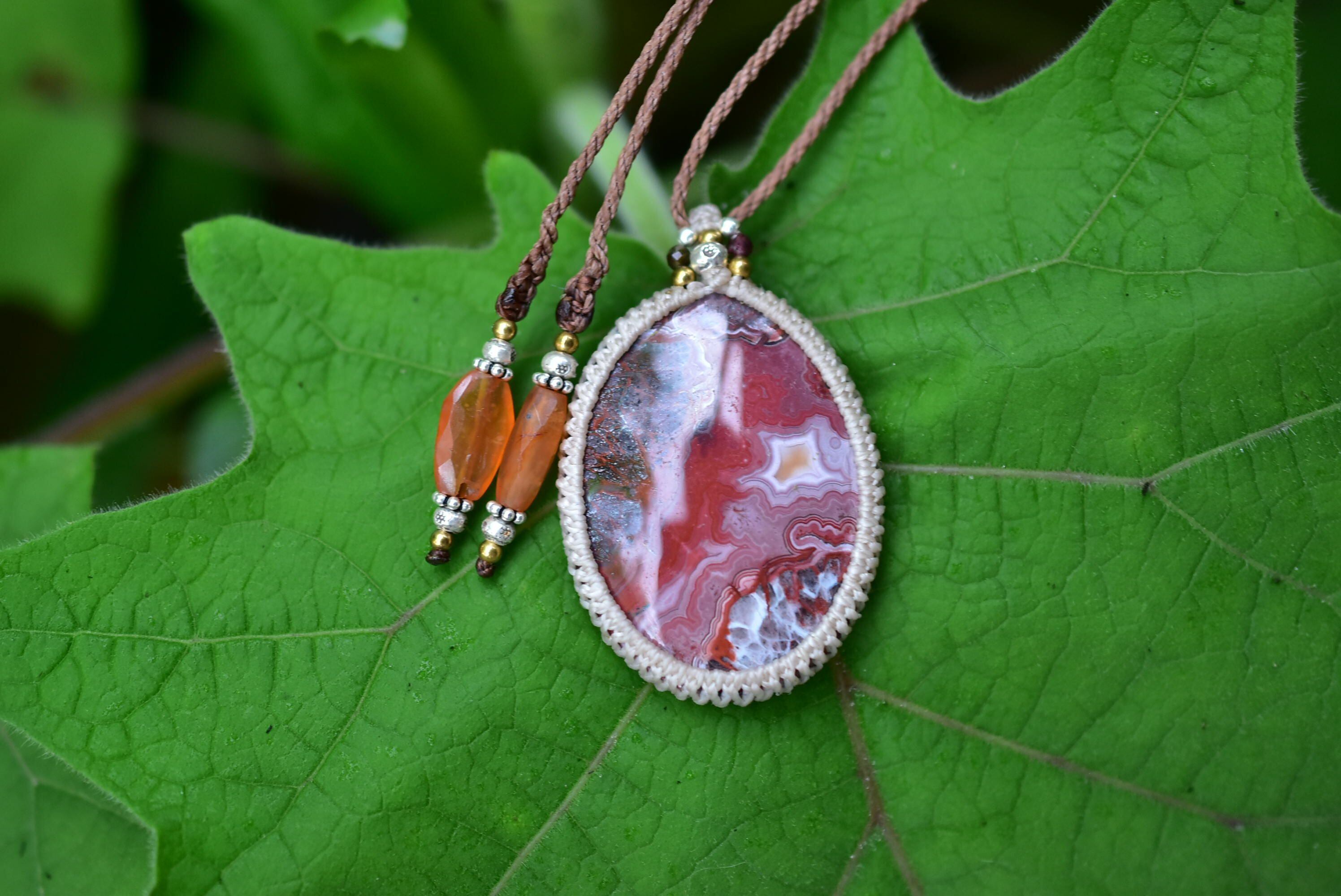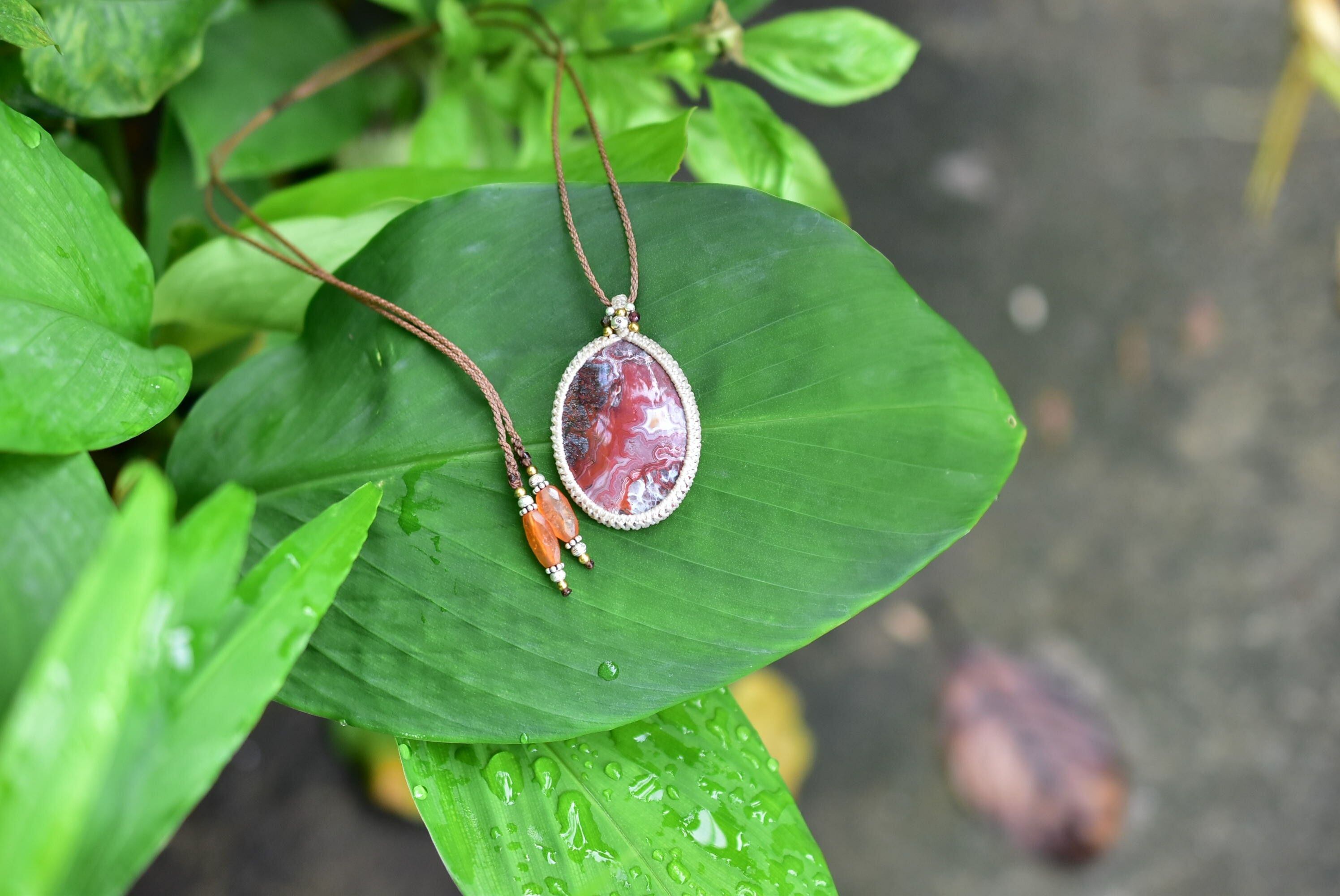 紅い大河★クレイジーレースアゲート マクラメペンダント agety007